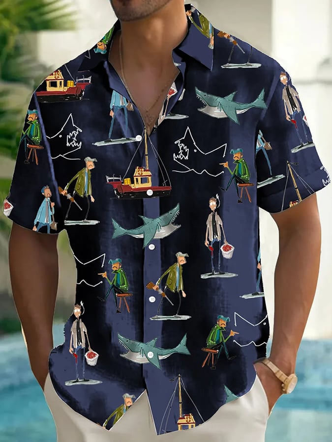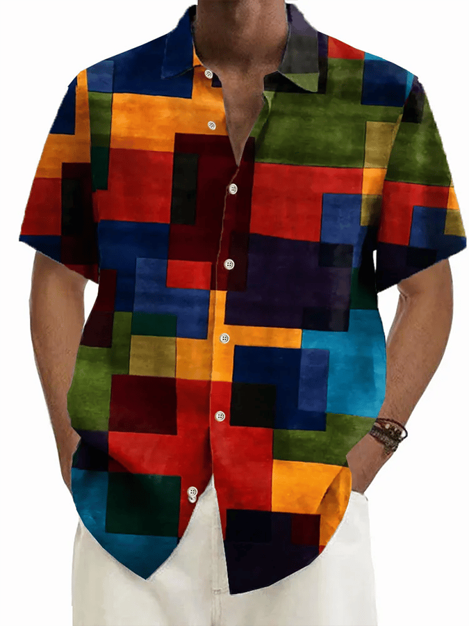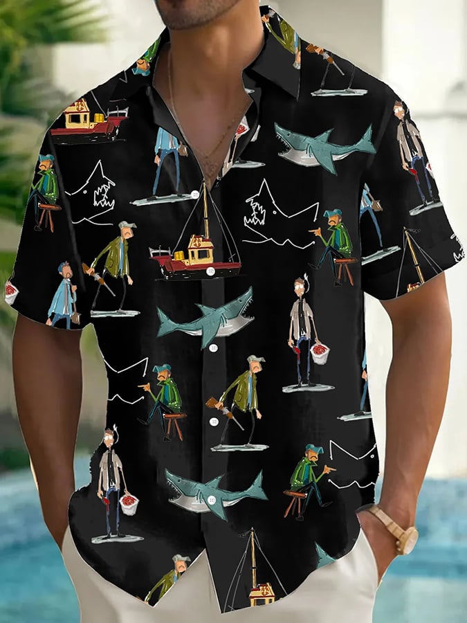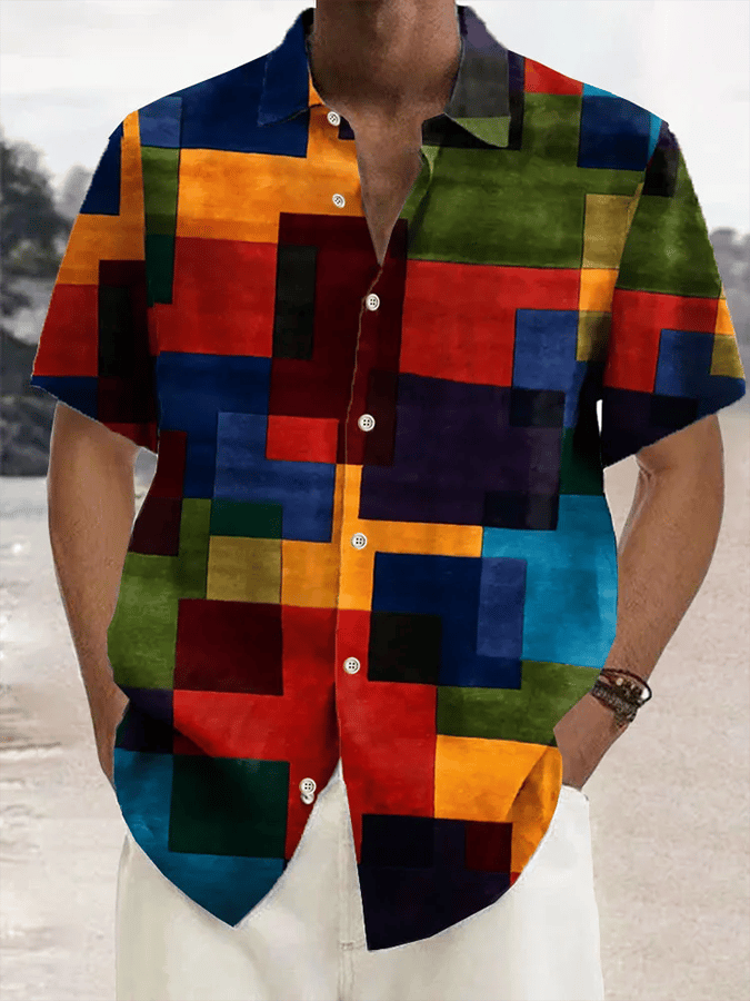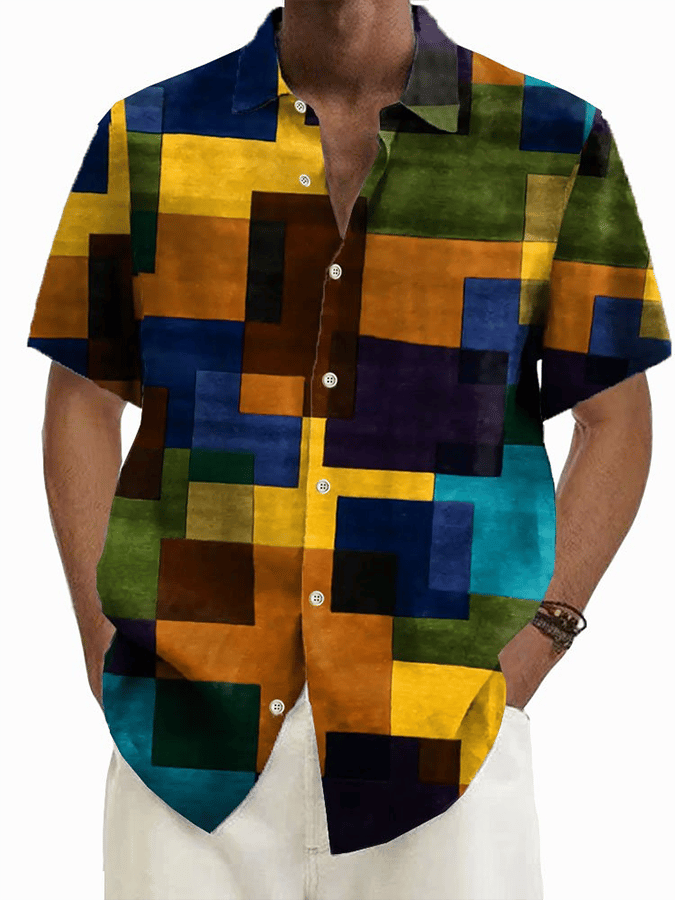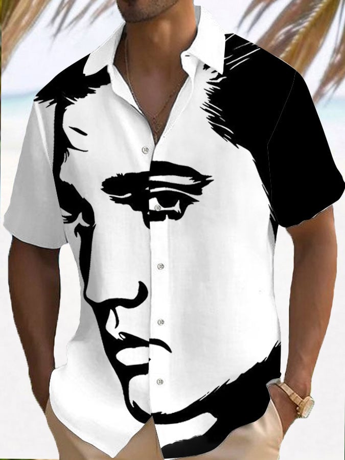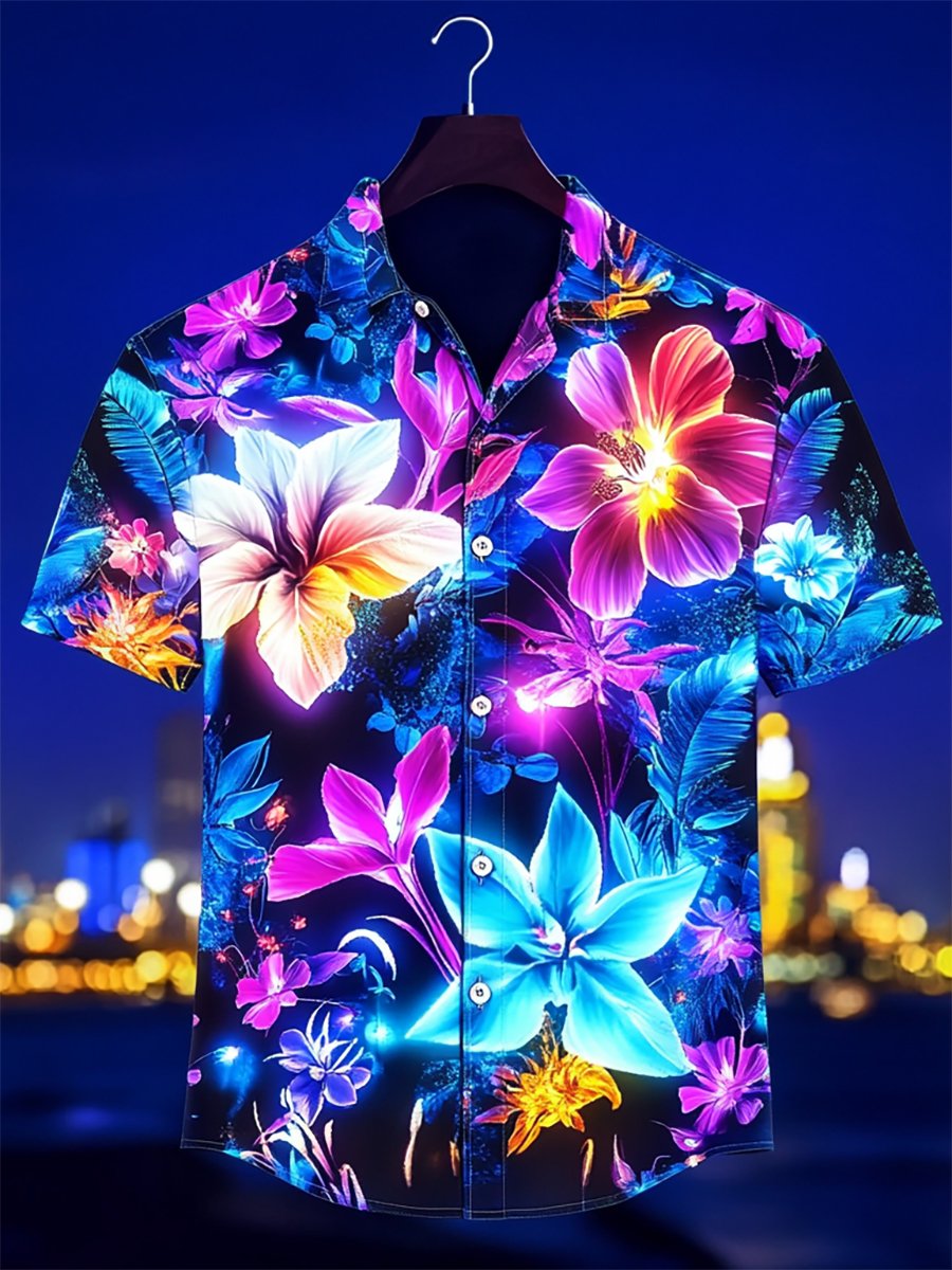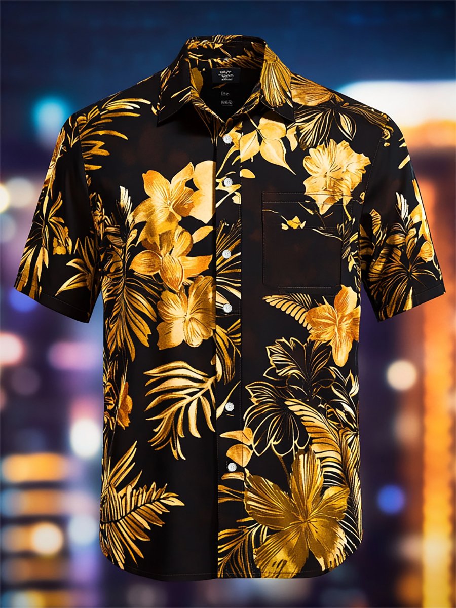 Men's Art Hawaiian Short Sleeve Pockets Shirt