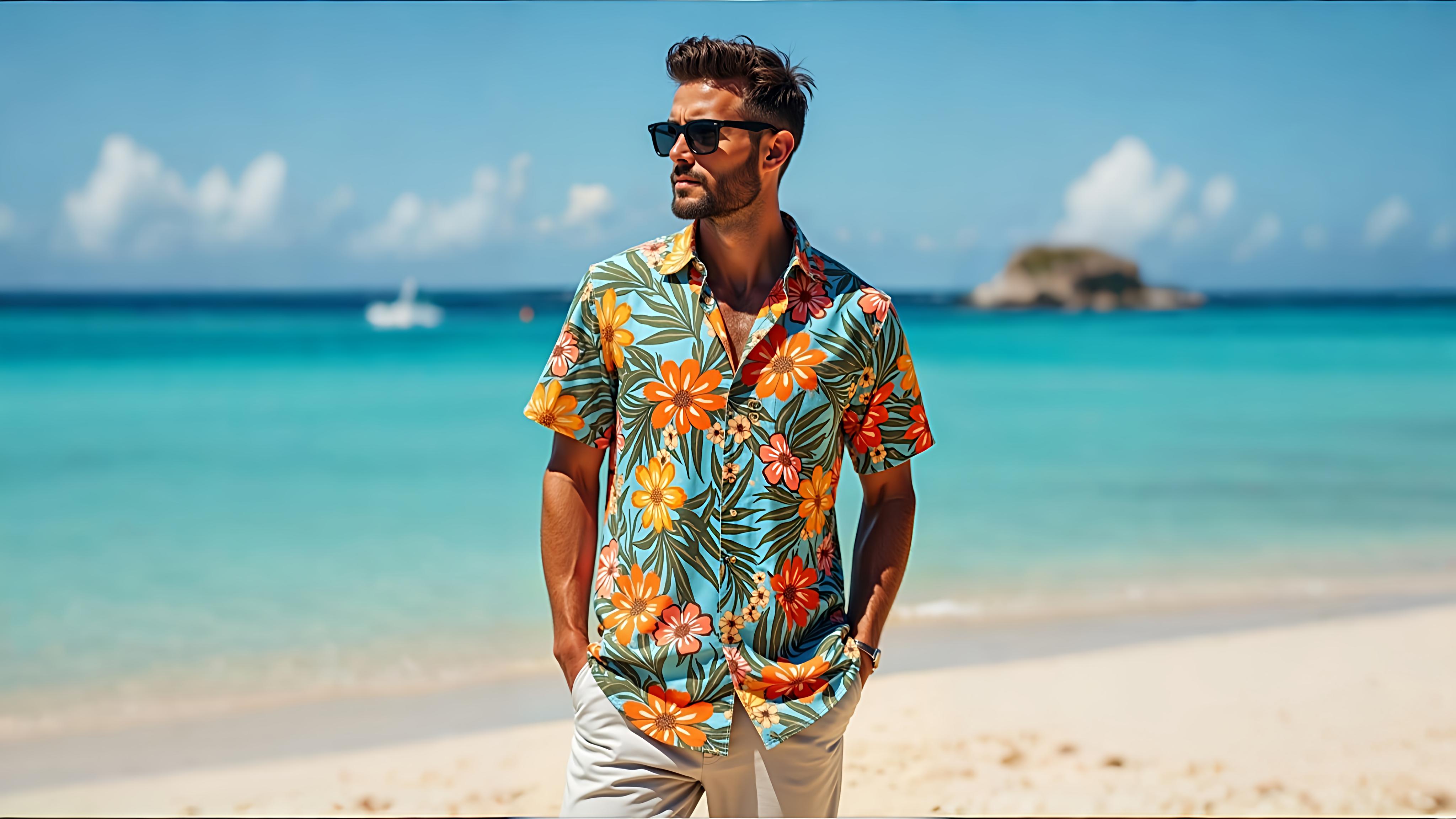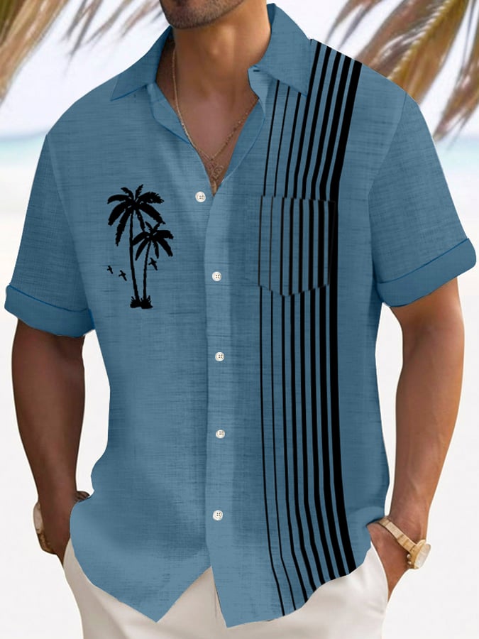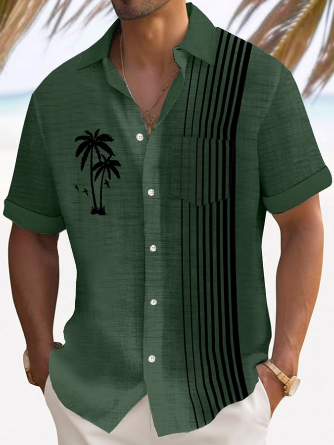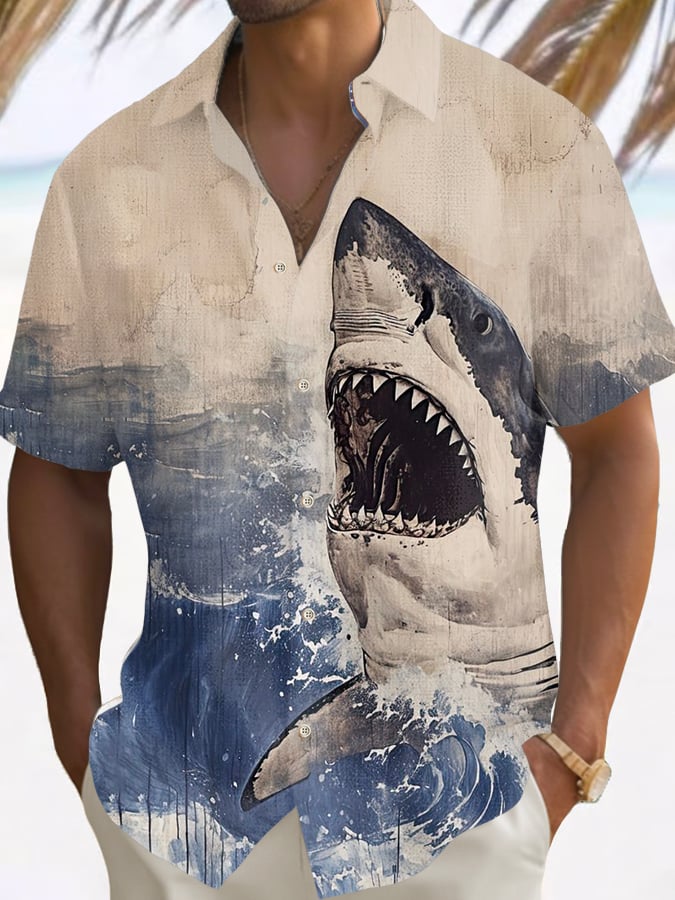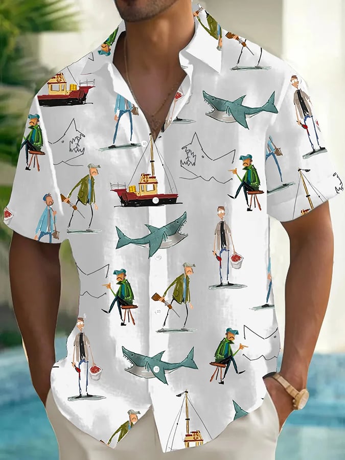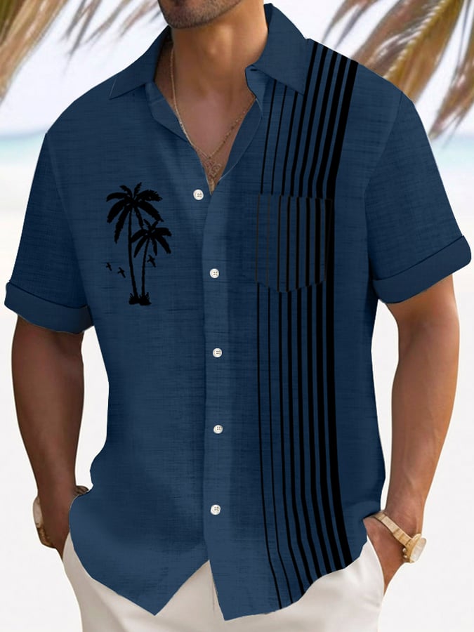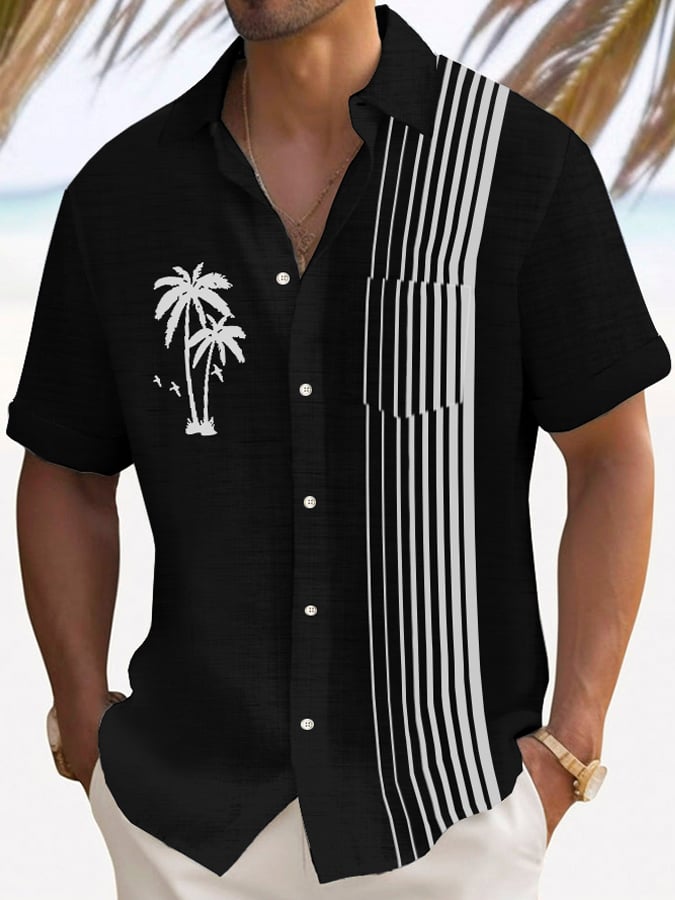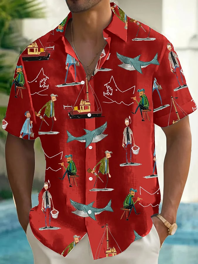 Men's Art Hawaiian Short Sleeve Pockets Shirt