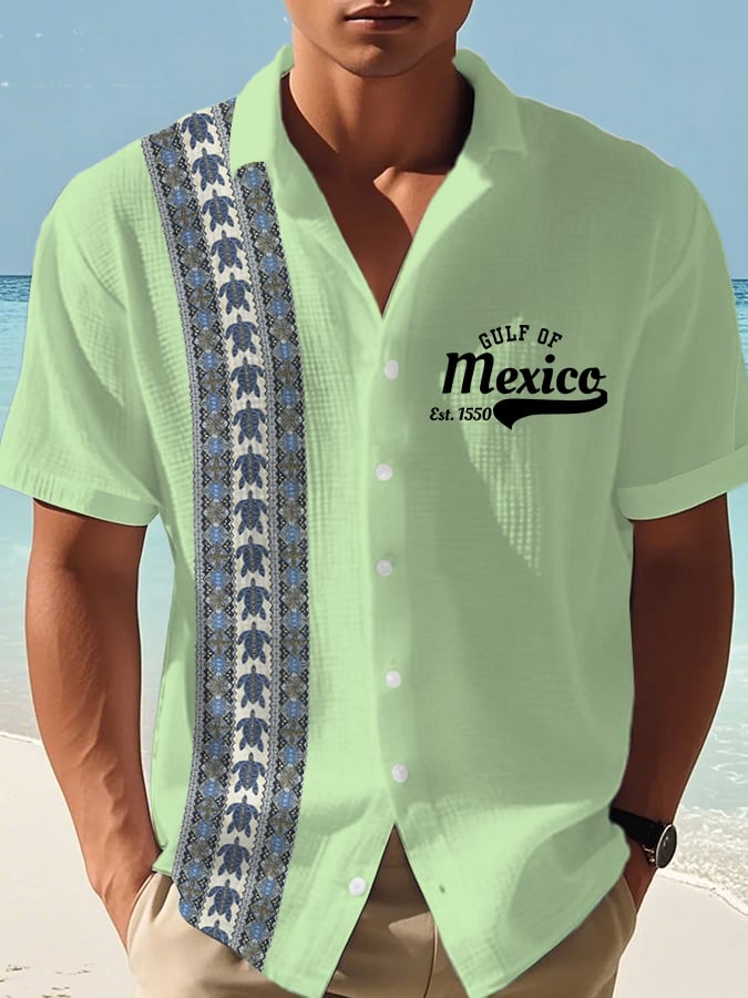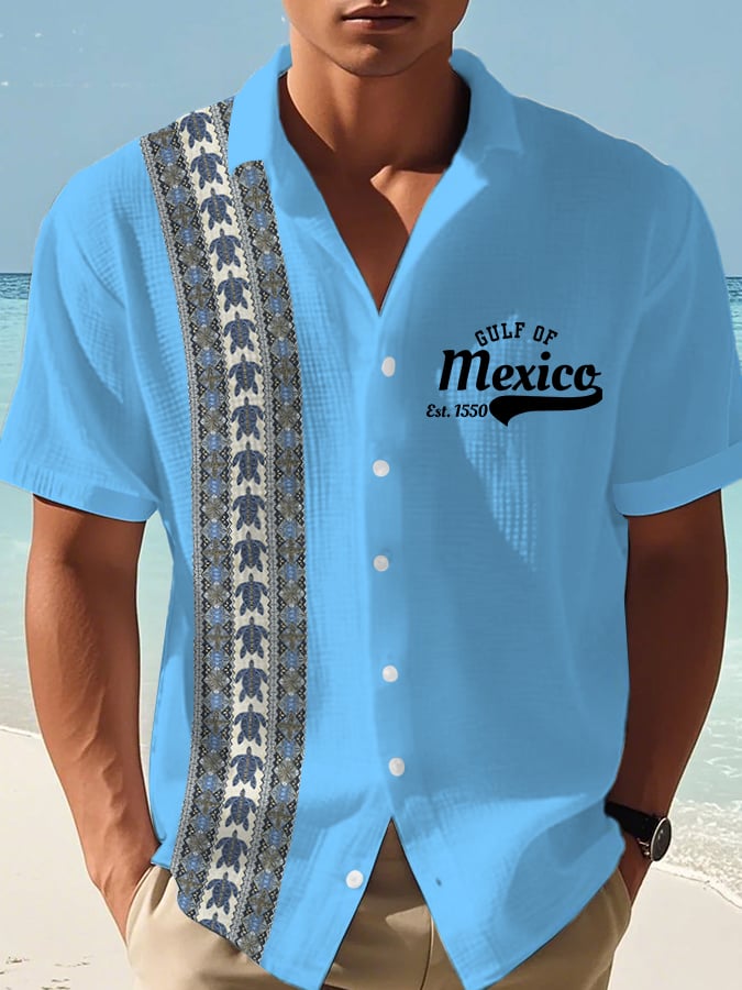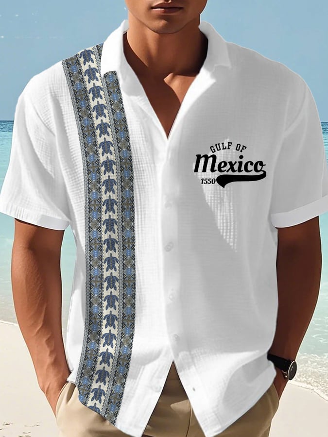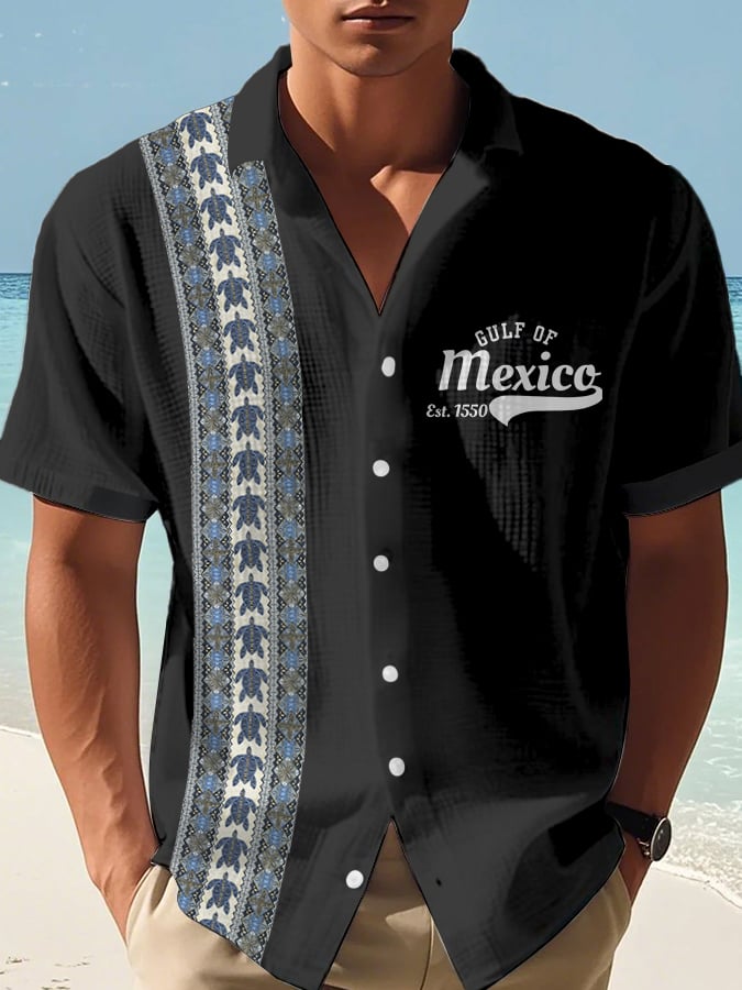 Men's Vacation Gulf of Mexico Turtle Print Waffle Shirt