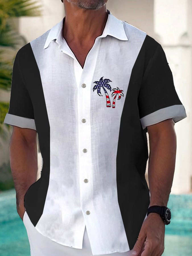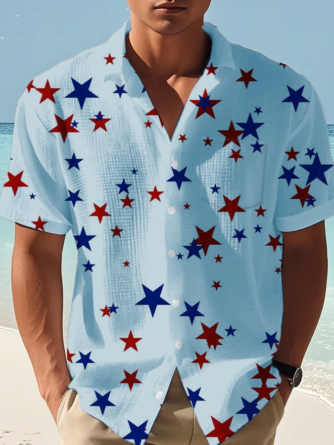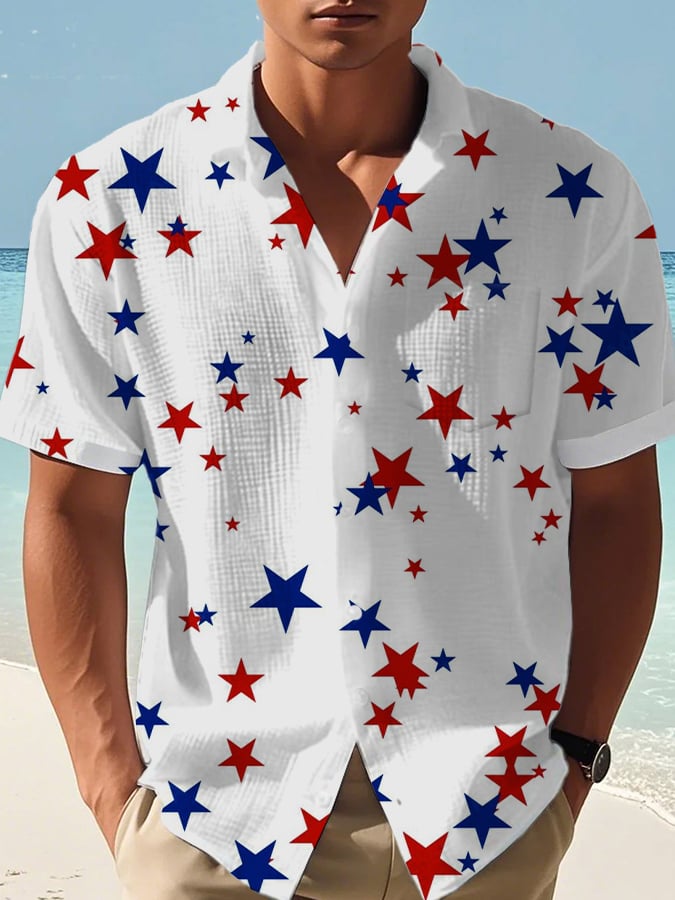 Men's Casual Vacation Independence Day Print Waffle Pocket Shirt