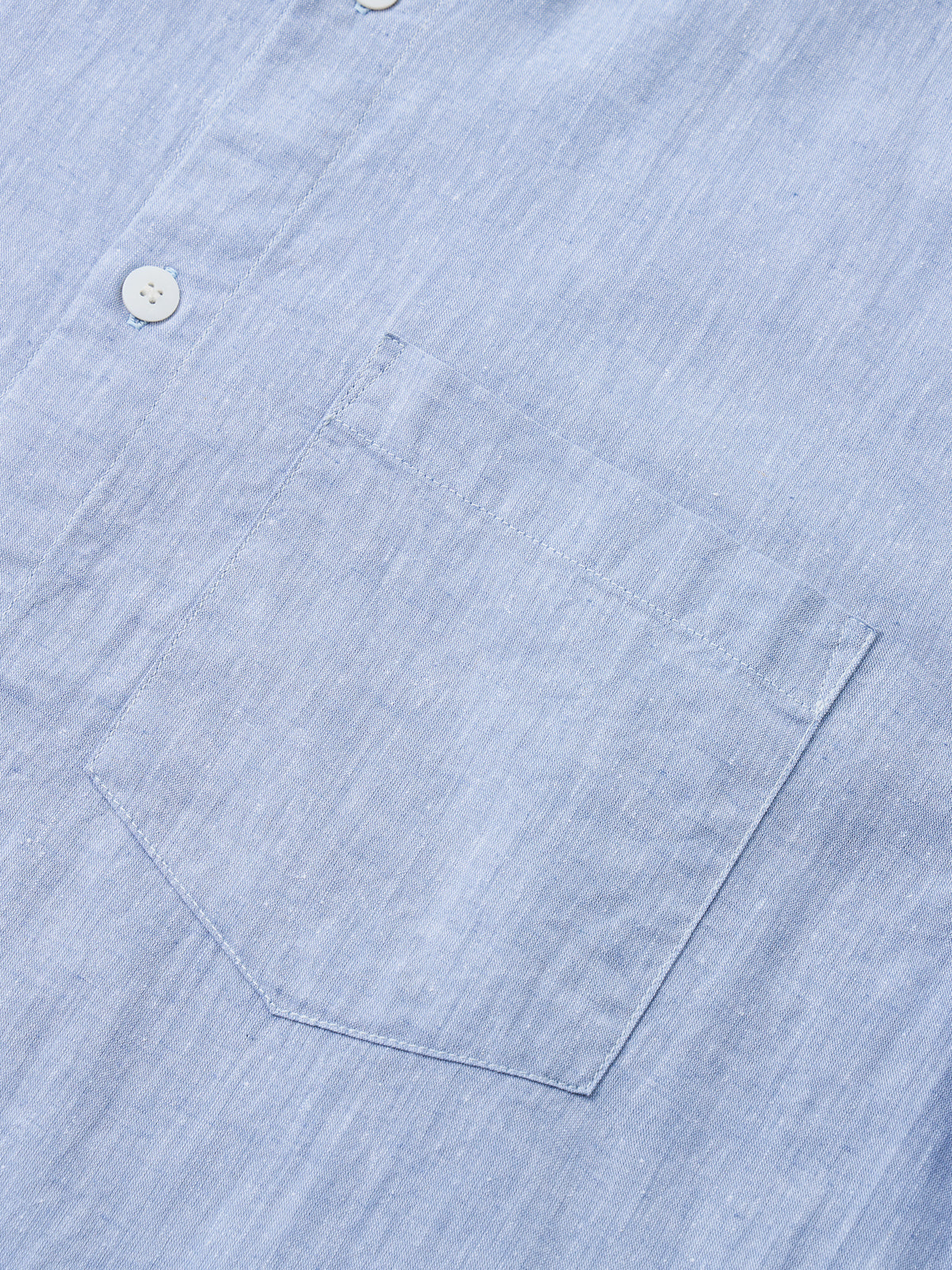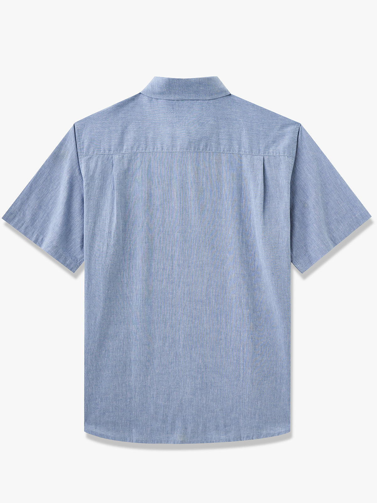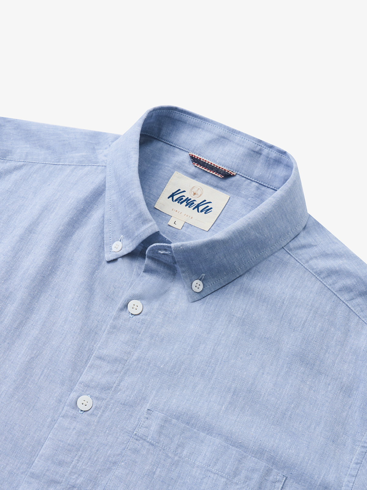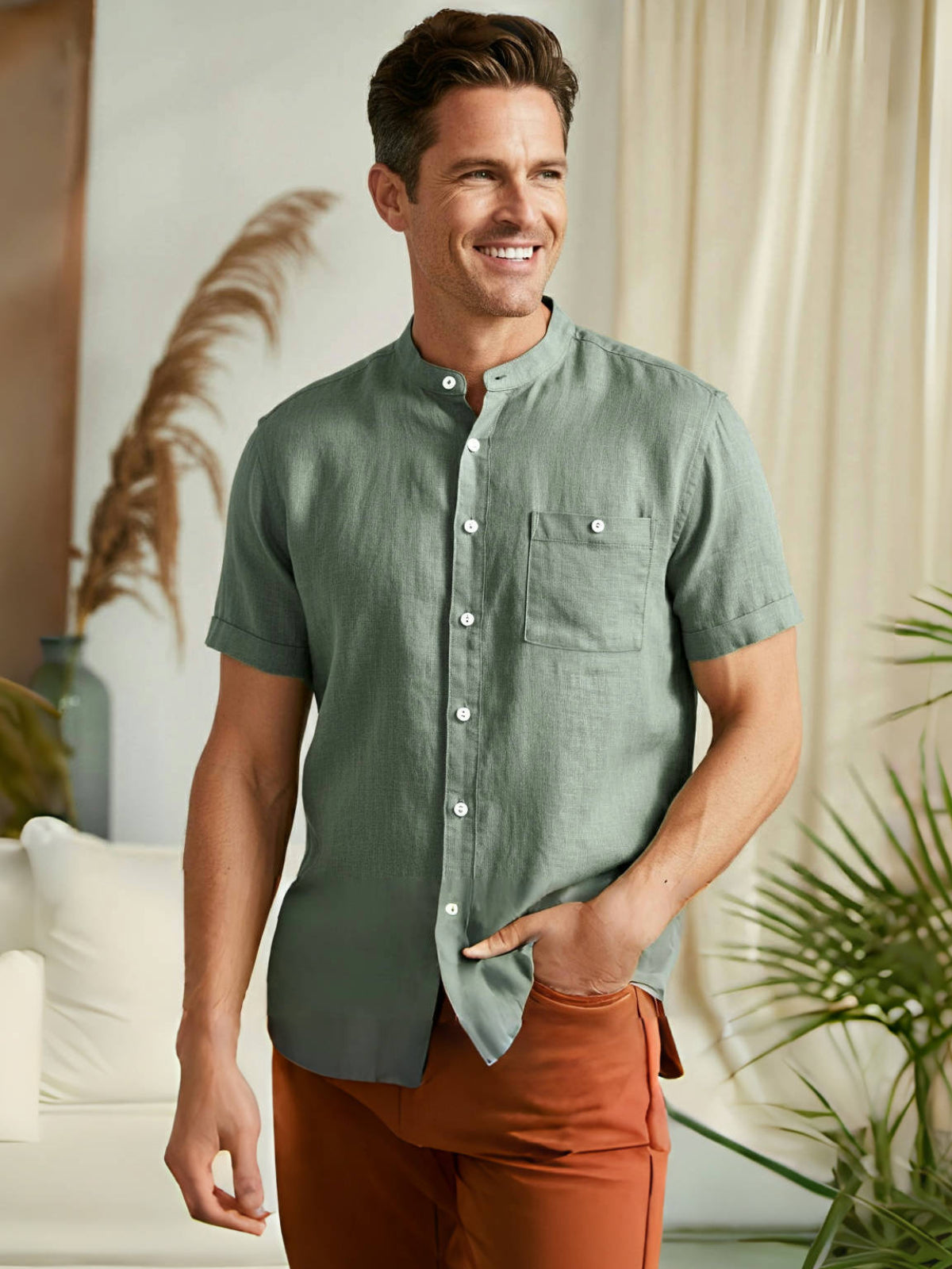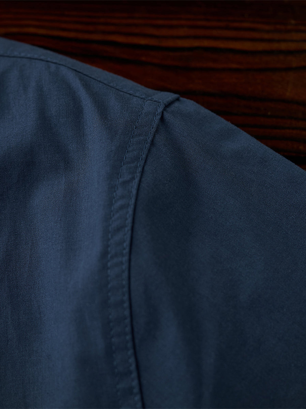 Refined Blue Two-Piece Stand Collar Linen Shirt