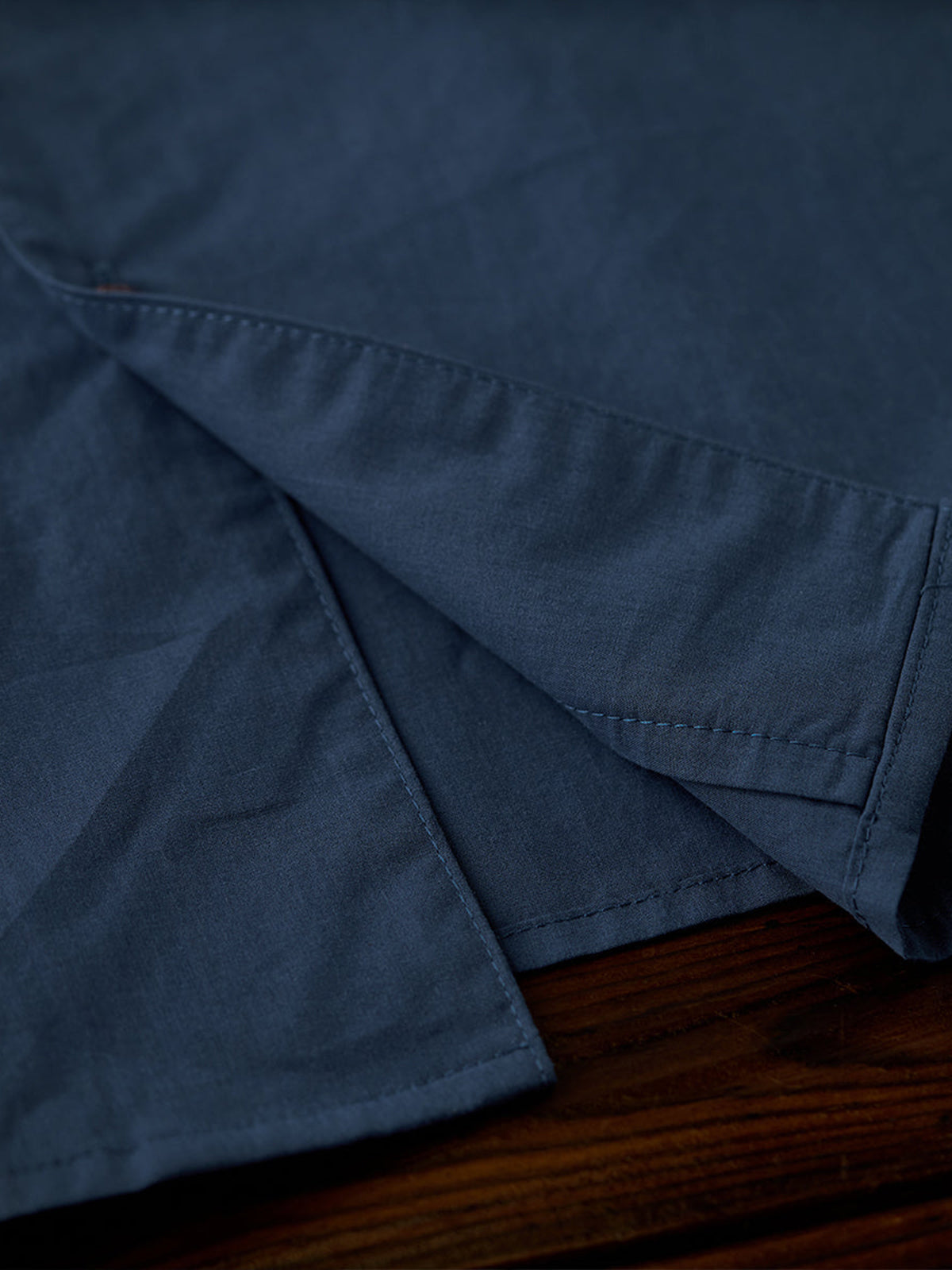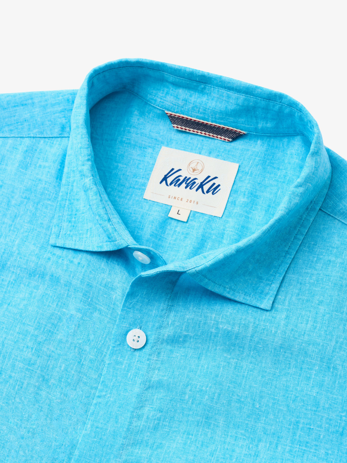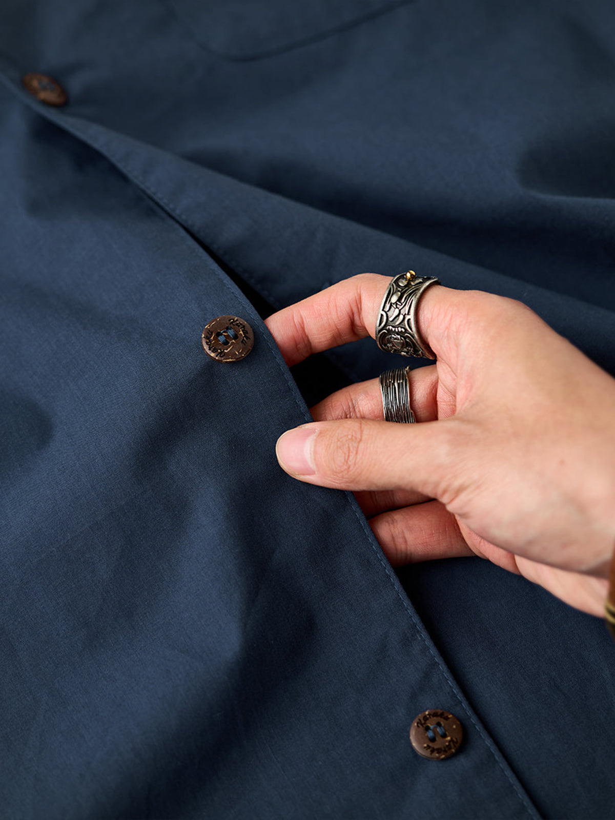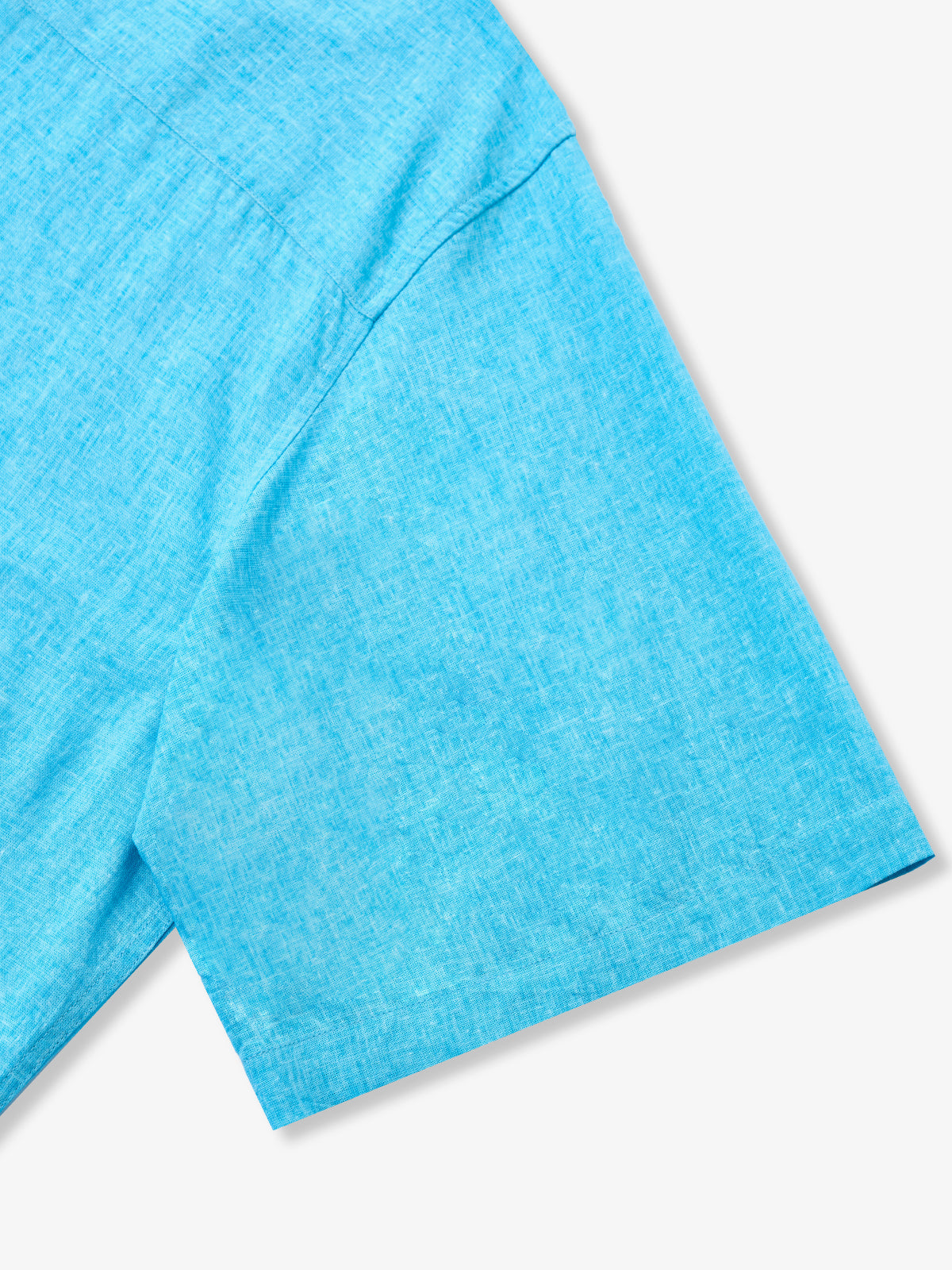 Refined Blue Two-Piece Stand Collar Linen Shirt