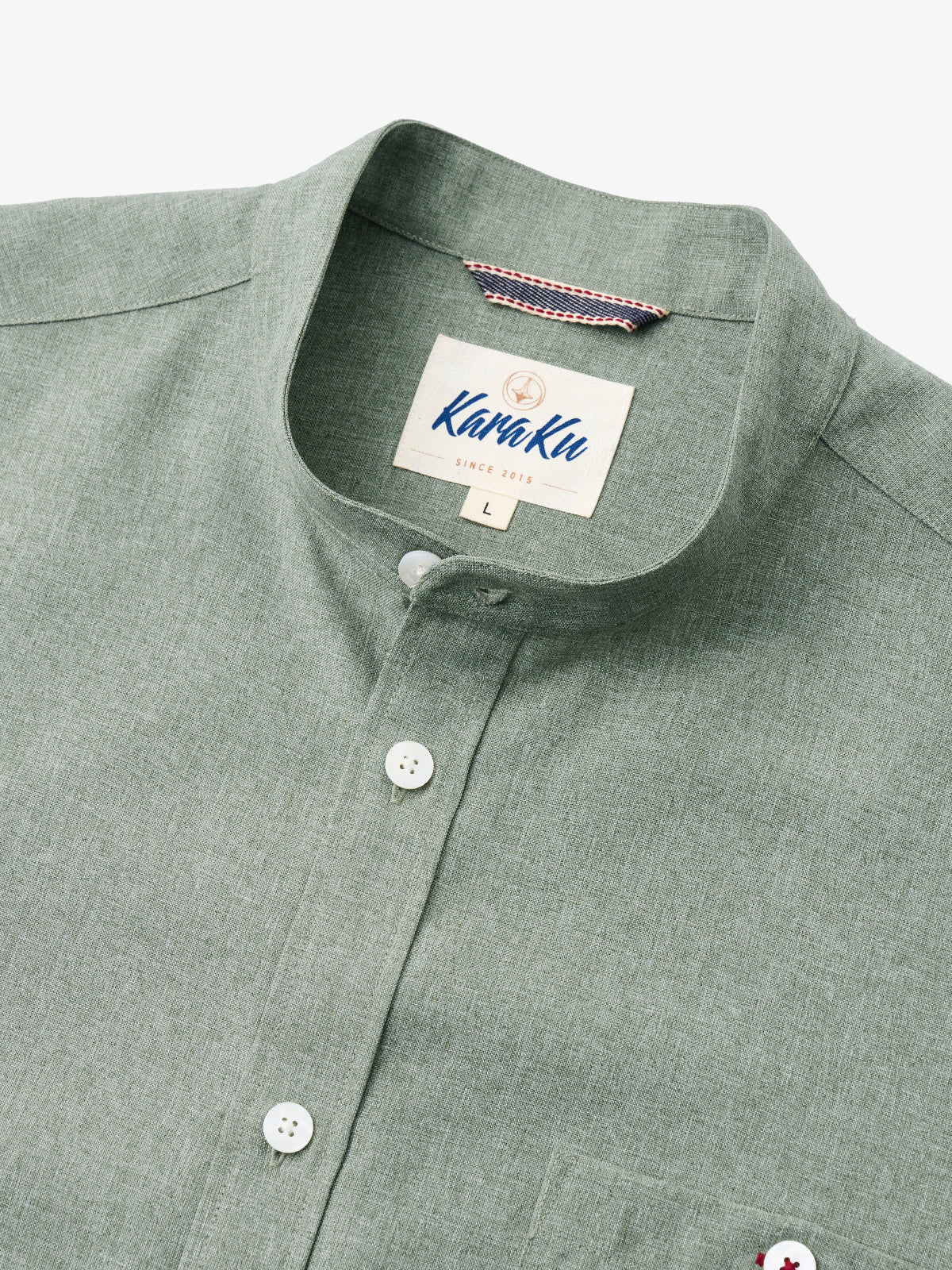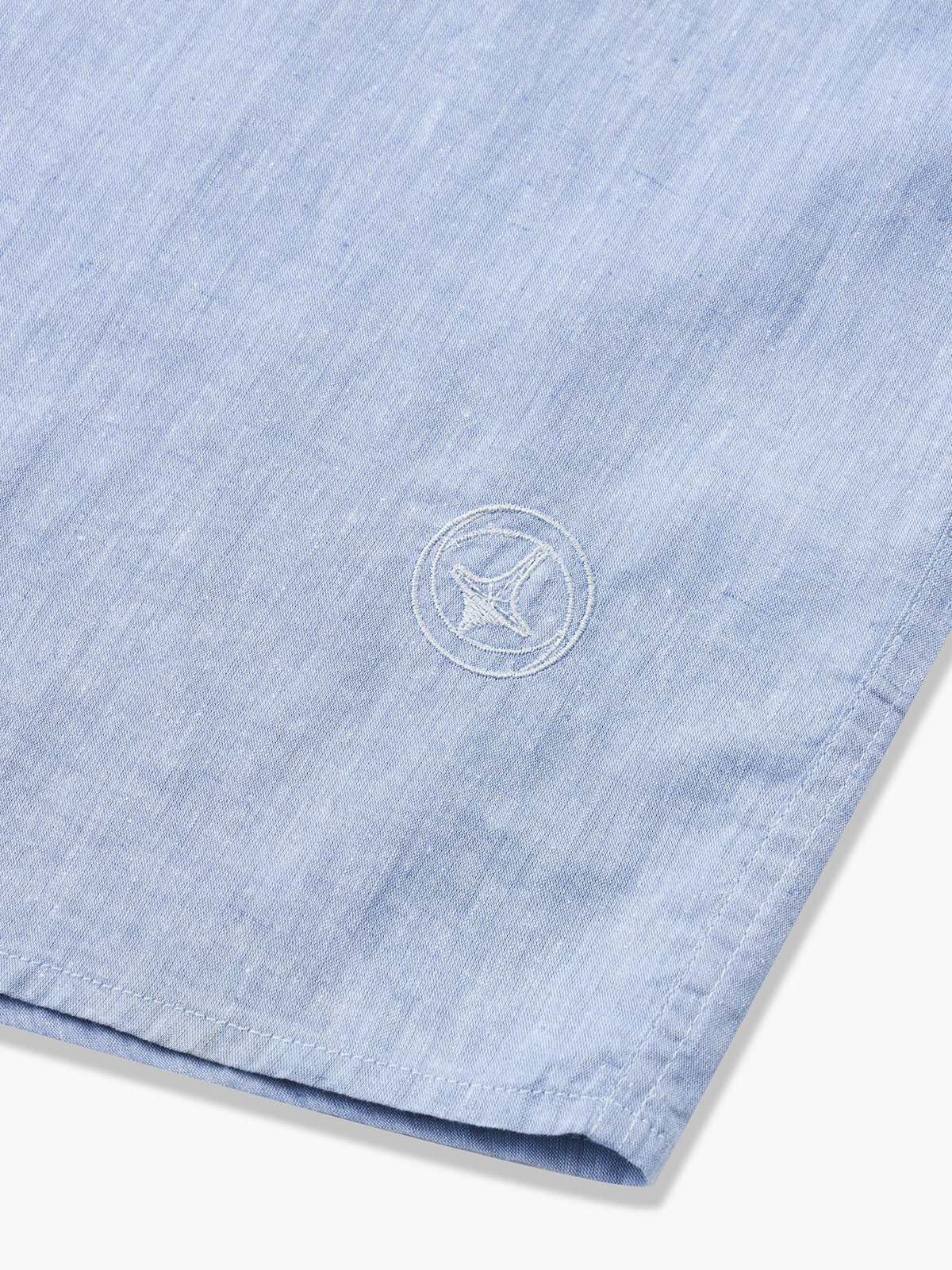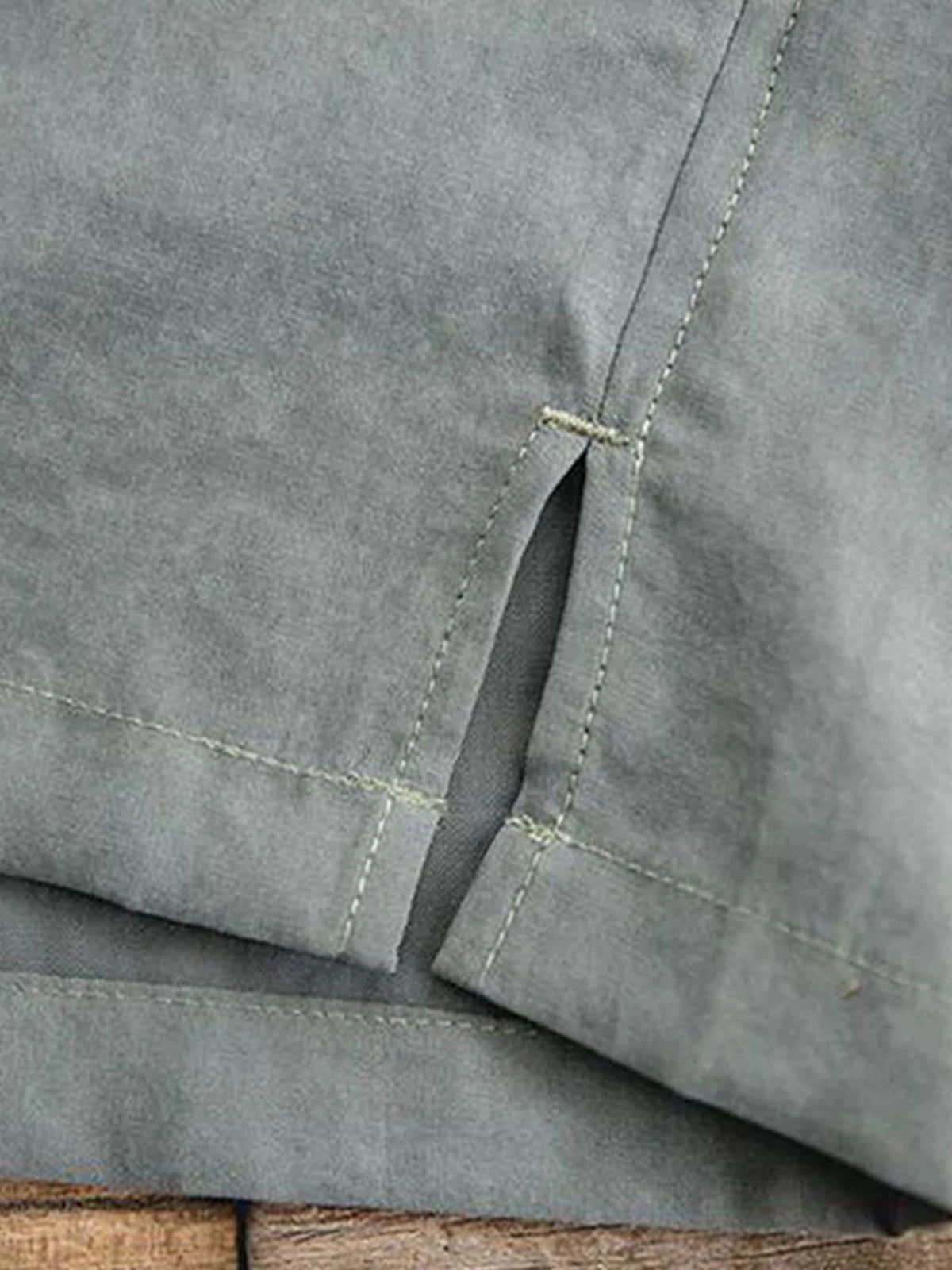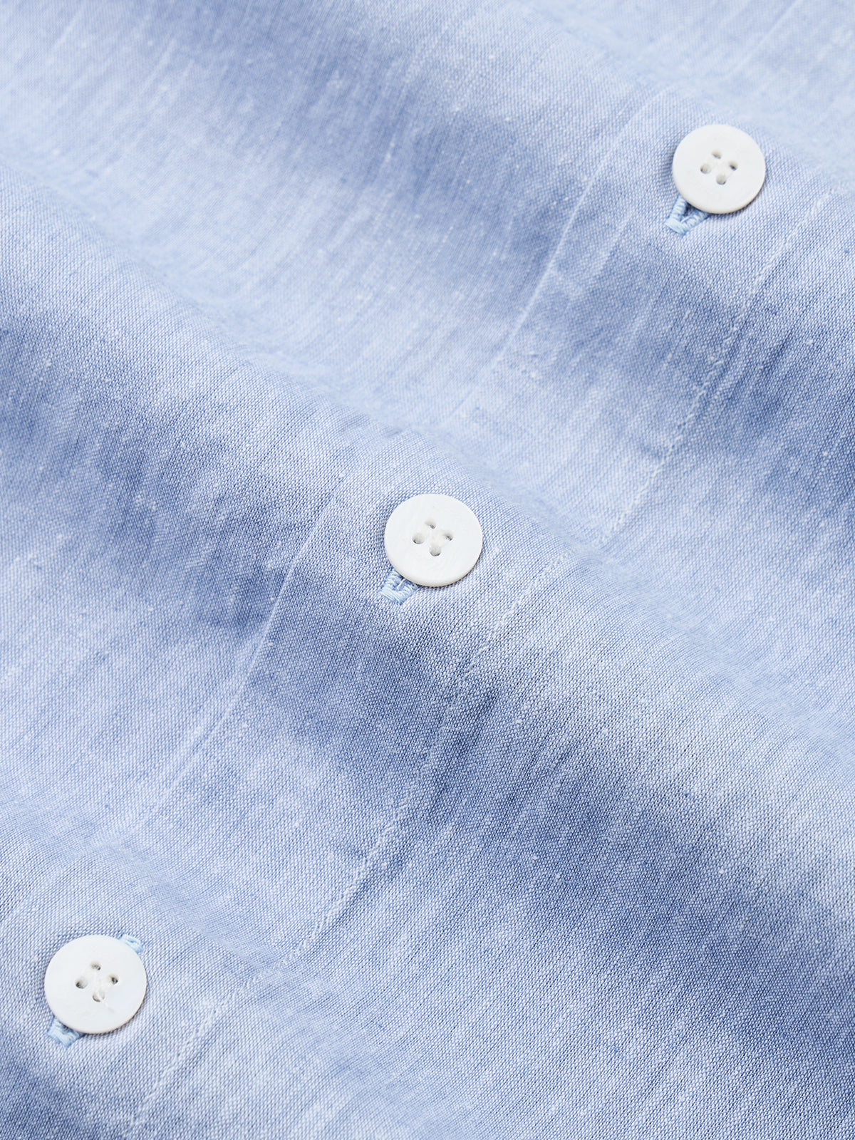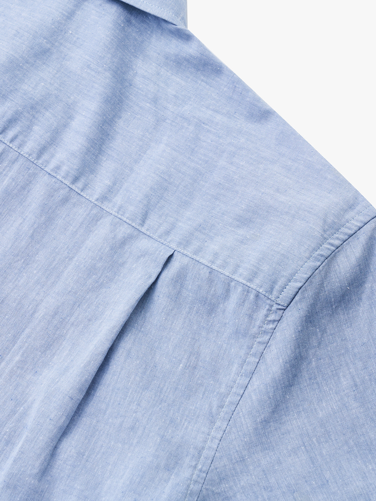 Refined Blue Two-Piece Stand Collar Linen Shirt