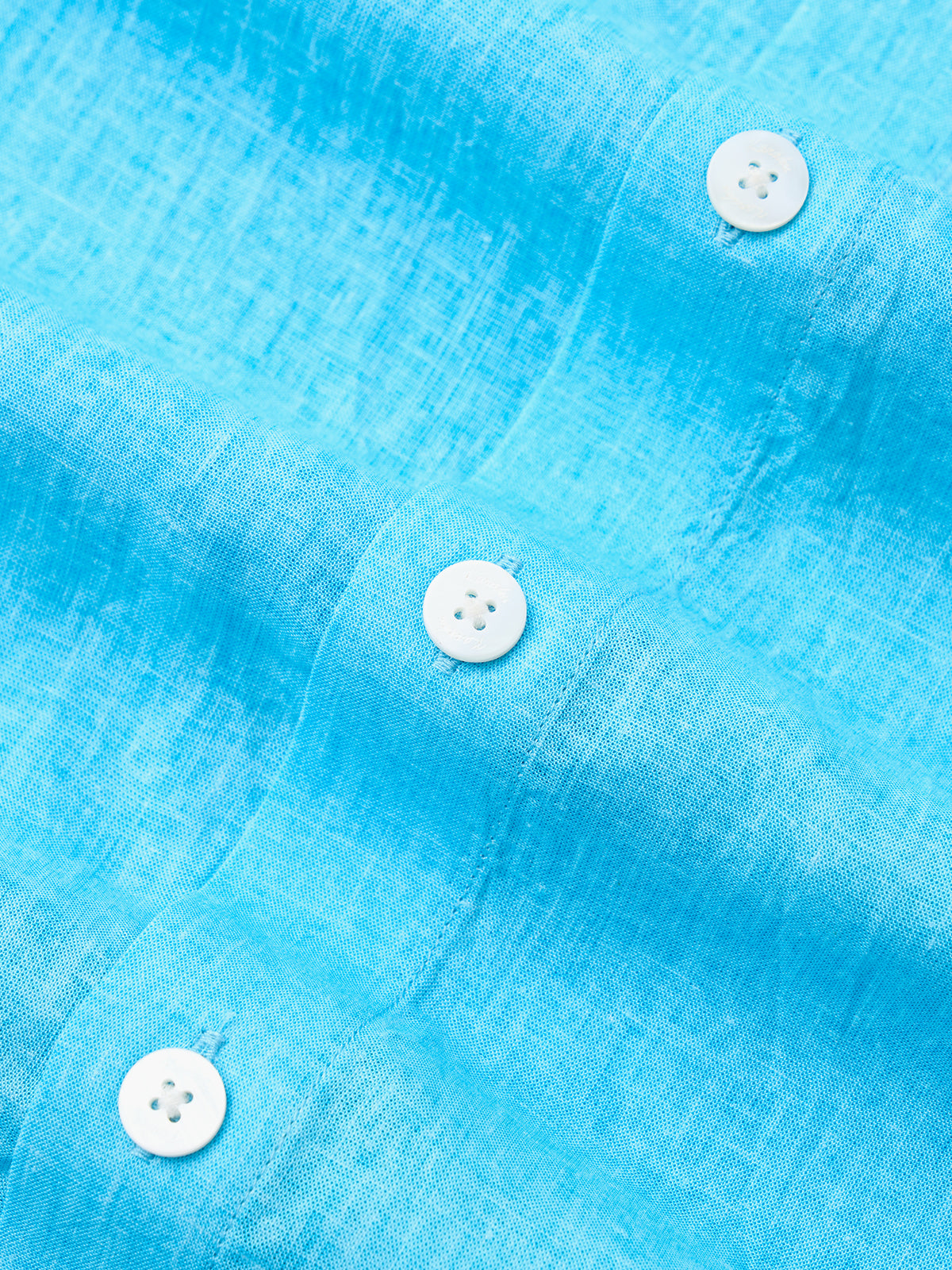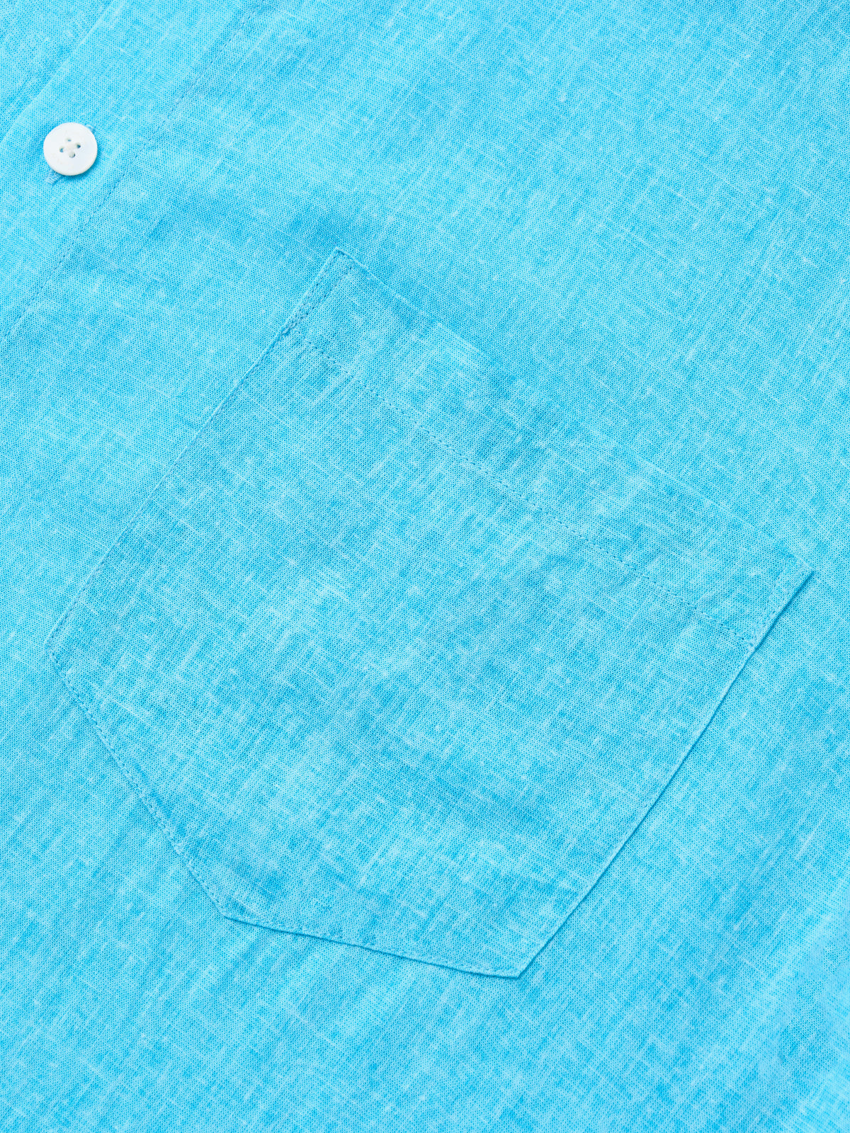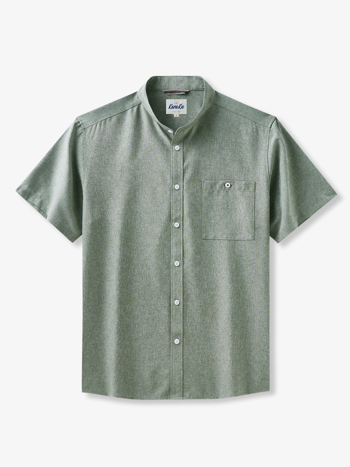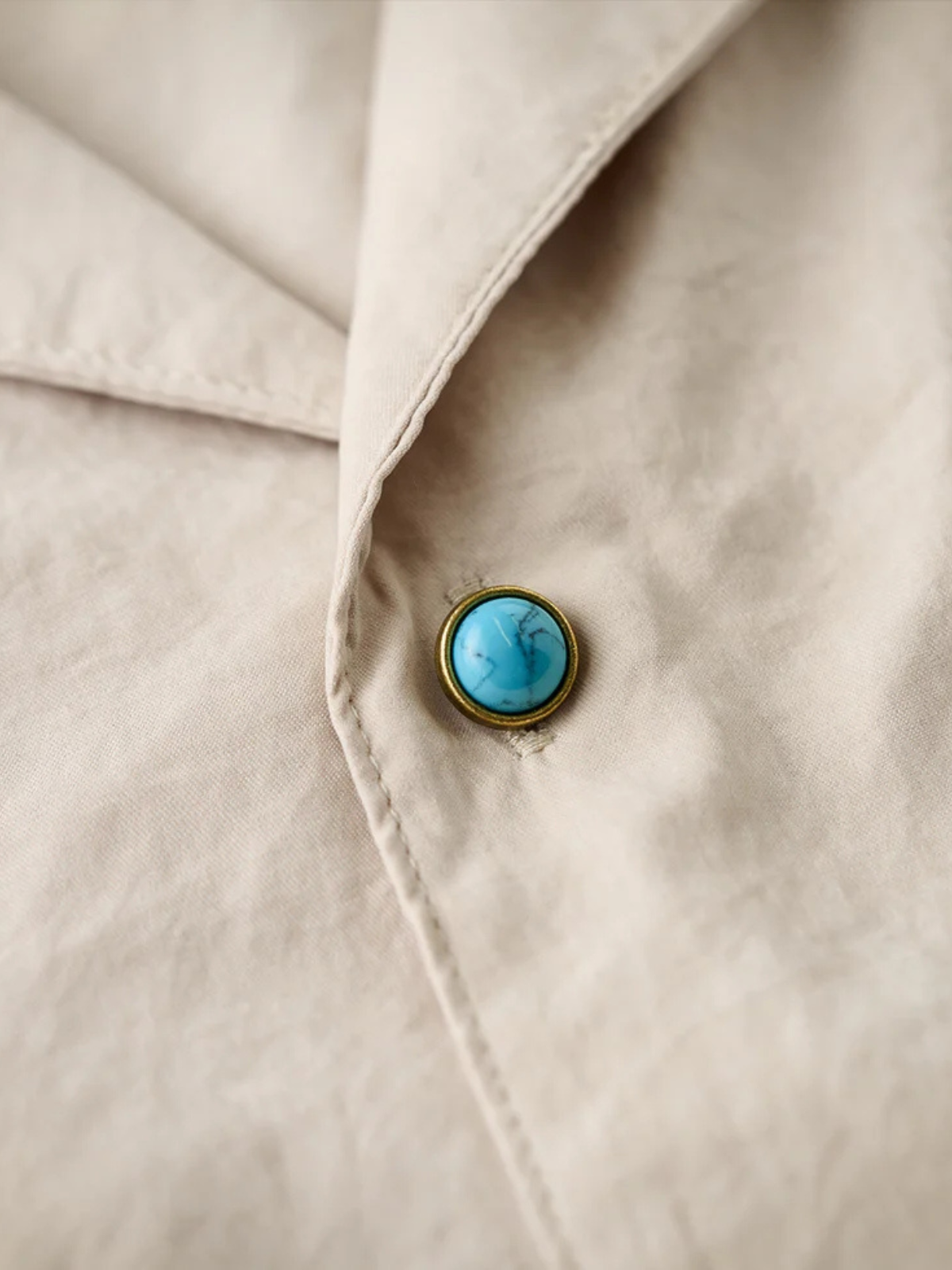Refined Blue Two-Piece Stand Collar Linen Shirt