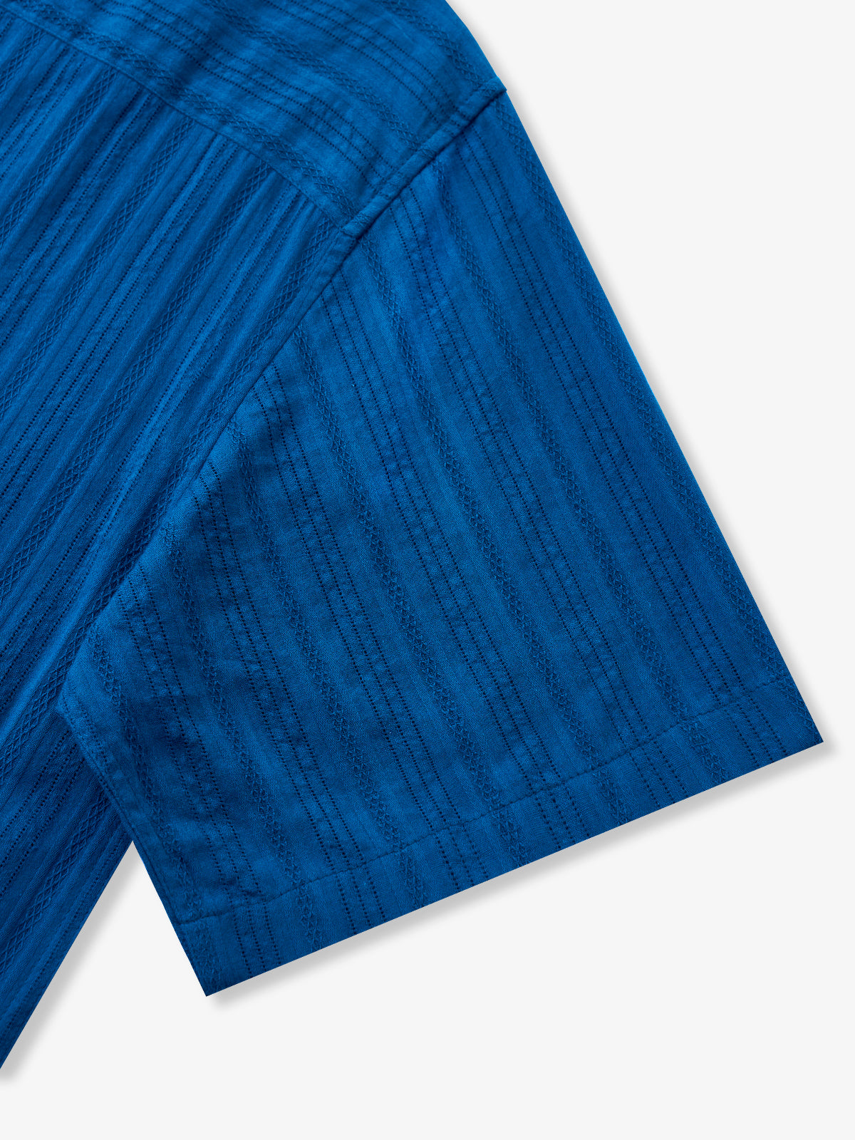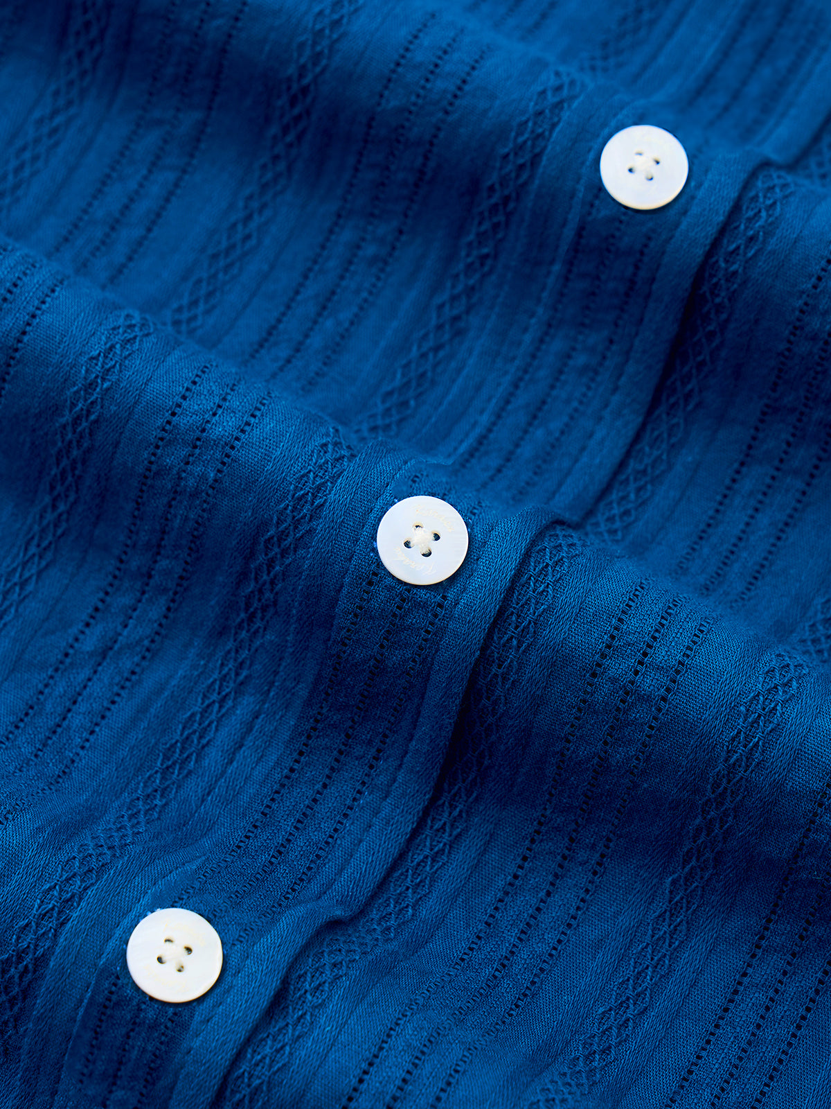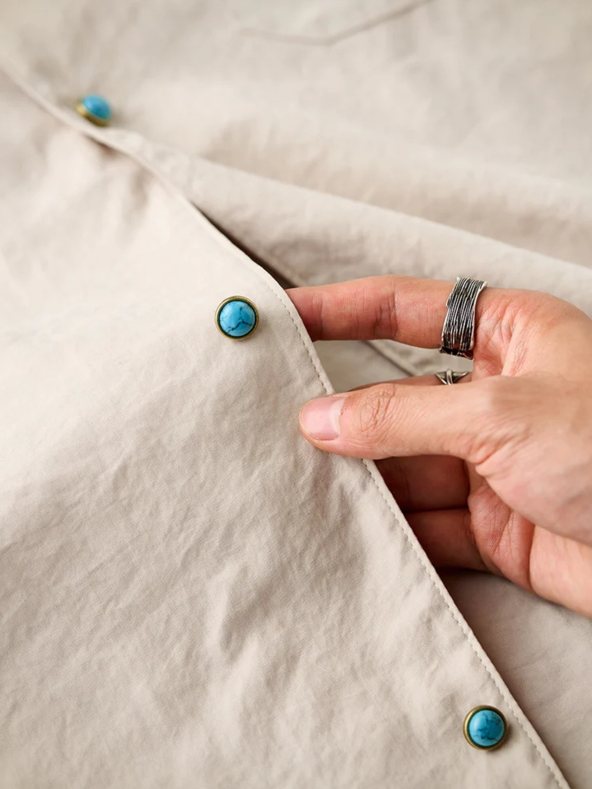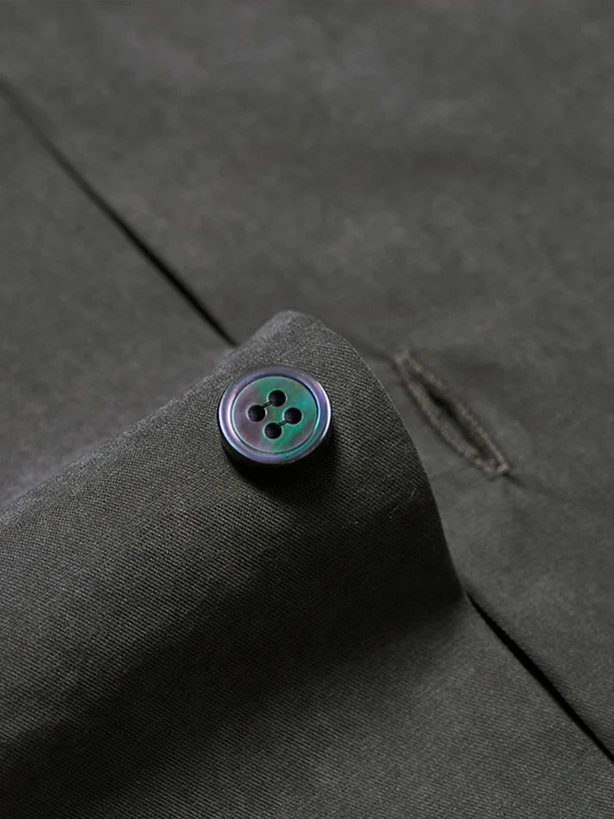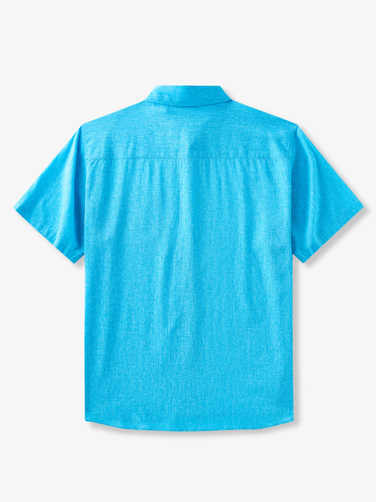Refined Blue Two-Piece Stand Collar Linen Shirt