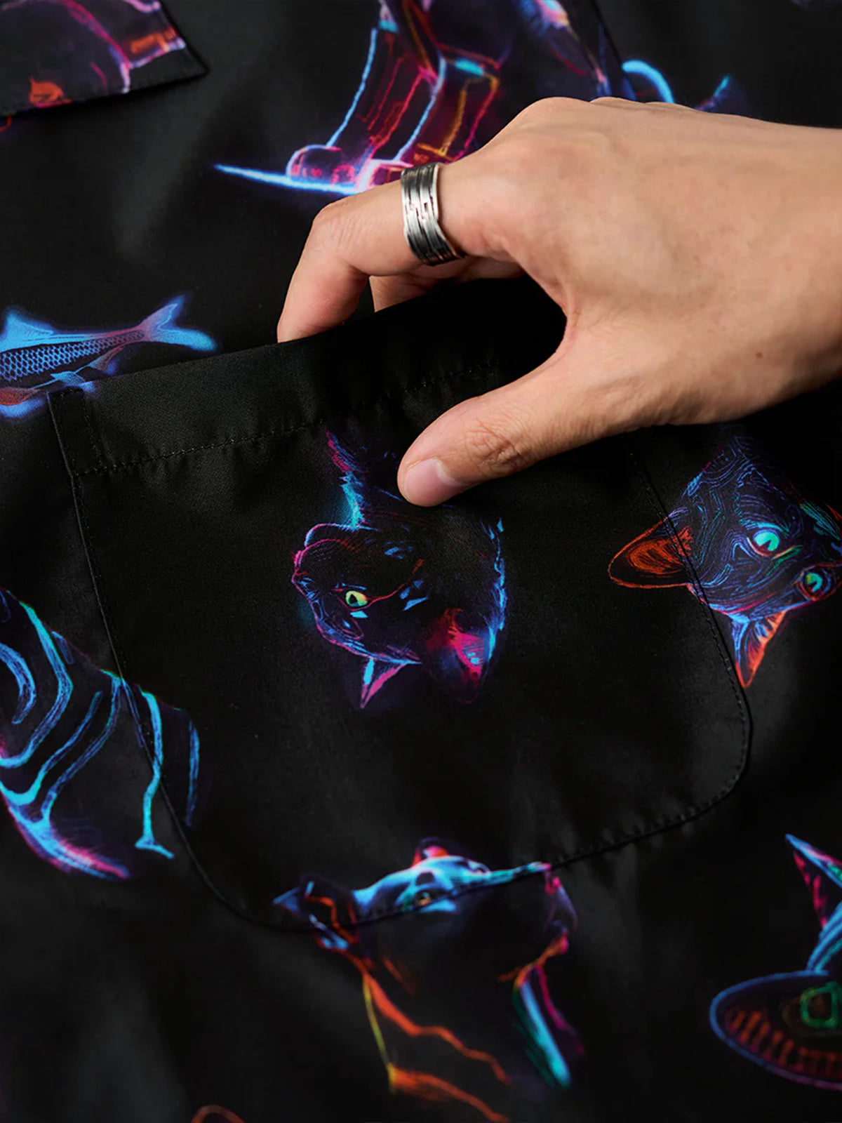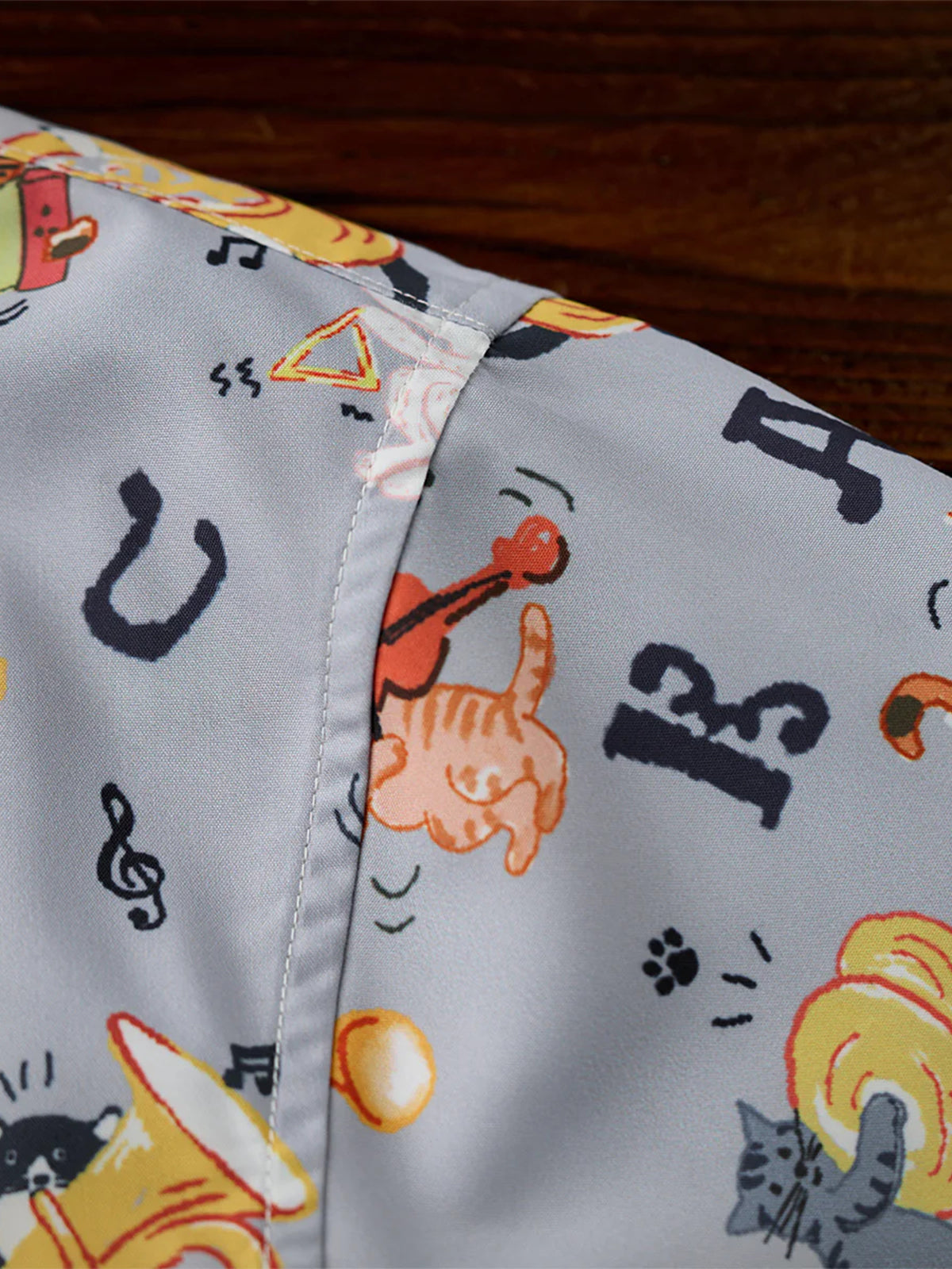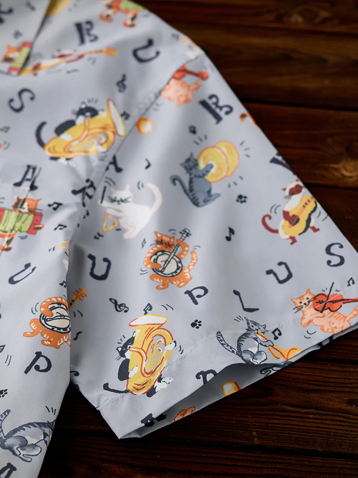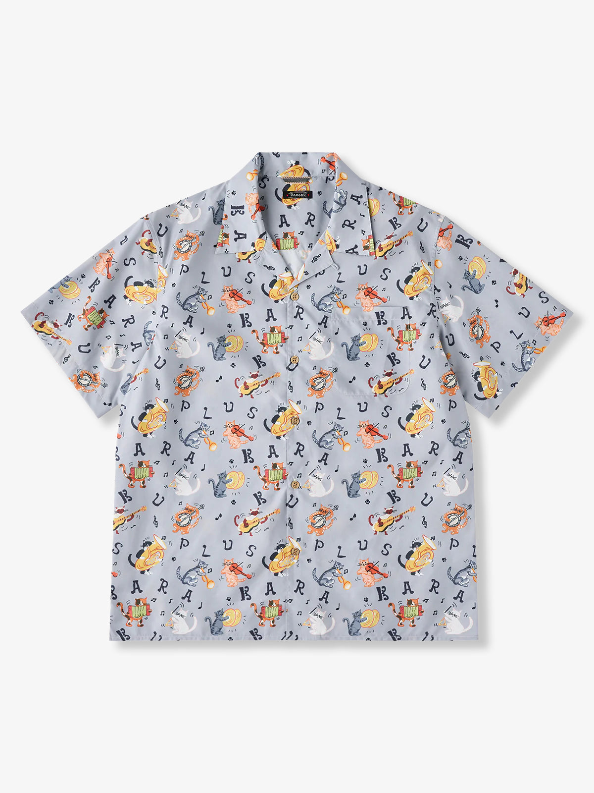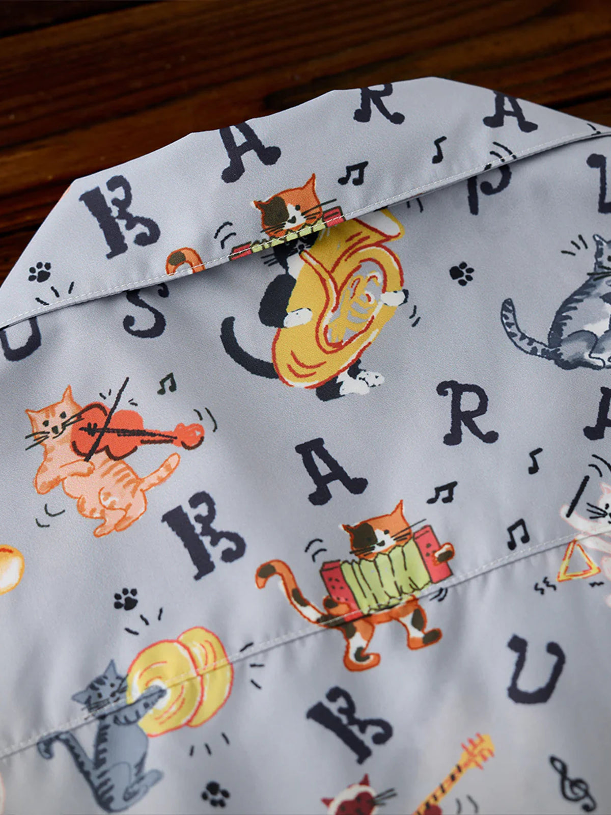 "Cat's Fantasy Universe" Asymmetric Print Open Collar Aloha Shirt