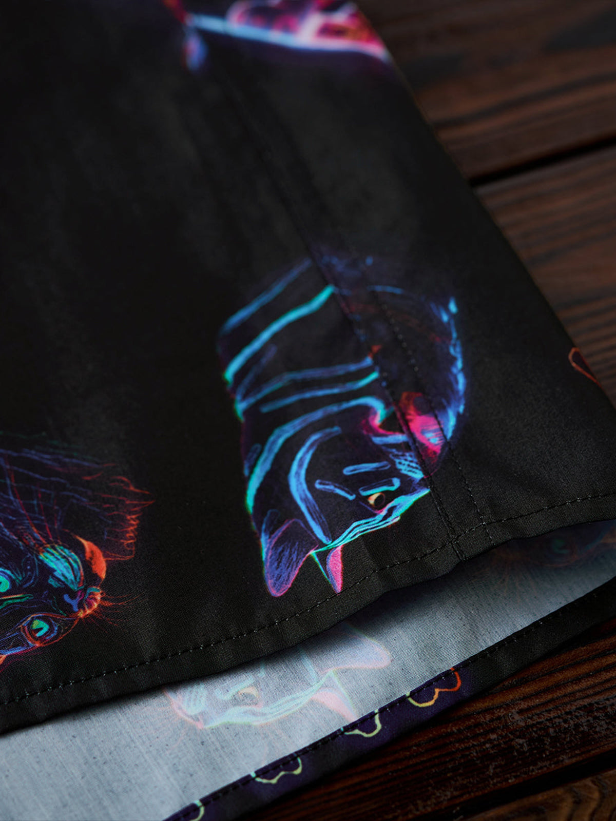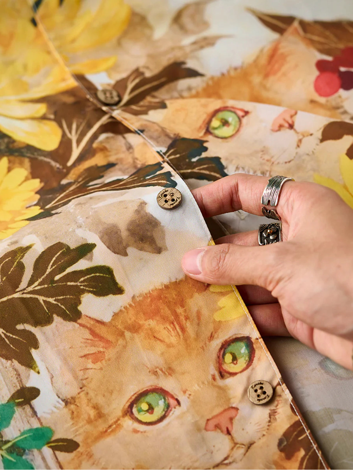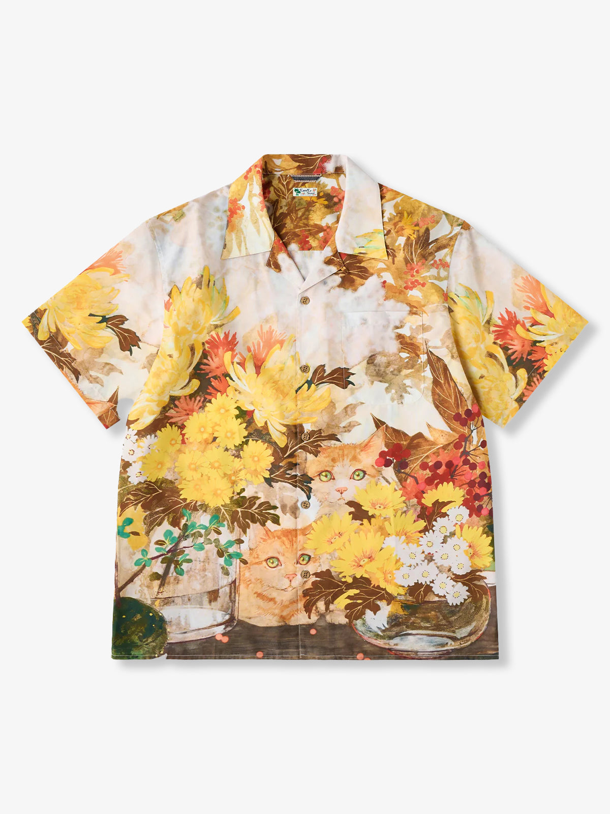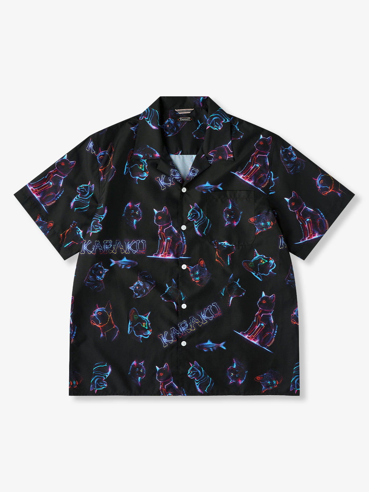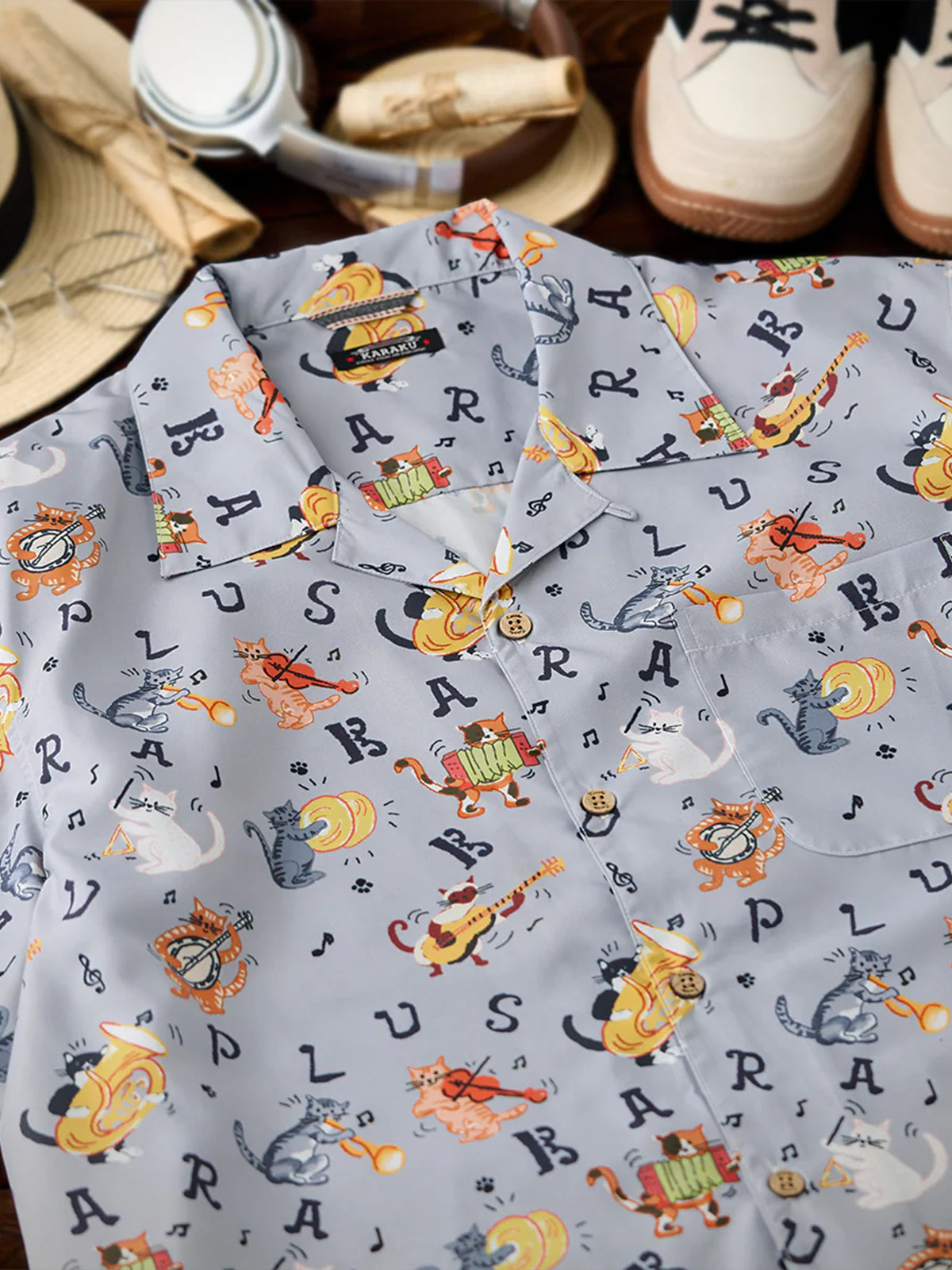 "Cat's Fantasy Universe" Asymmetric Print Open Collar Aloha Shirt