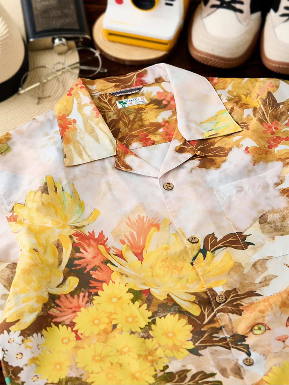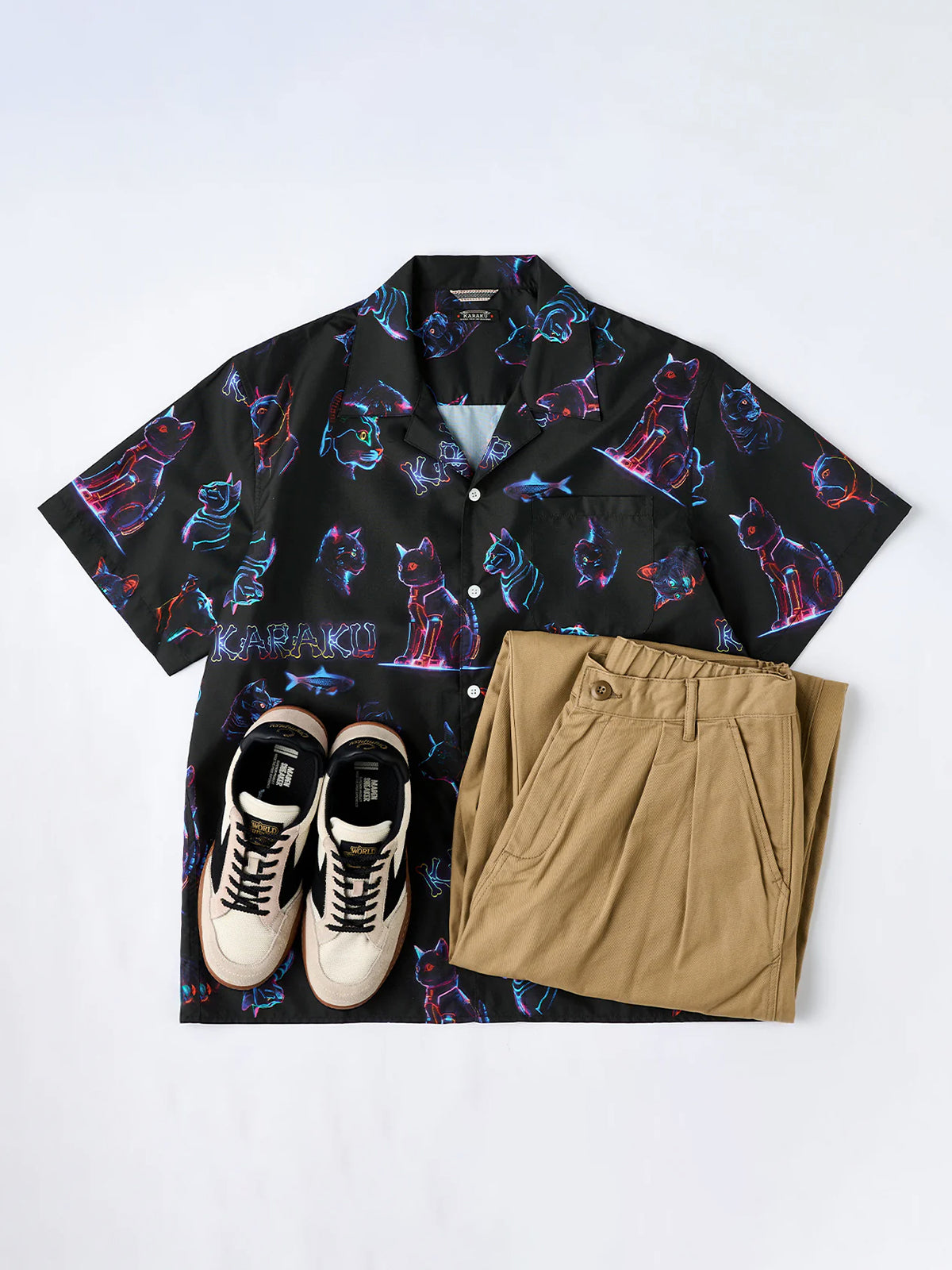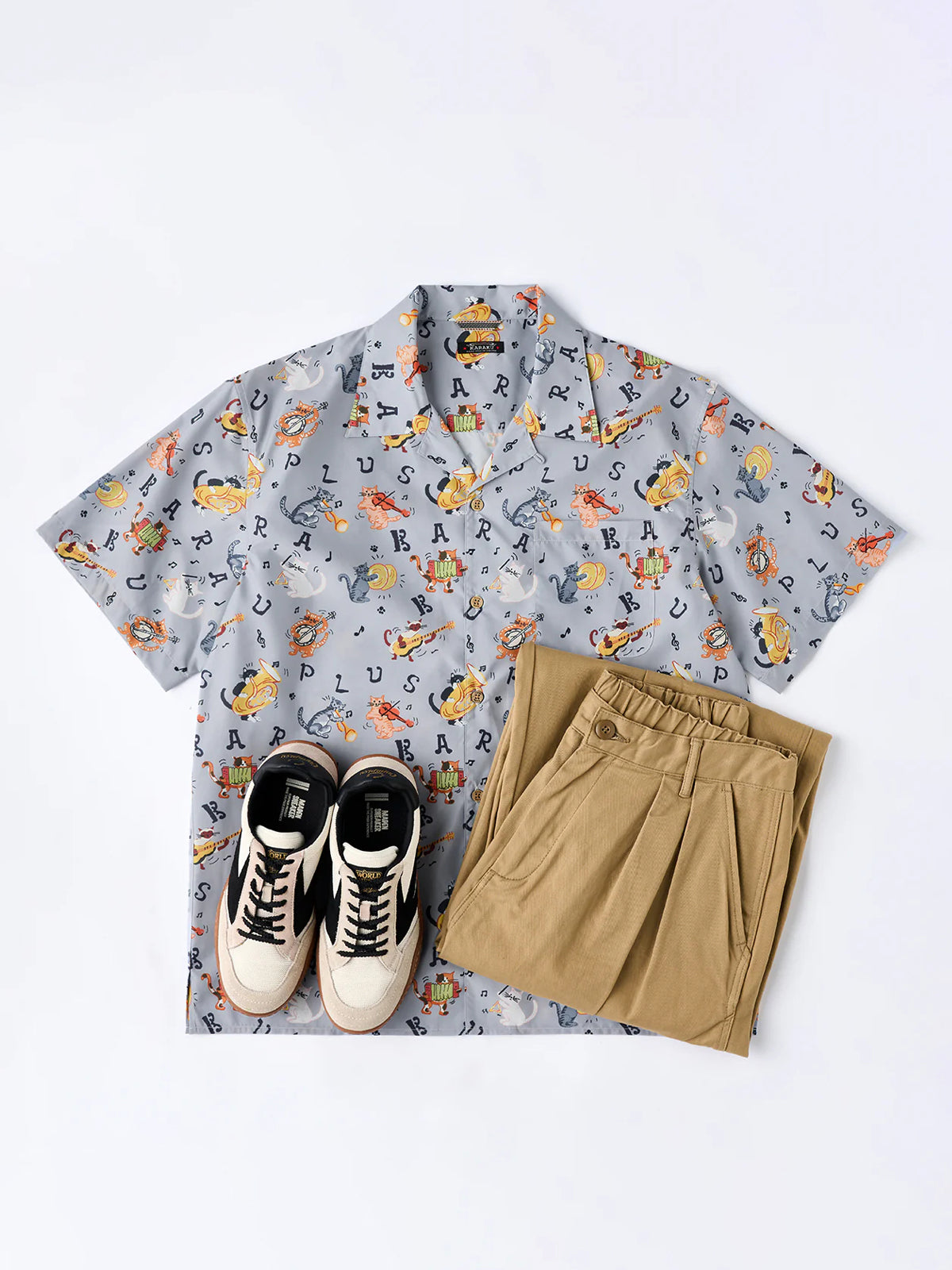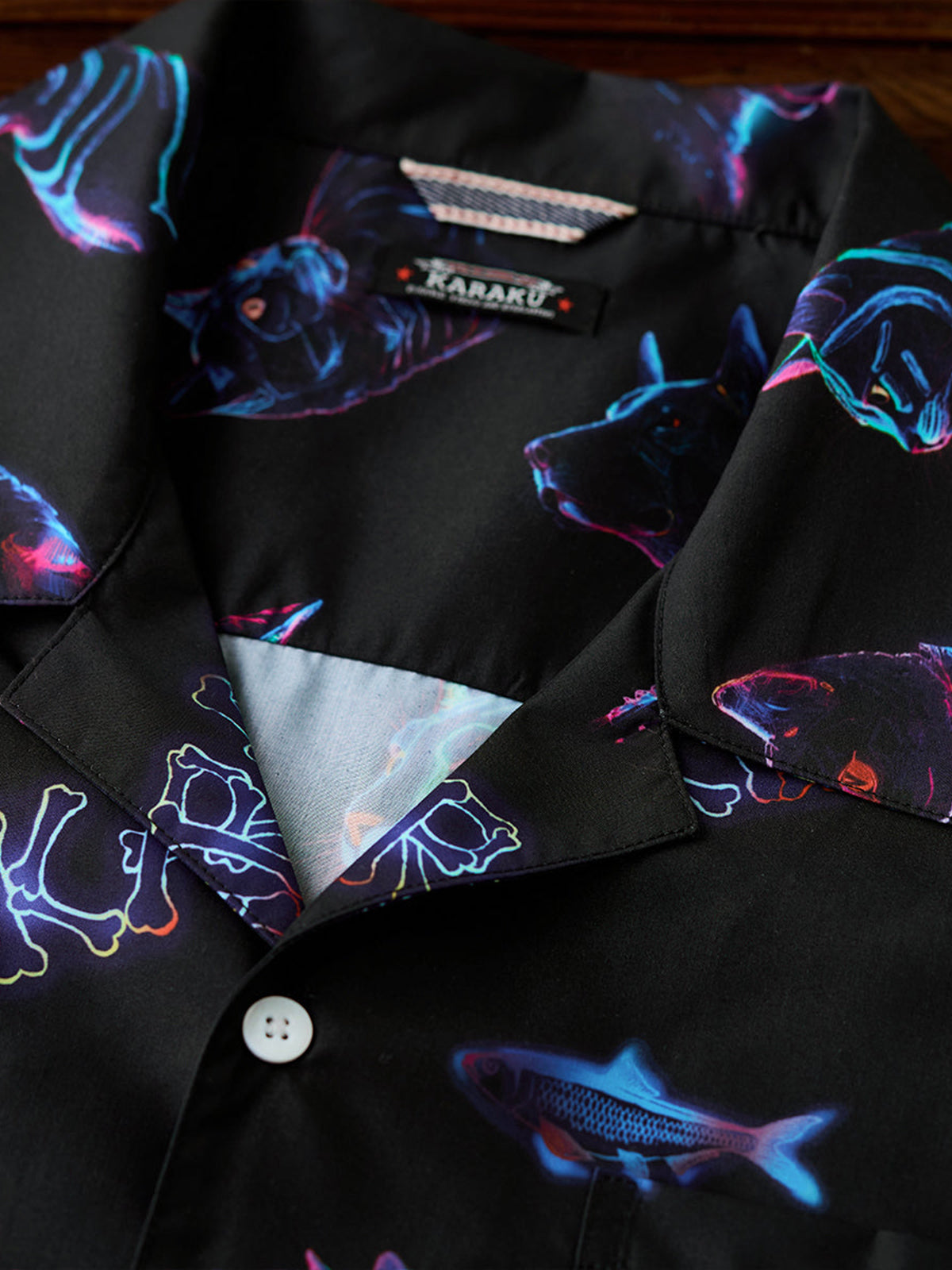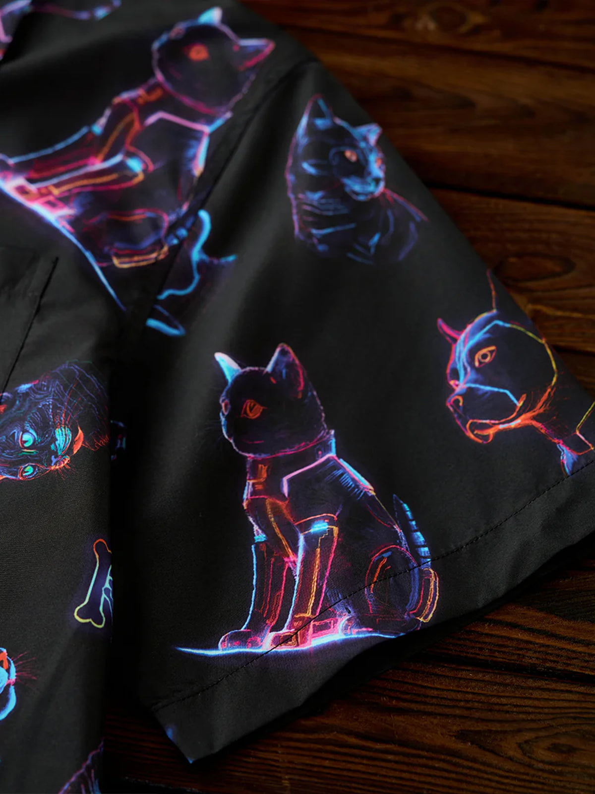 "Cat's Fantasy Universe" Asymmetric Print Open Collar Aloha Shirt
