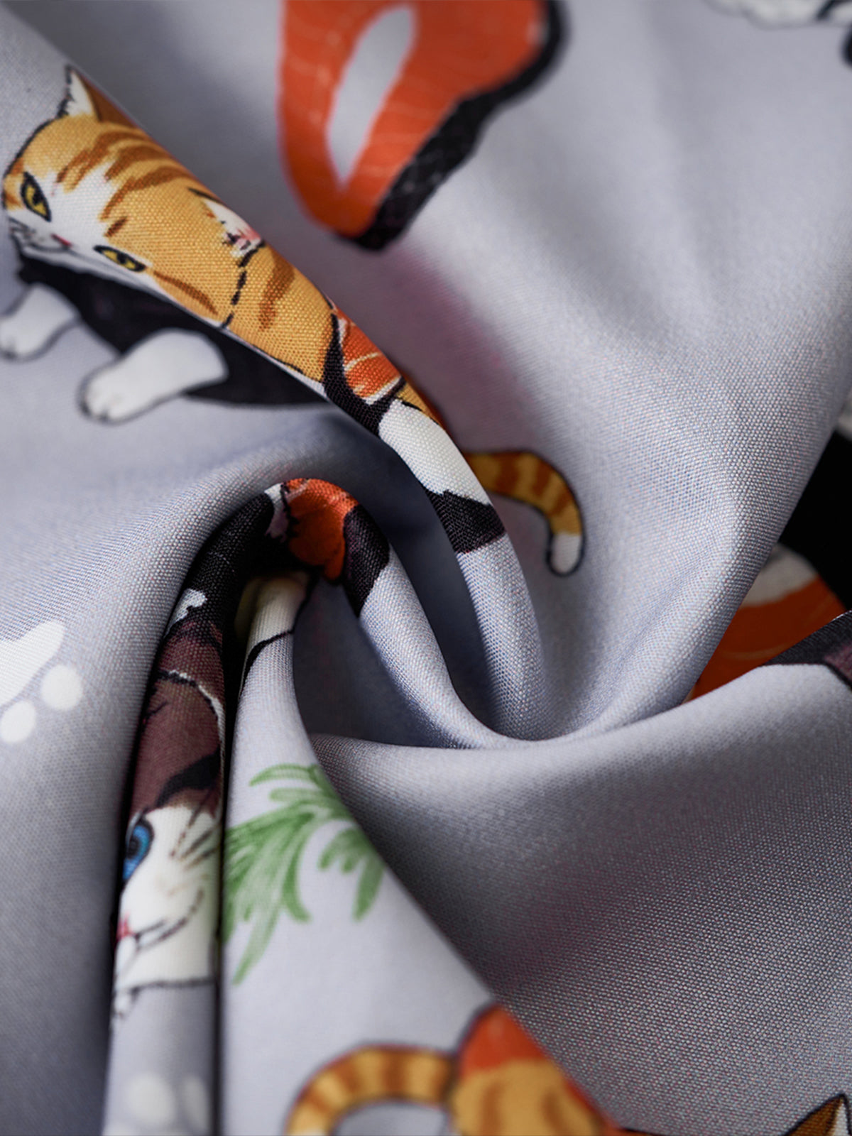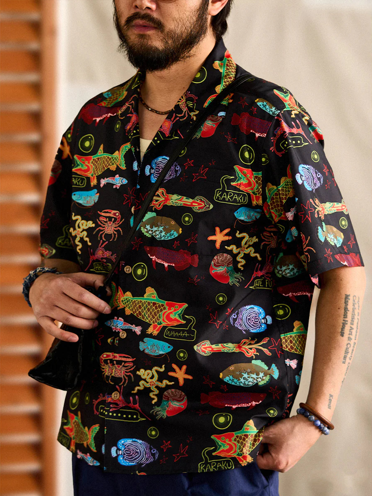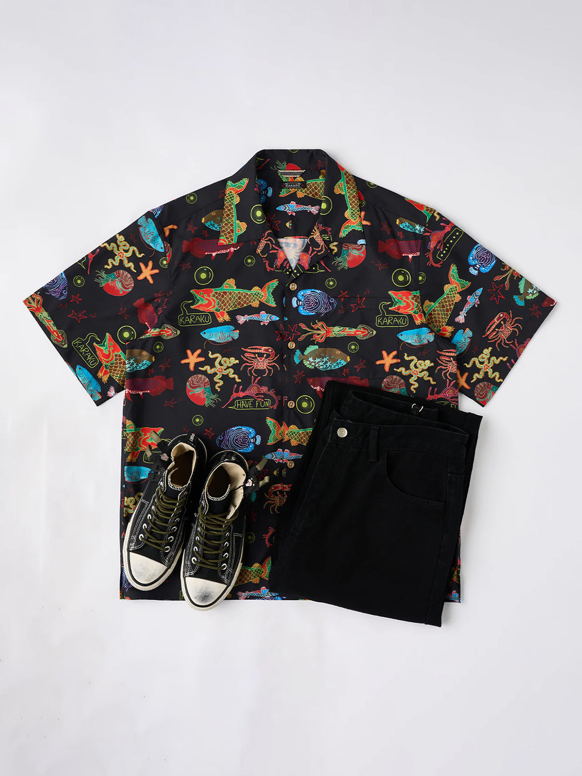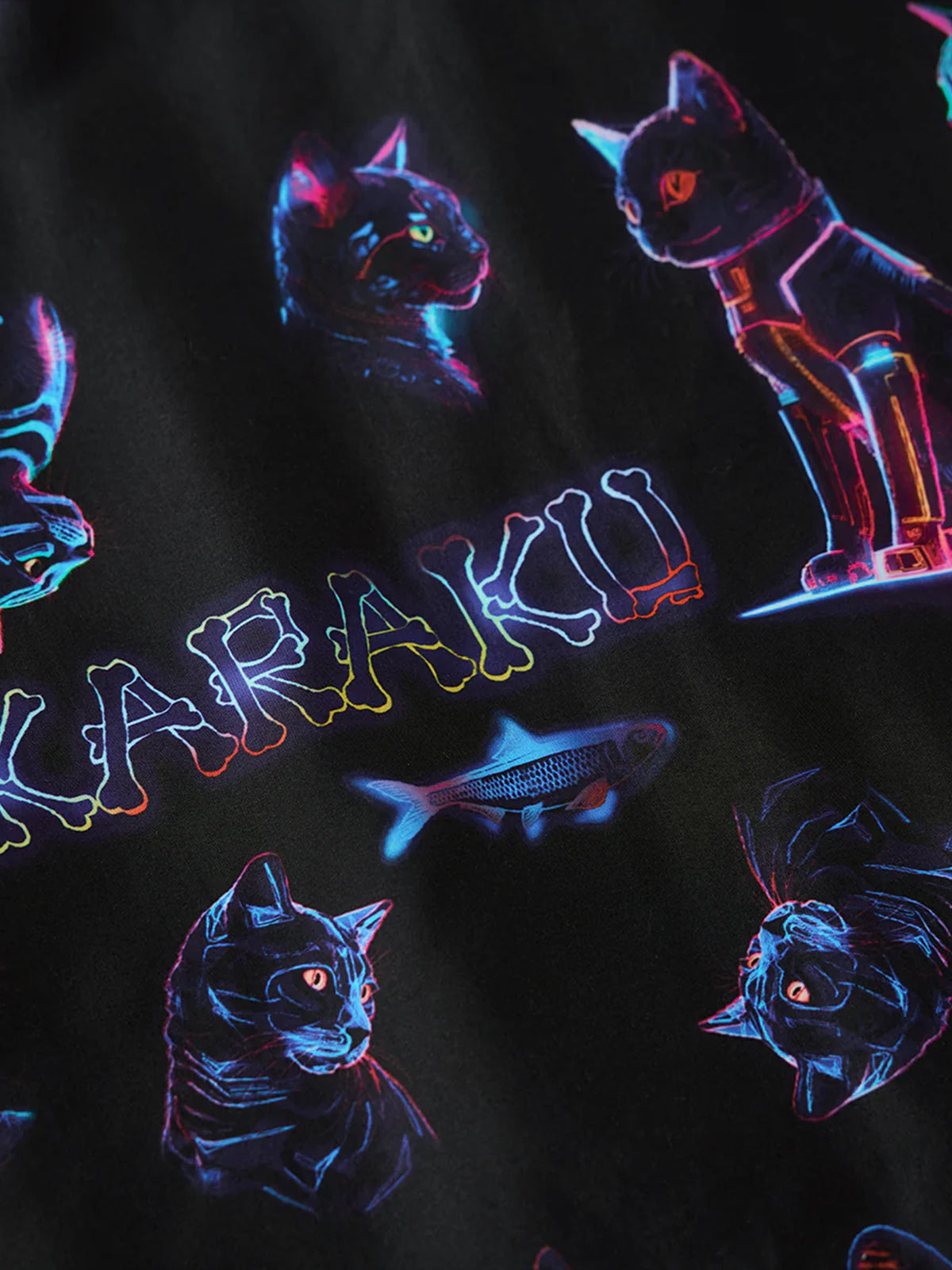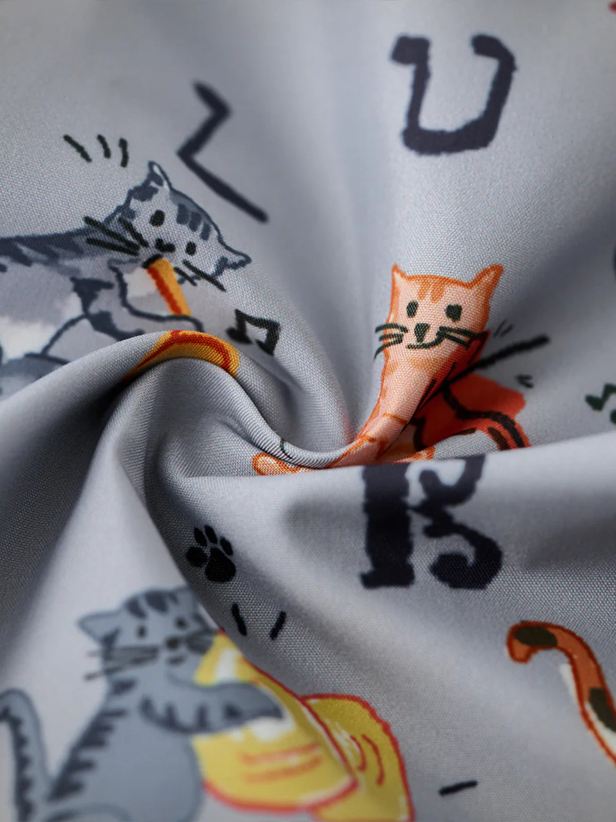 "Cat's Fantasy Universe" Asymmetric Print Open Collar Aloha Shirt