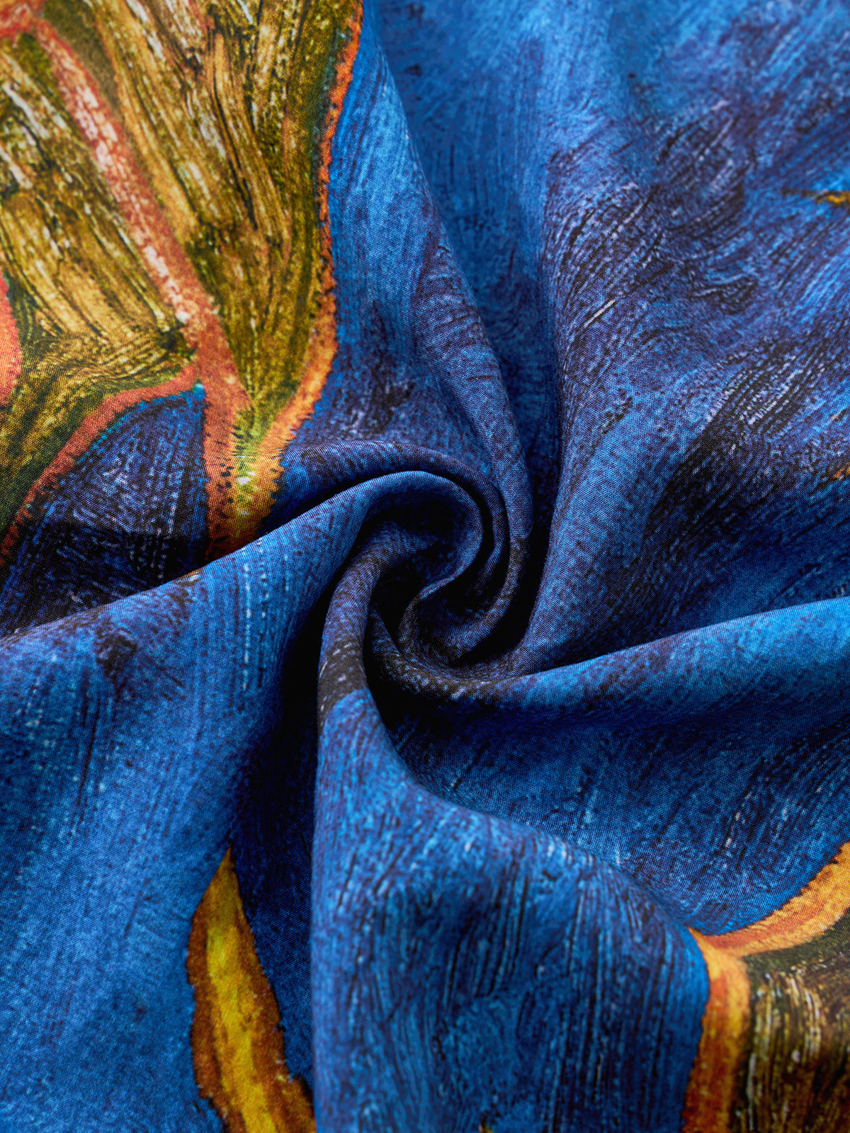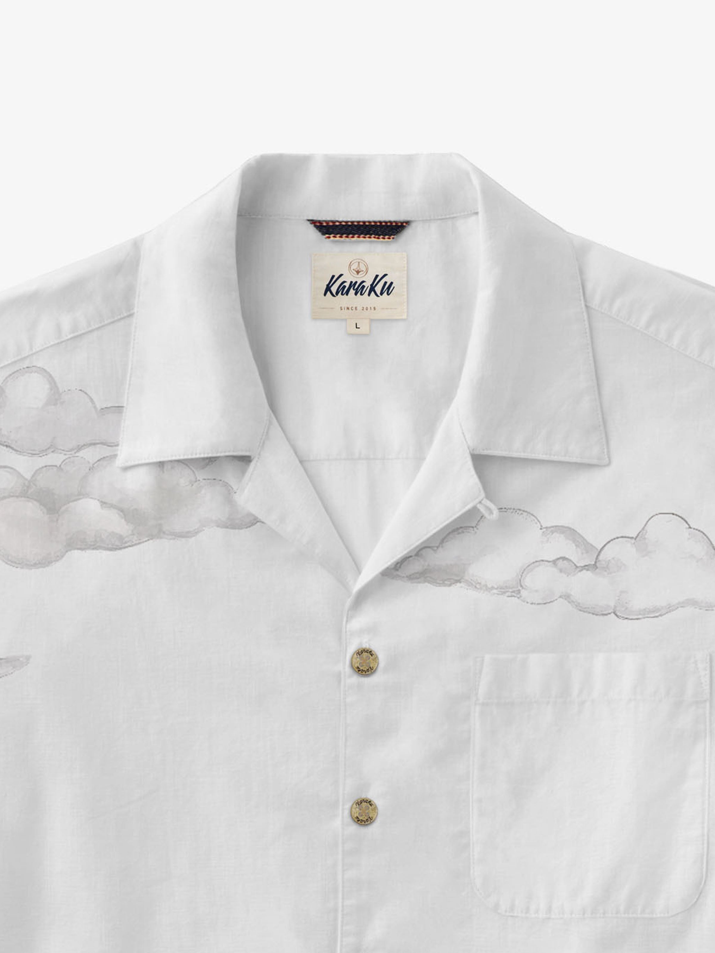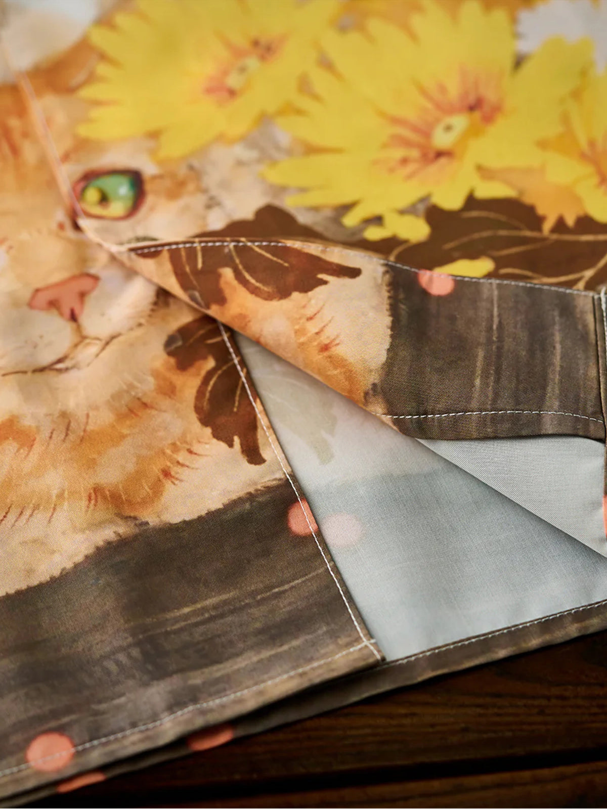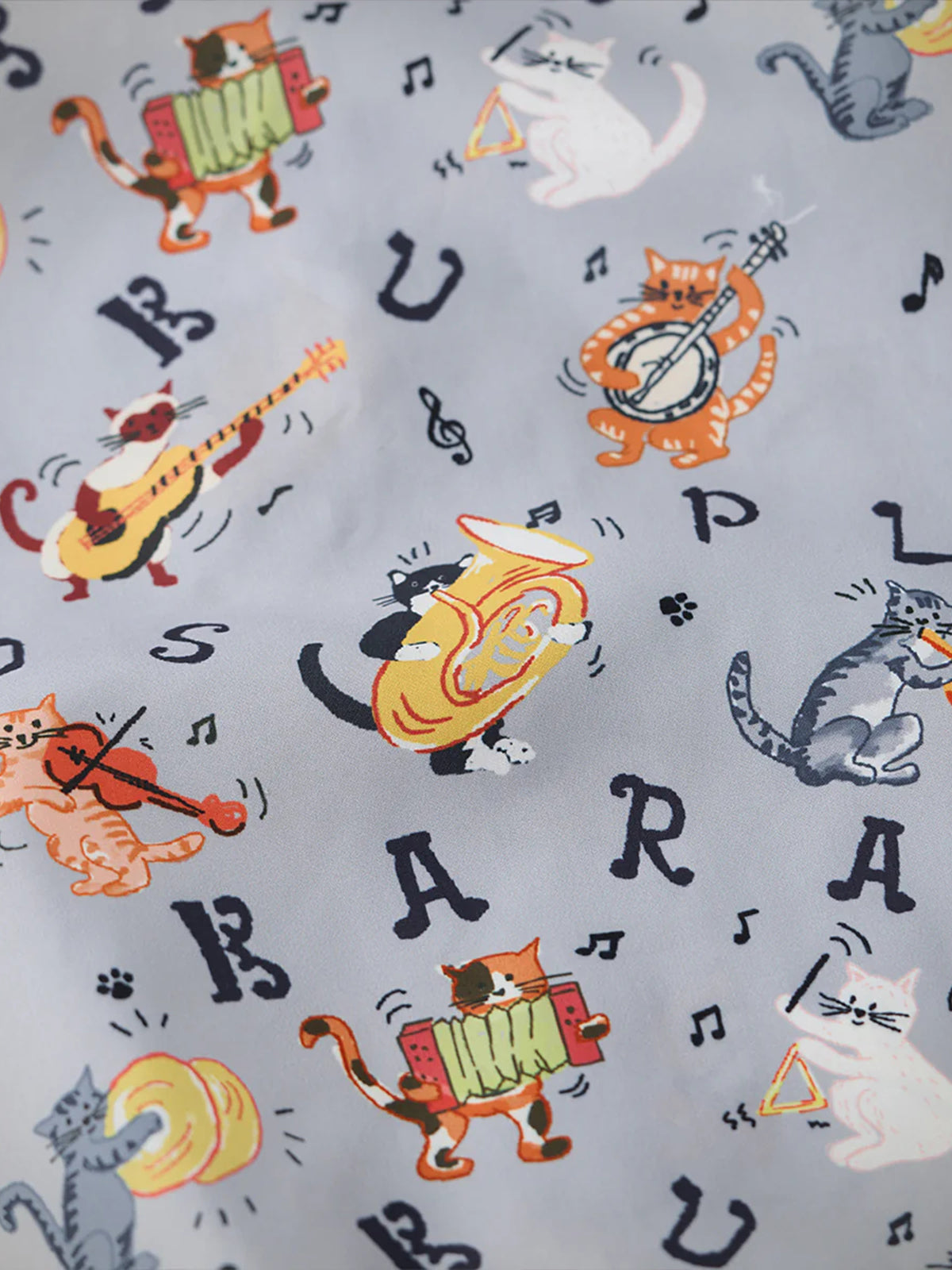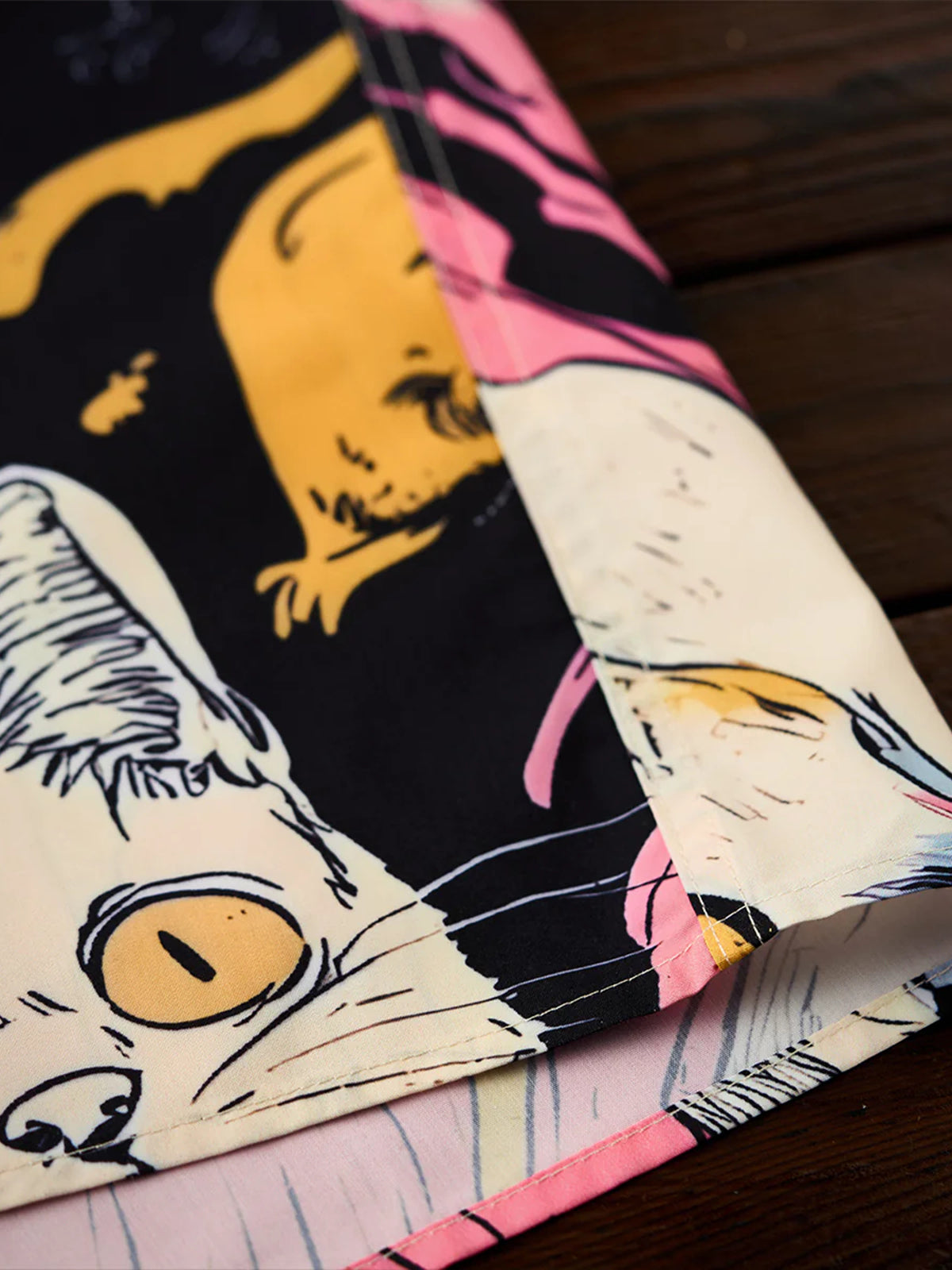 "Cat's Fantasy Universe" Asymmetric Print Open Collar Aloha Shirt