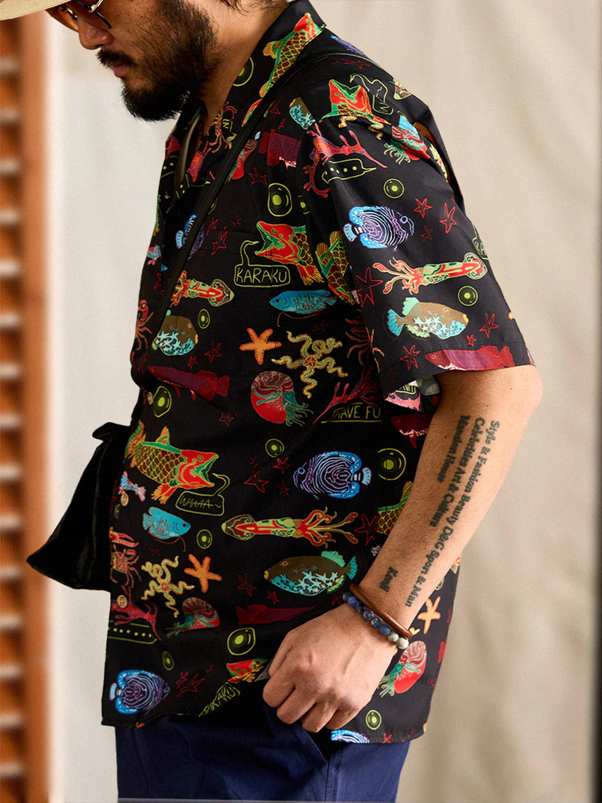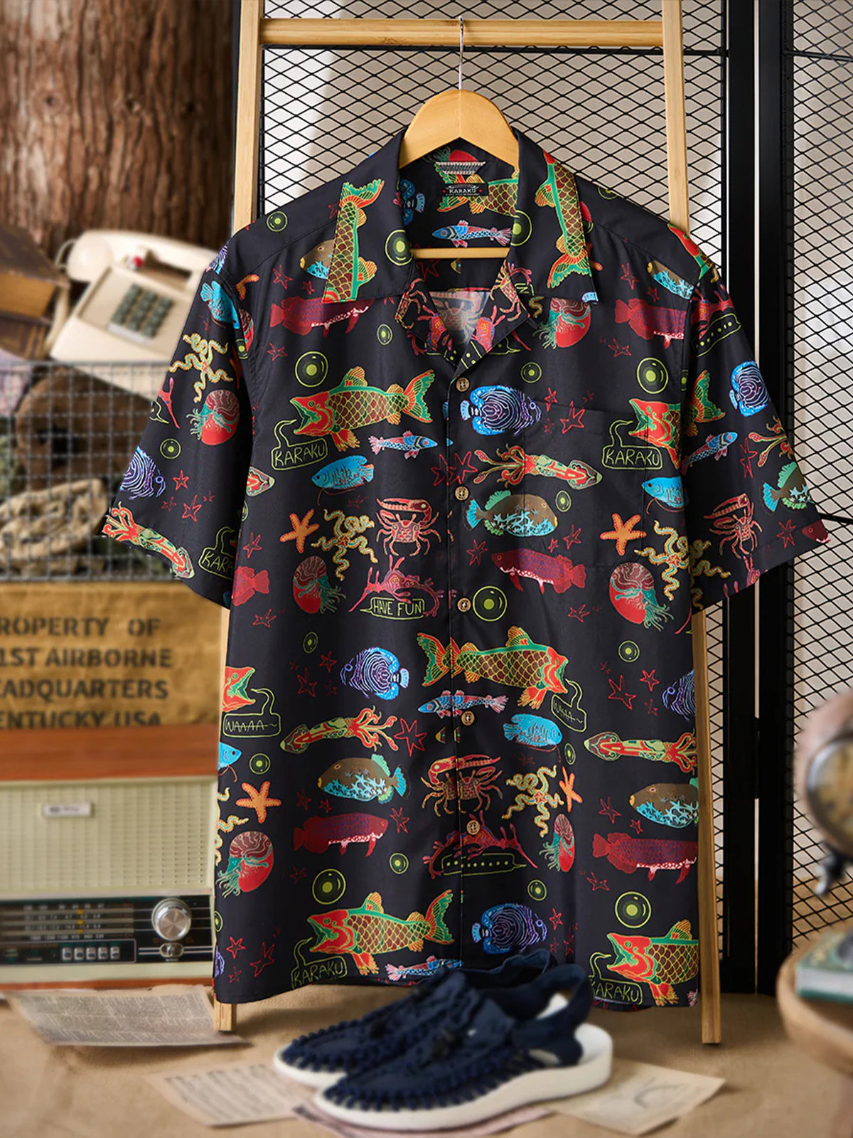 ''Deep Sea Neon Show'' All Over Print Aloha Shirt