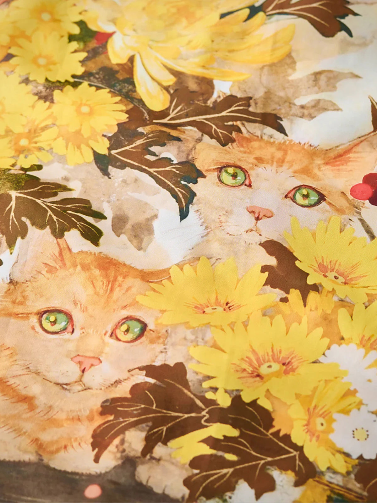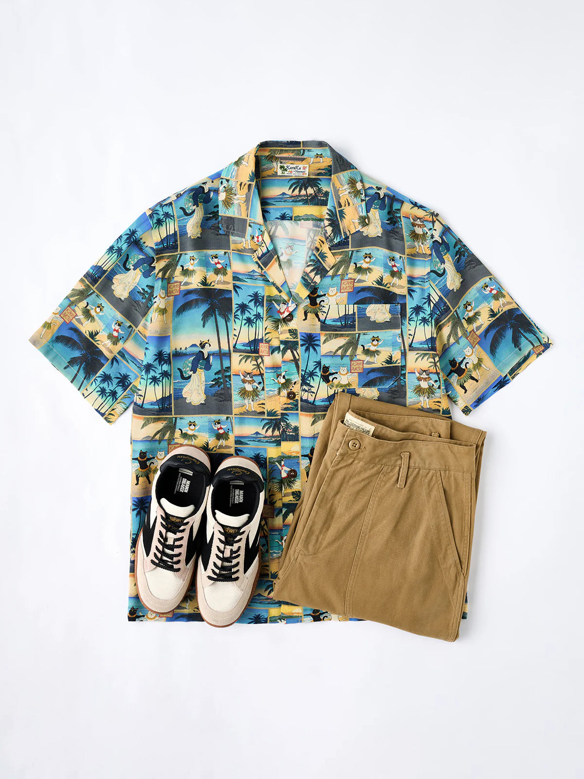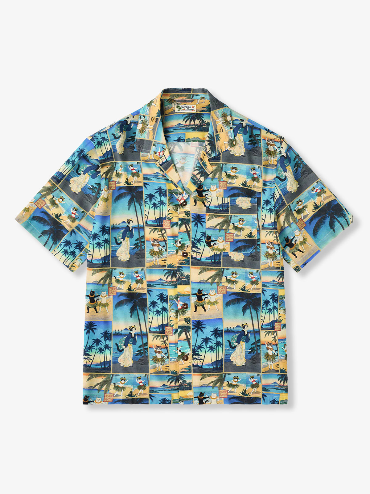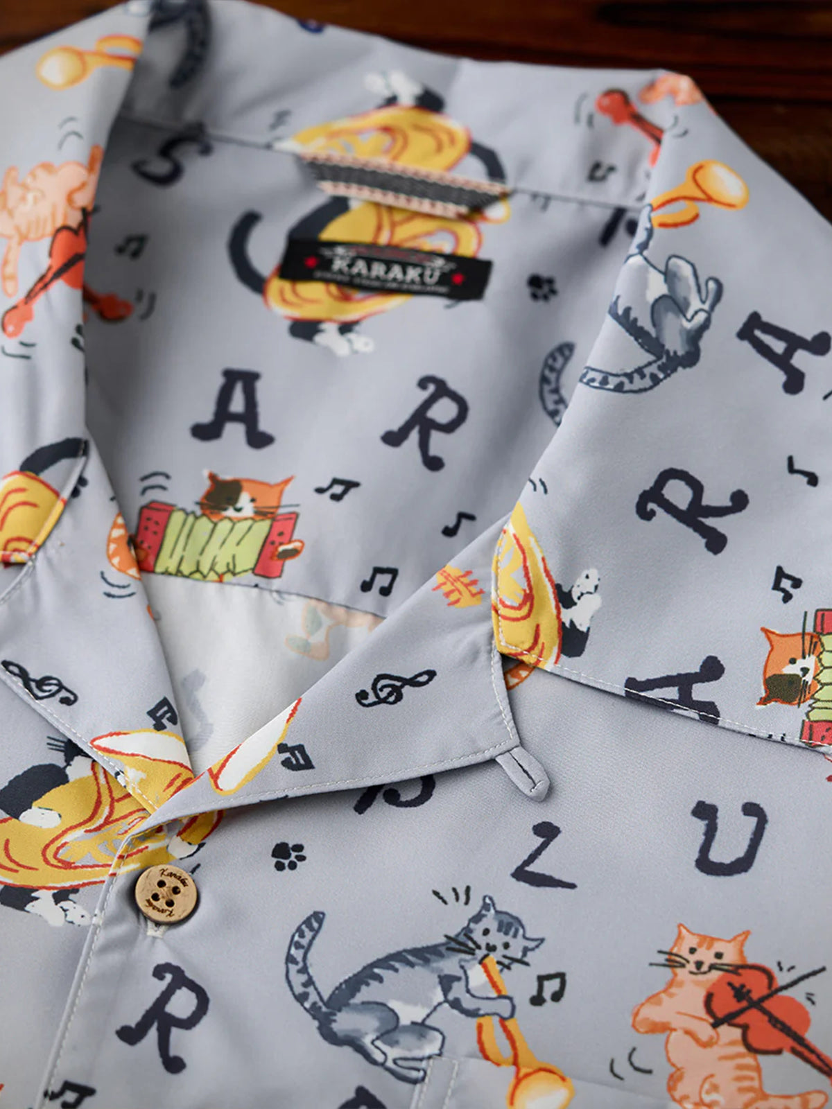 "Cat Hula Party" Ukiyo-e Style Print Aloha Shirt