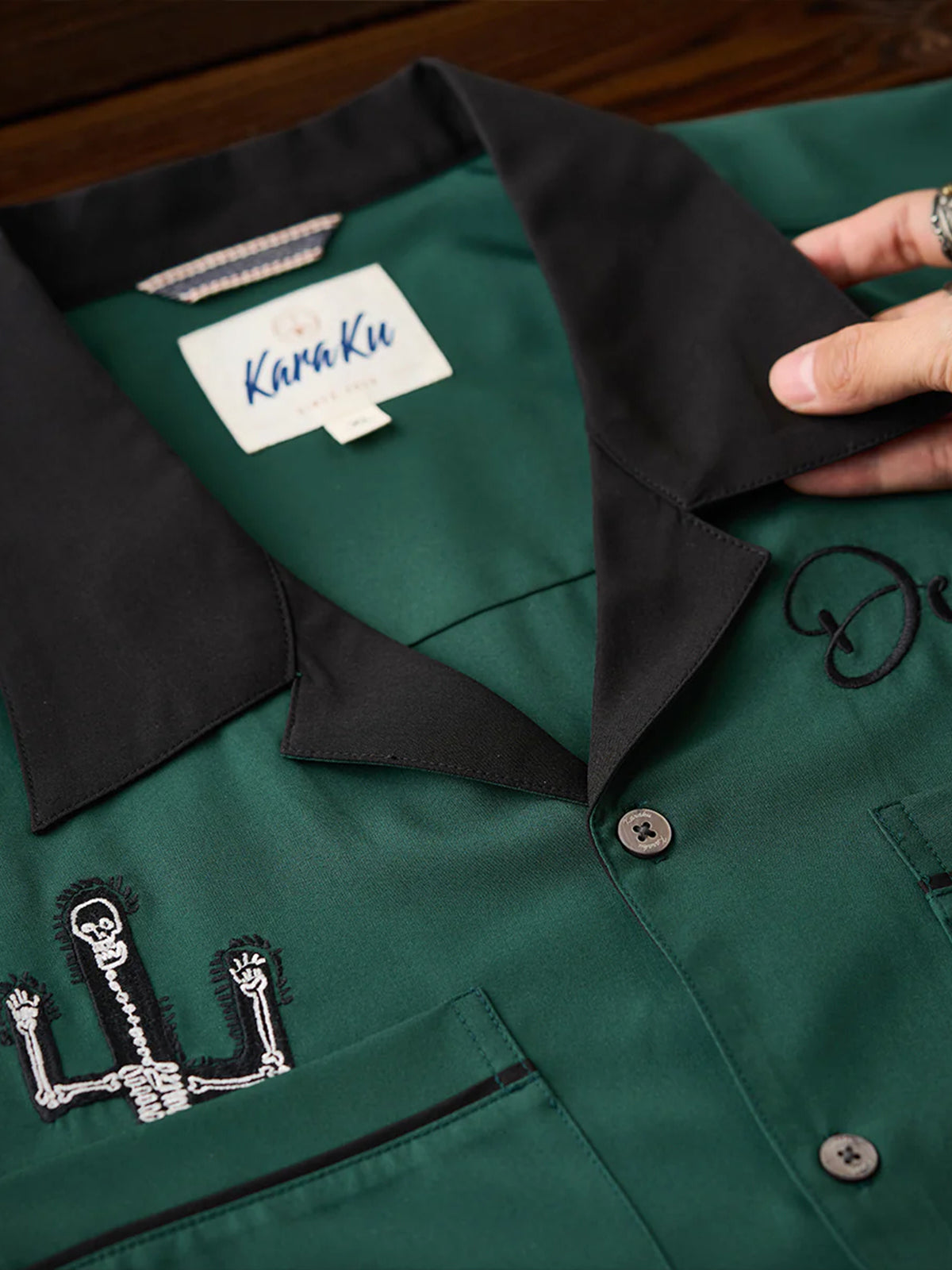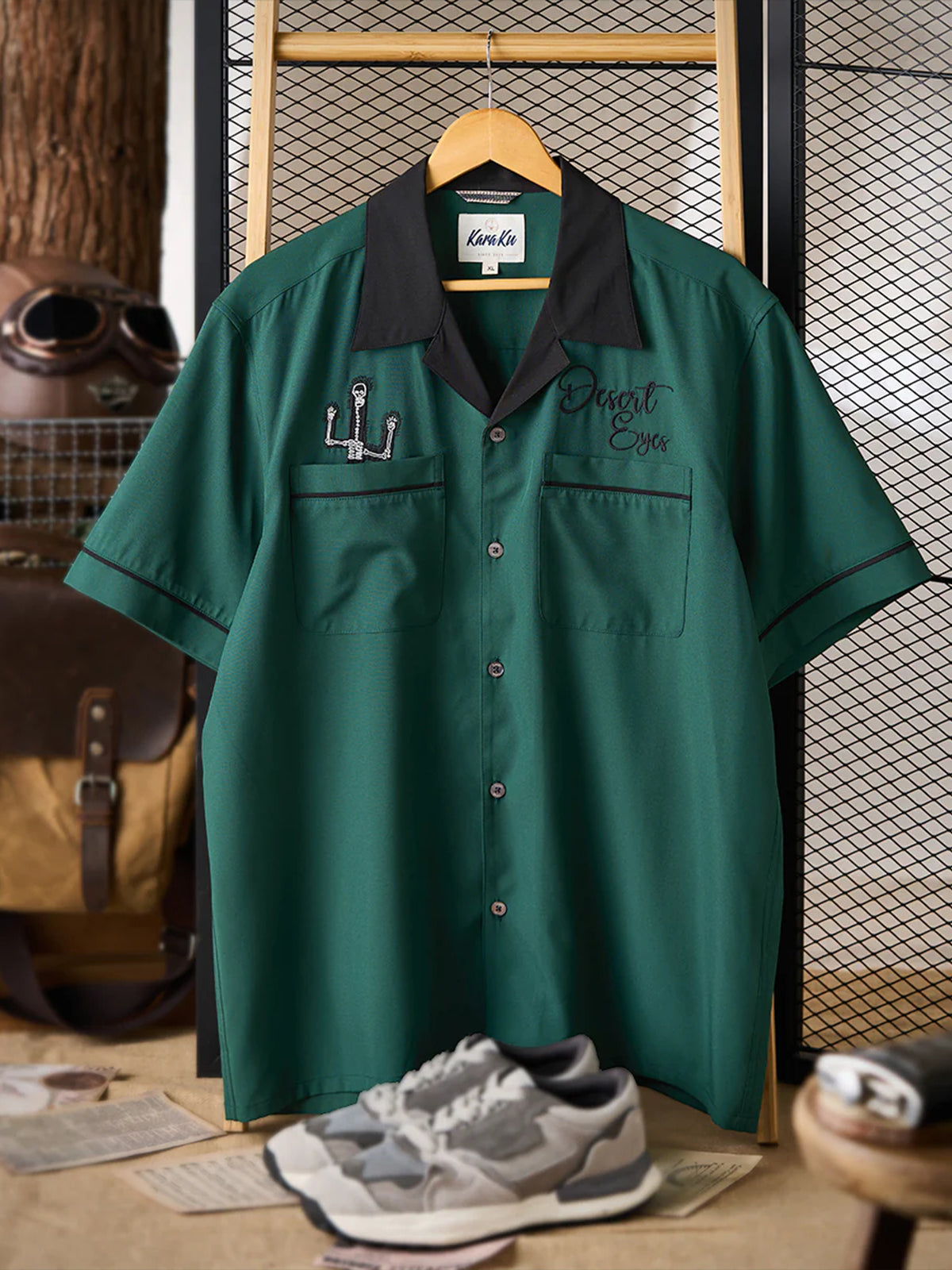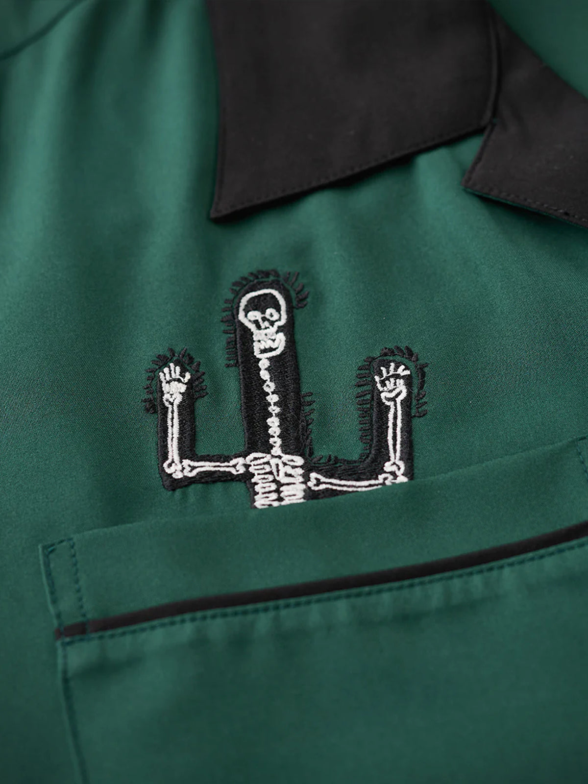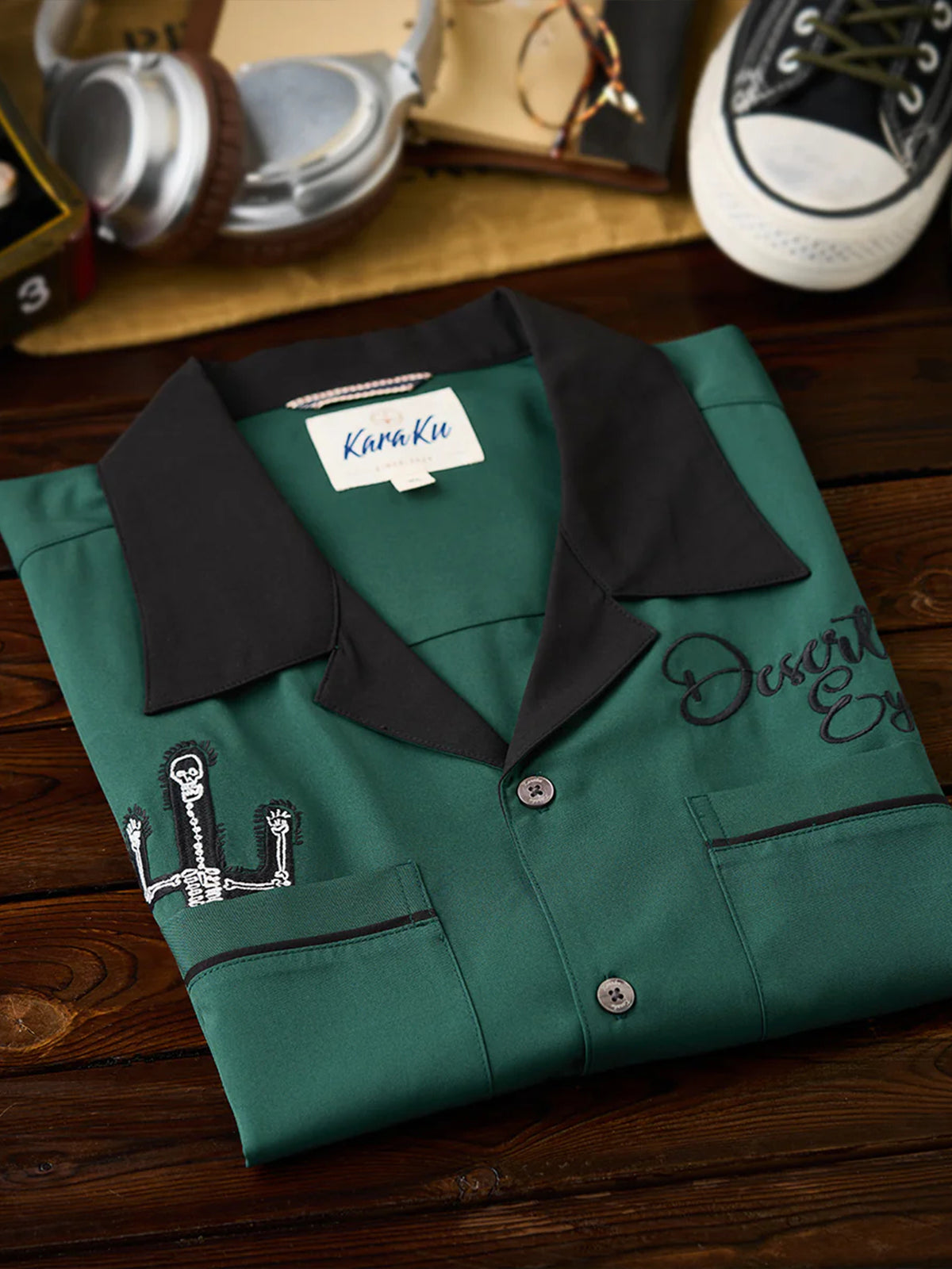 "Desert Eye" Cuban Collar Cactus Embroidered Bowling Shirt