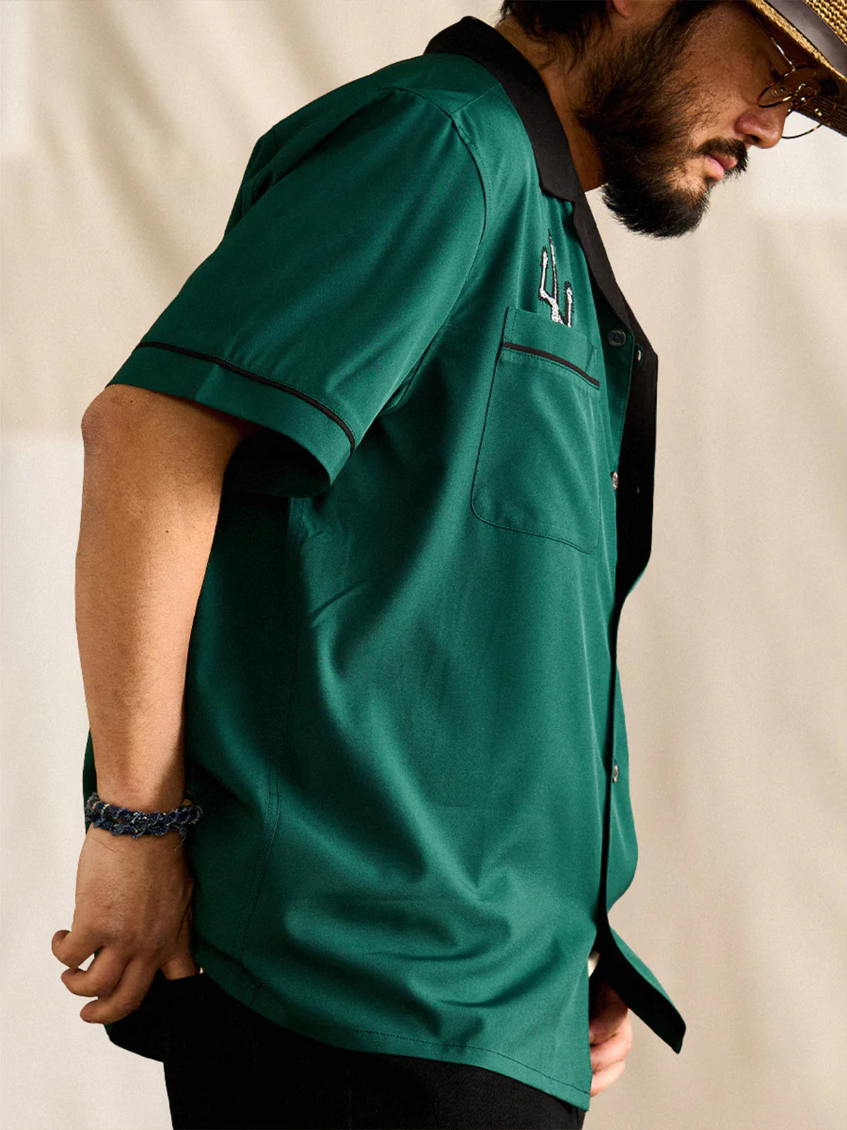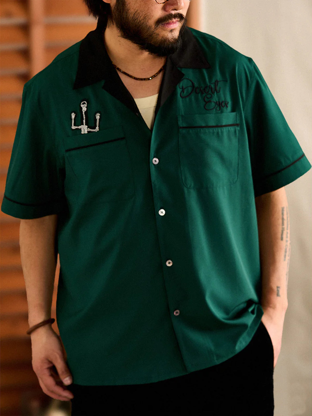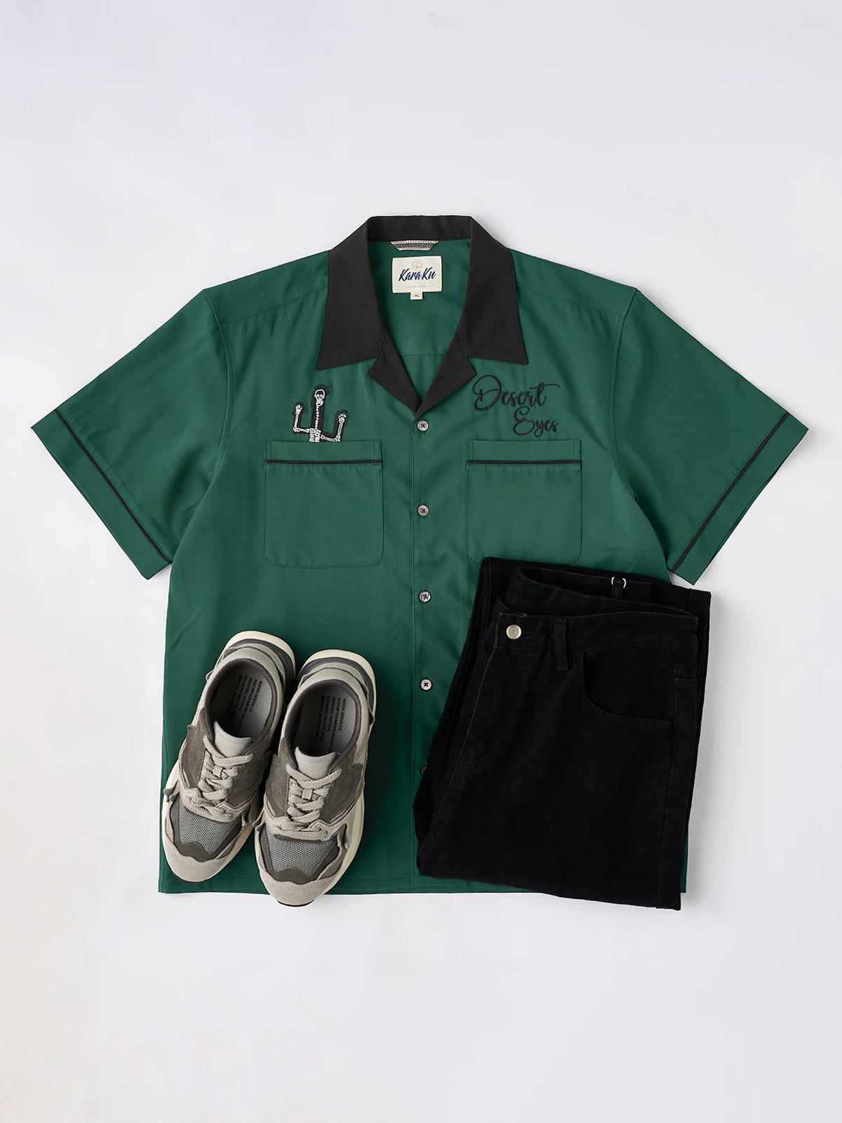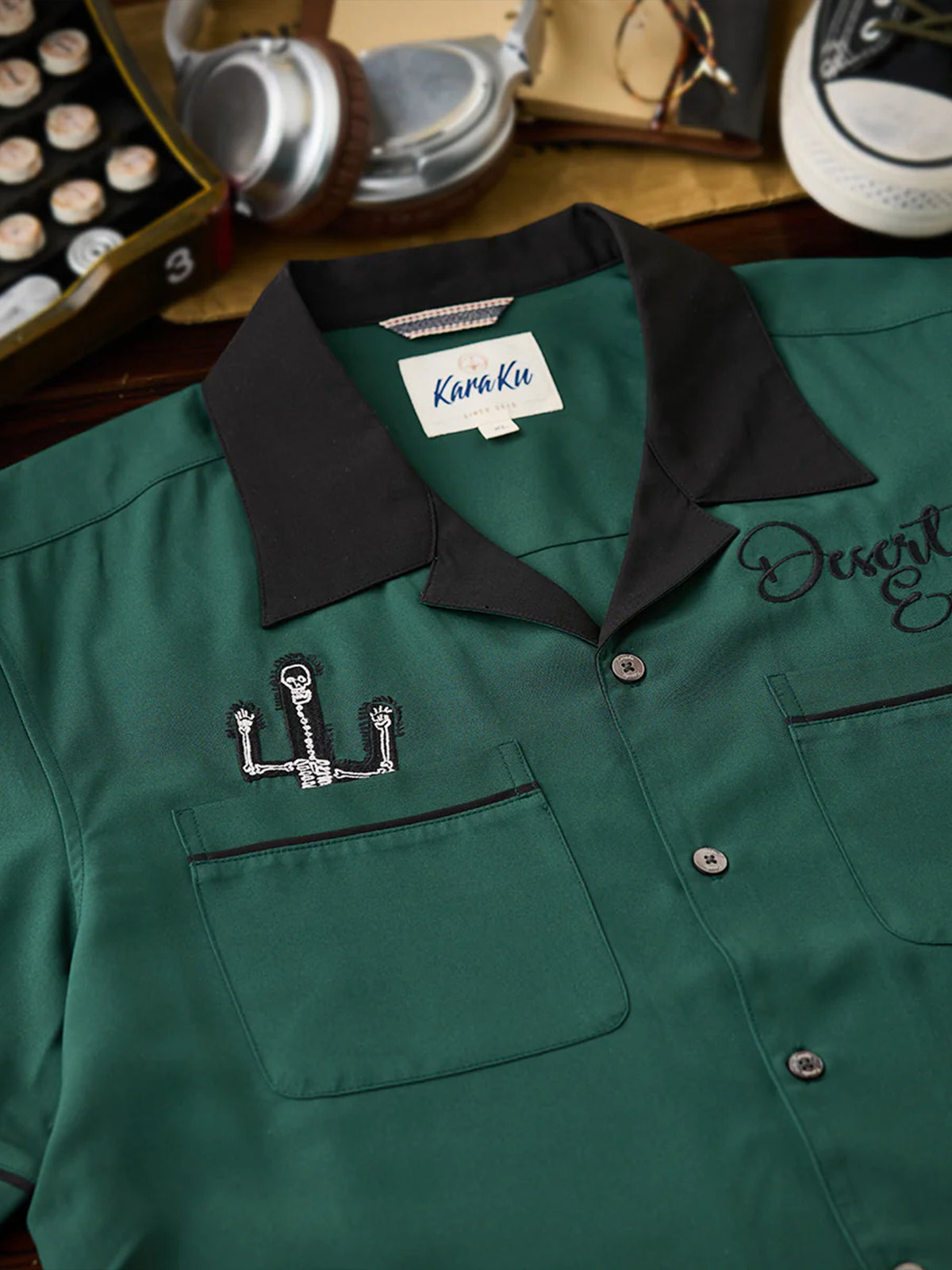 "Desert Eye" Cuban Collar Cactus Embroidered Bowling Shirt