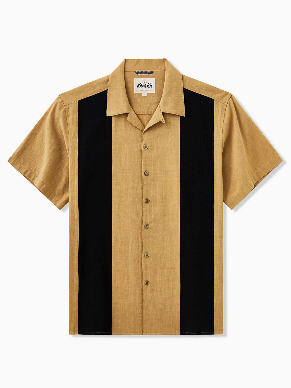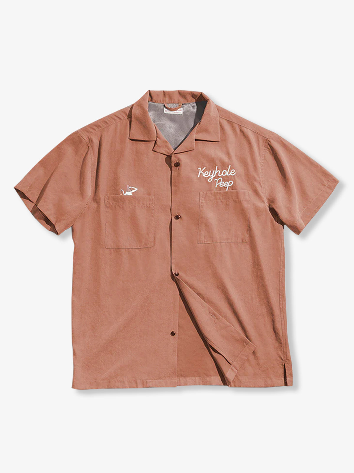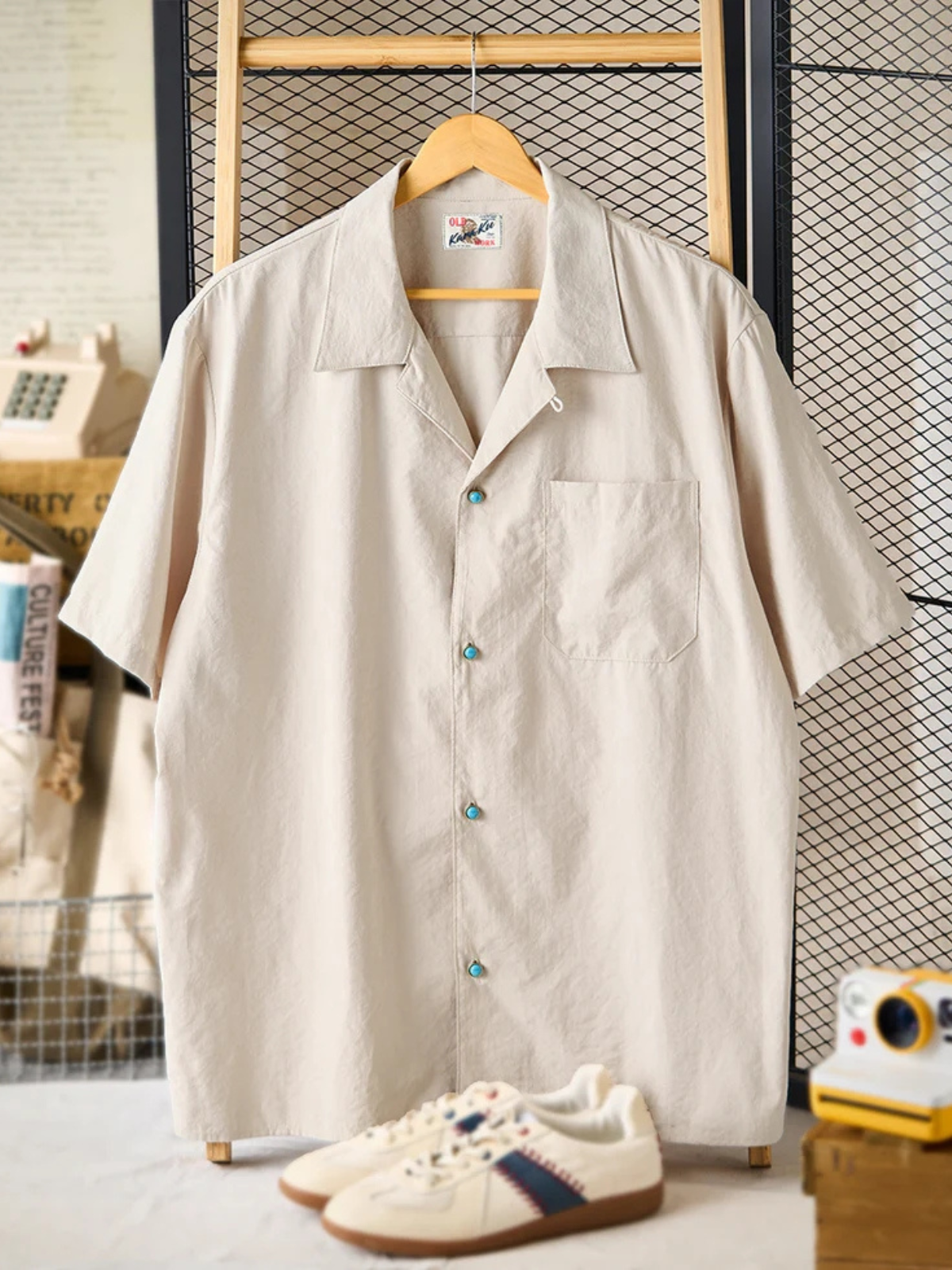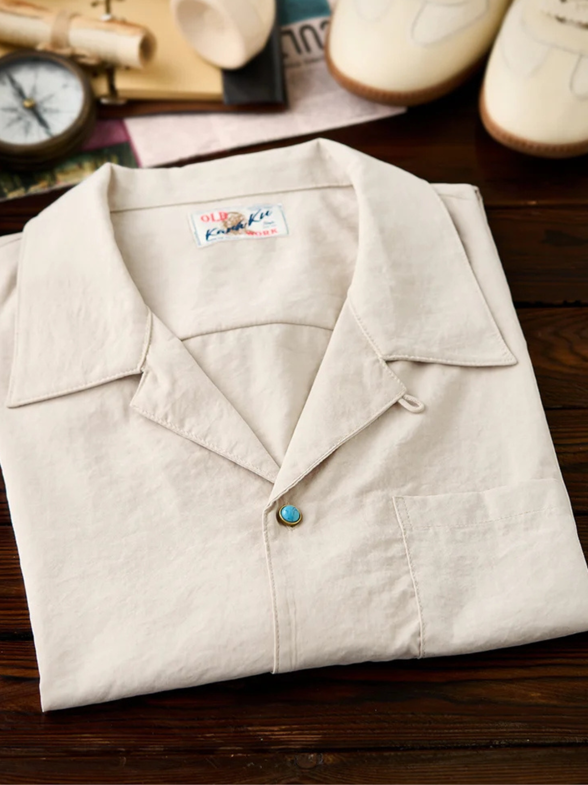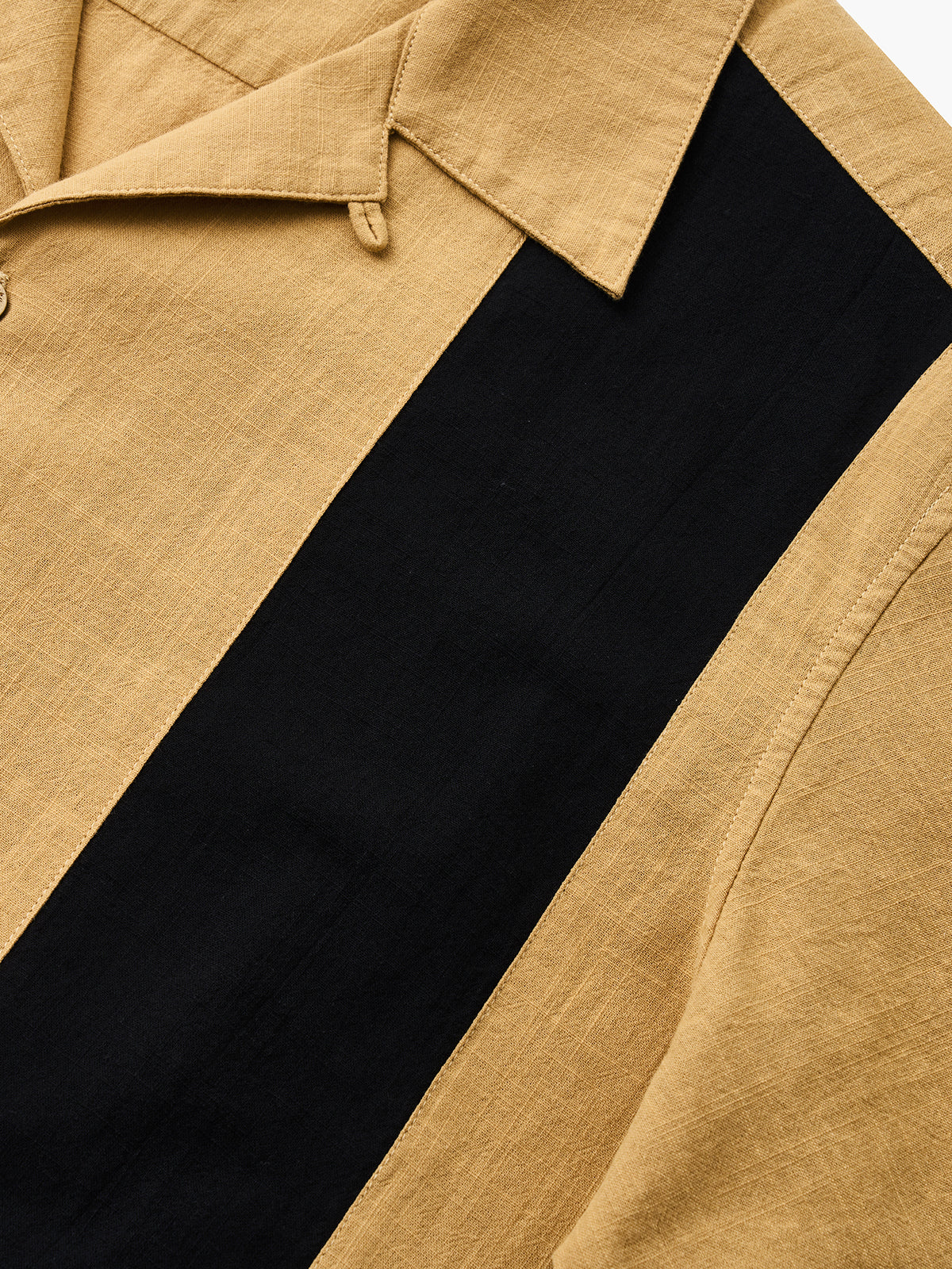Solid Tricolor Peach Leather Cuban Collar Shirt