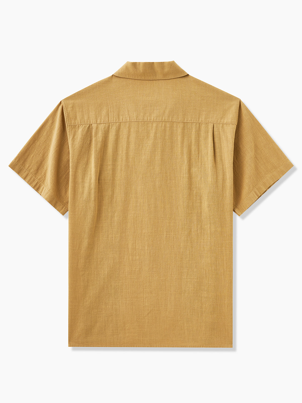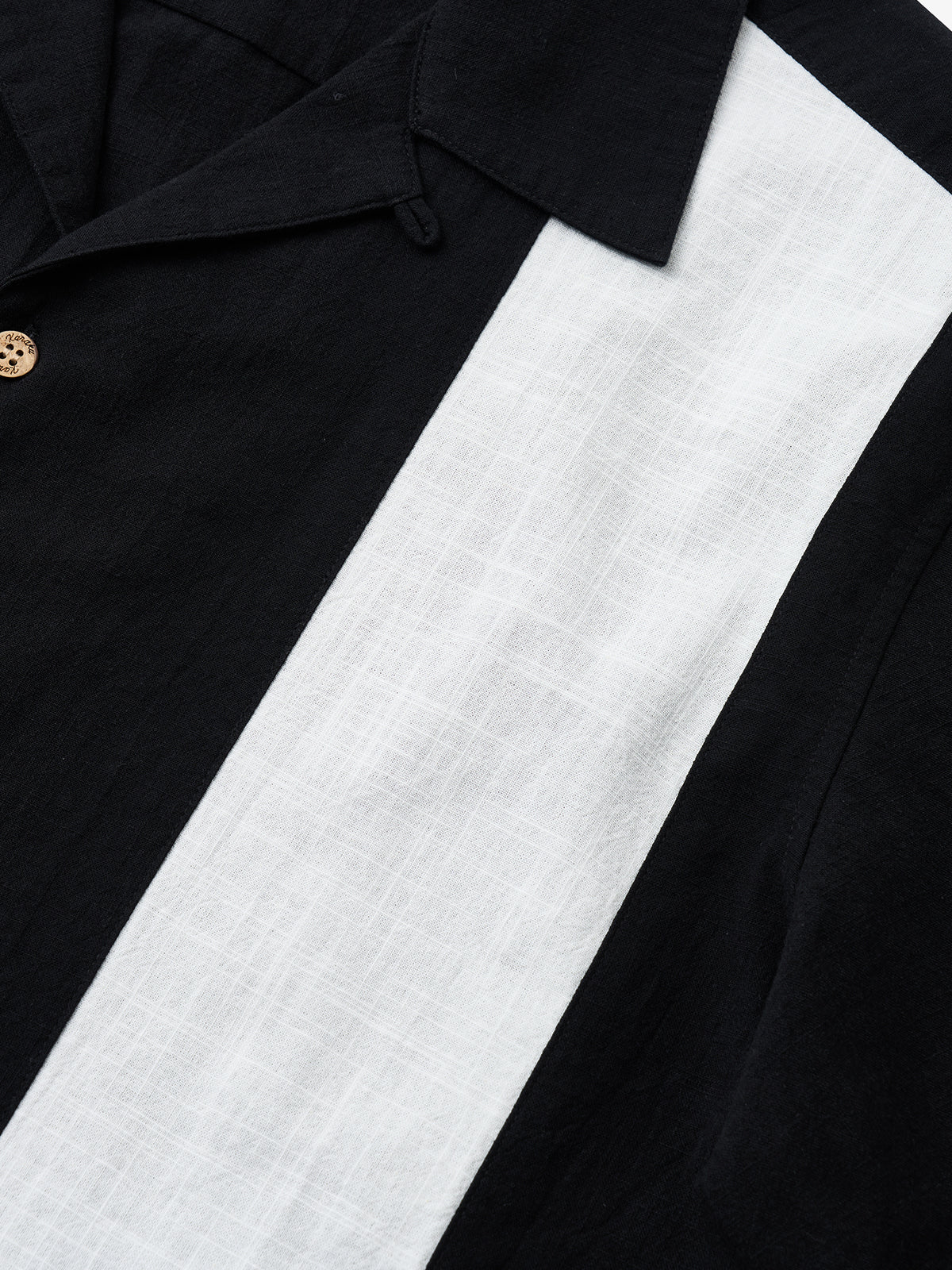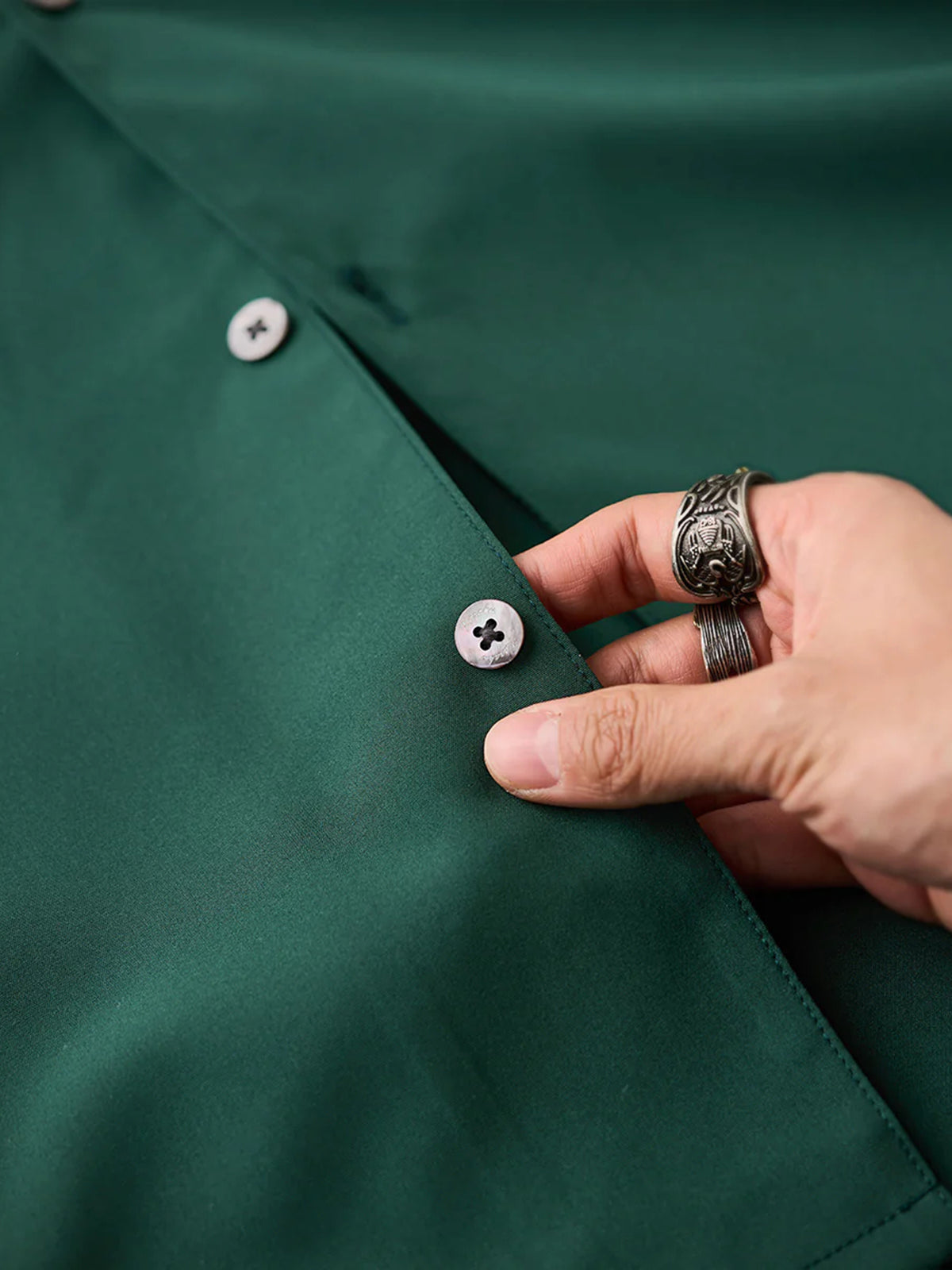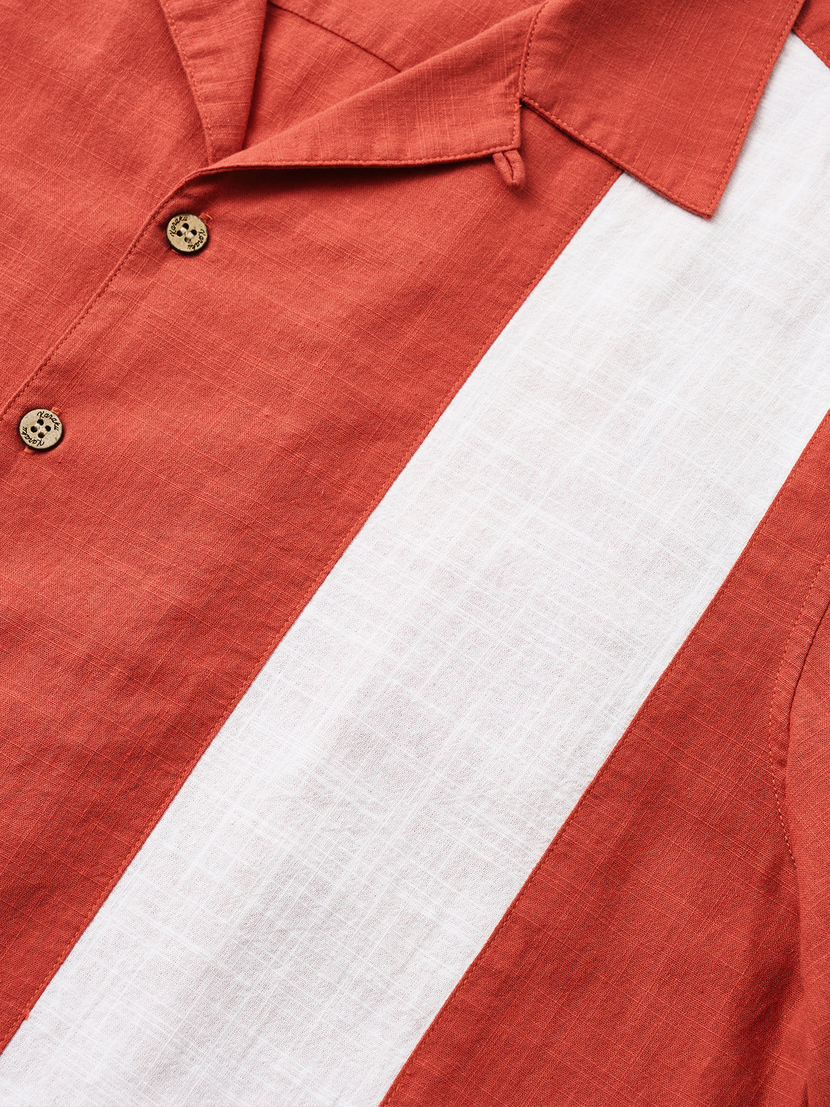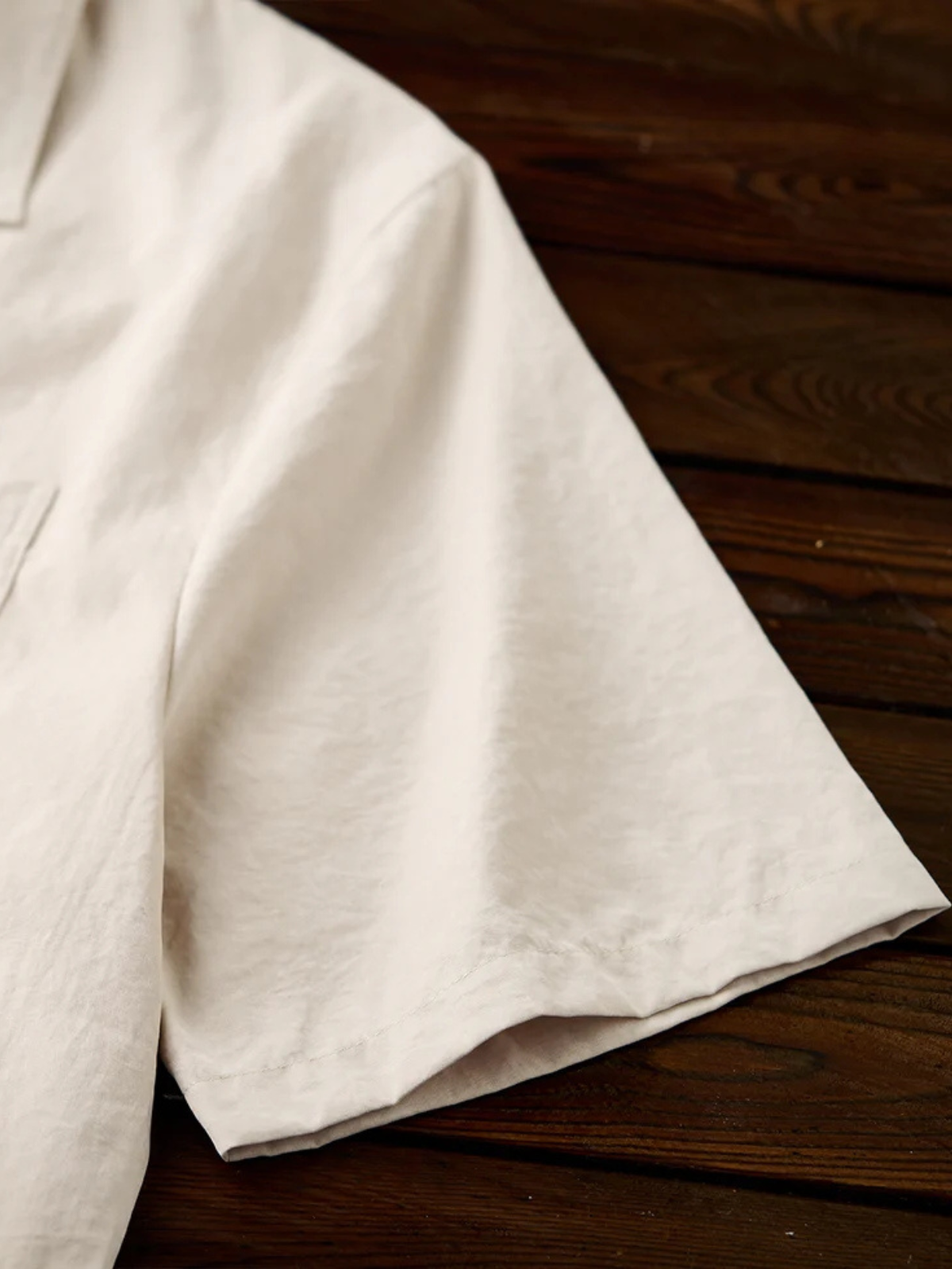 Solid Tricolor Peach Leather Cuban Collar Shirt
