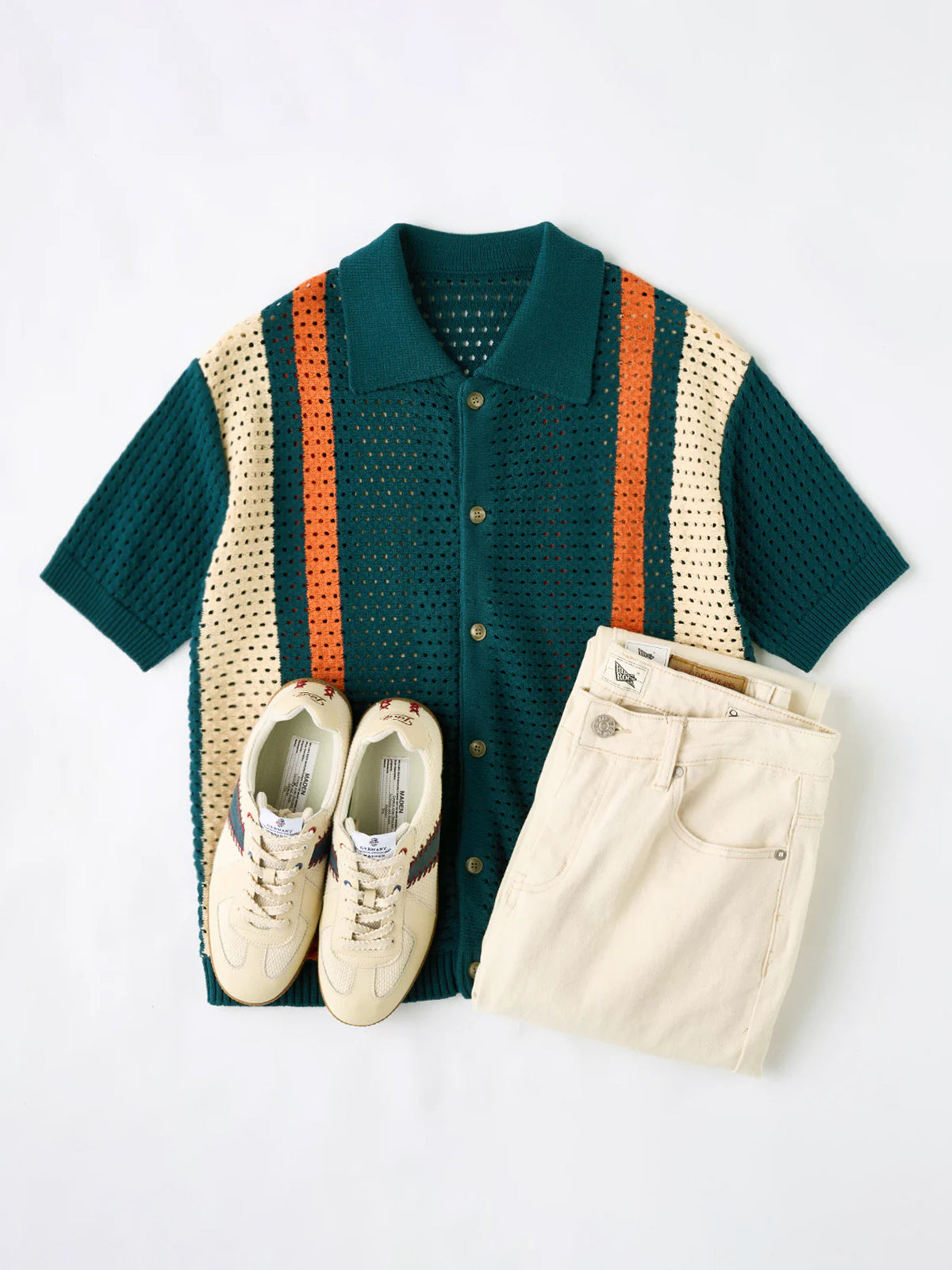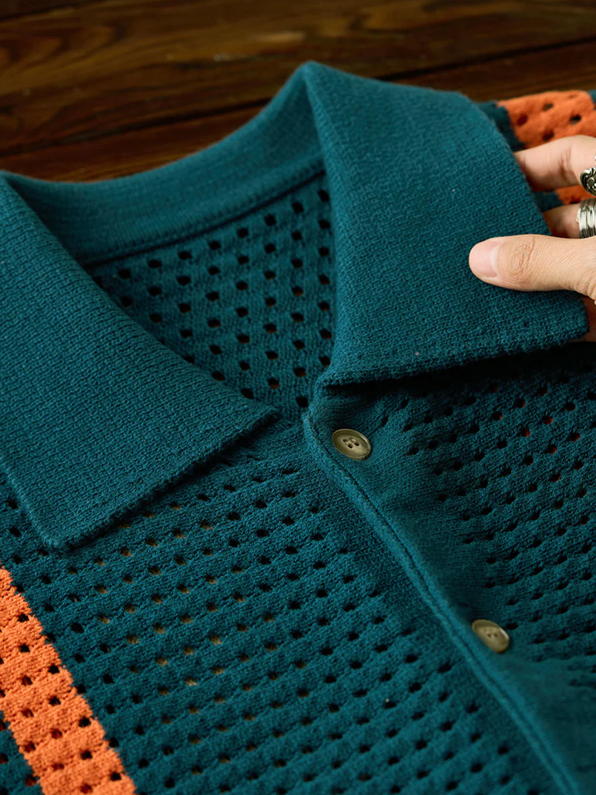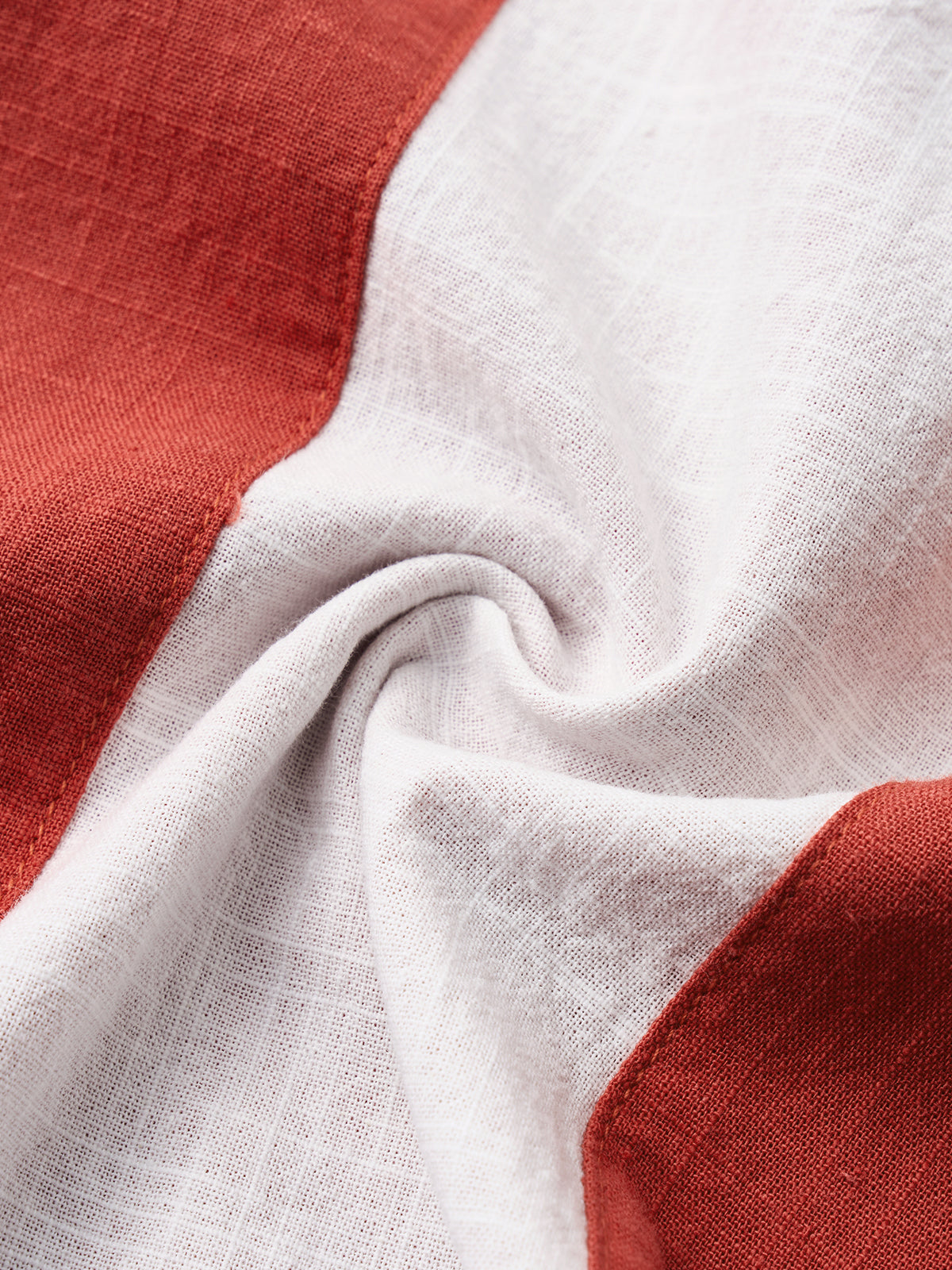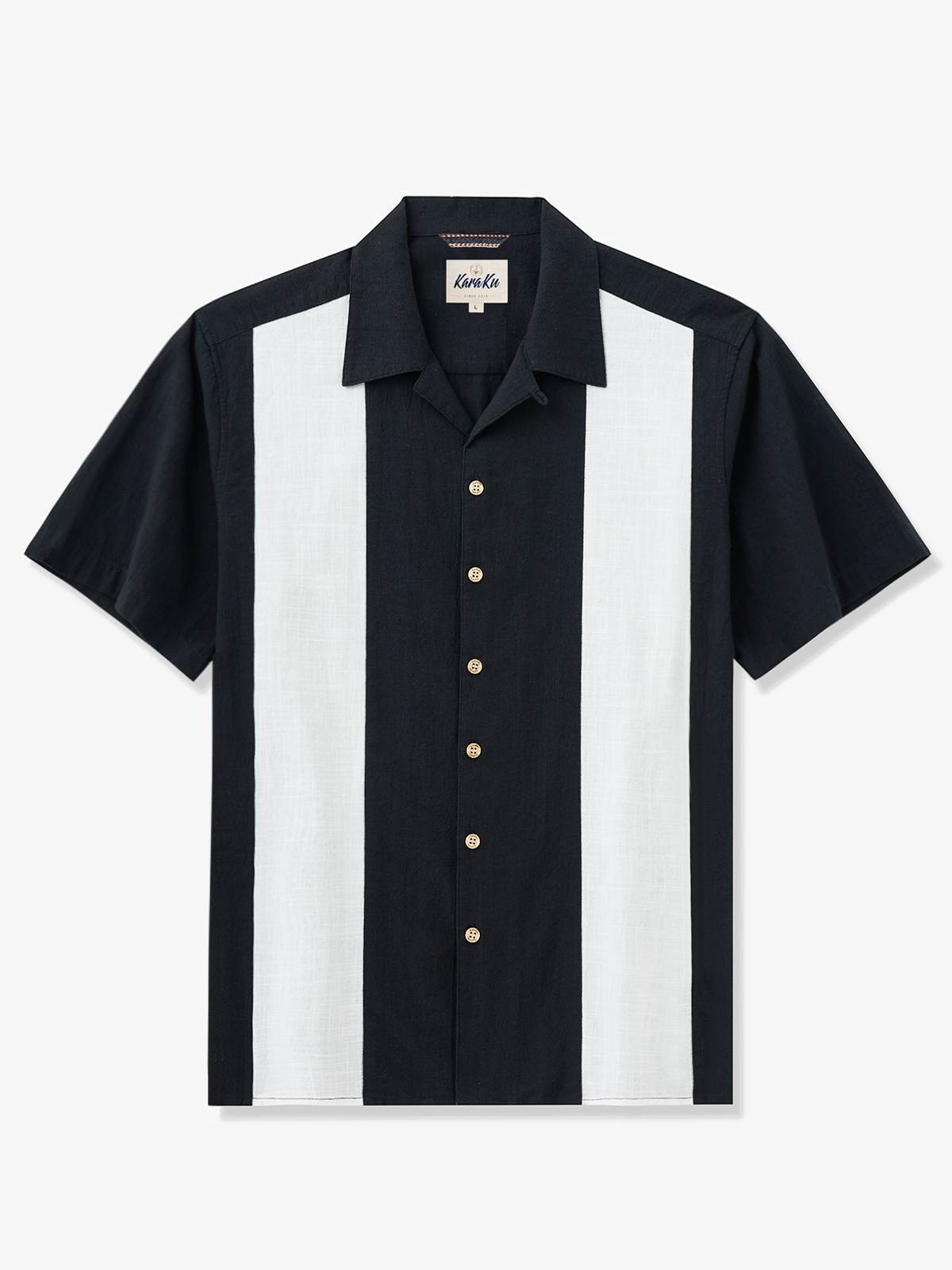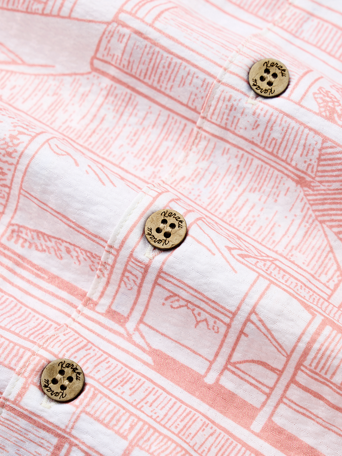 Solid Tricolor Peach Leather Cuban Collar Shirt