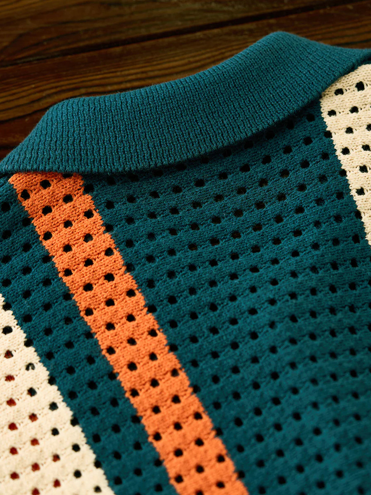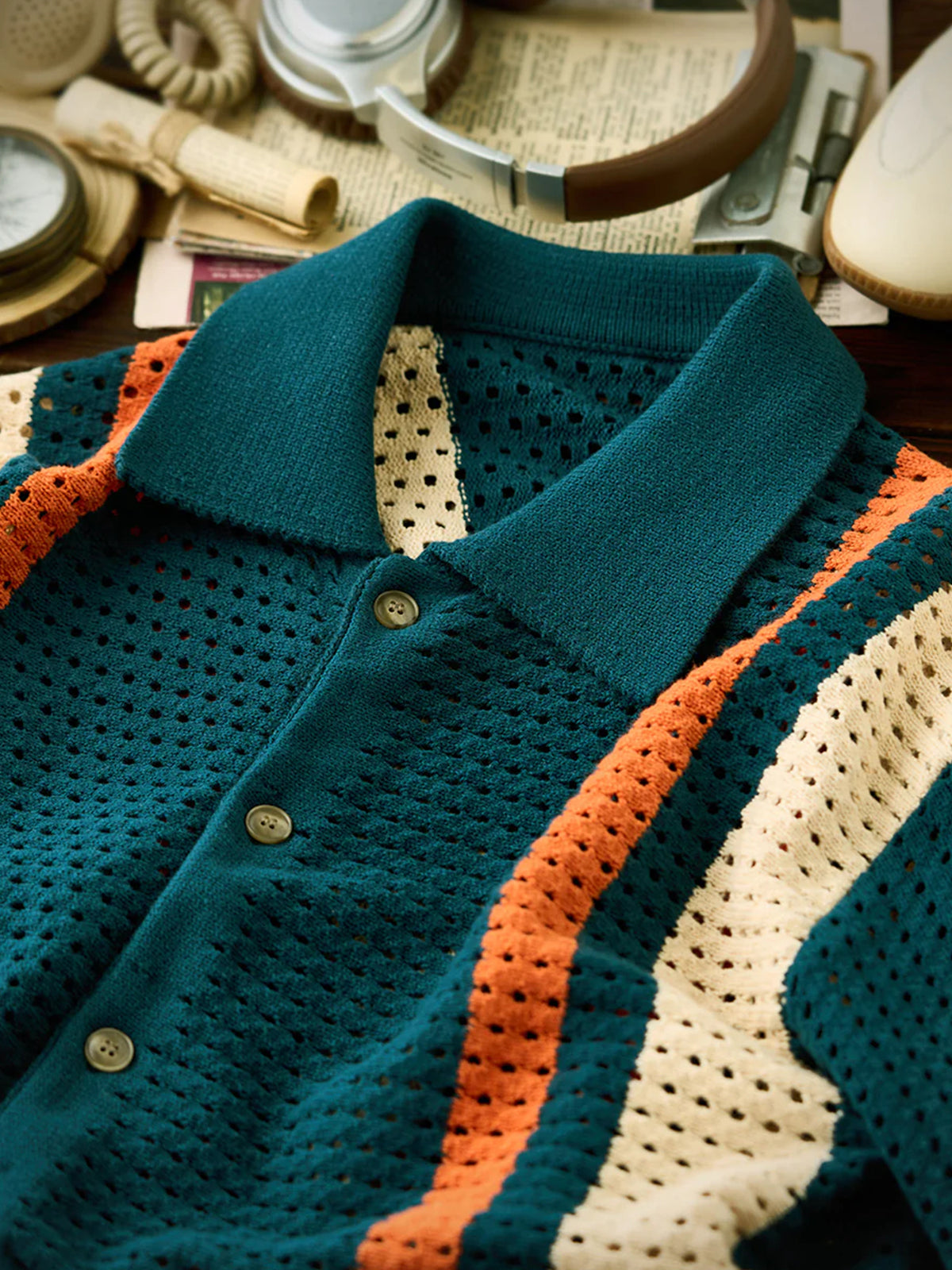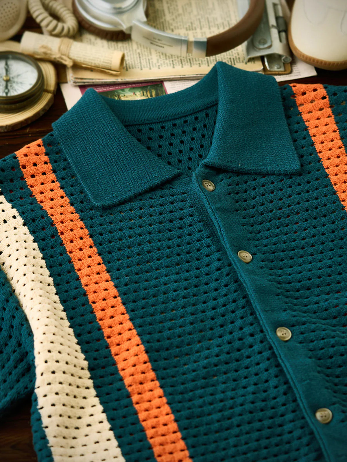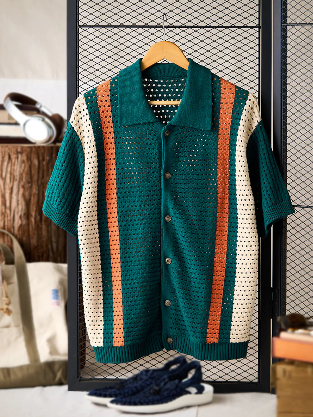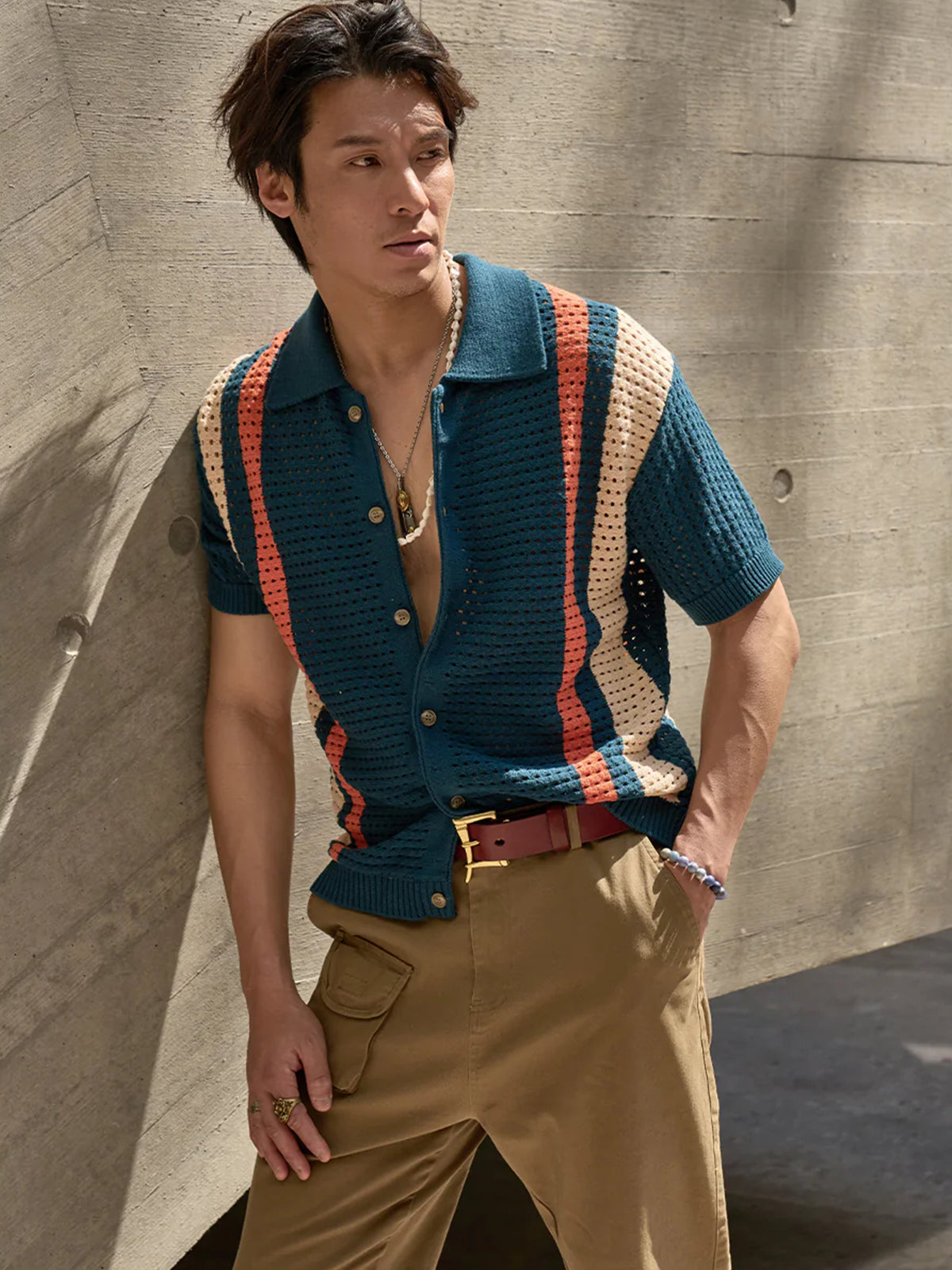Solid Tricolor Peach Leather Cuban Collar Shirt