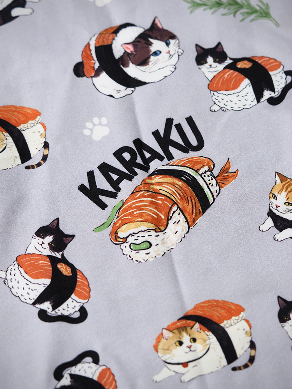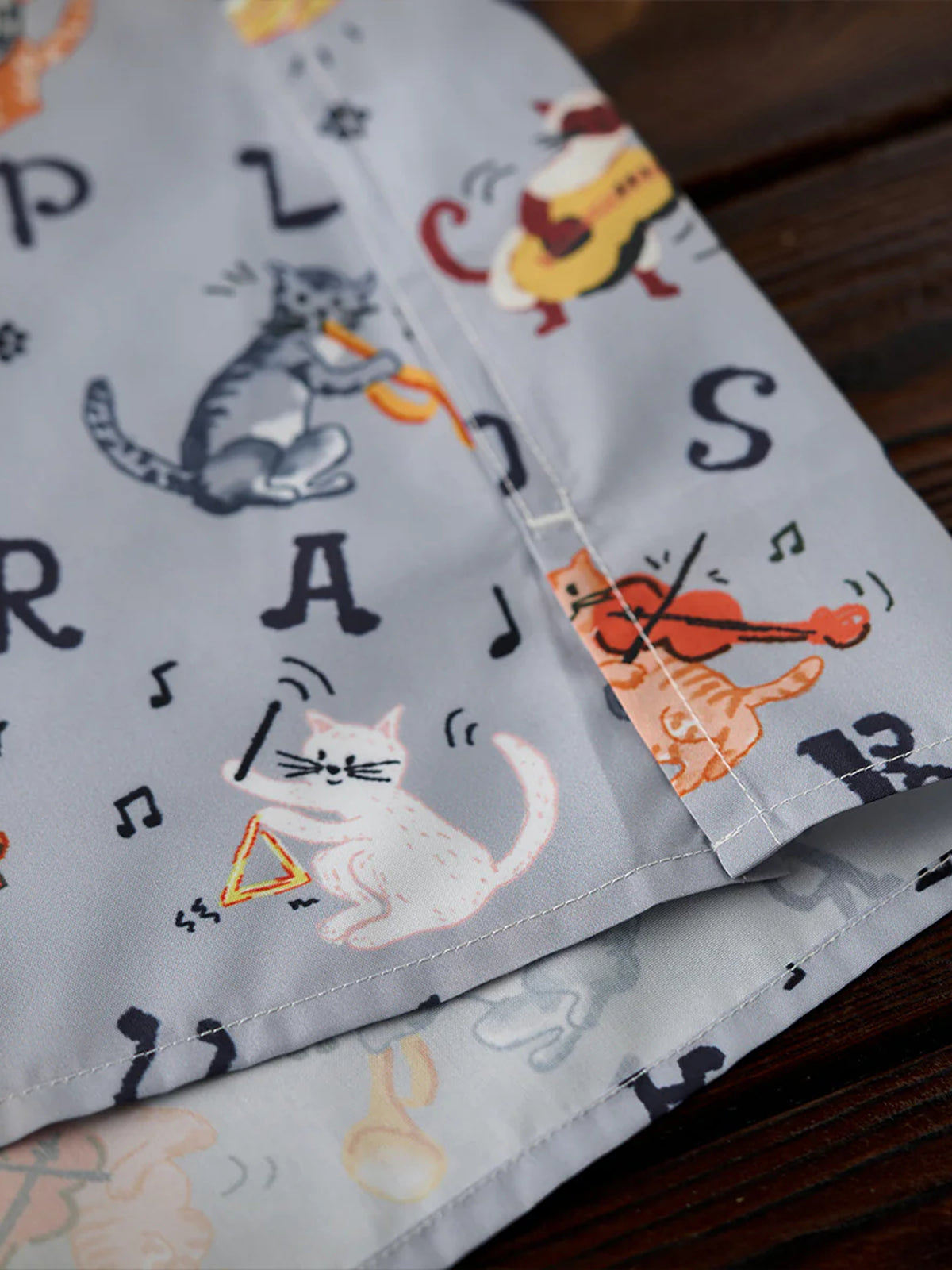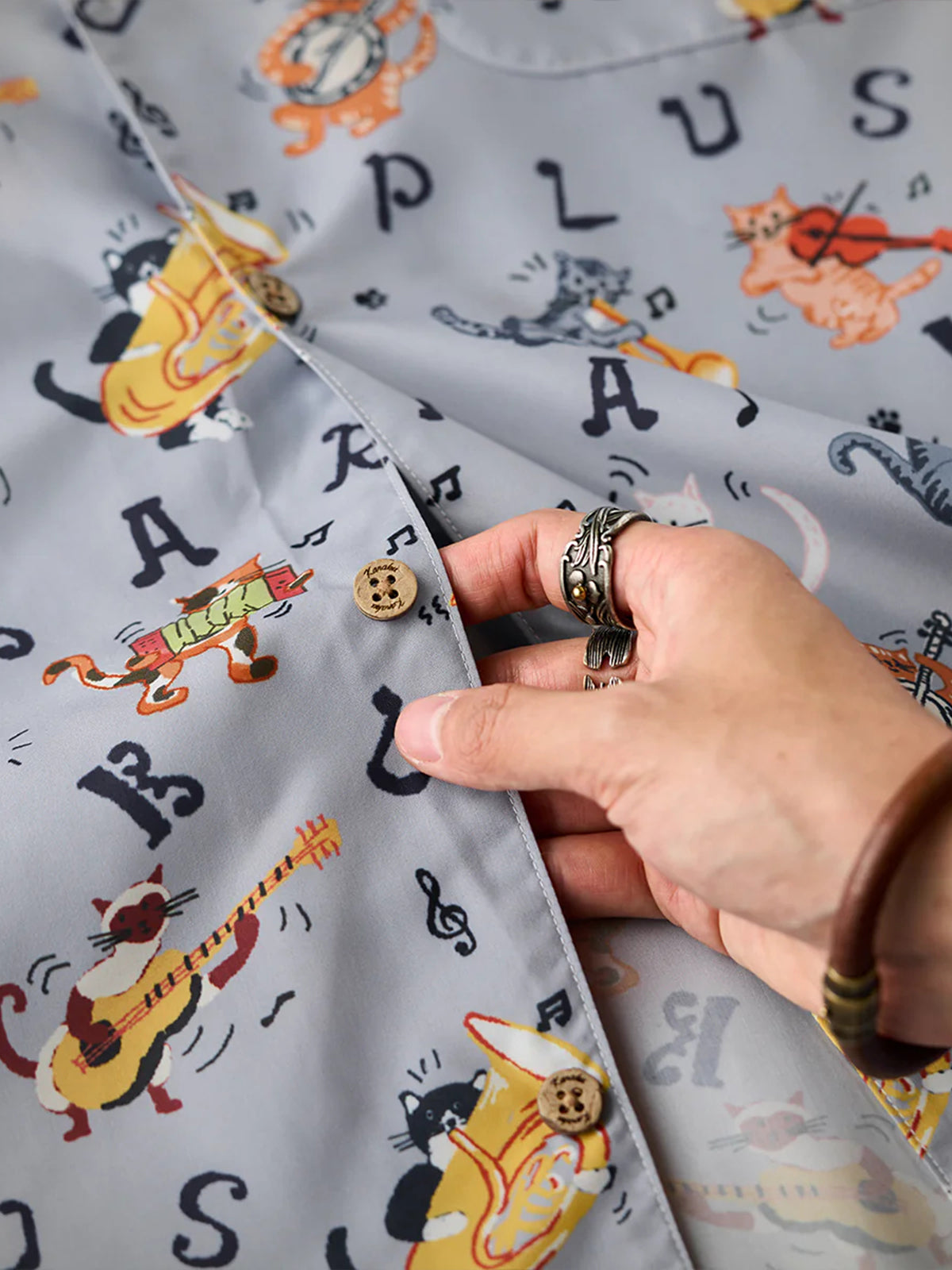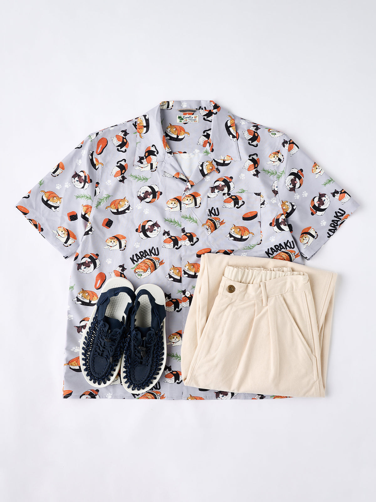 "Cat Sushi Encyclopedia" Handwritten Style Open Collar Shirt