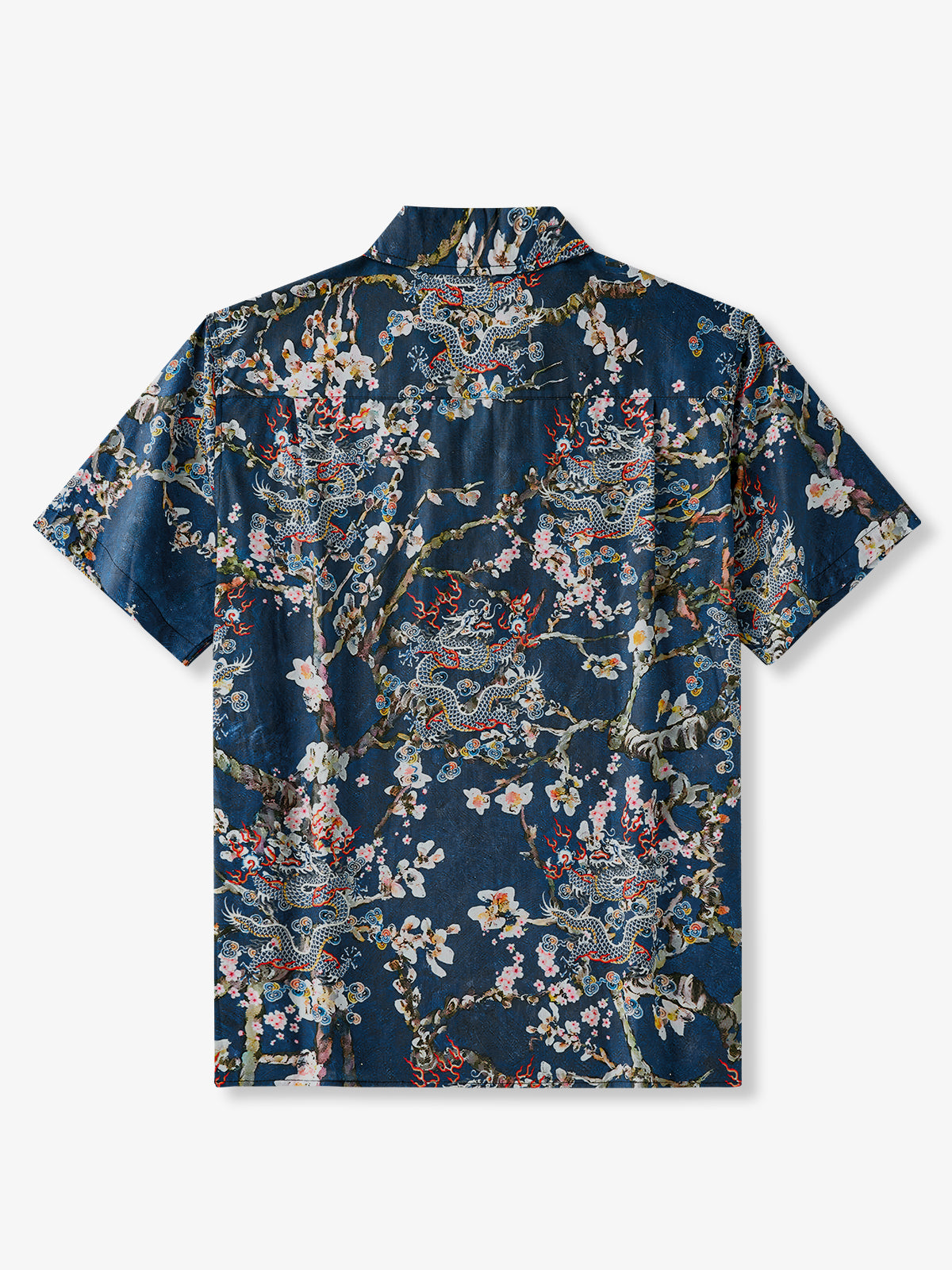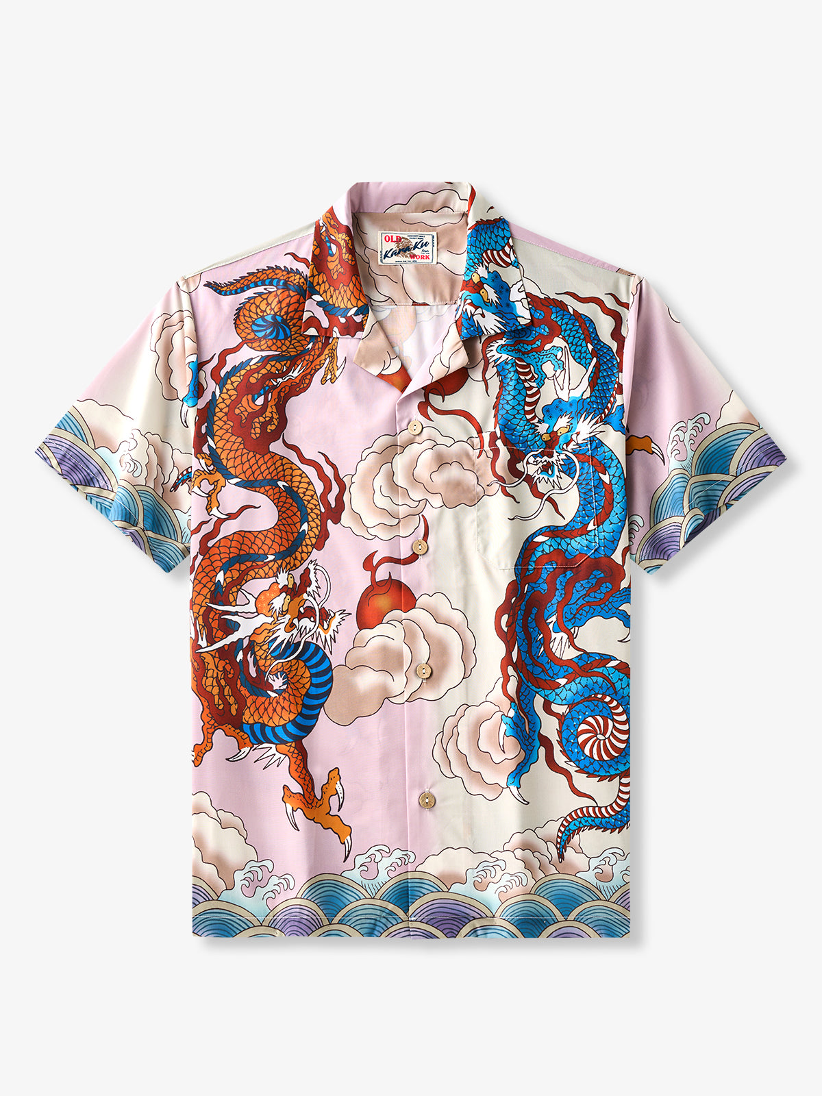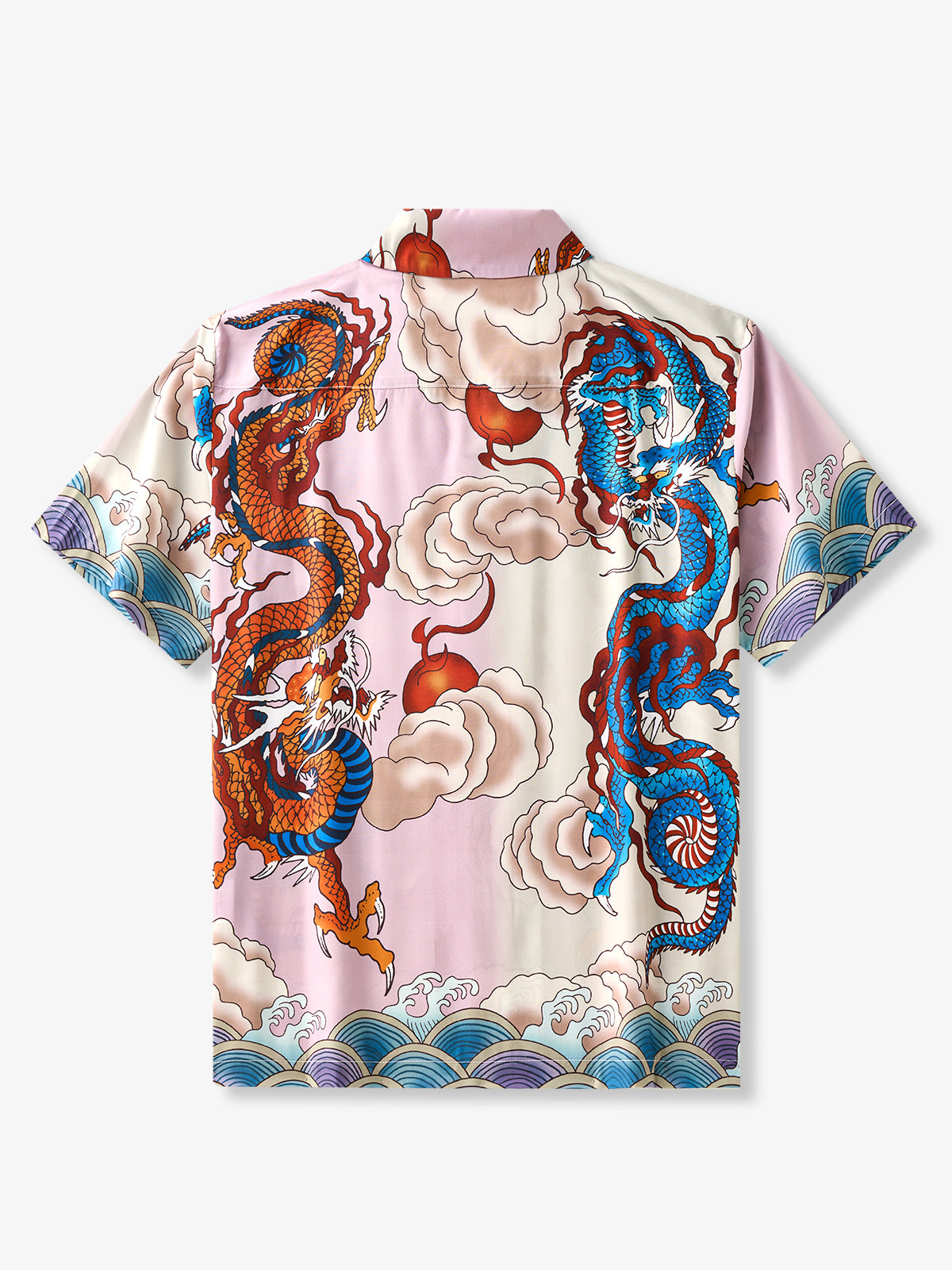 Two Dragons Playing With Pearls Cotton Camp Shirt