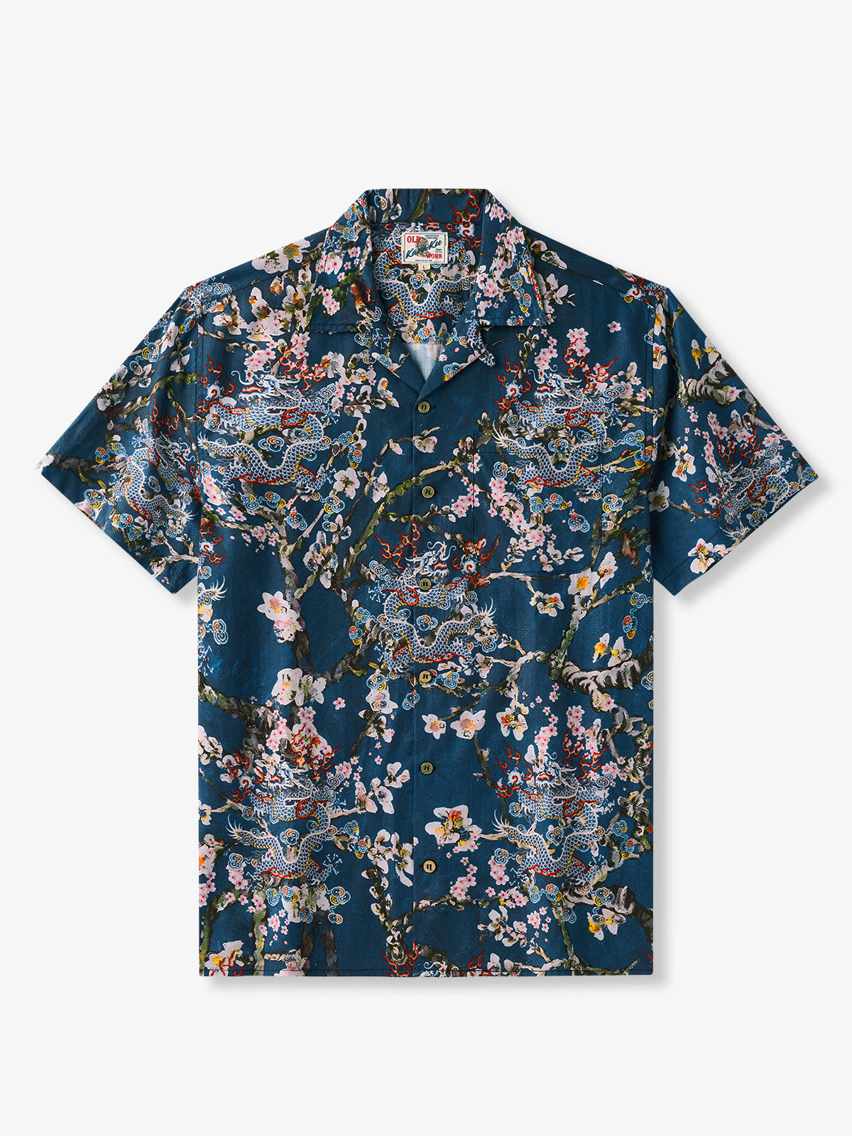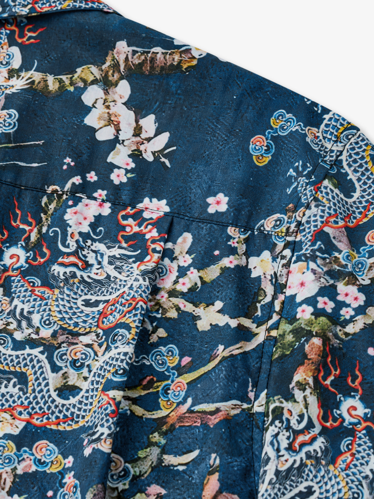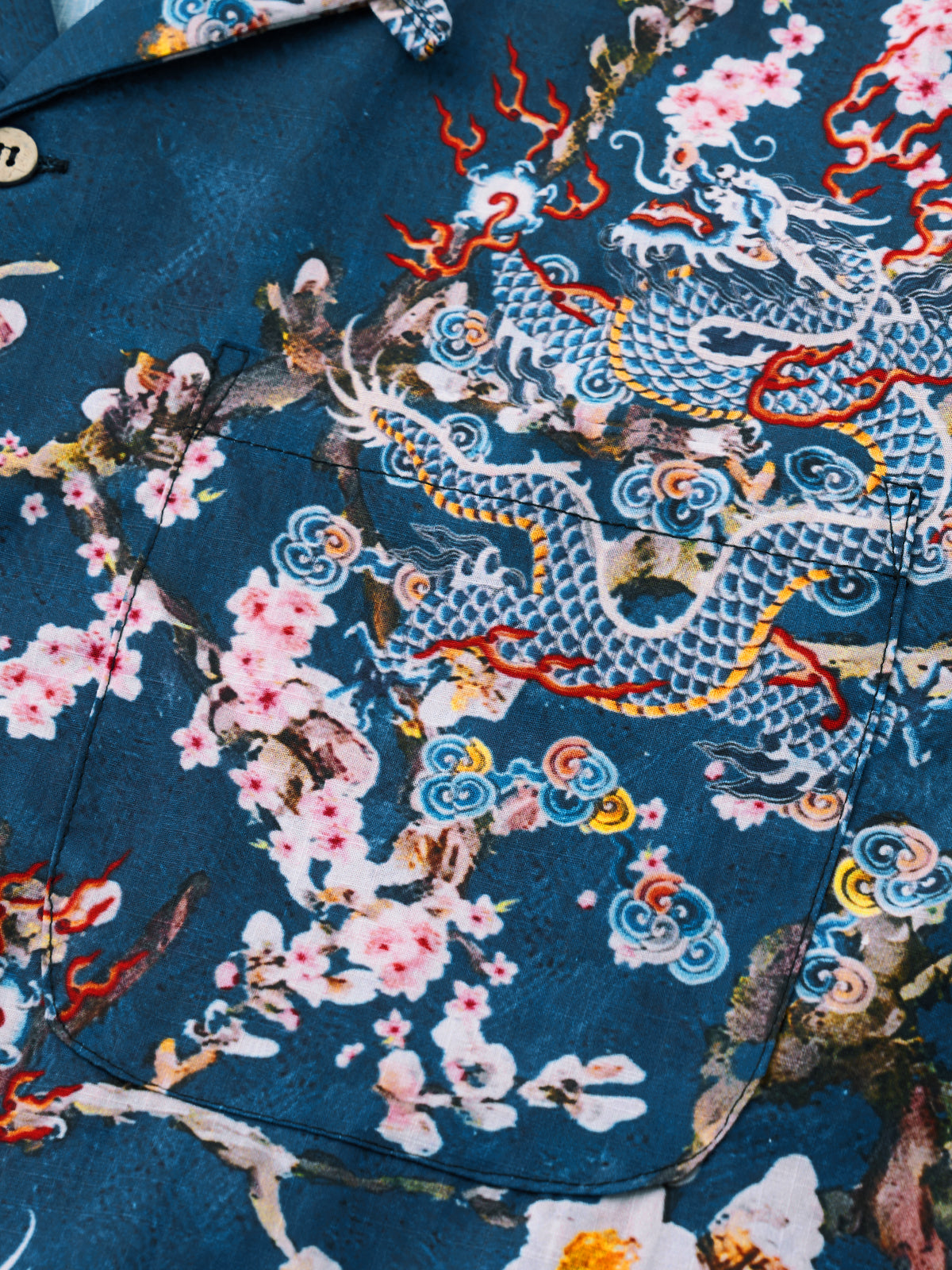 Two Dragons Playing With Pearls Cotton Camp Shirt