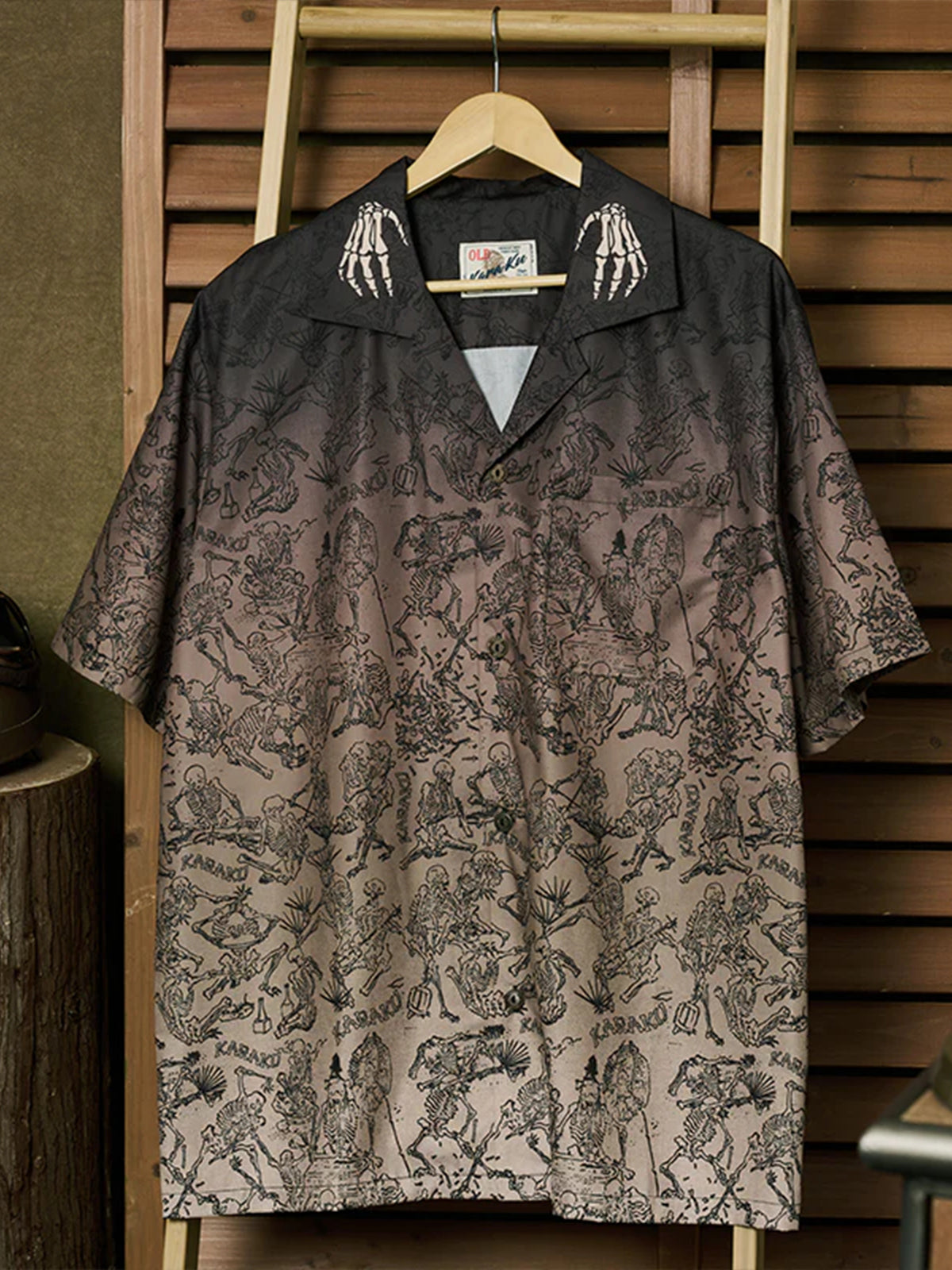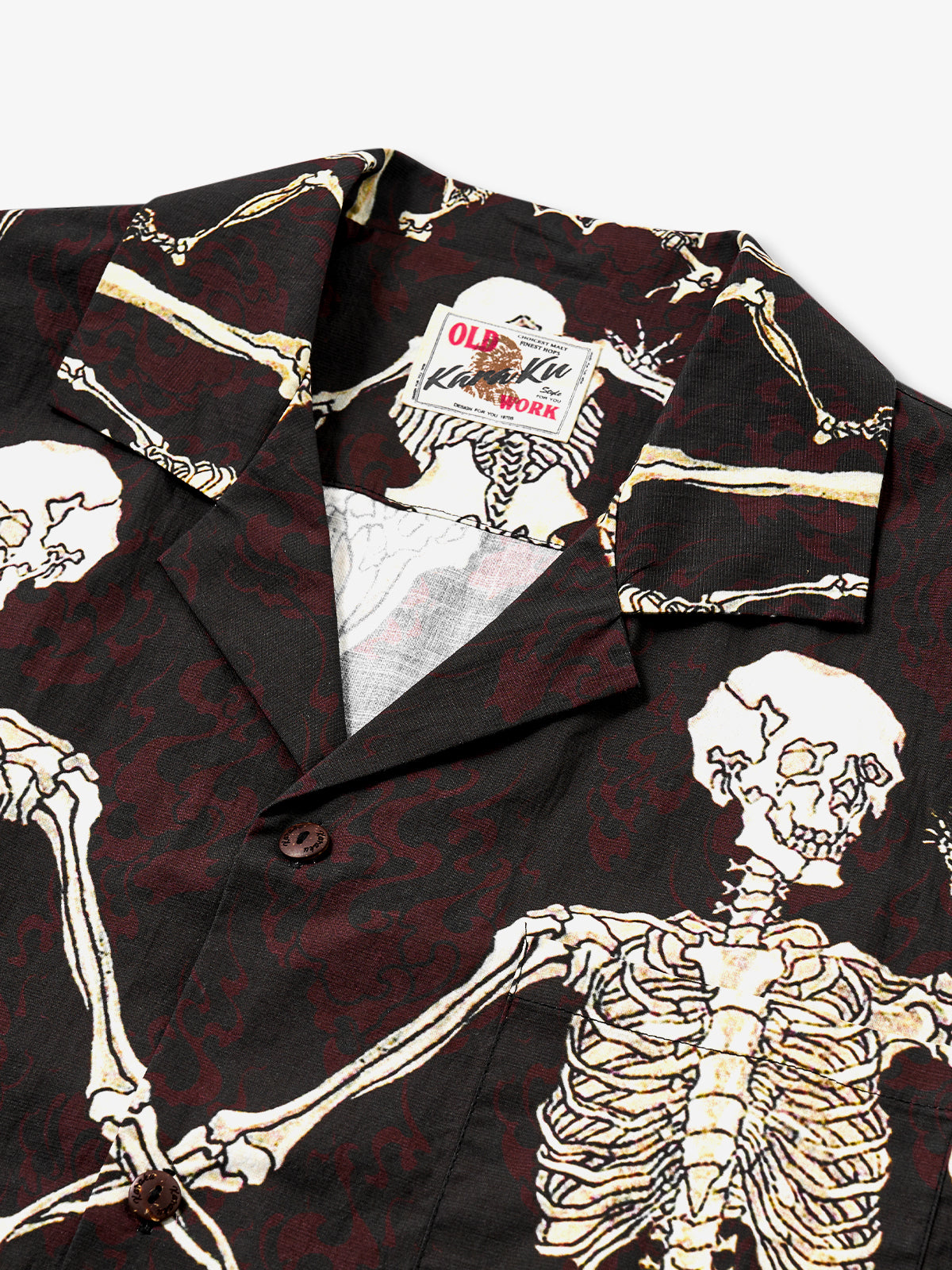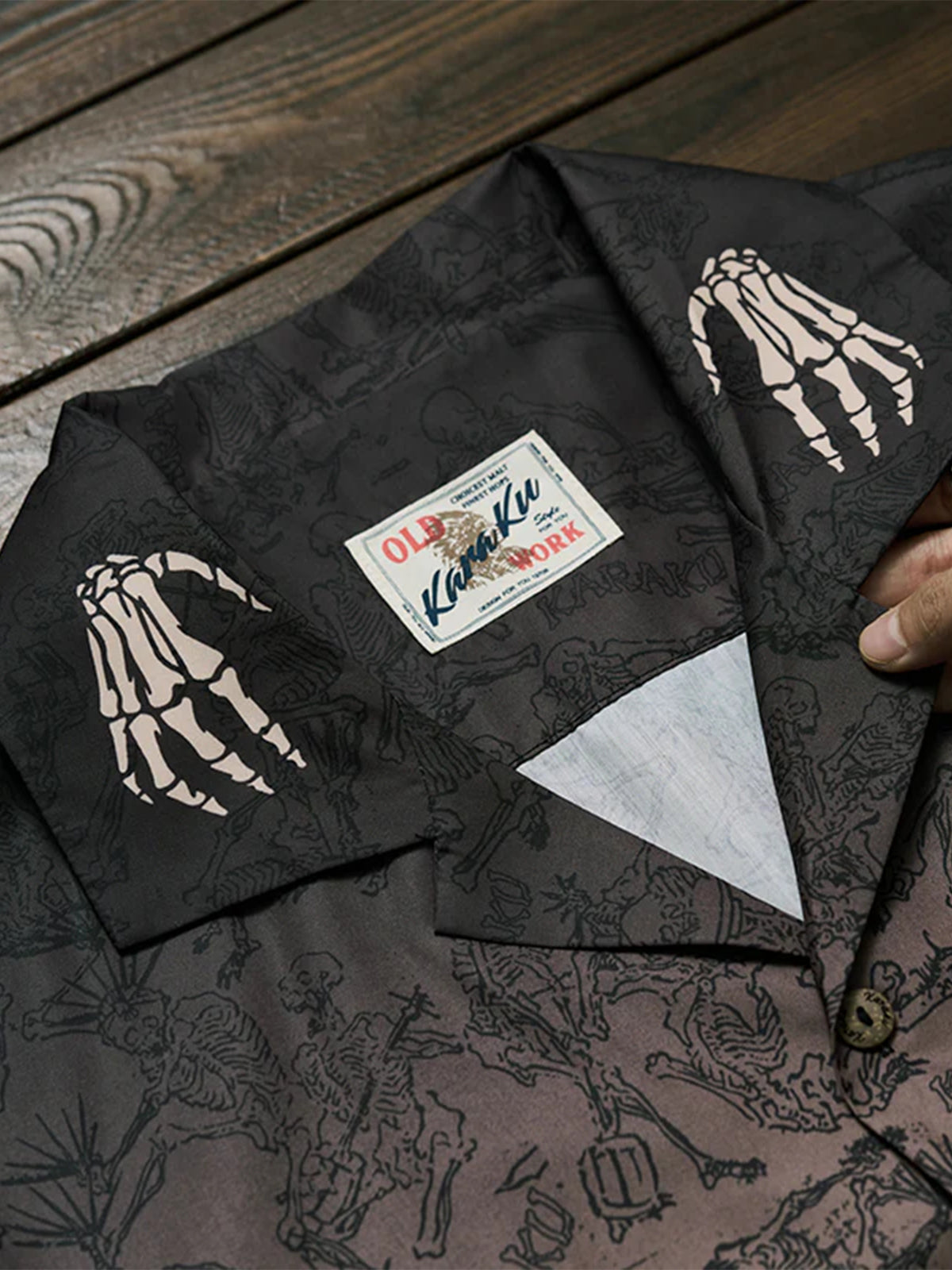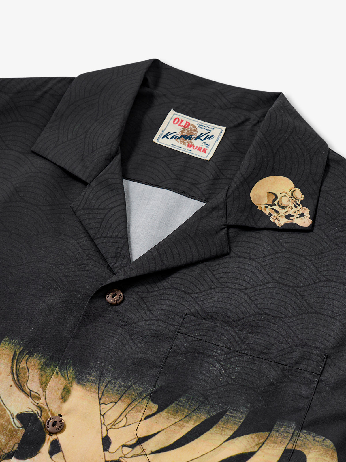 Kyosai Kawanabe "Skulls Enjoy Life" Ukiyo-e Style Aloha Shirt