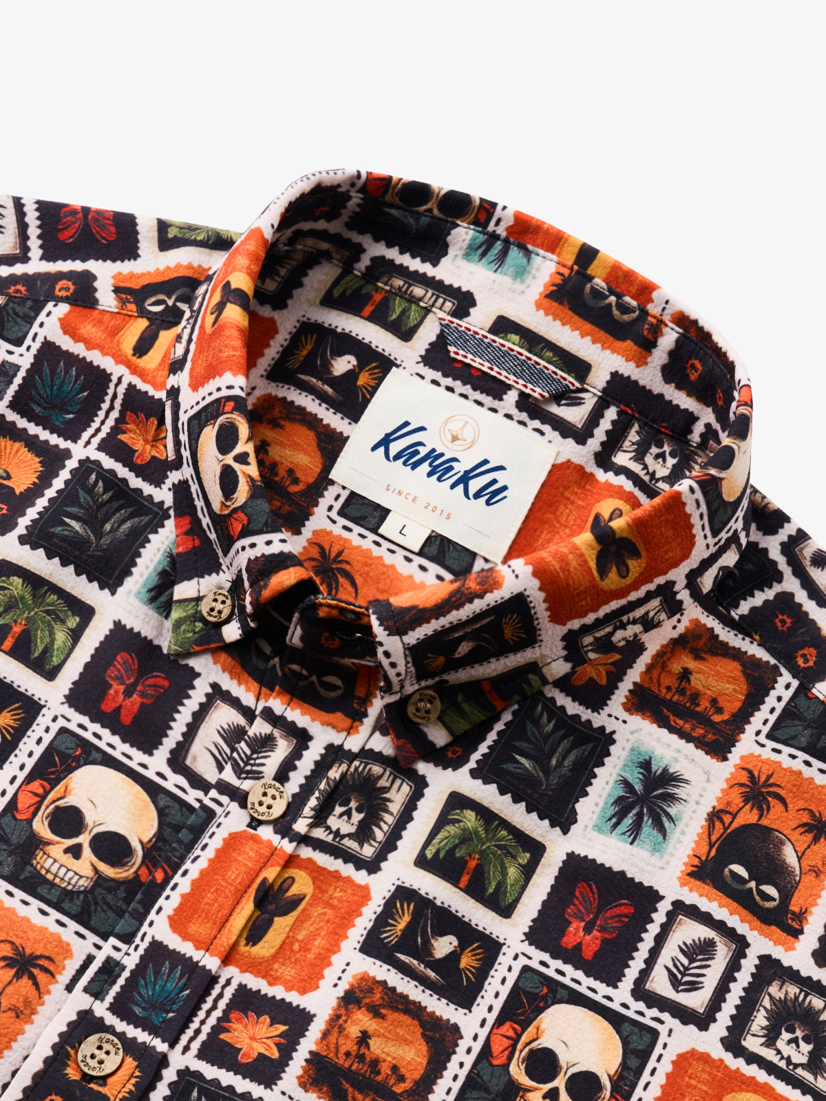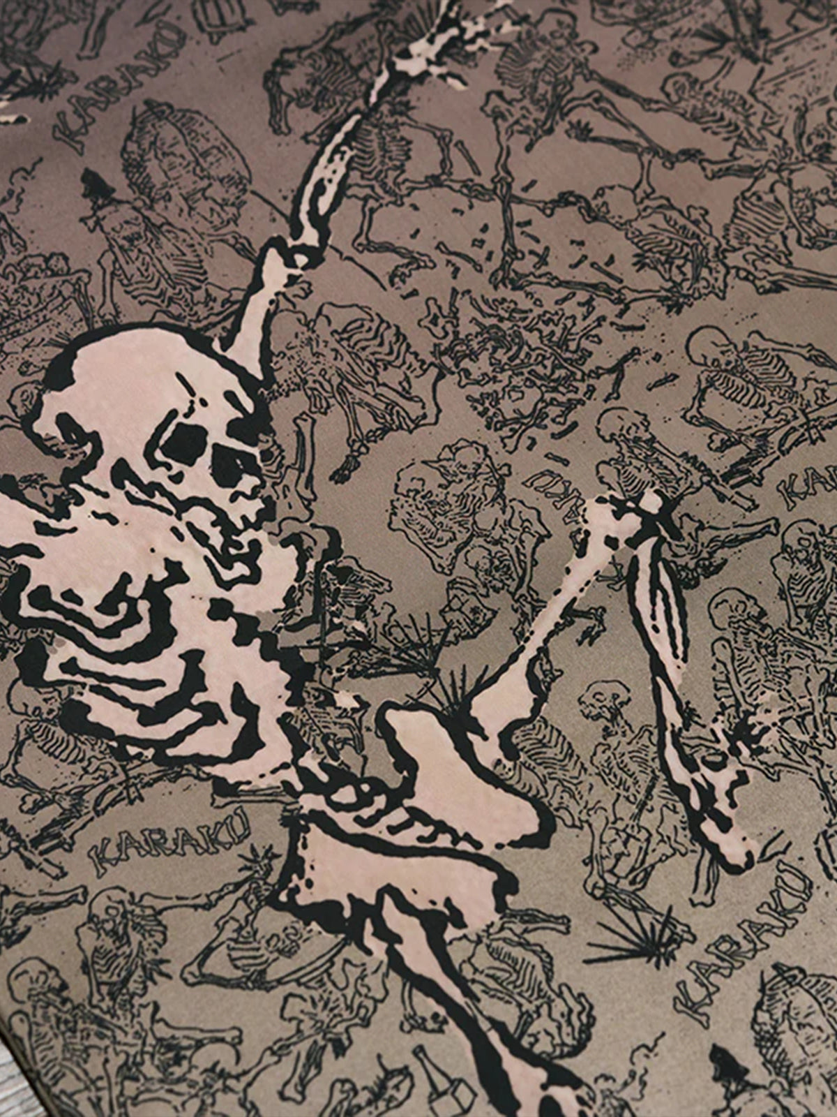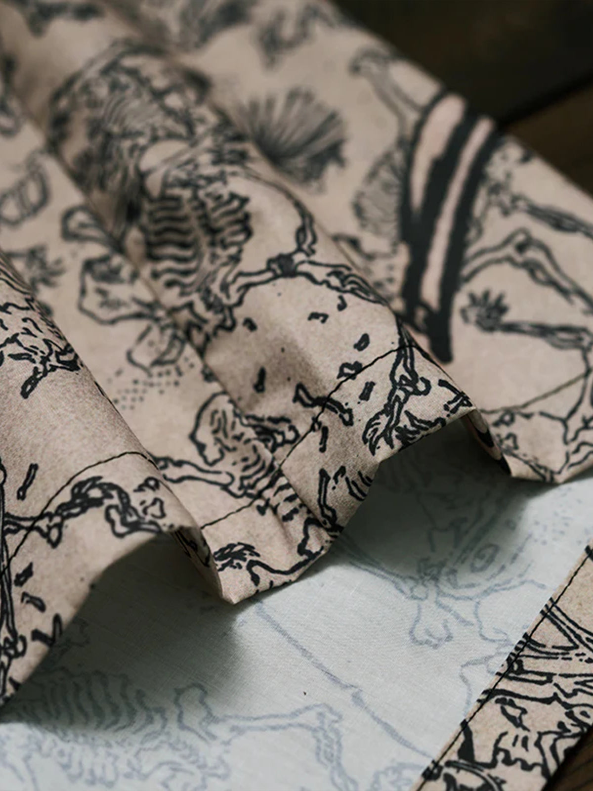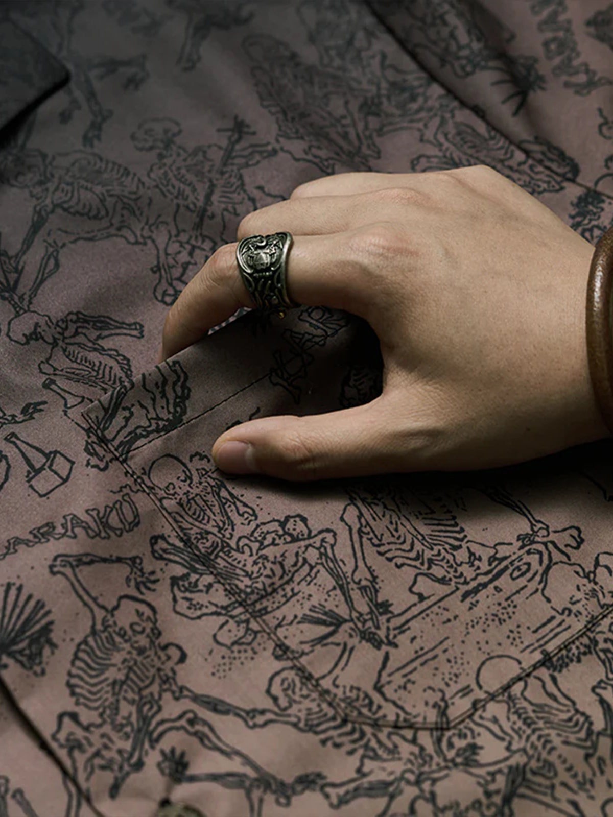 Kyosai Kawanabe "Skulls Enjoy Life" Ukiyo-e Style Aloha Shirt