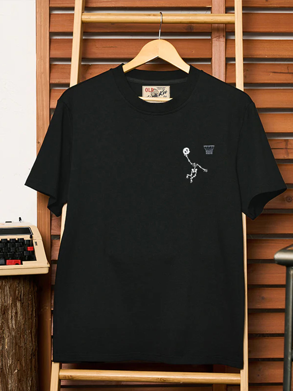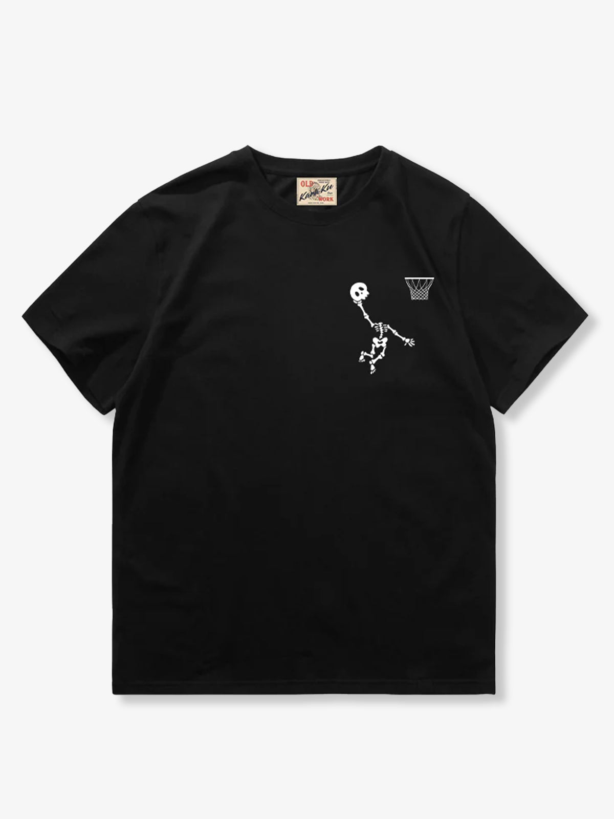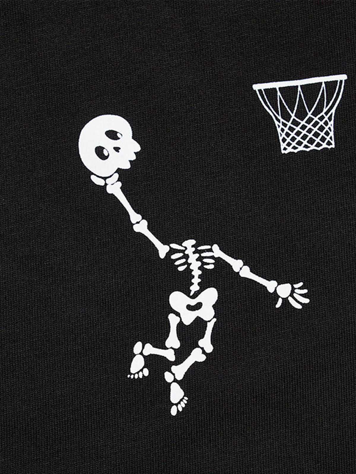 'Skeleton Scoring Dunk' Printed Cotton Short Sleeve T-Shirt