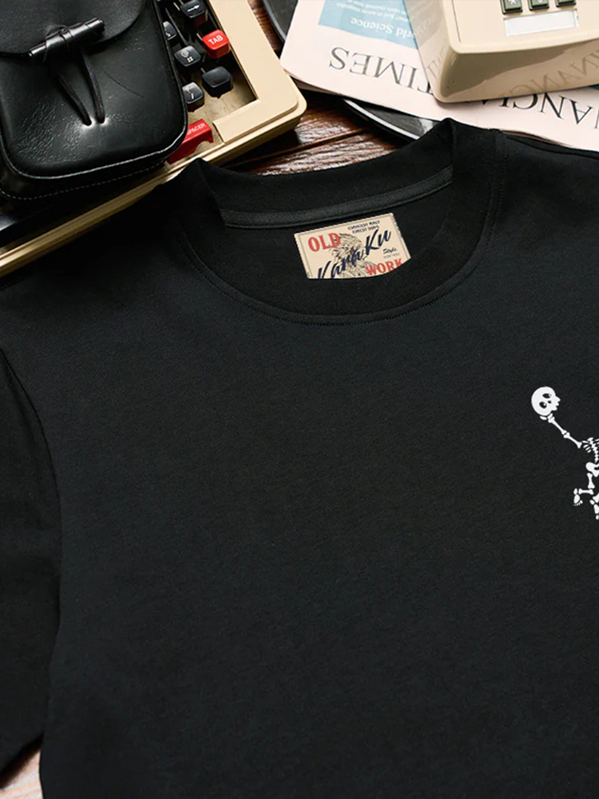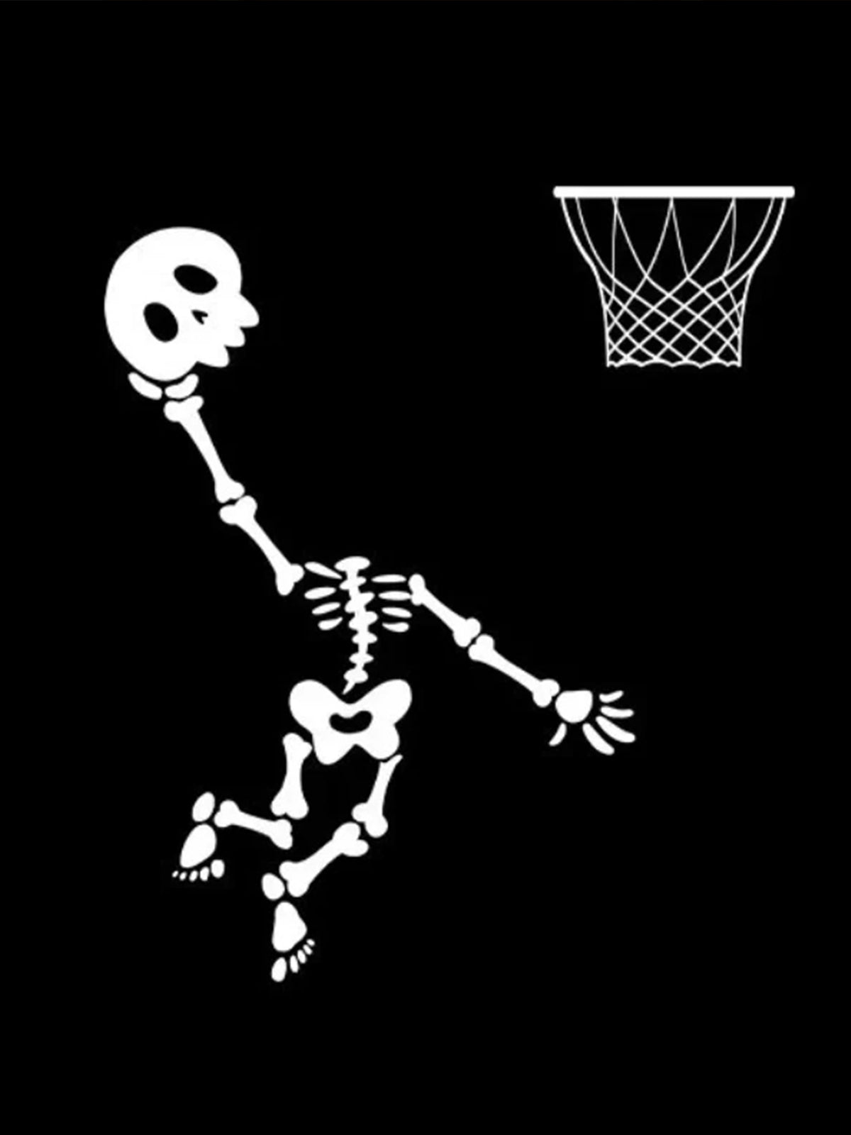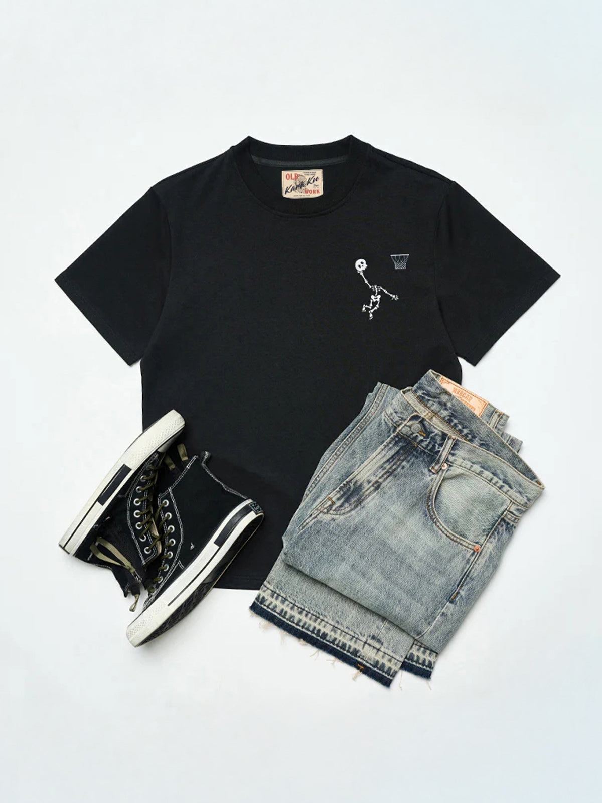 'Skeleton Scoring Dunk' Printed Cotton Short Sleeve T-Shirt