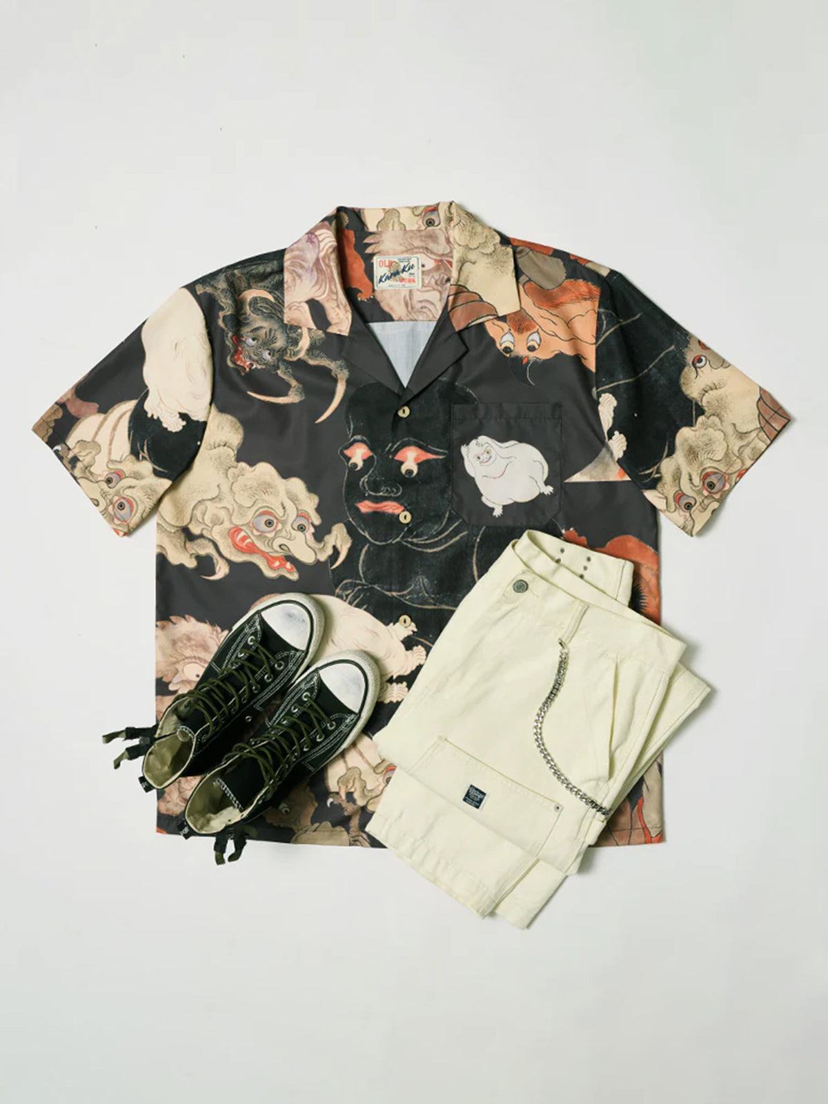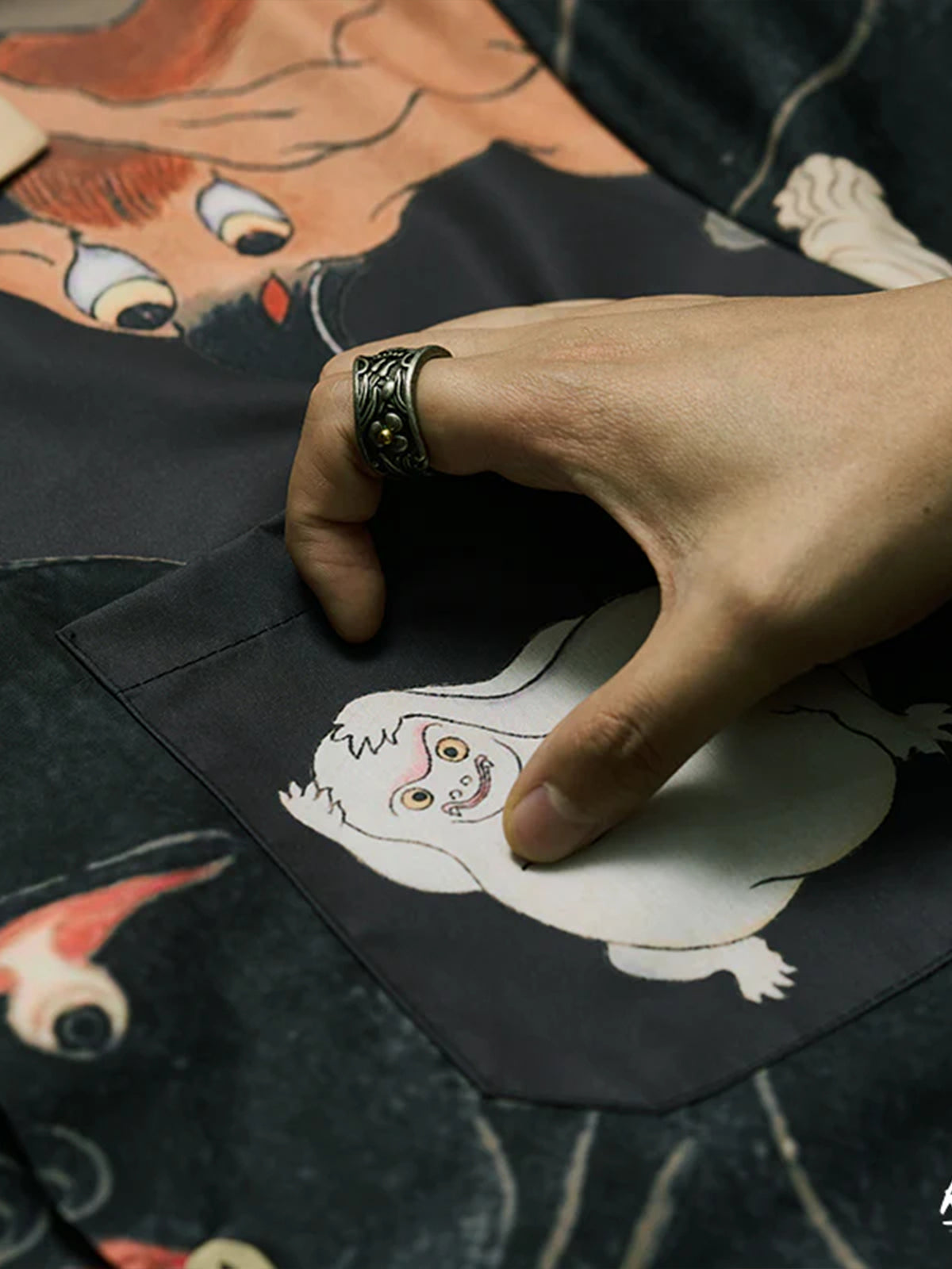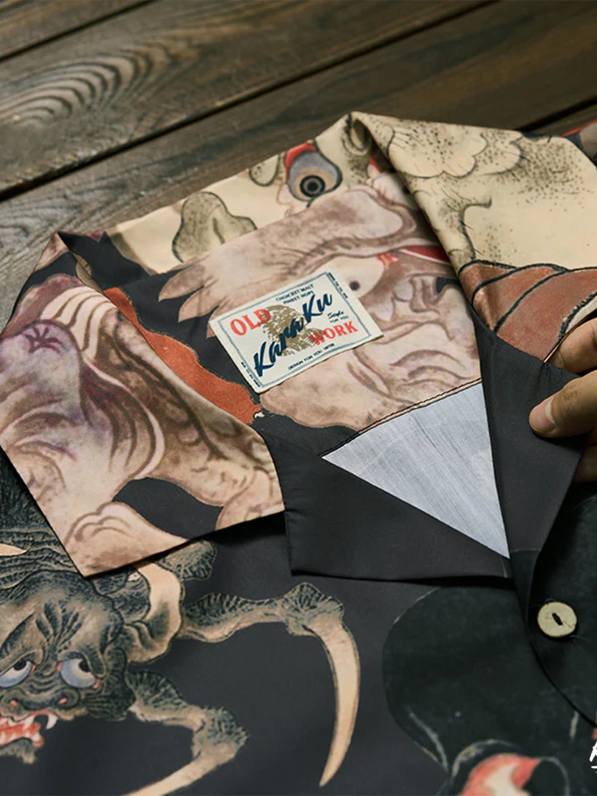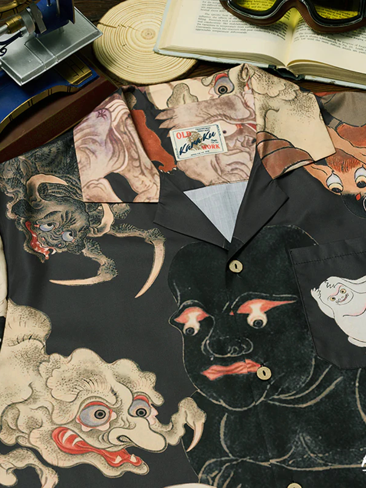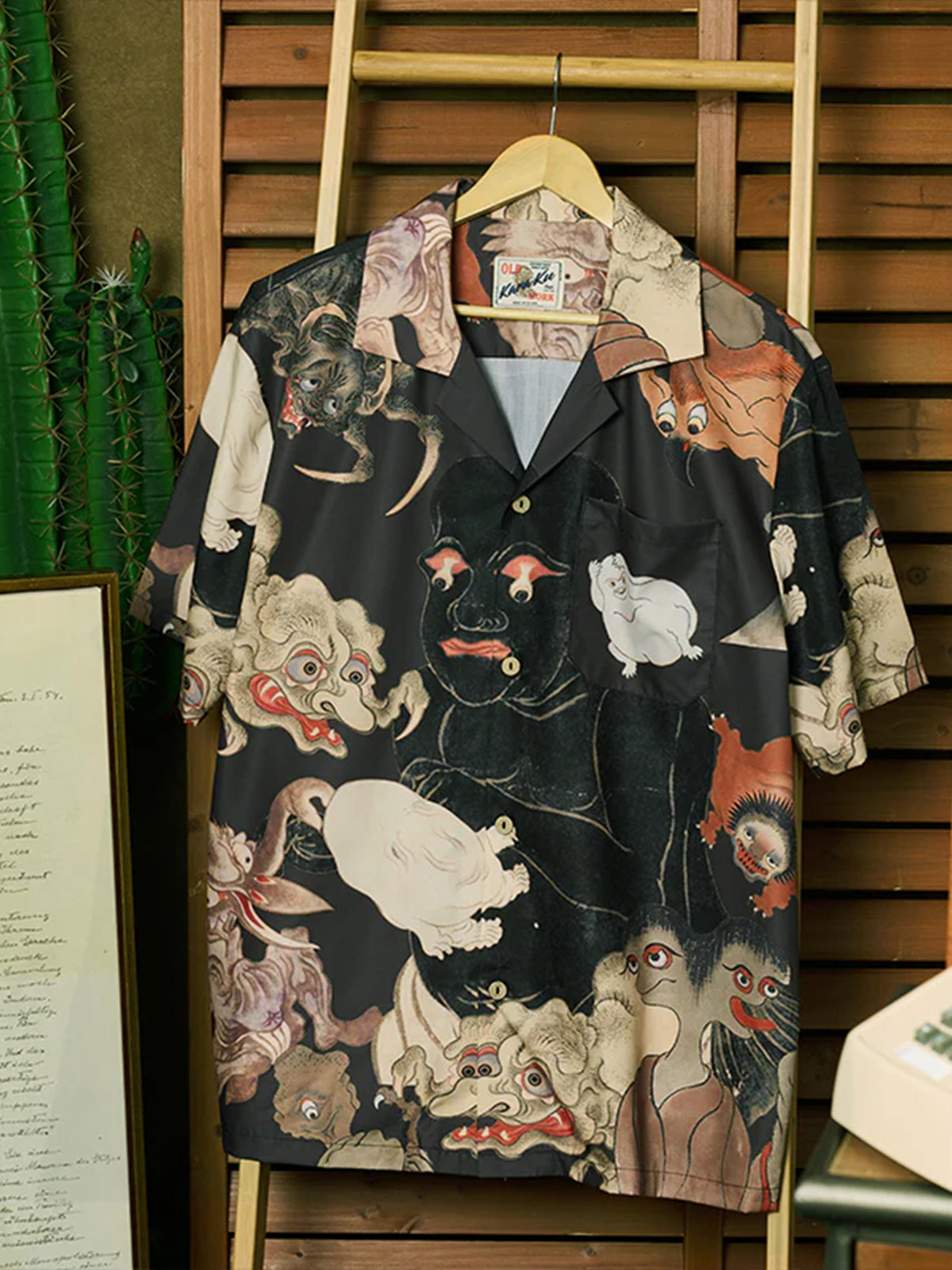 Edo Period "Yokai Encyclopedia" Ukiyoe Aloha Shirt