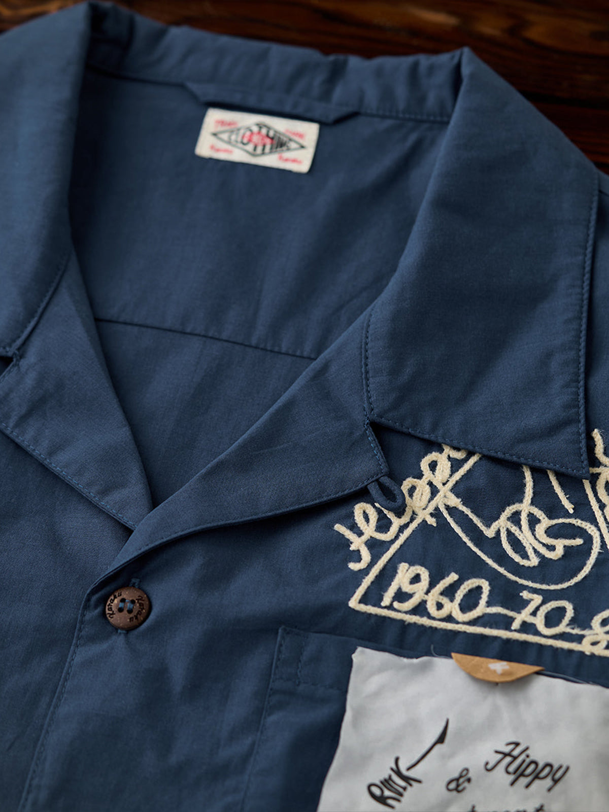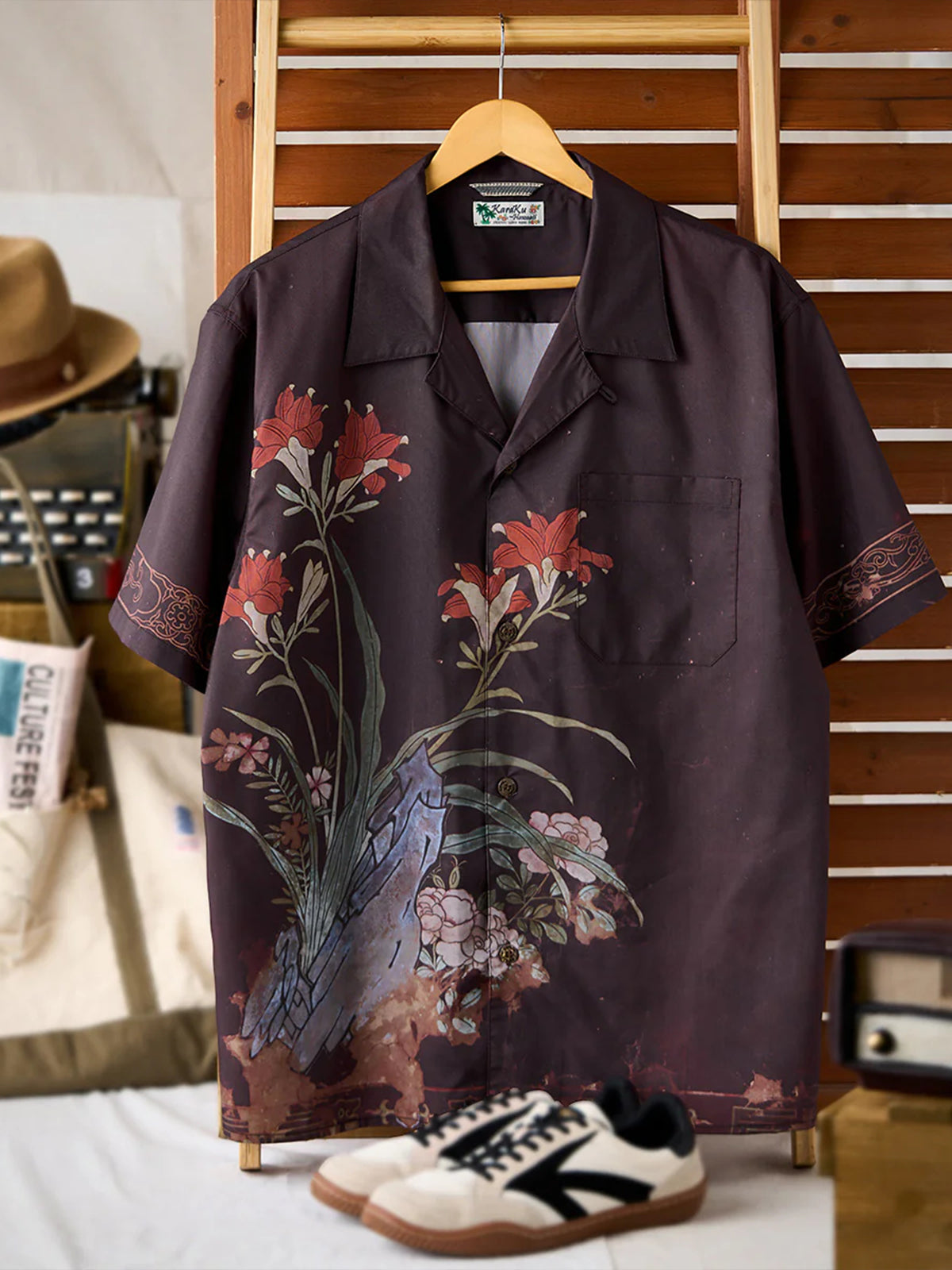 Print "Forget-me-not, blooming among the rocks" Open Collar Shirt