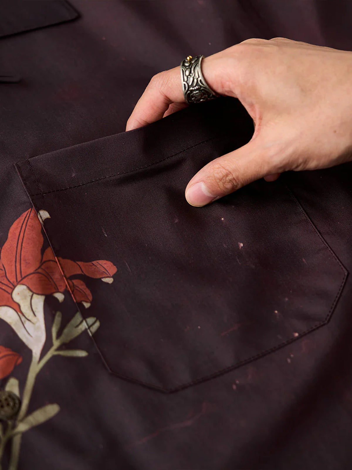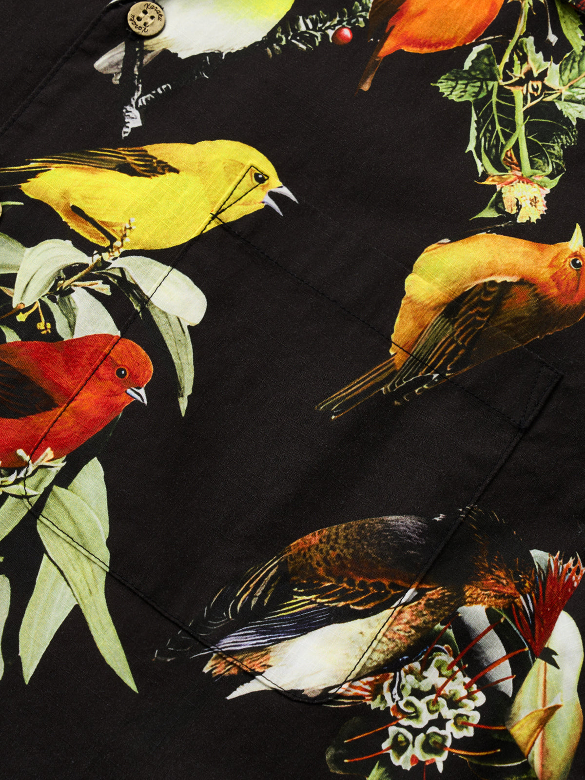 Hawaiian '�hi'a Lehua & I'iwi Bird Cotton Shirt
