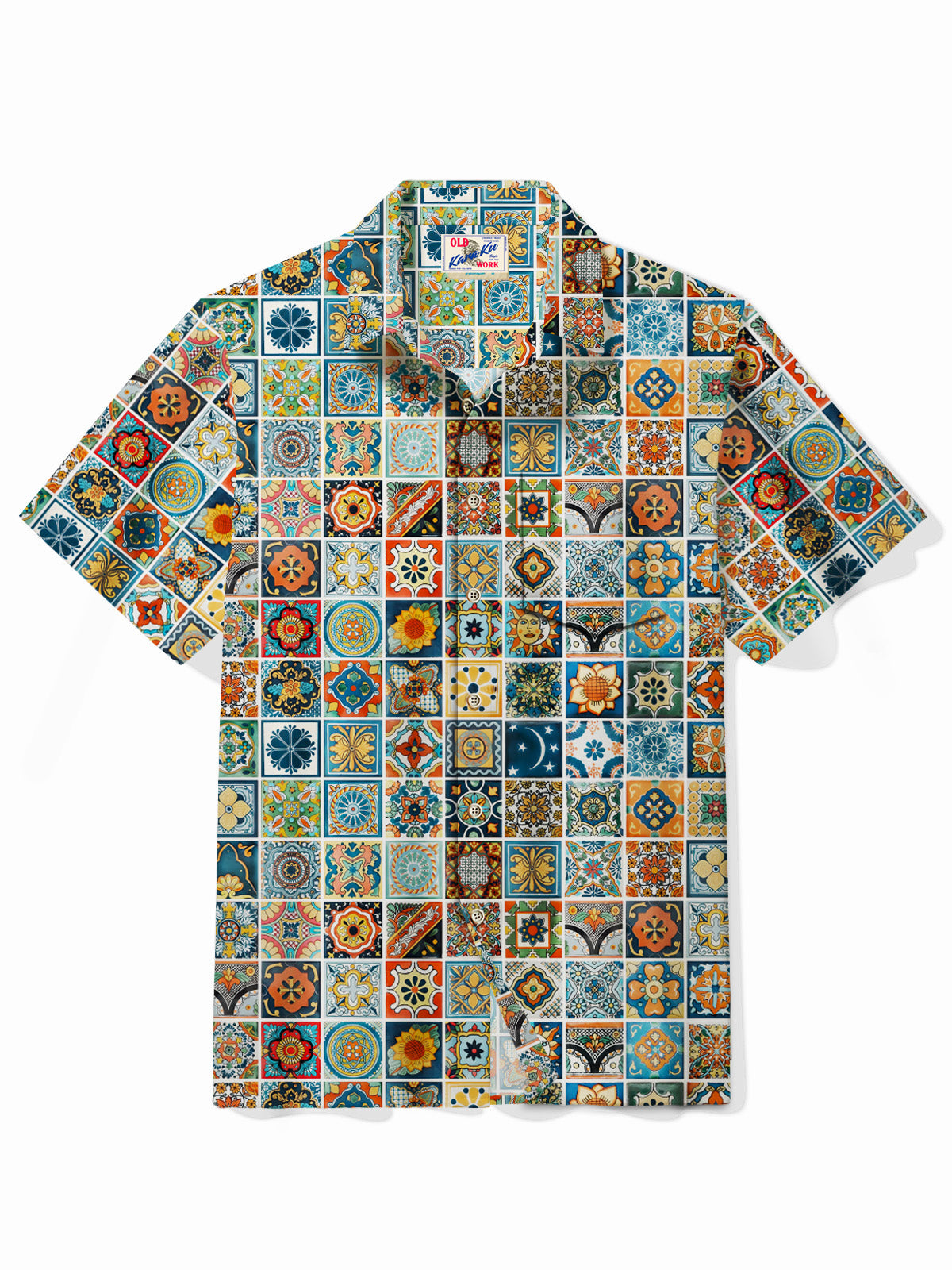 Men's Vintage Textured Print Casual Shirt (With Pockets)