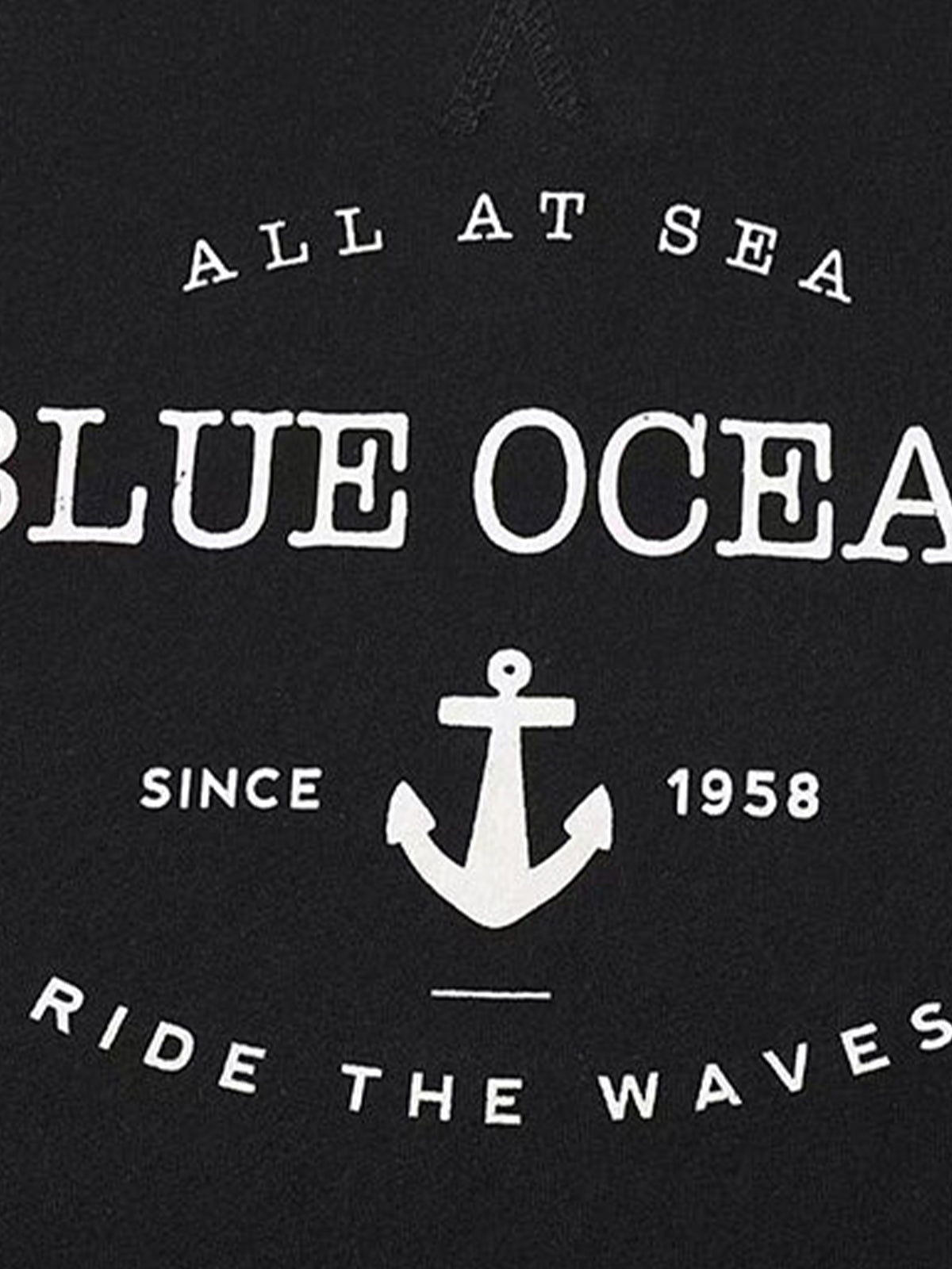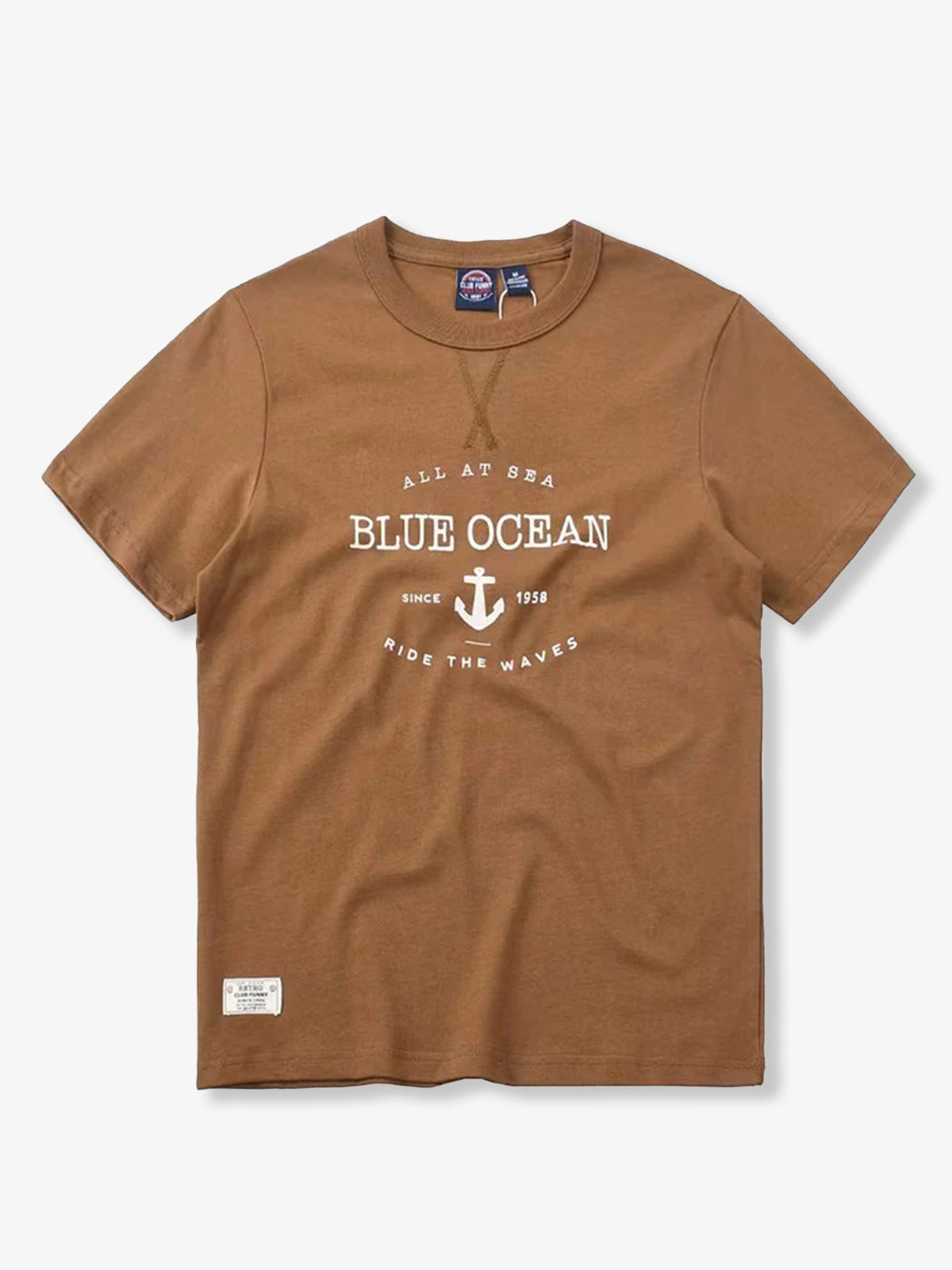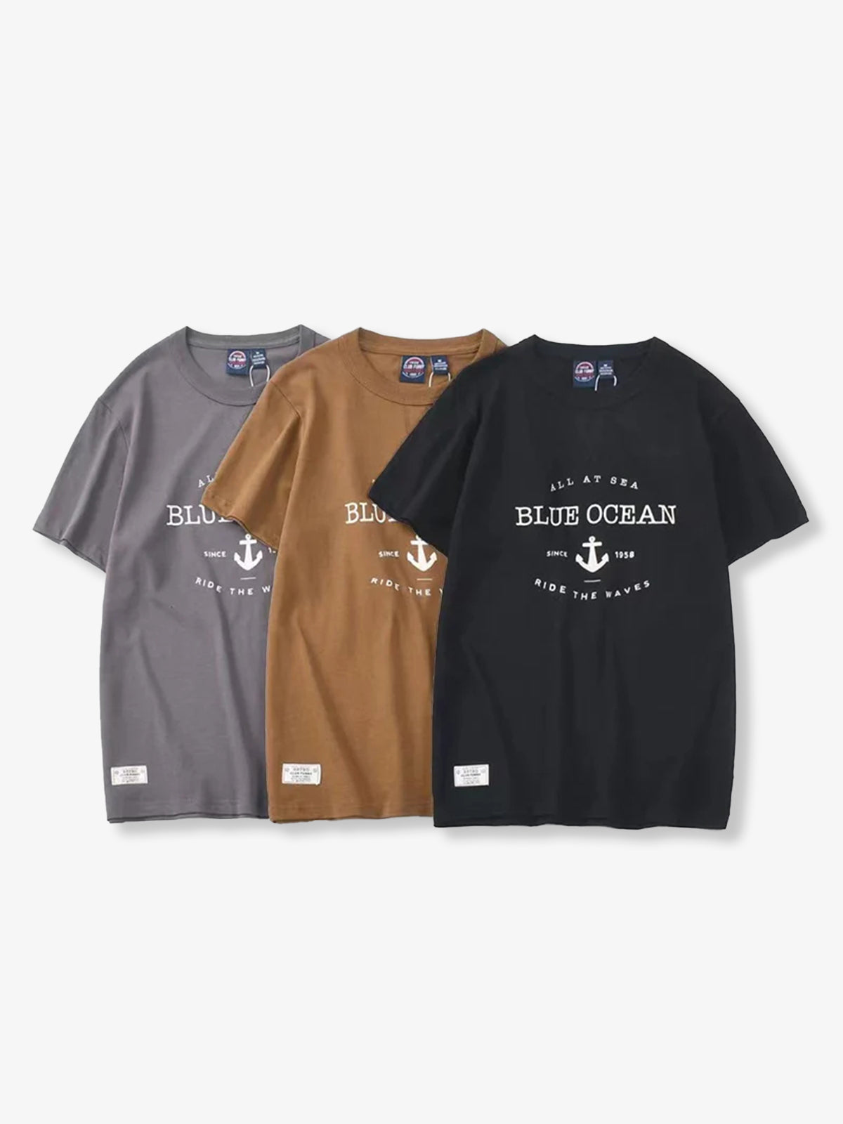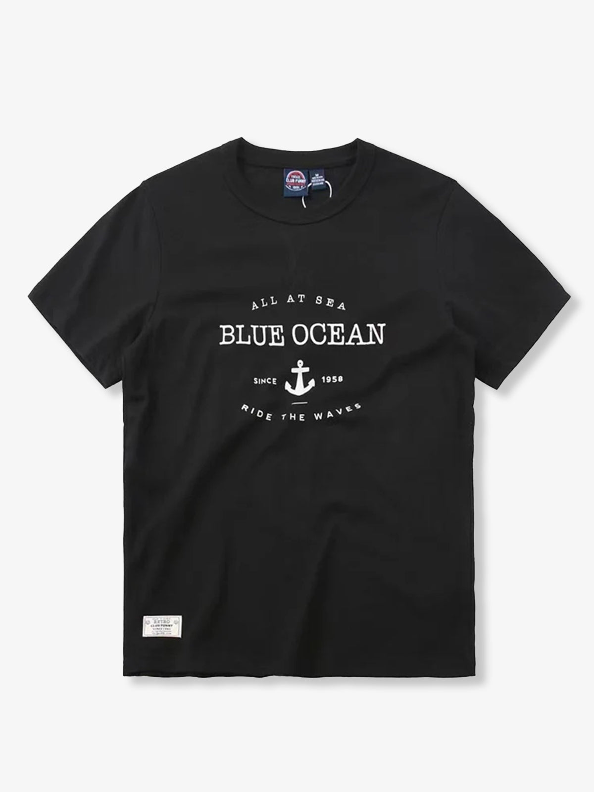 'Blue Ocean' Vintage Anchor Pull-out Print Cotton T-shirt