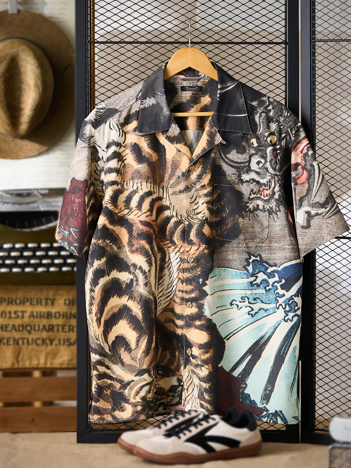 Utagawa Kuniyoshi "Tiger Dragon / Bird Diagram Society" Ukiyo-e Aloha Shirt
