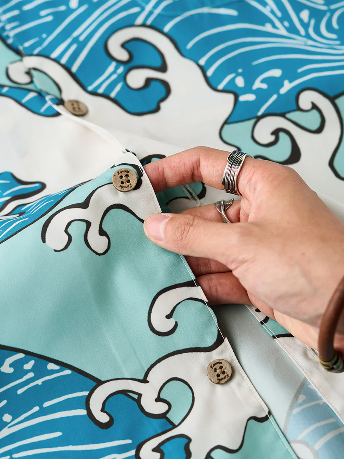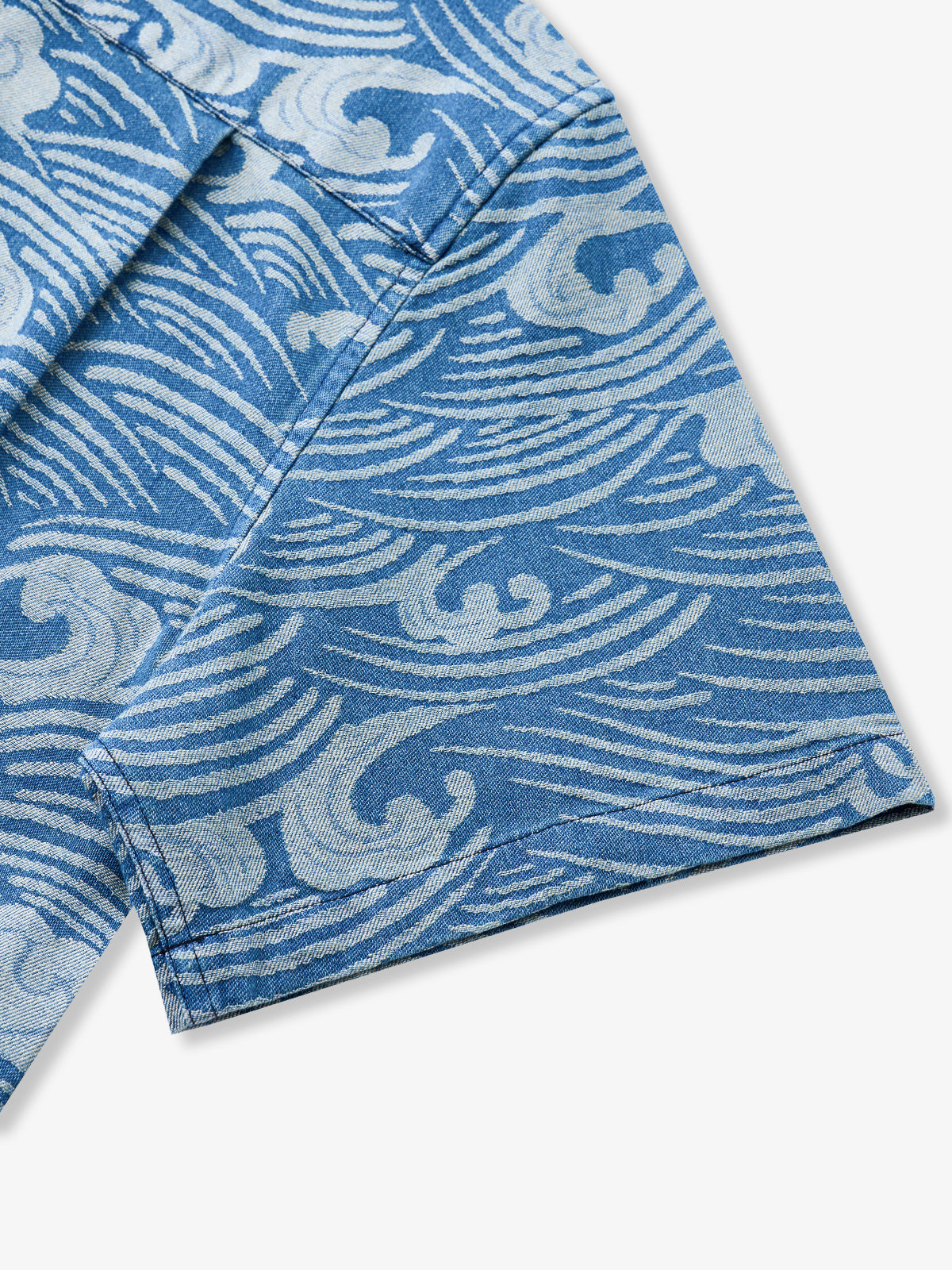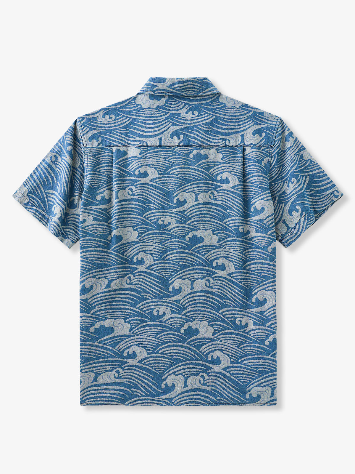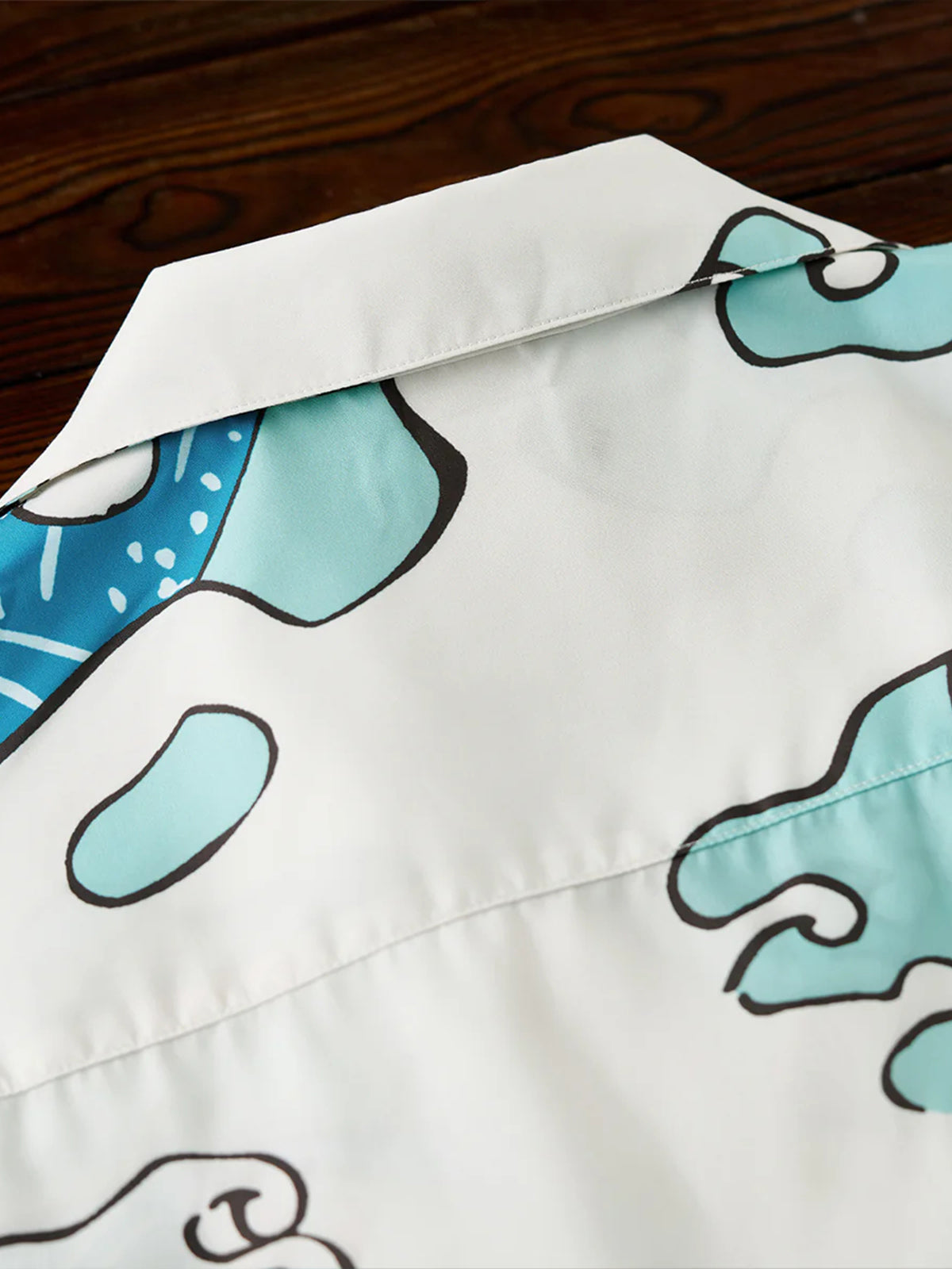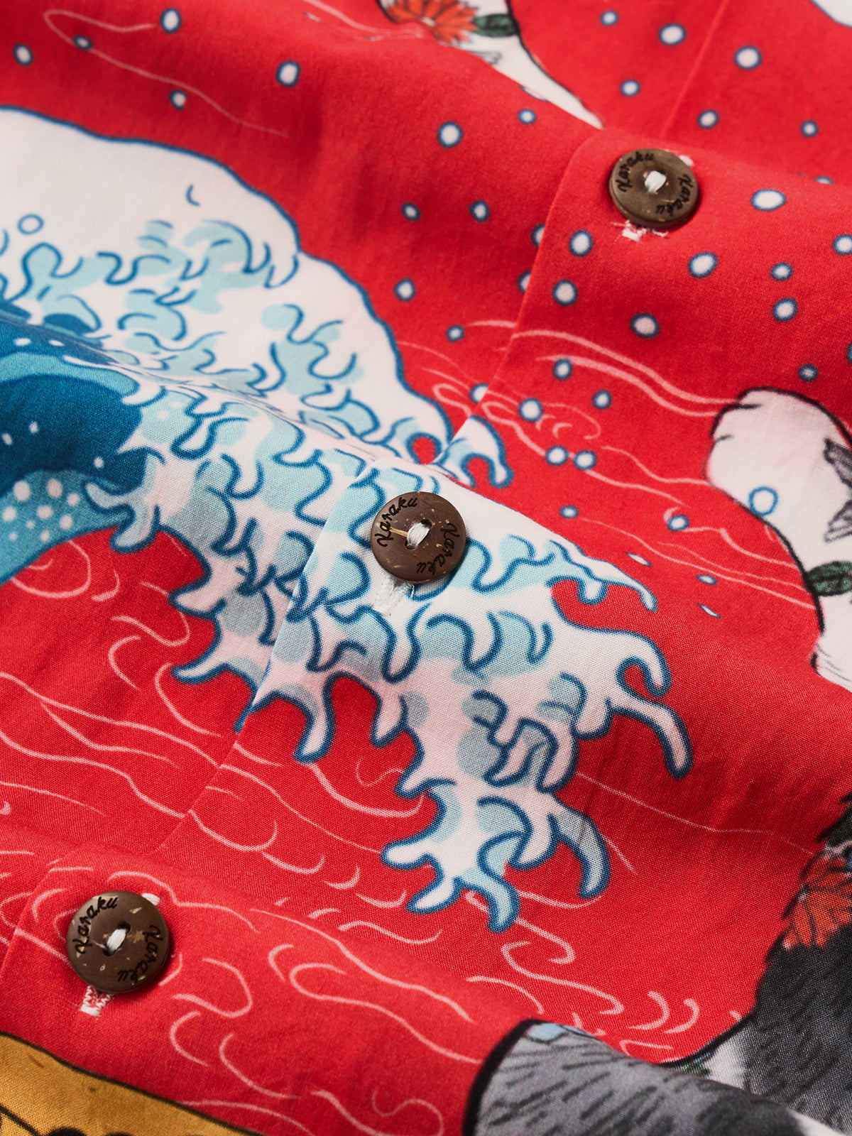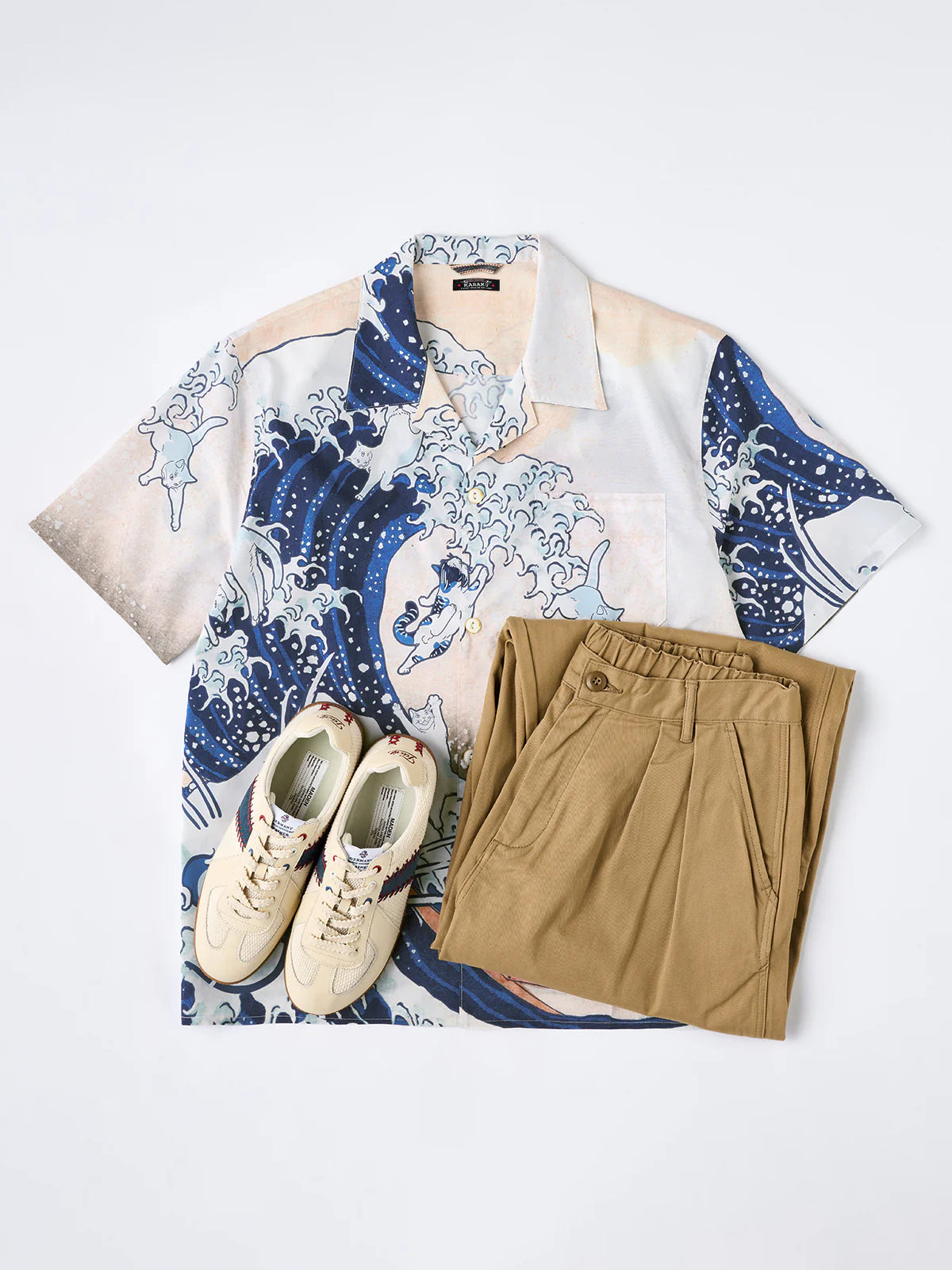 "Aonamizu" Ukiyo-e Print Short-sleeved Open Collar Shirt