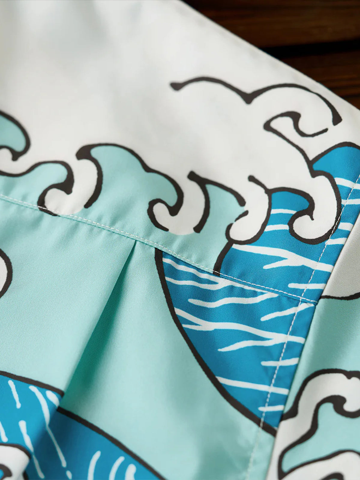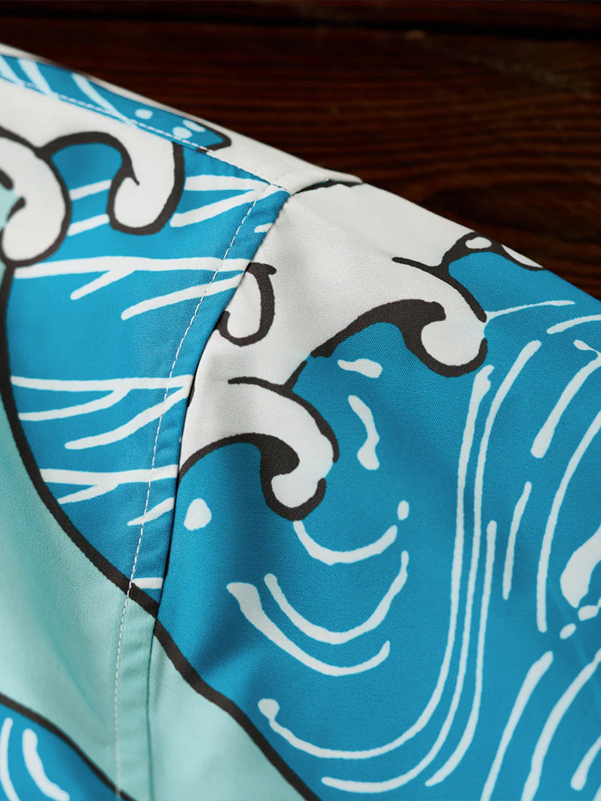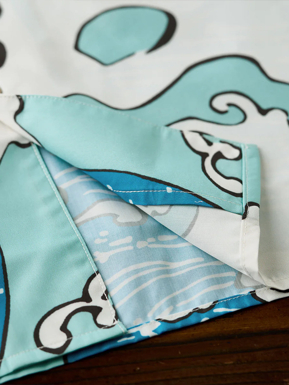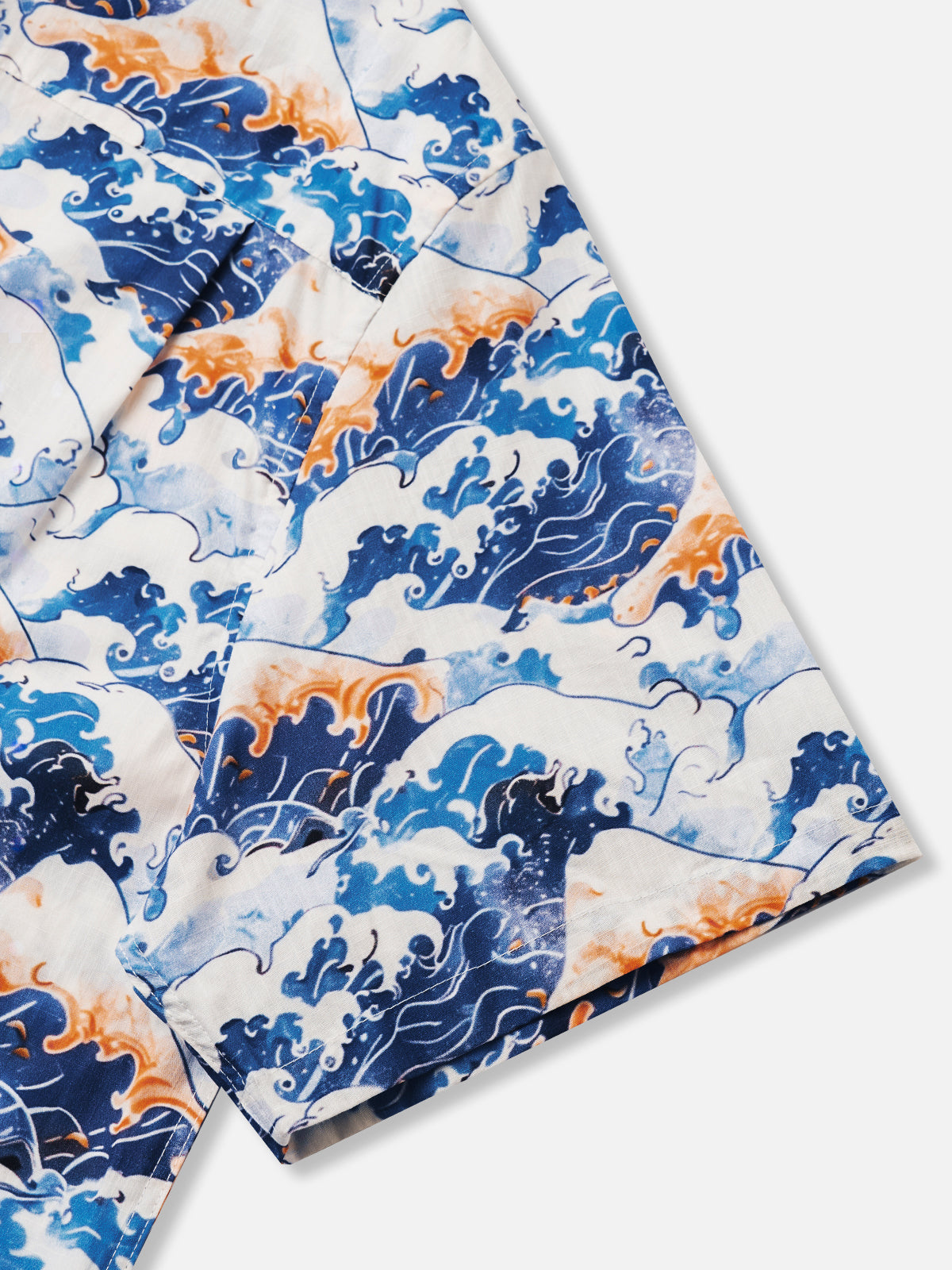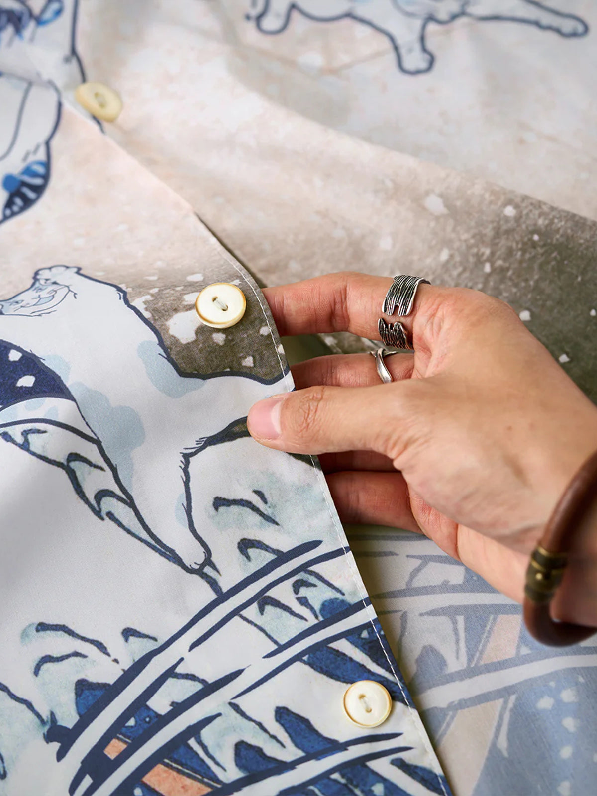 "Aonamizu" Ukiyo-e Print Short-sleeved Open Collar Shirt