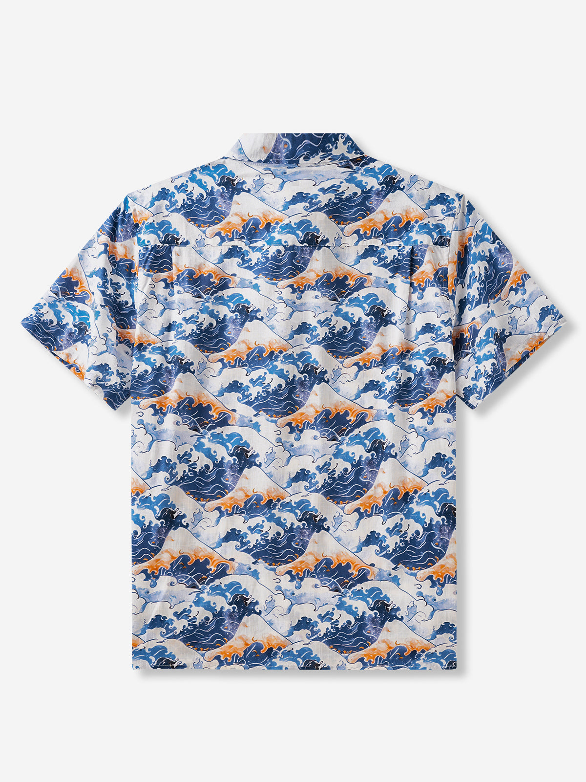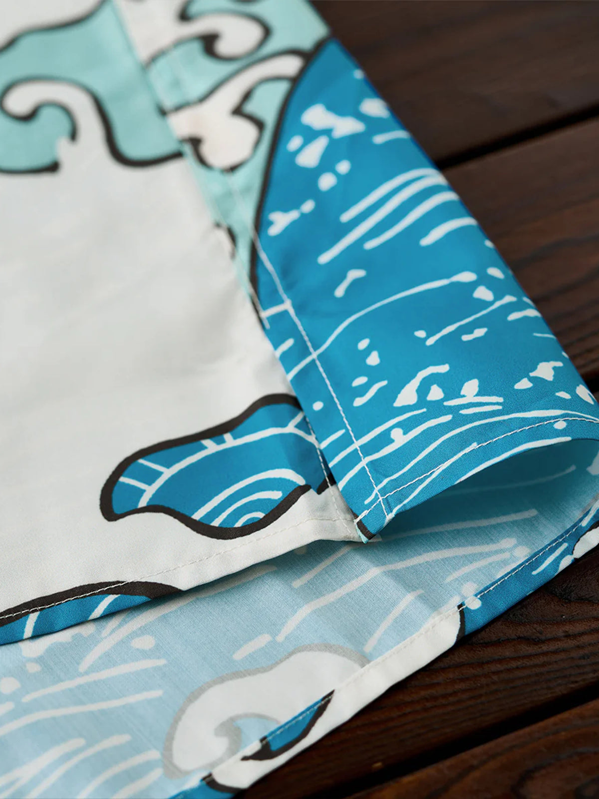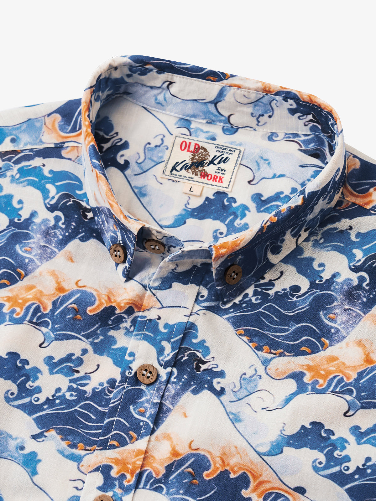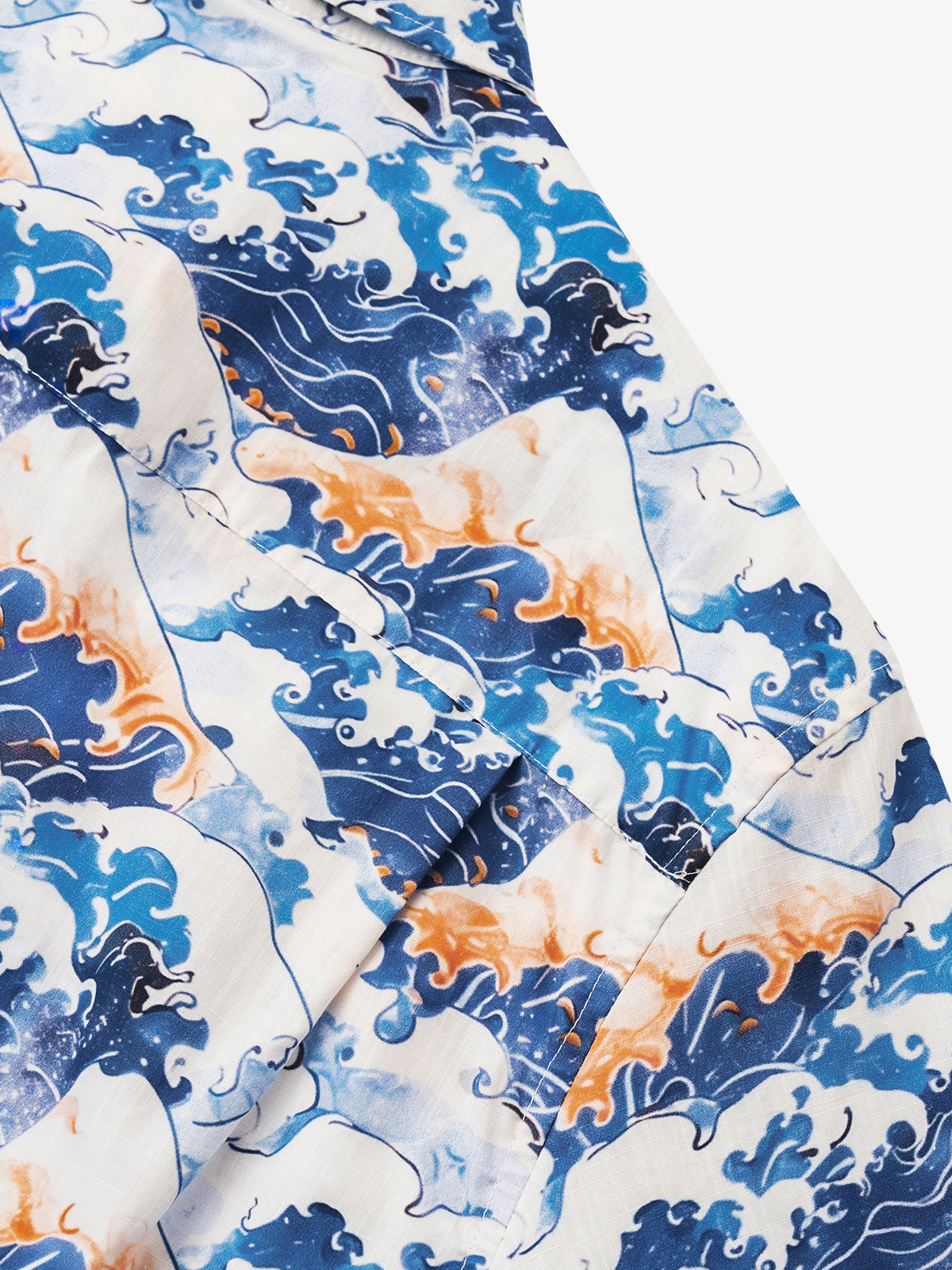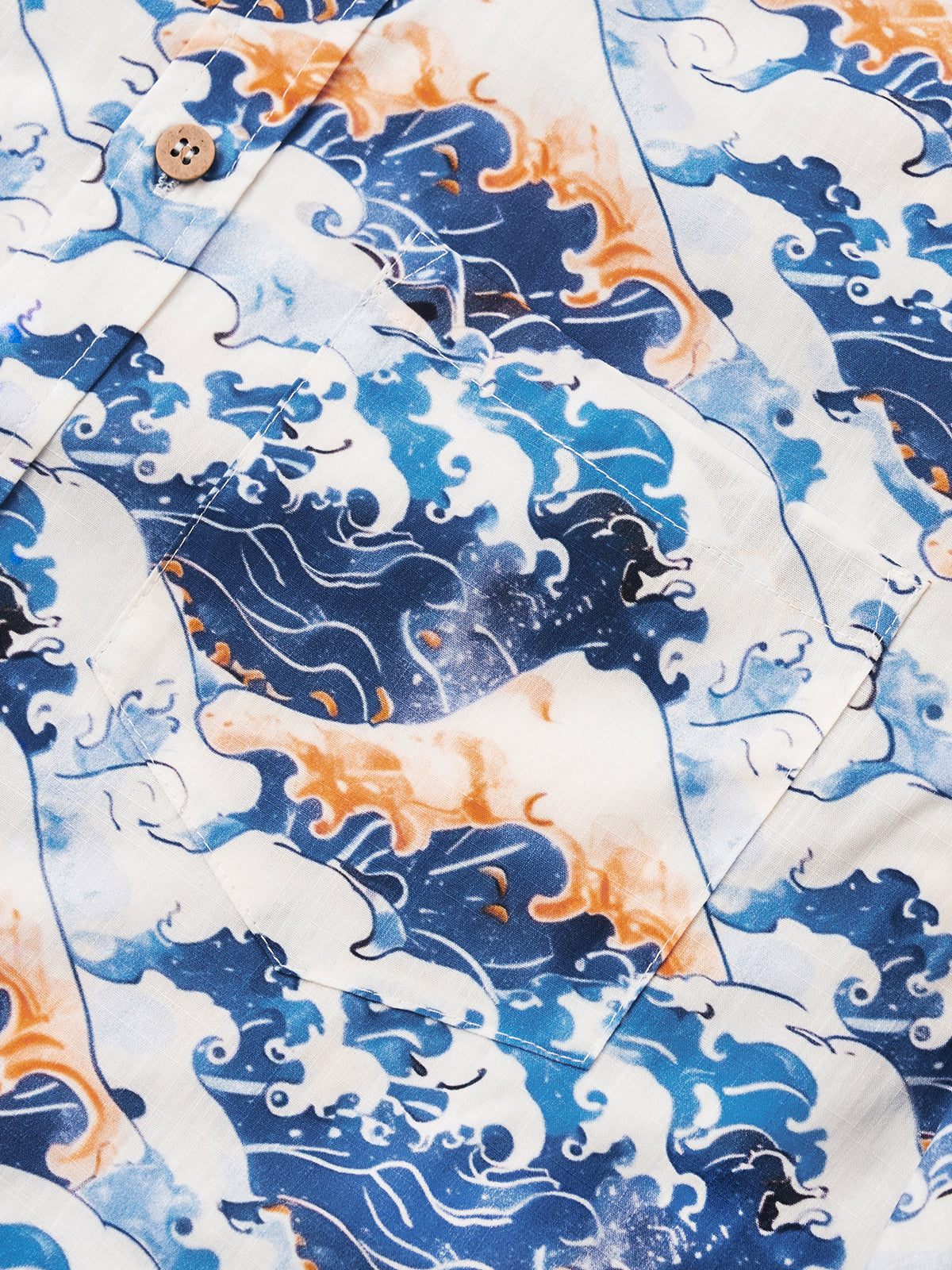 "Aonamizu" Ukiyo-e Print Short-sleeved Open Collar Shirt