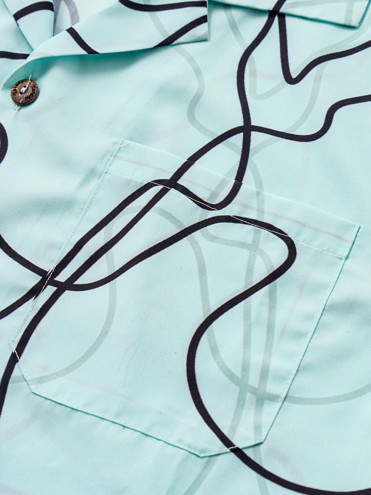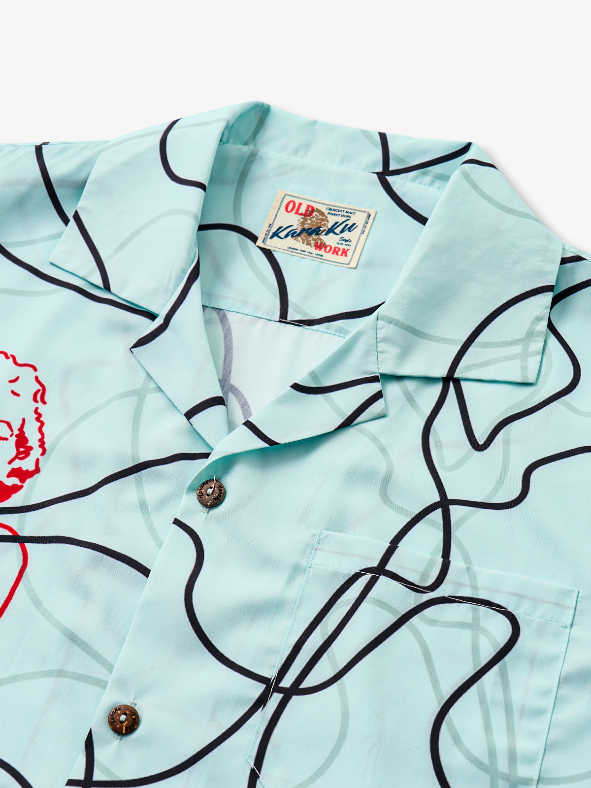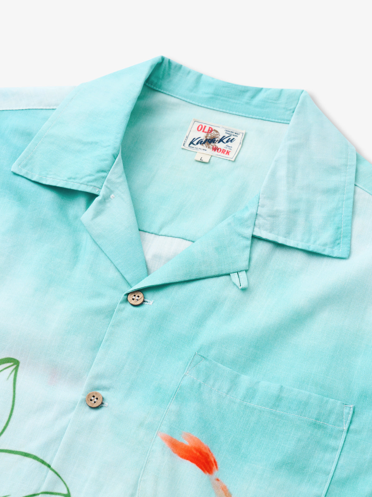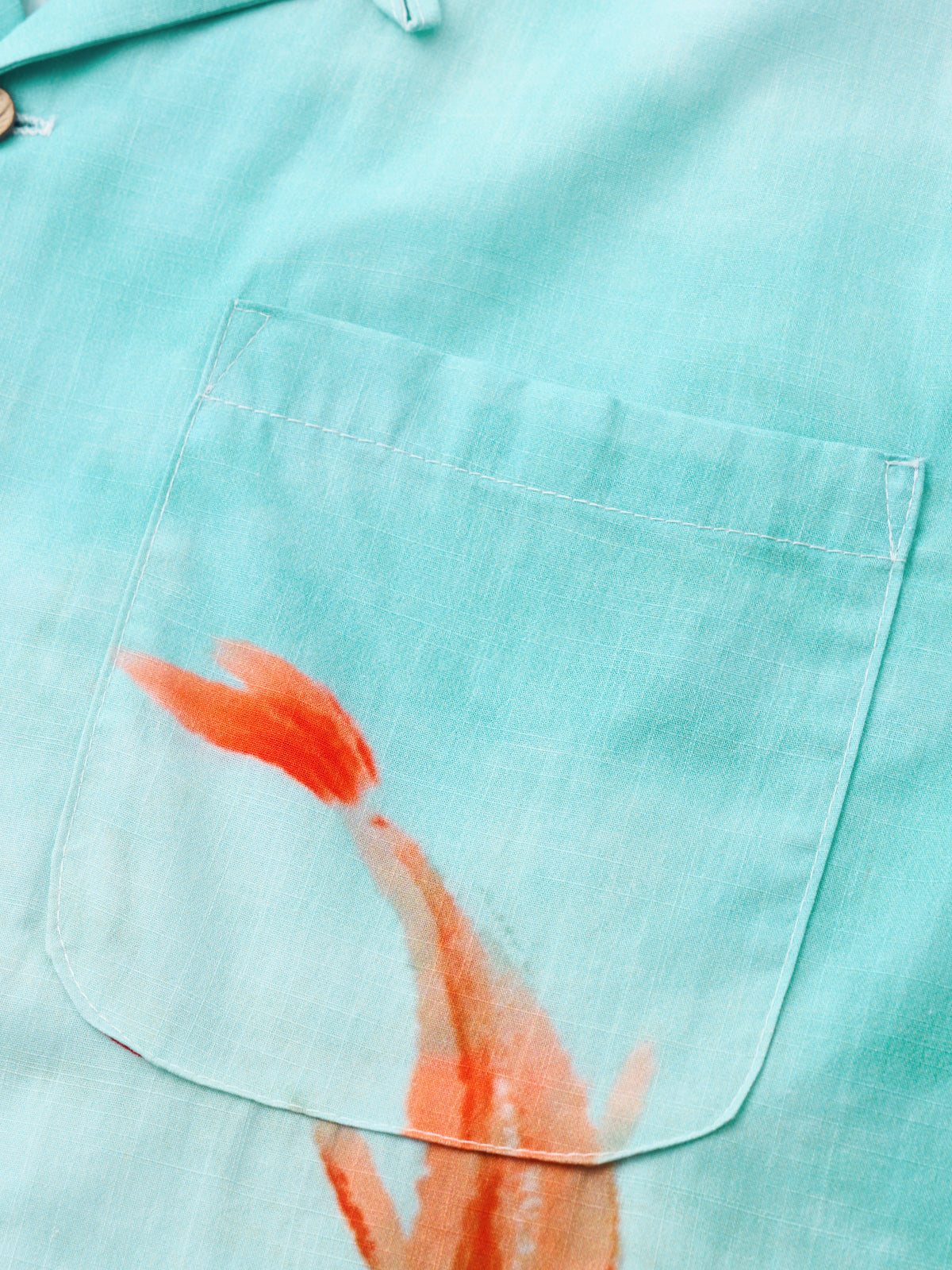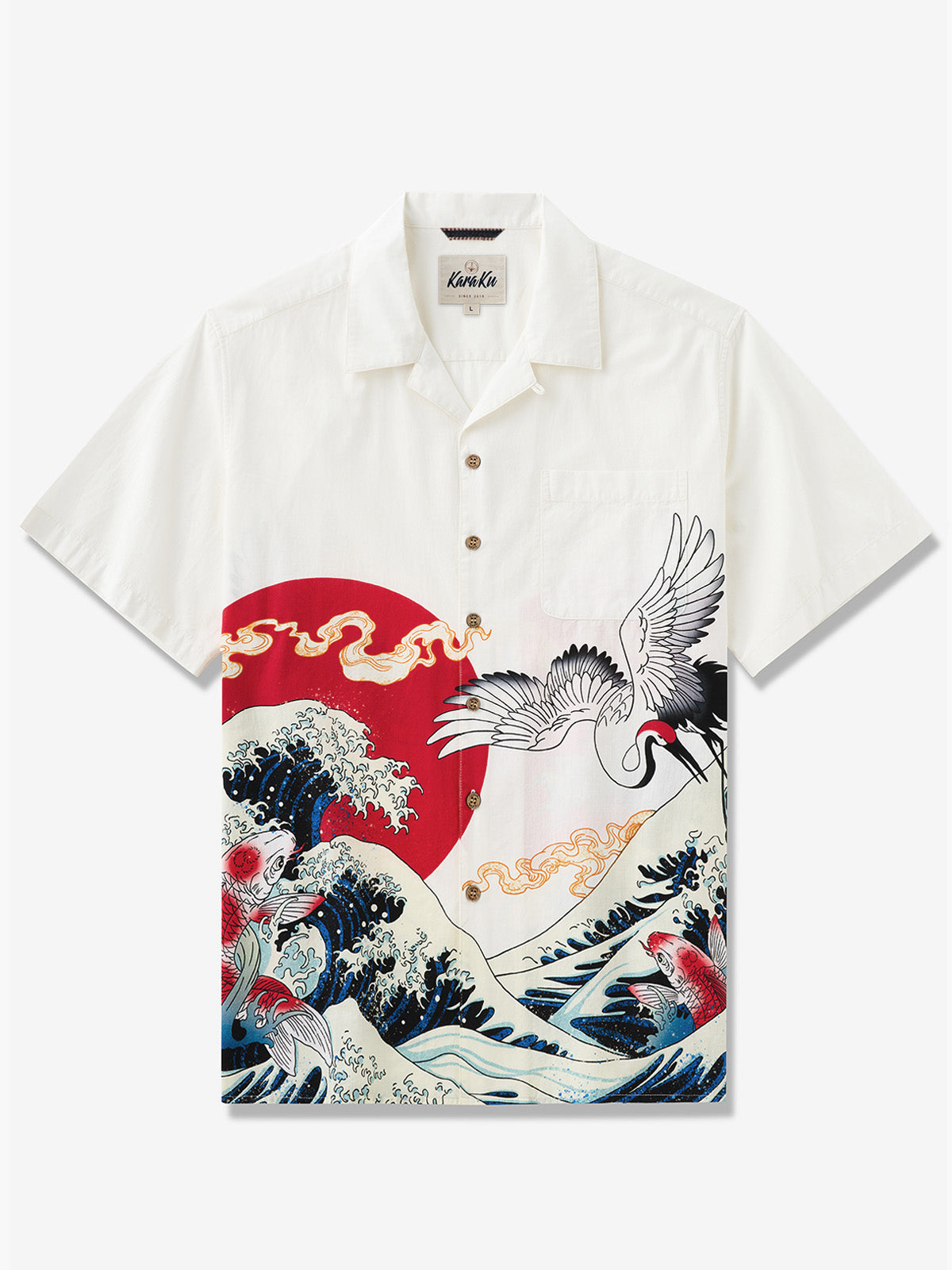 "Aonamizu" Ukiyo-e Print Short-sleeved Open Collar Shirt