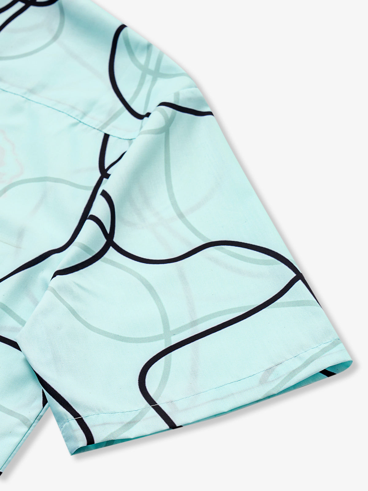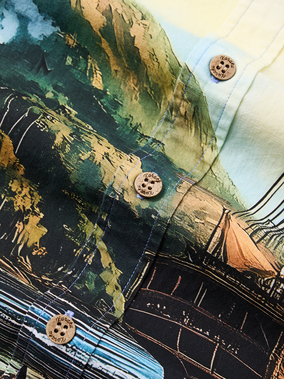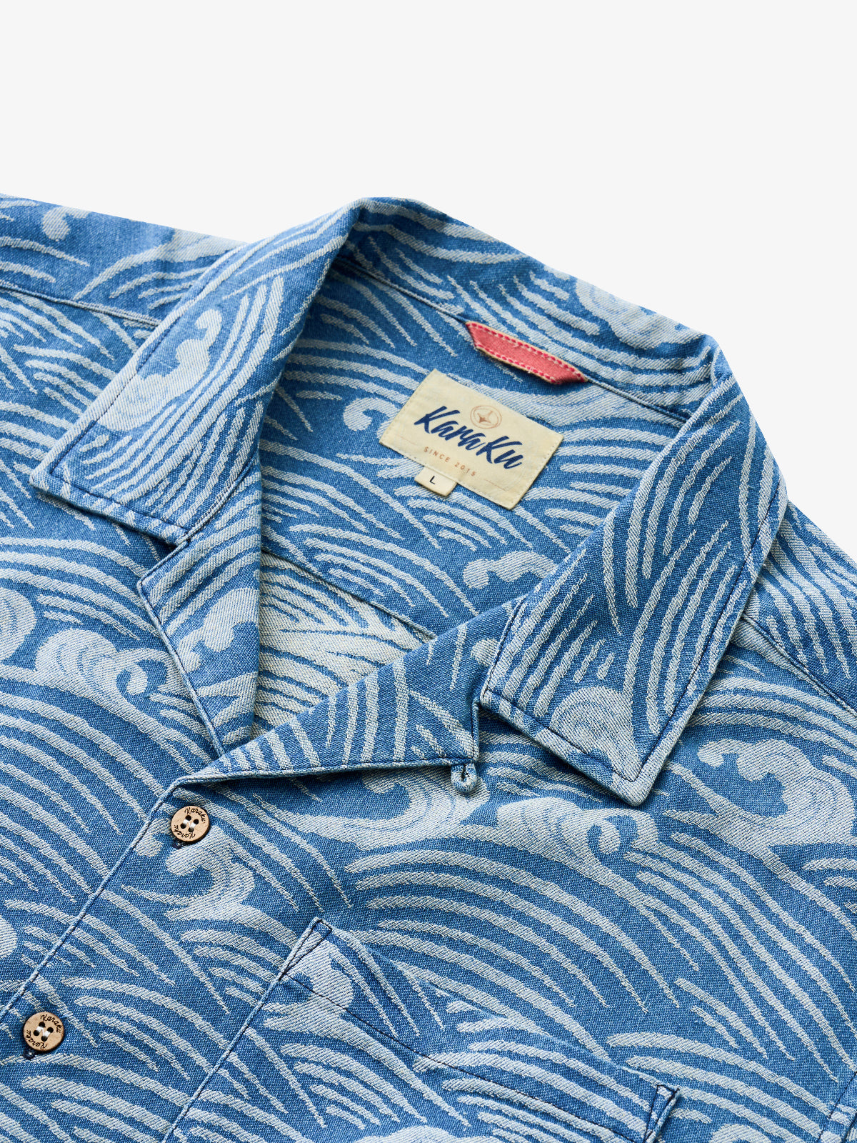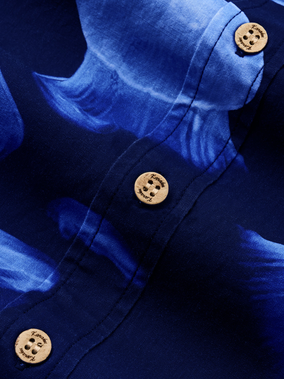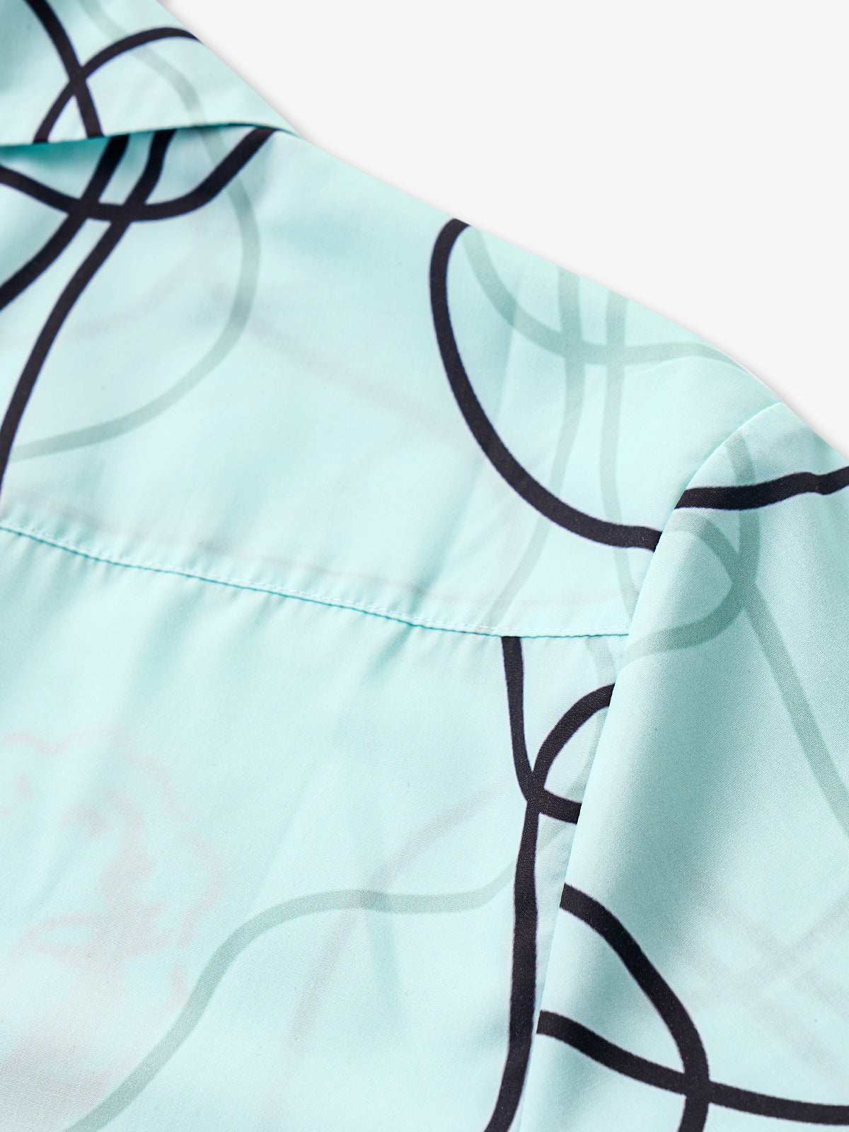 "Aonamizu" Ukiyo-e Print Short-sleeved Open Collar Shirt
