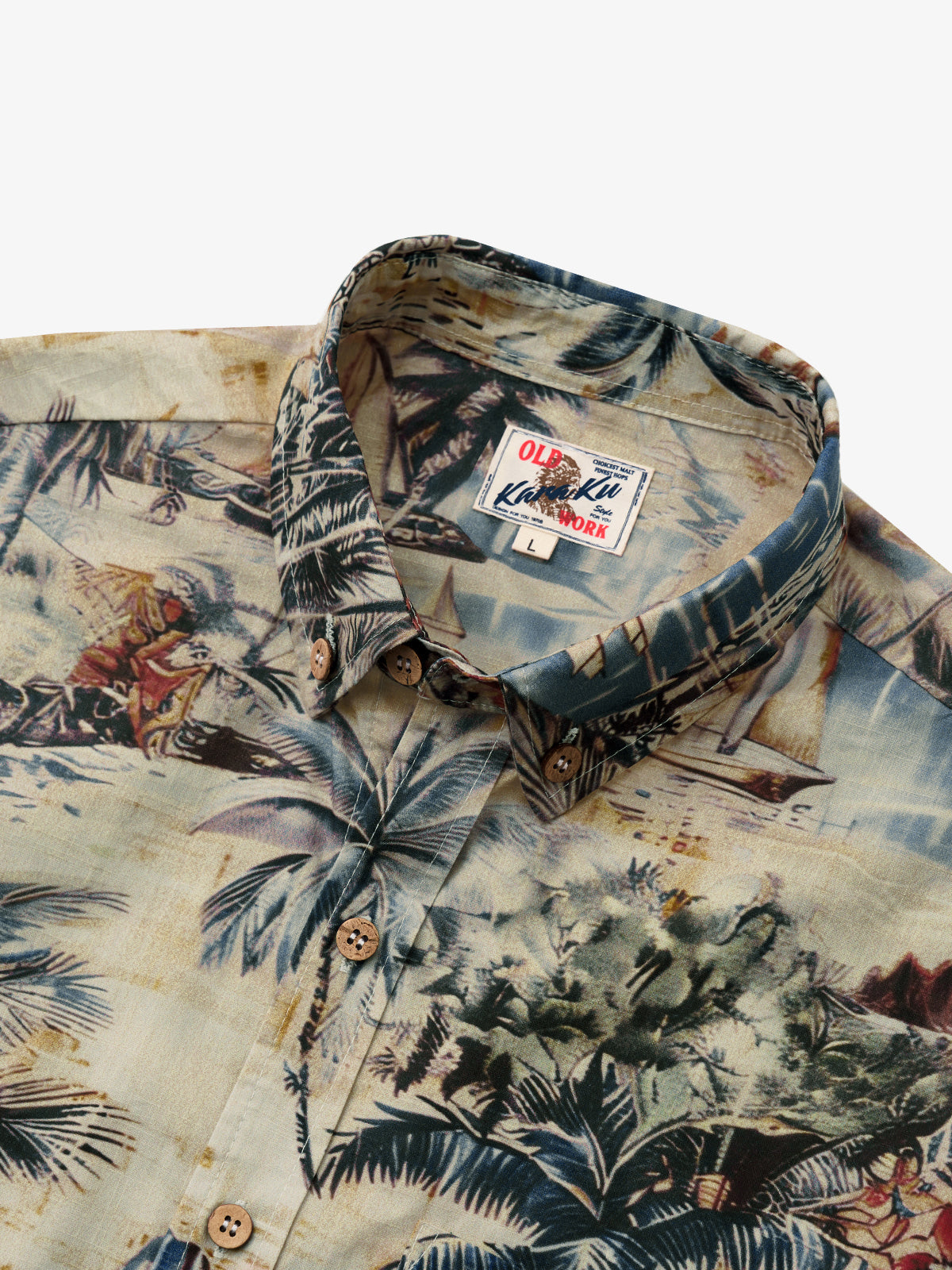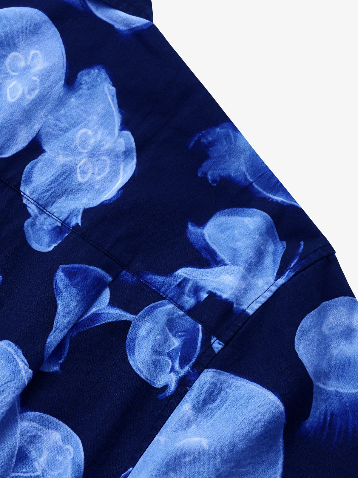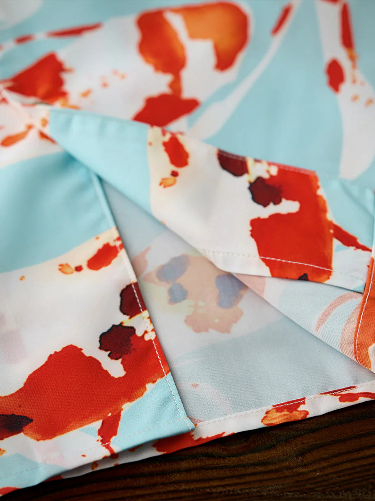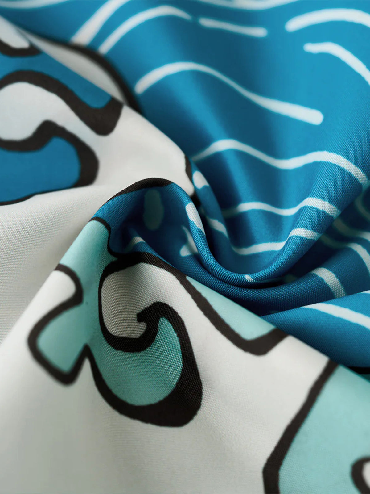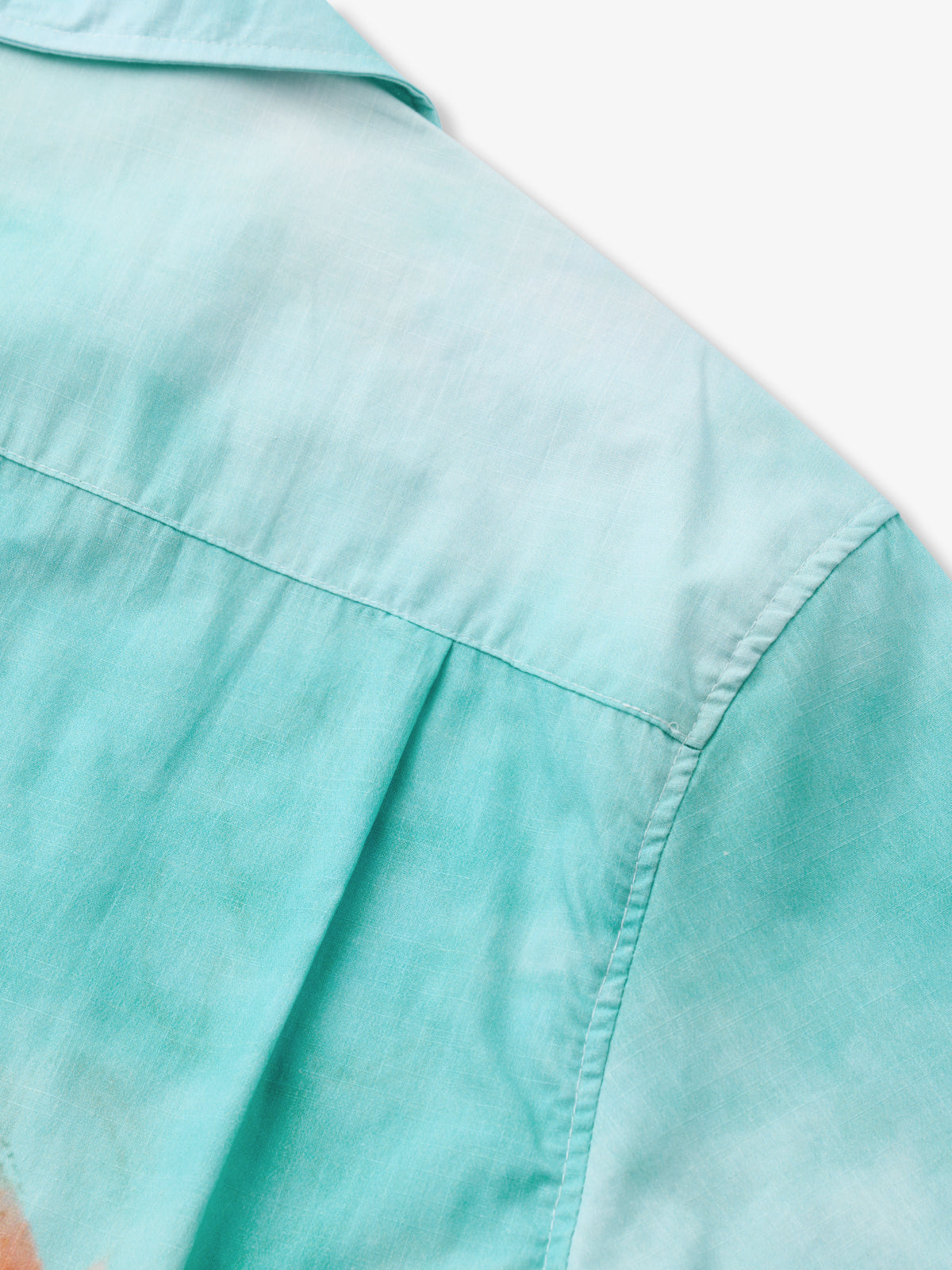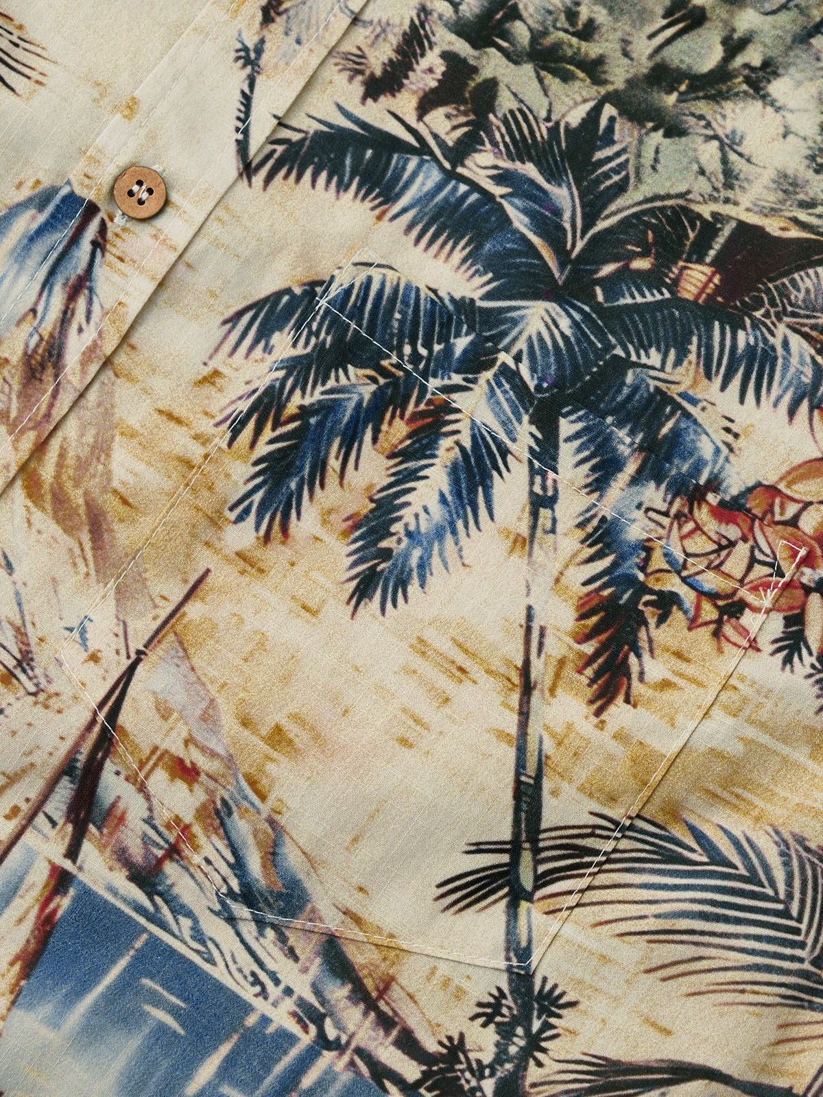 "Aonamizu" Ukiyo-e Print Short-sleeved Open Collar Shirt