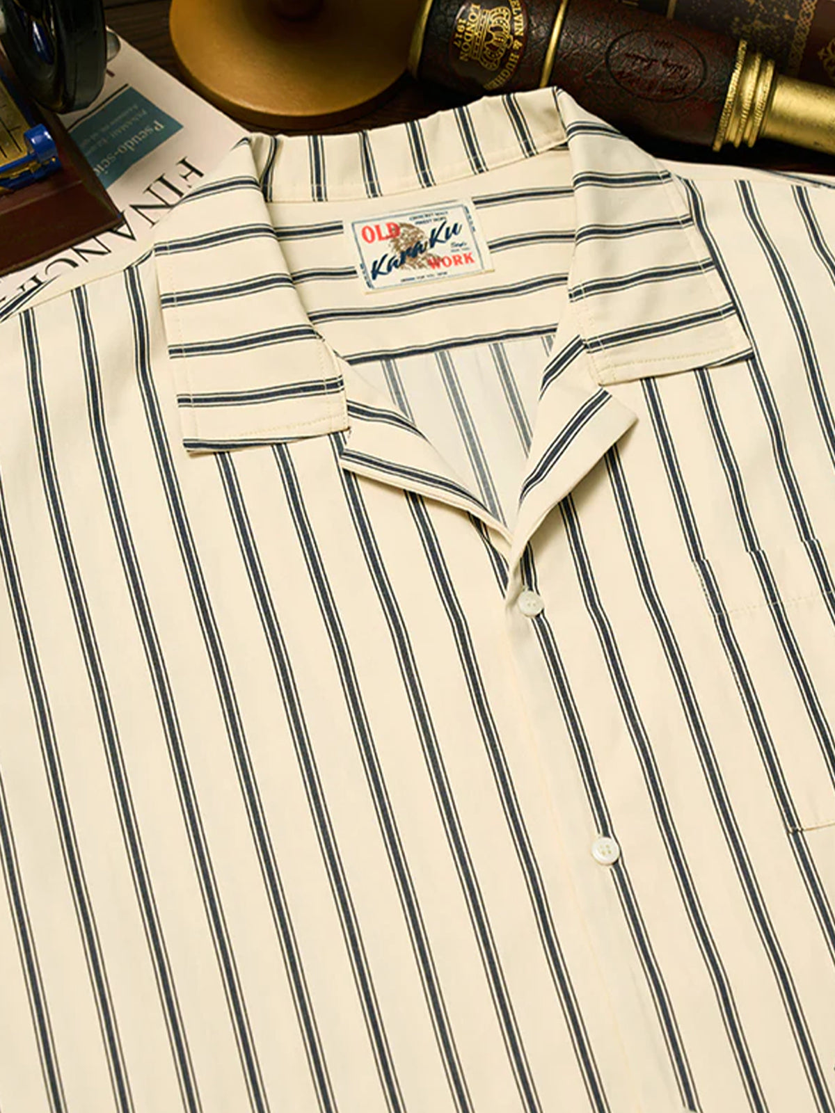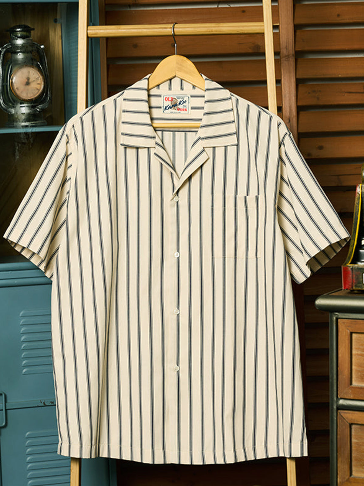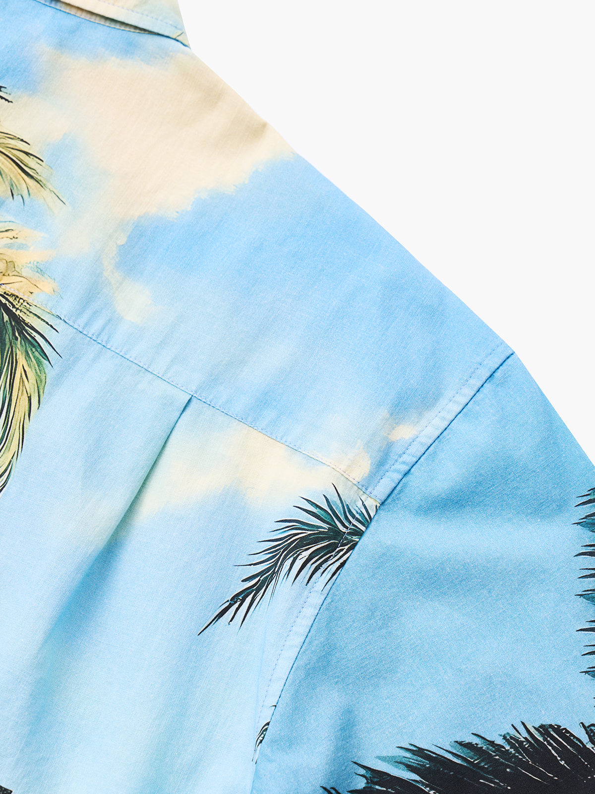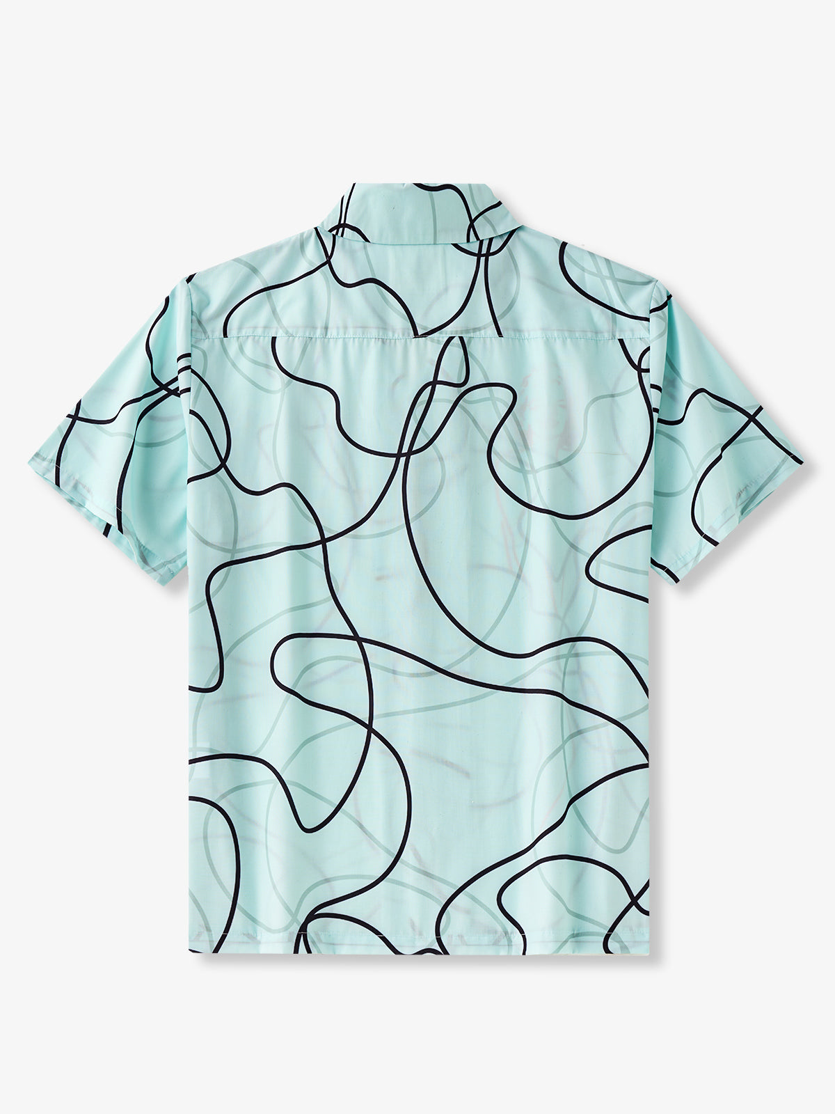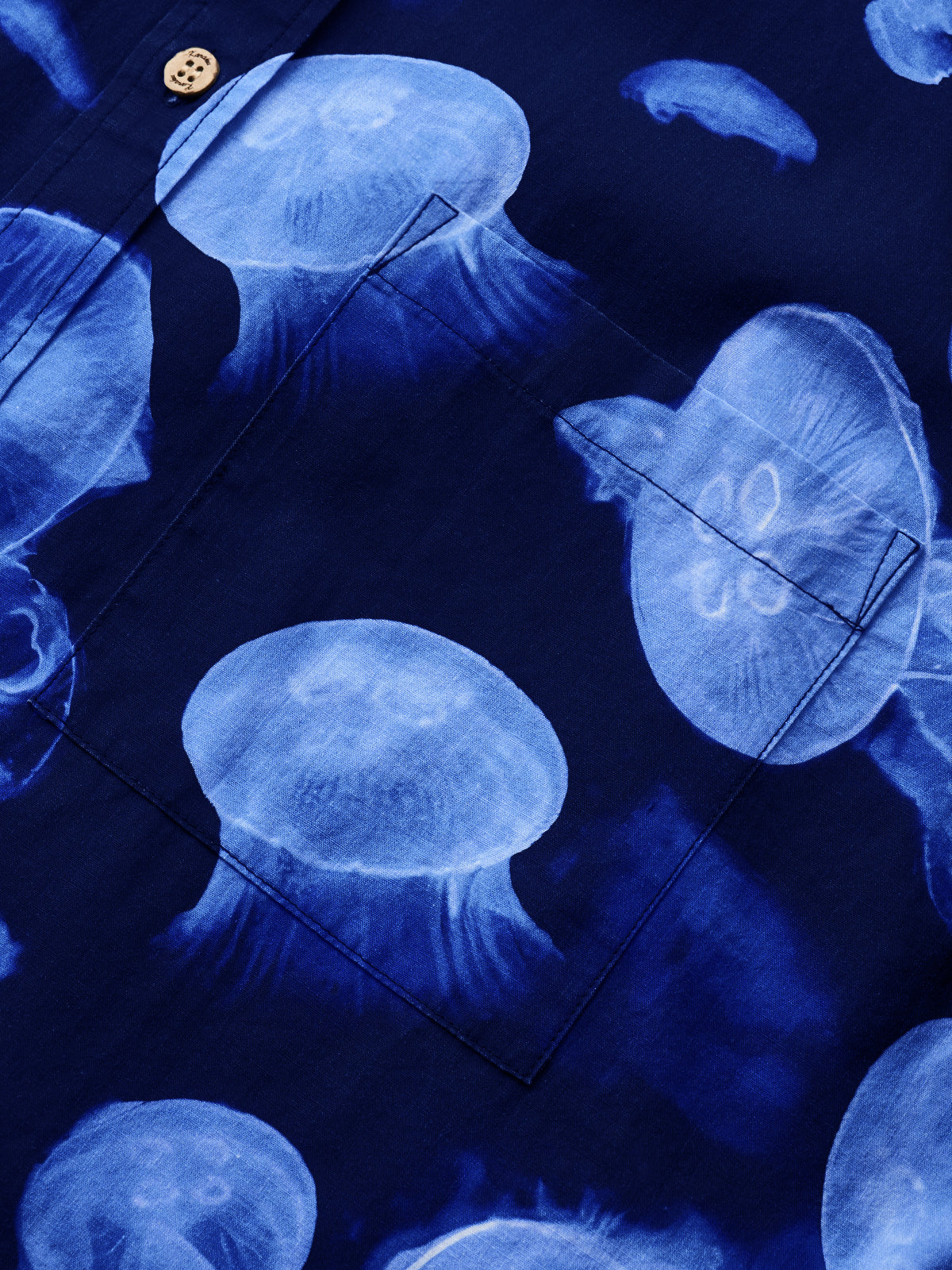"Aonamizu" Ukiyo-e Print Short-sleeved Open Collar Shirt
