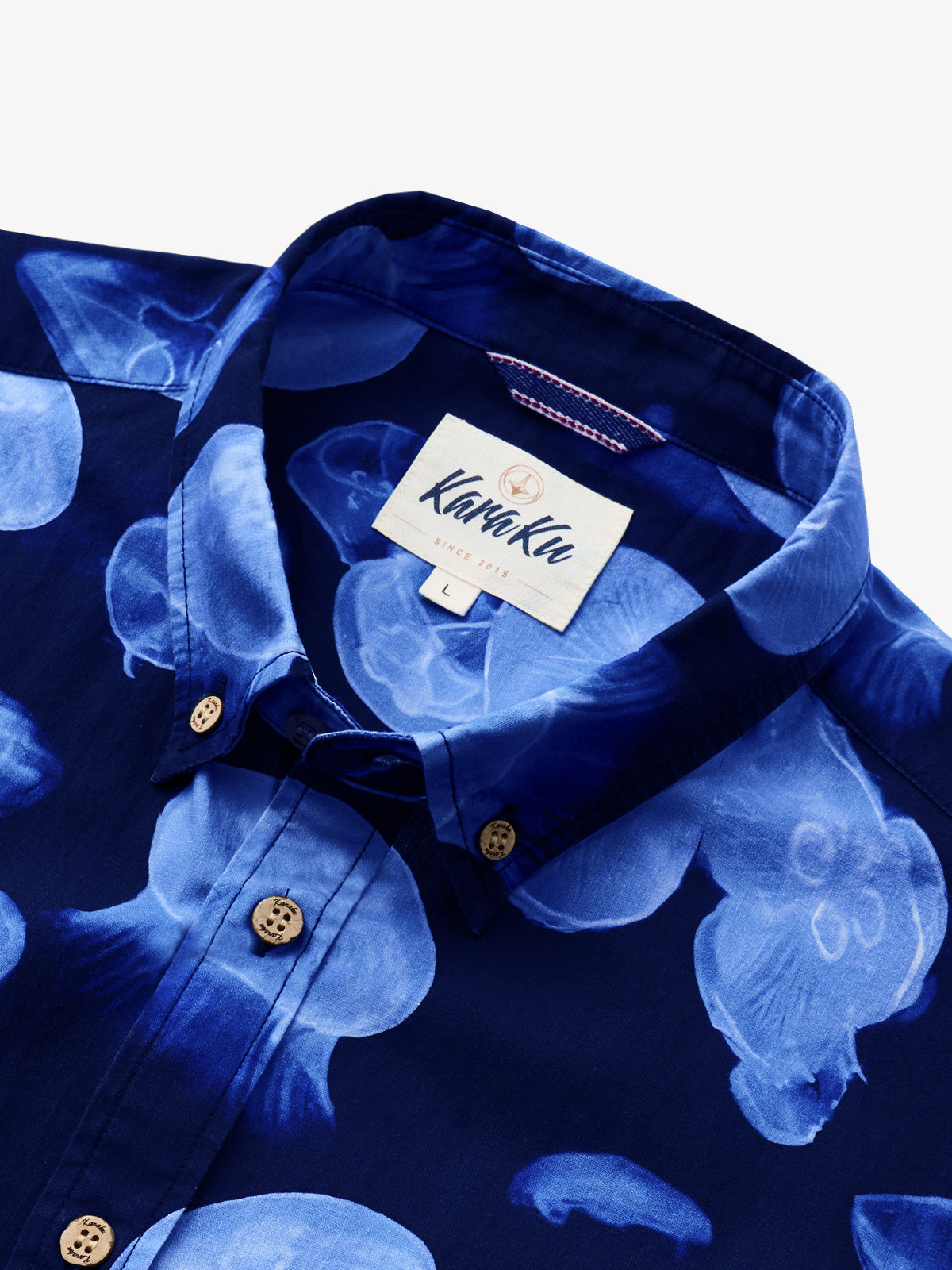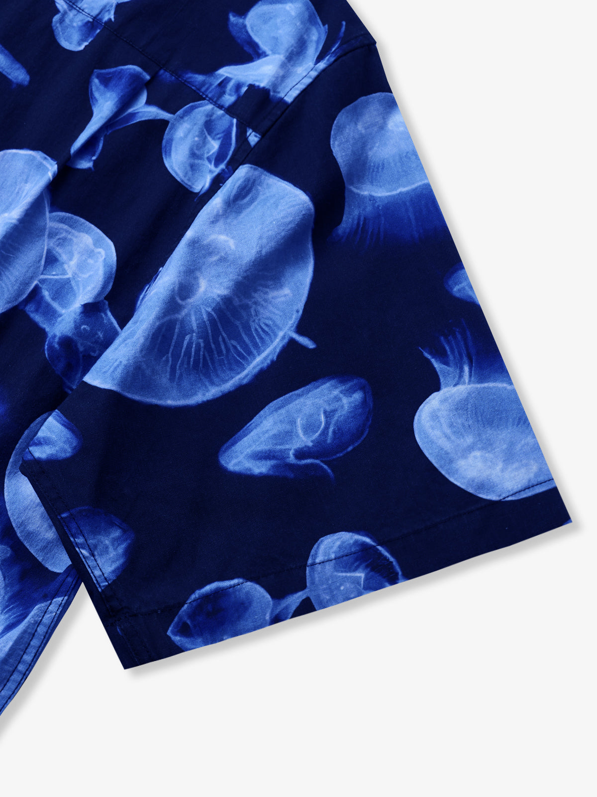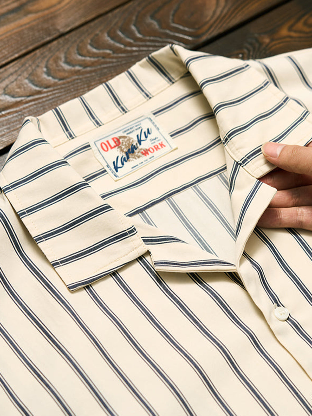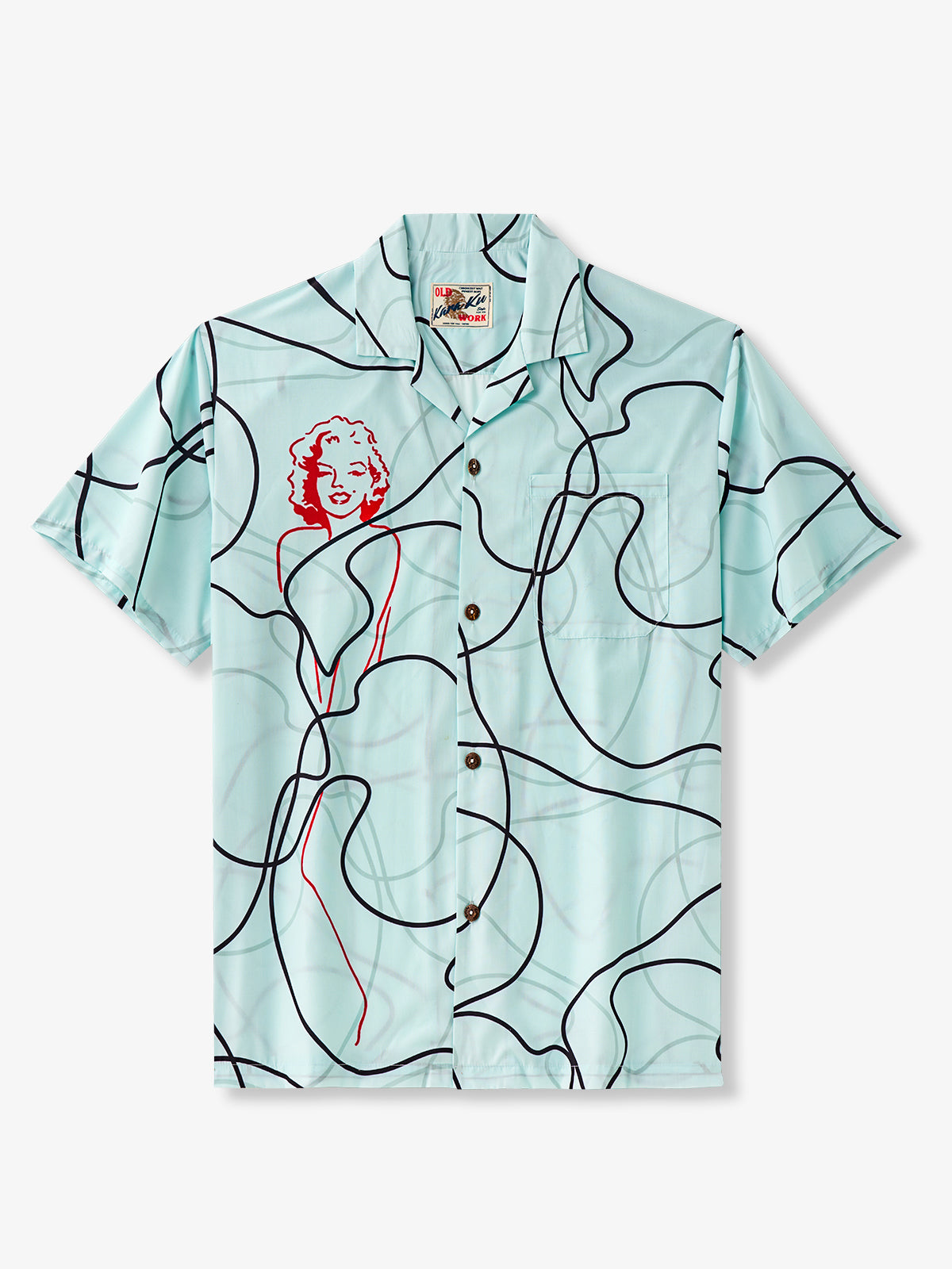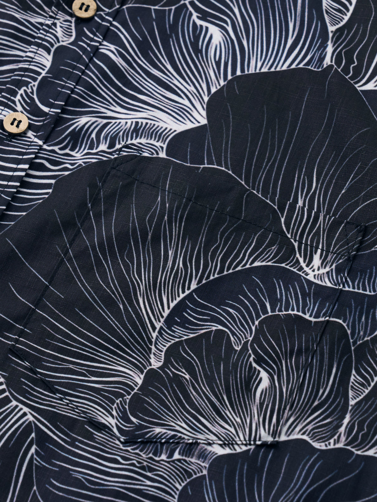 "Aonamizu" Ukiyo-e Print Short-sleeved Open Collar Shirt