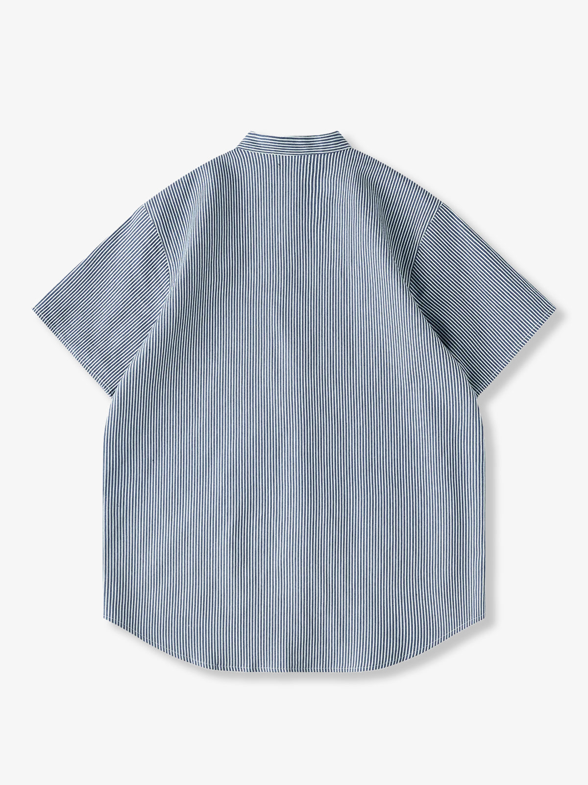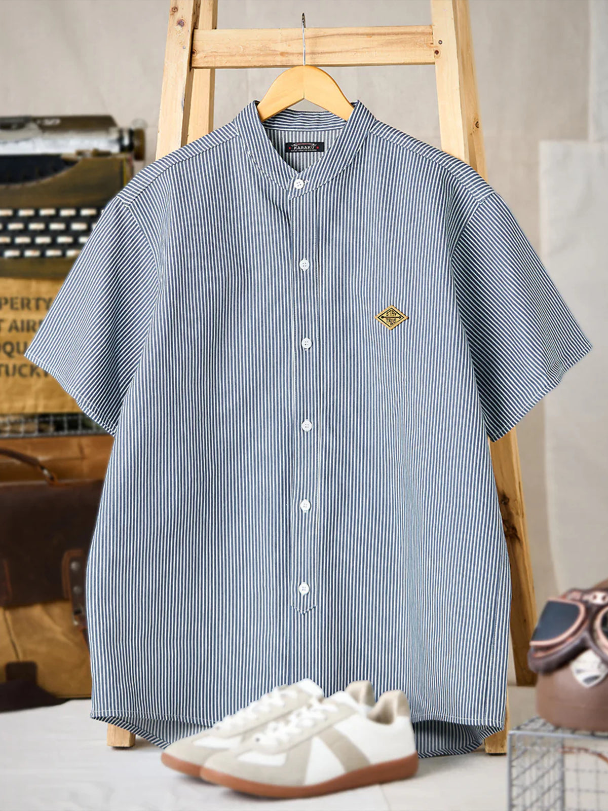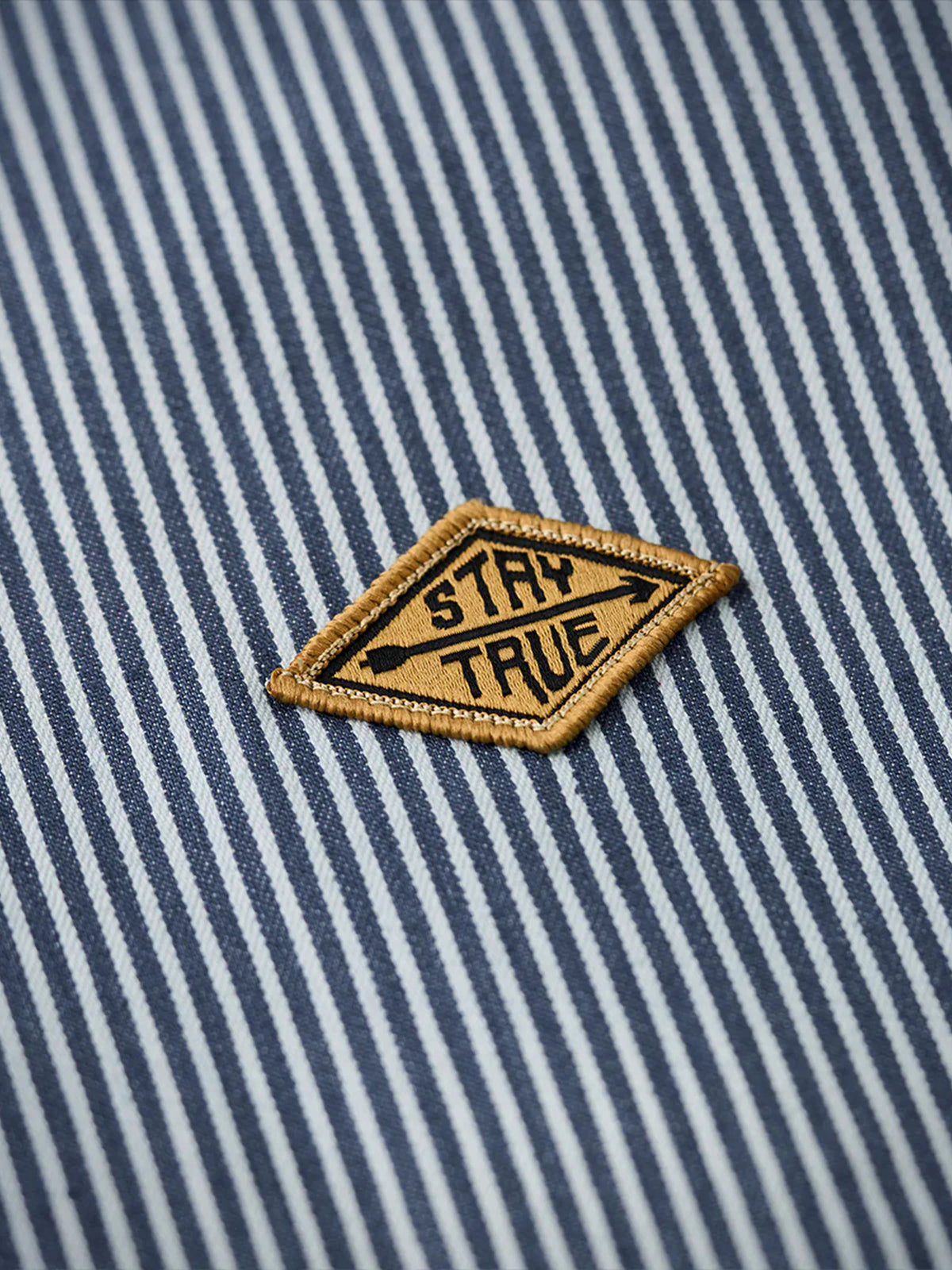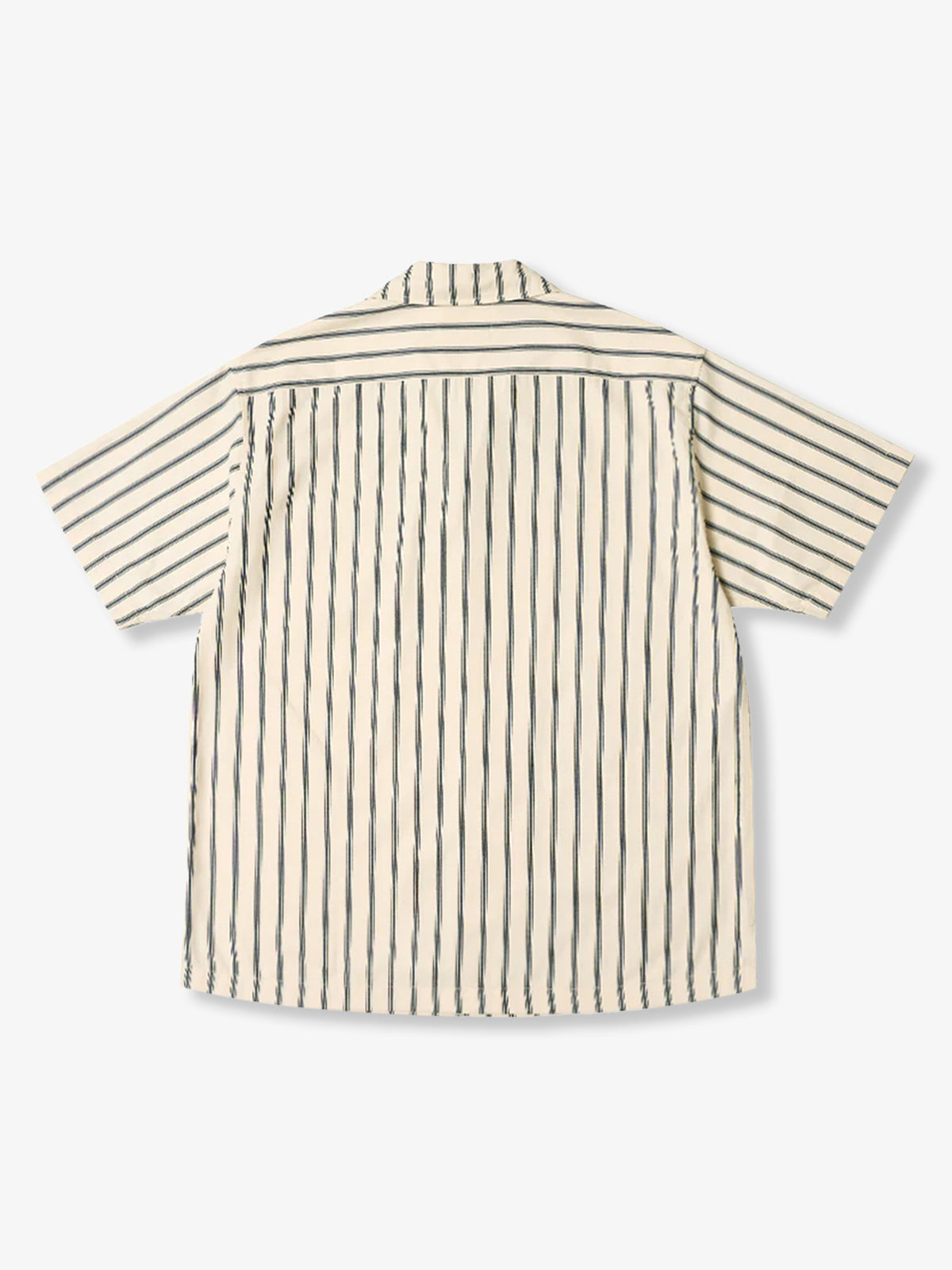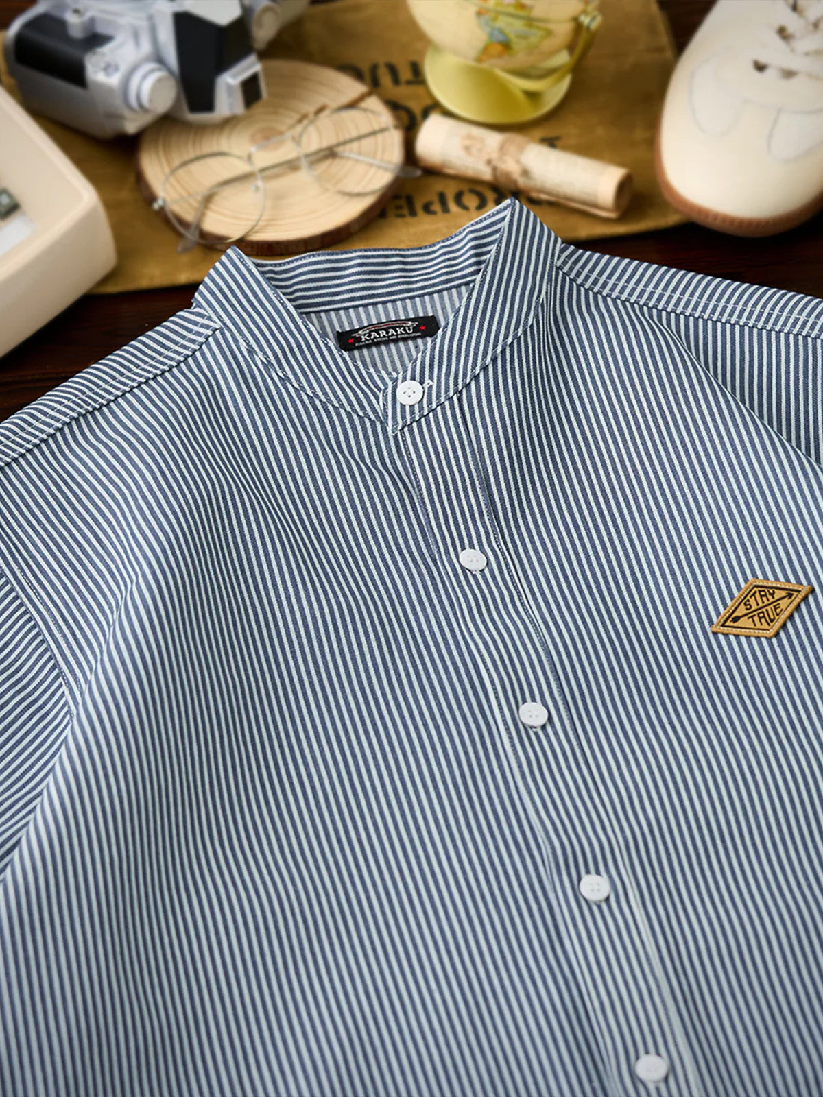 "STAY TRUE" embroidered pre-dyed striped baseball short-sleeved shirt