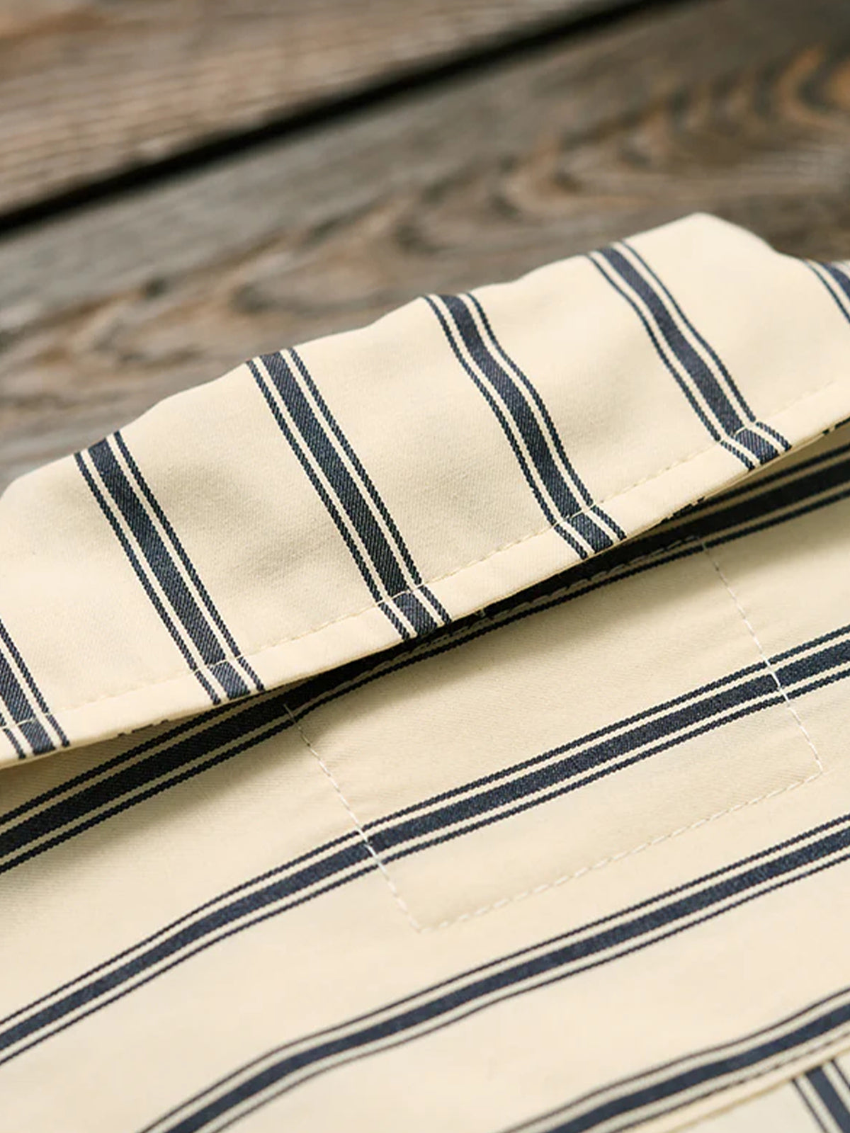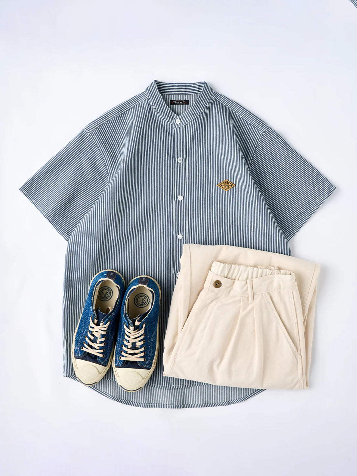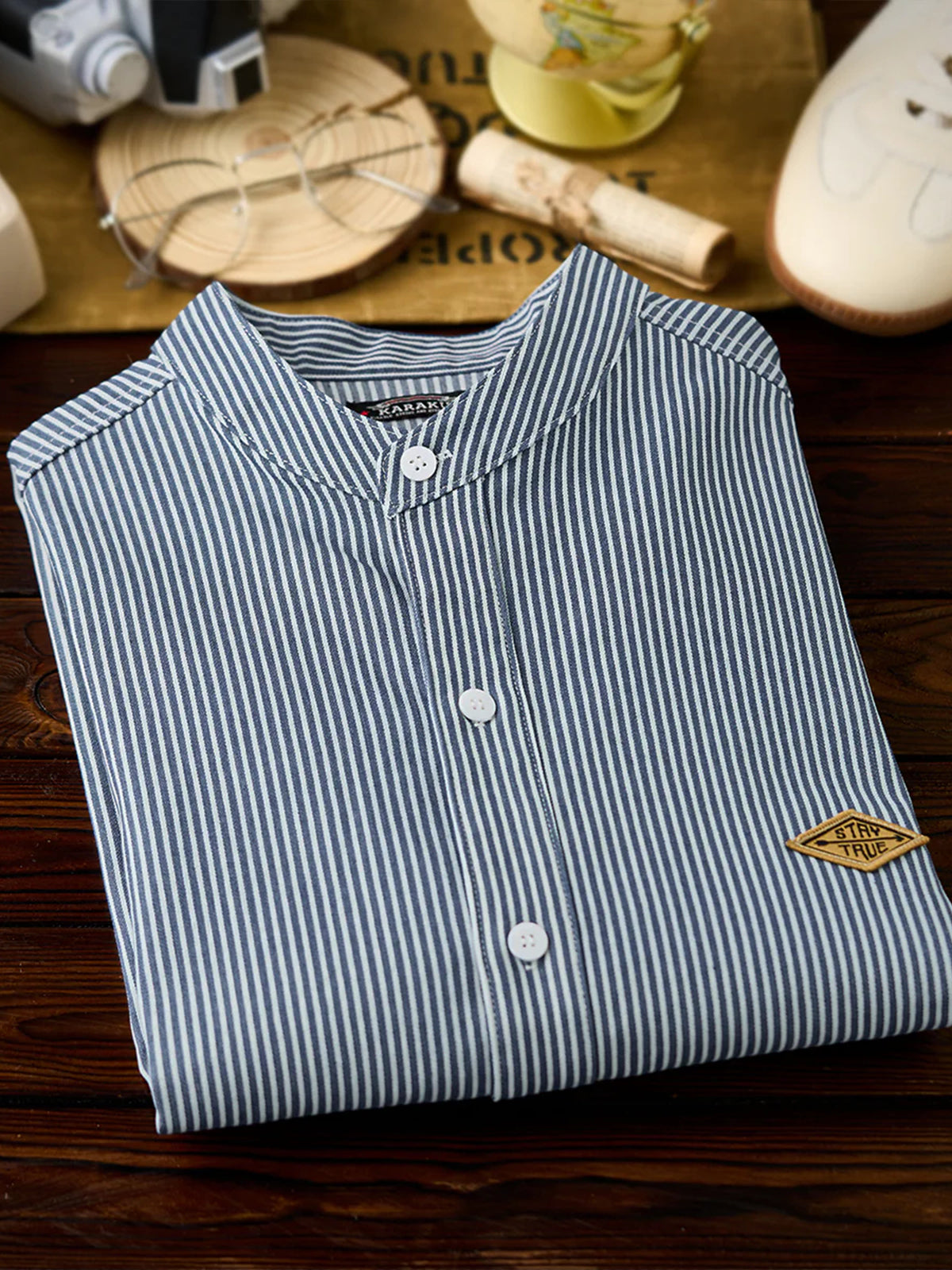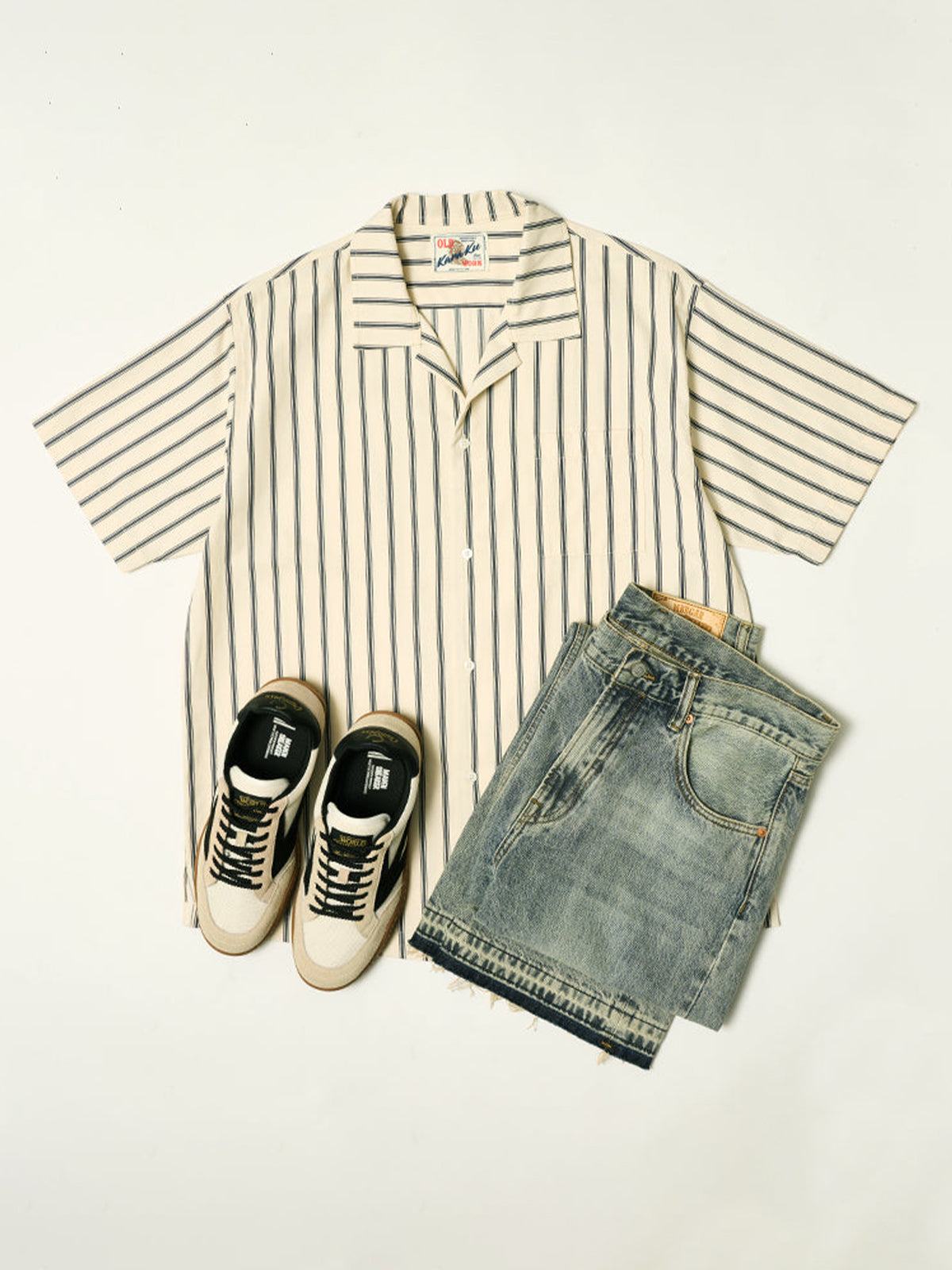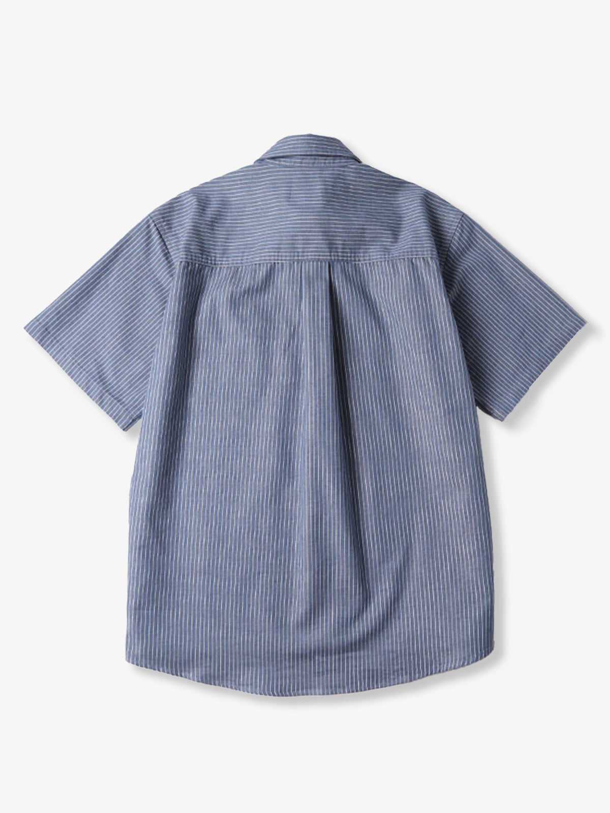 "STAY TRUE" embroidered pre-dyed striped baseball short-sleeved shirt