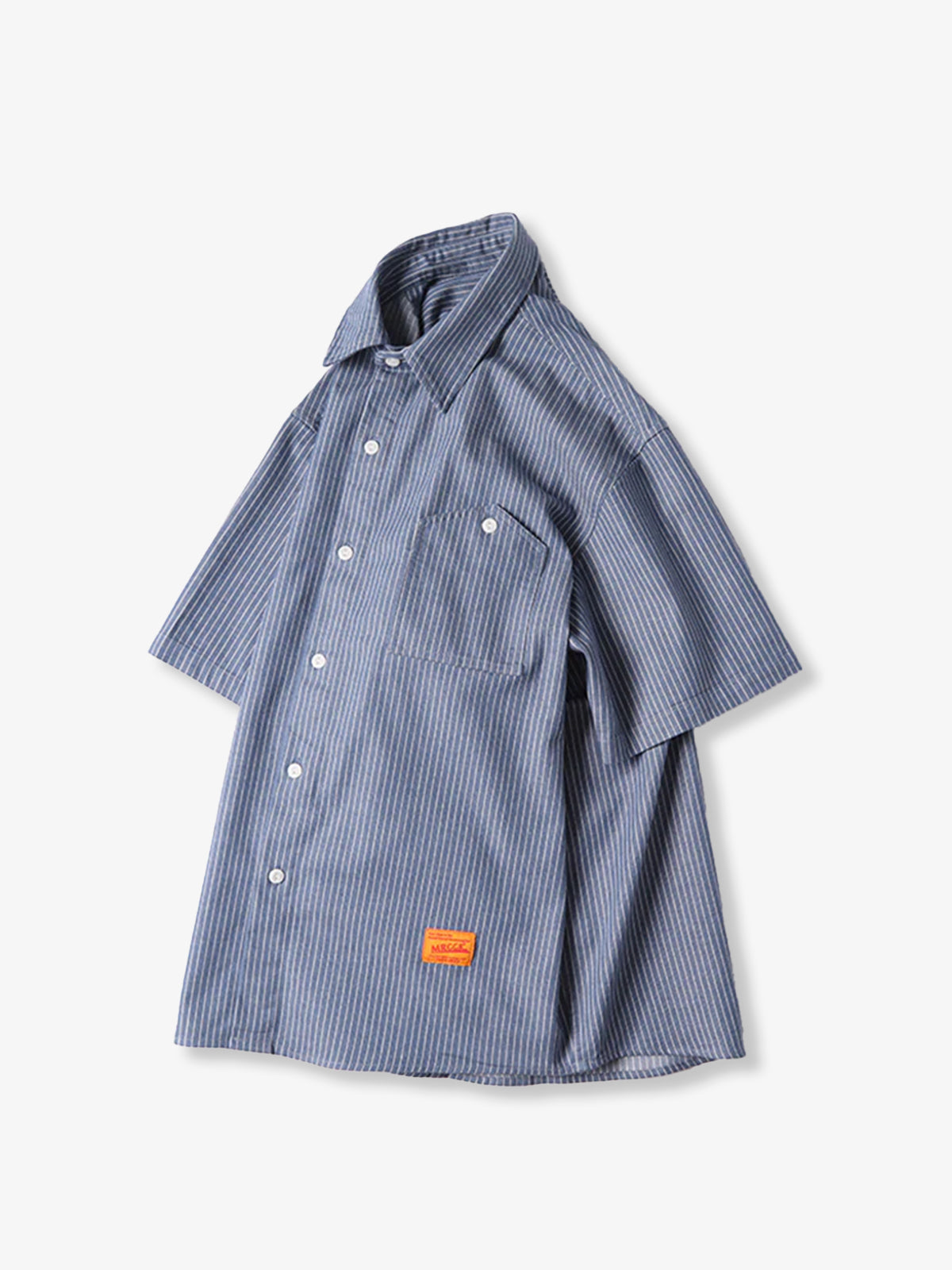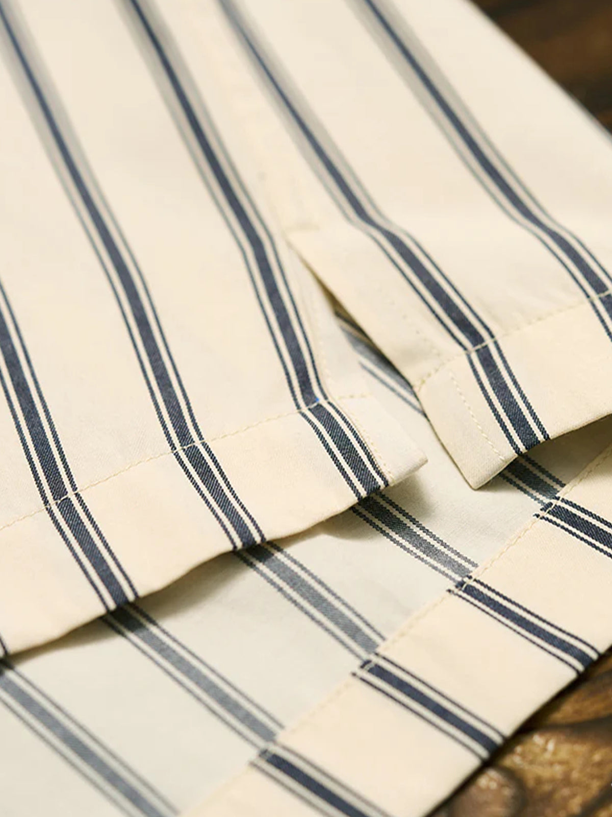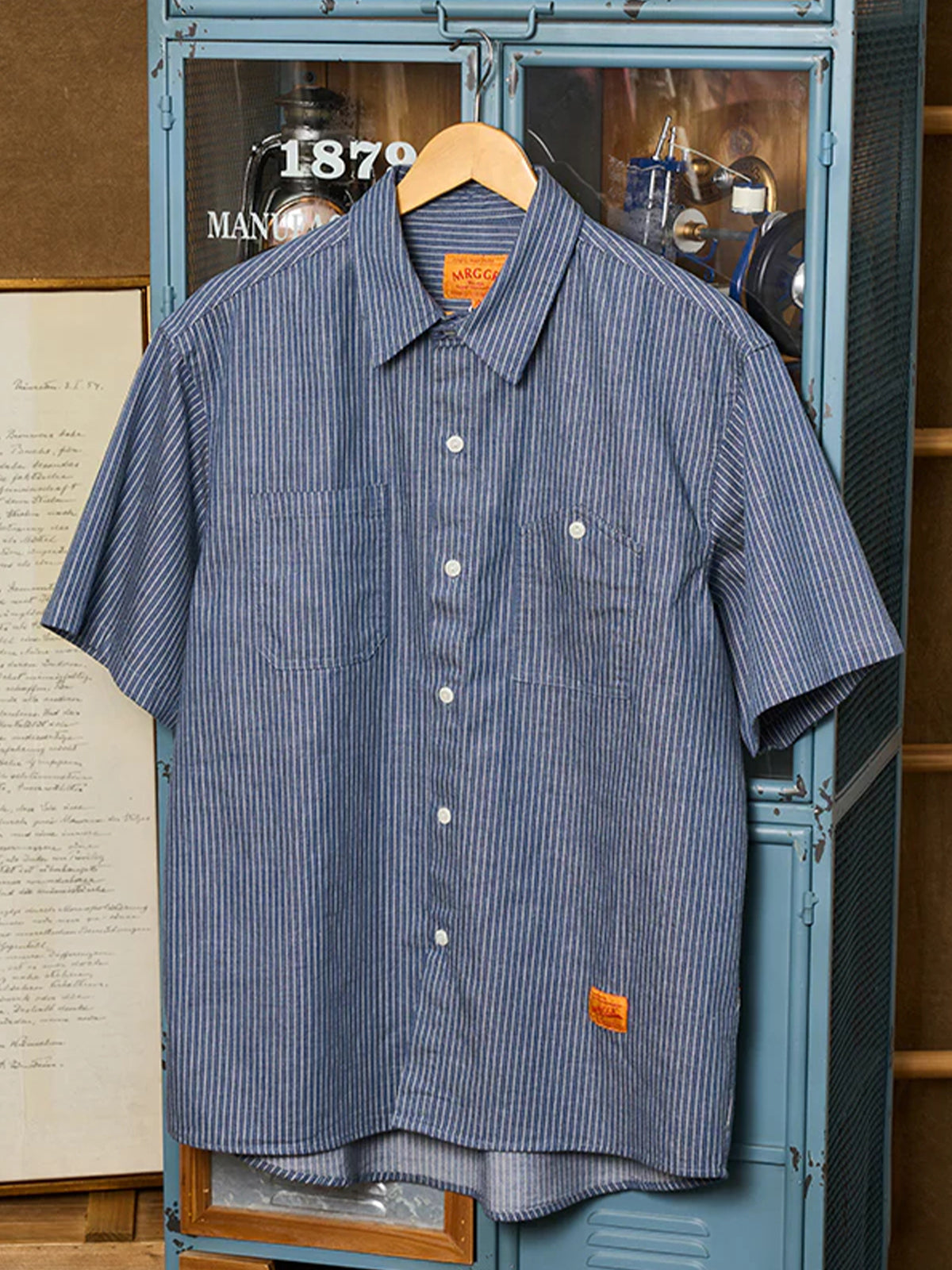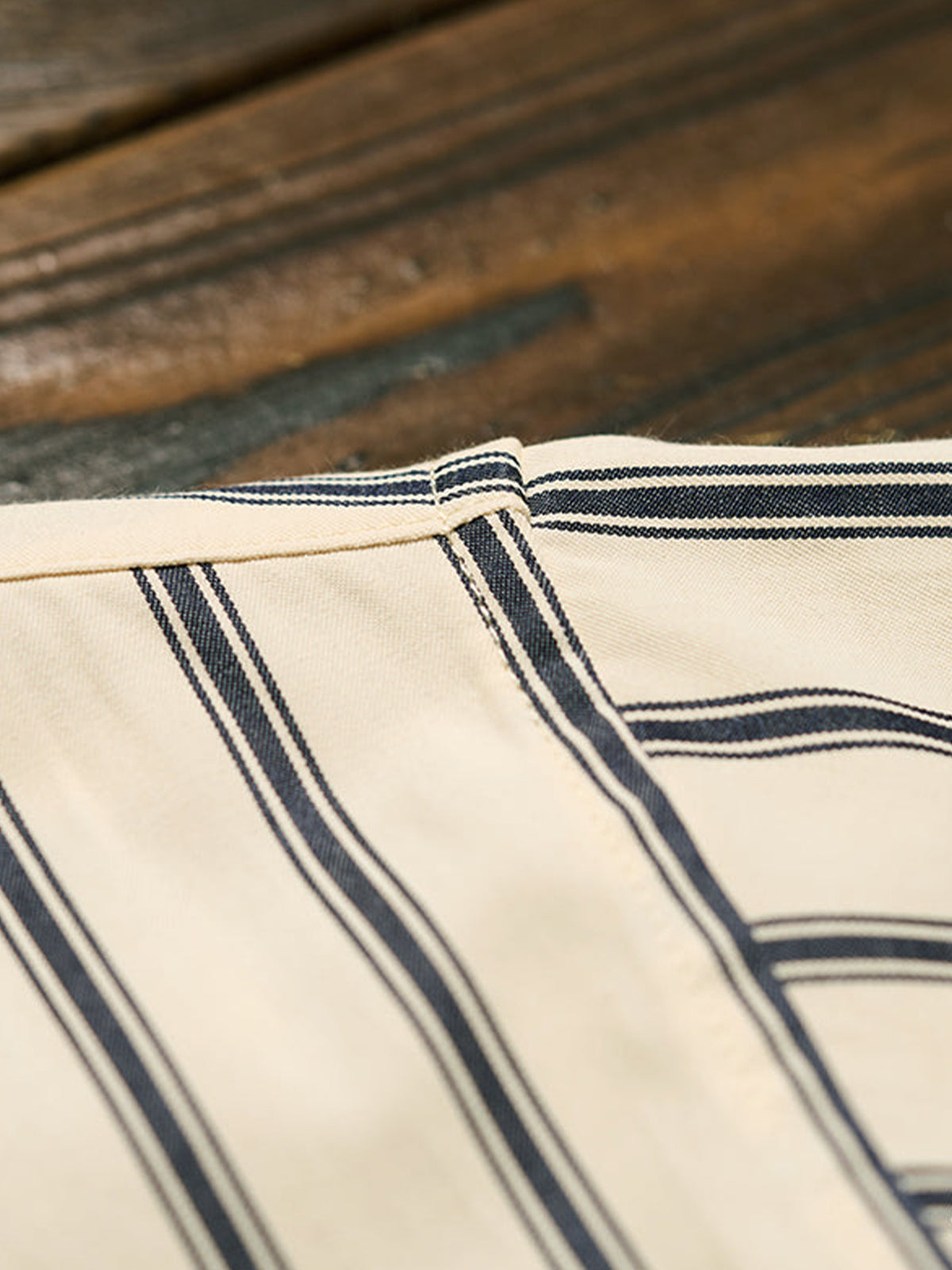 "STAY TRUE" embroidered pre-dyed striped baseball short-sleeved shirt
