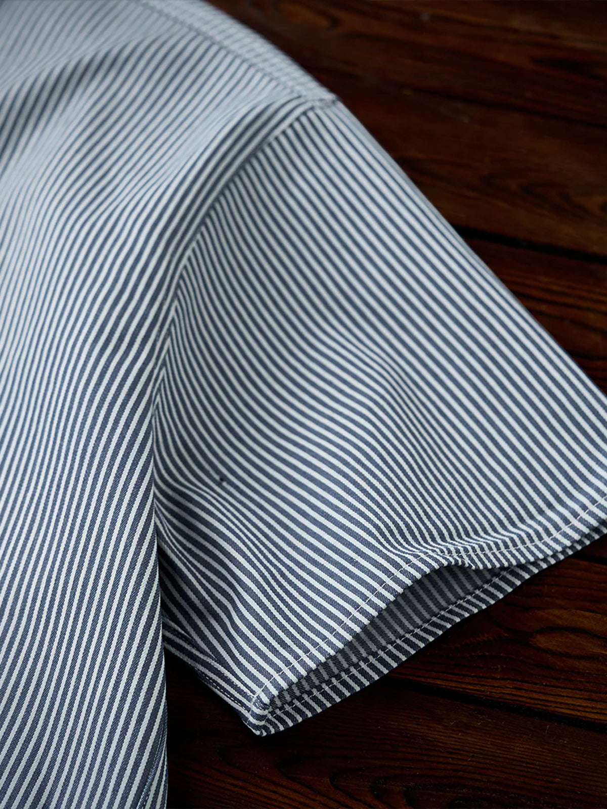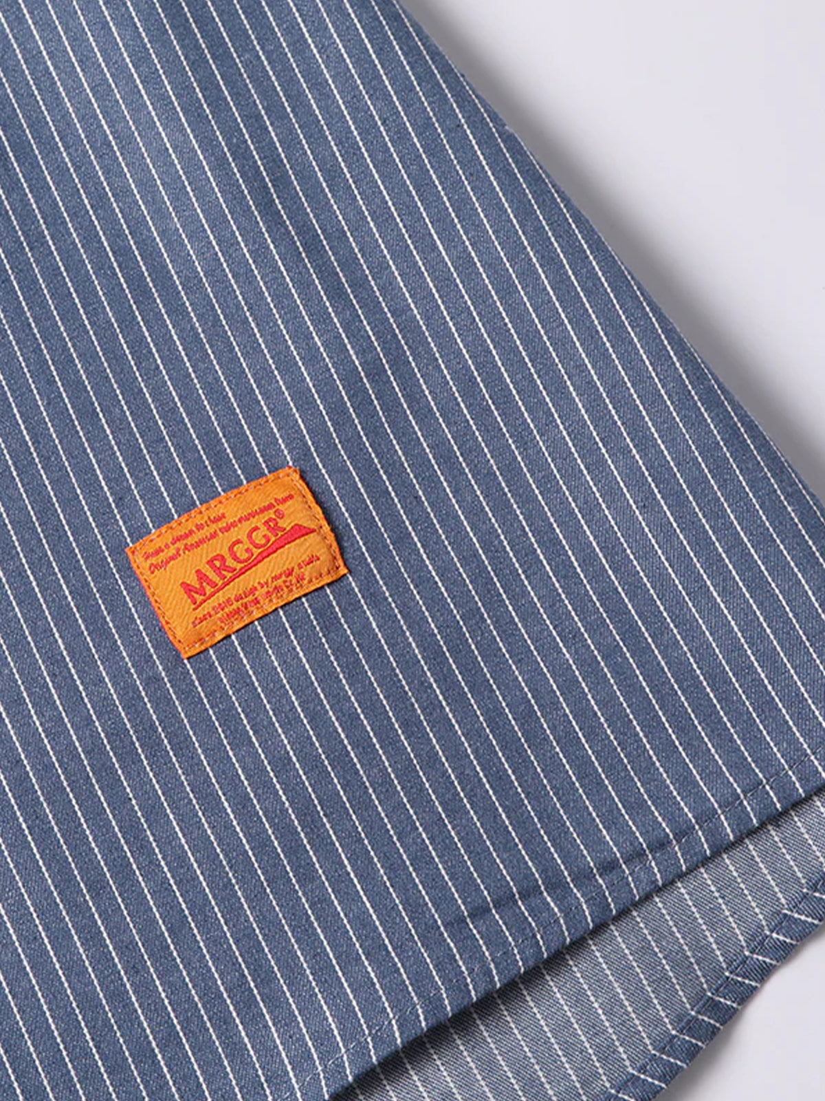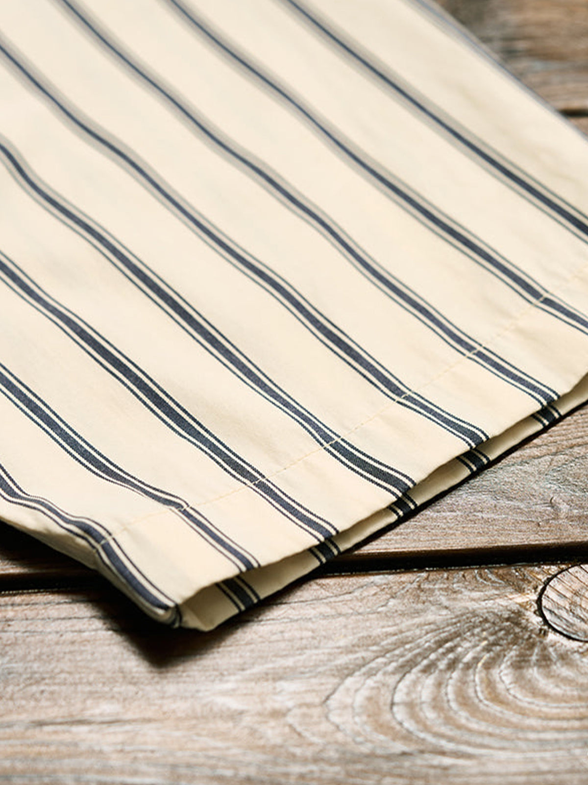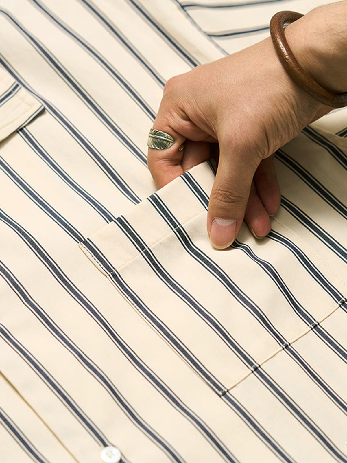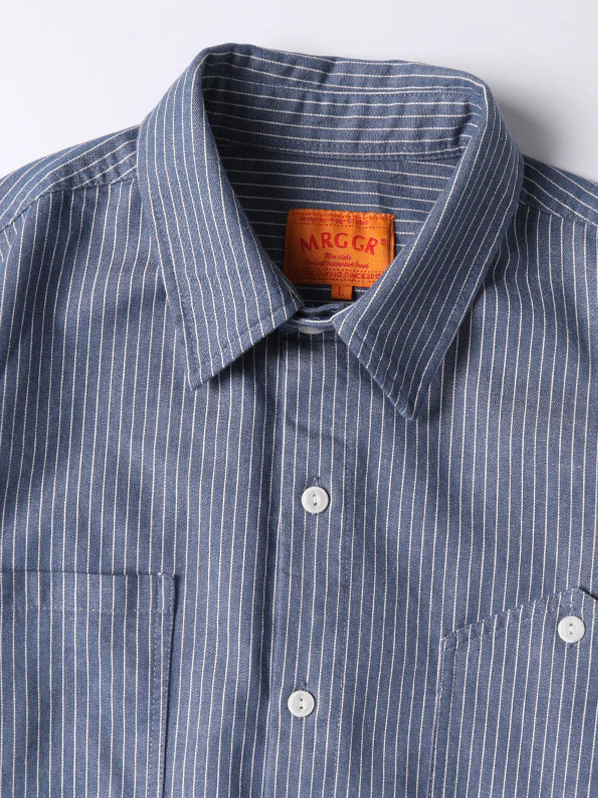 "STAY TRUE" embroidered pre-dyed striped baseball short-sleeved shirt