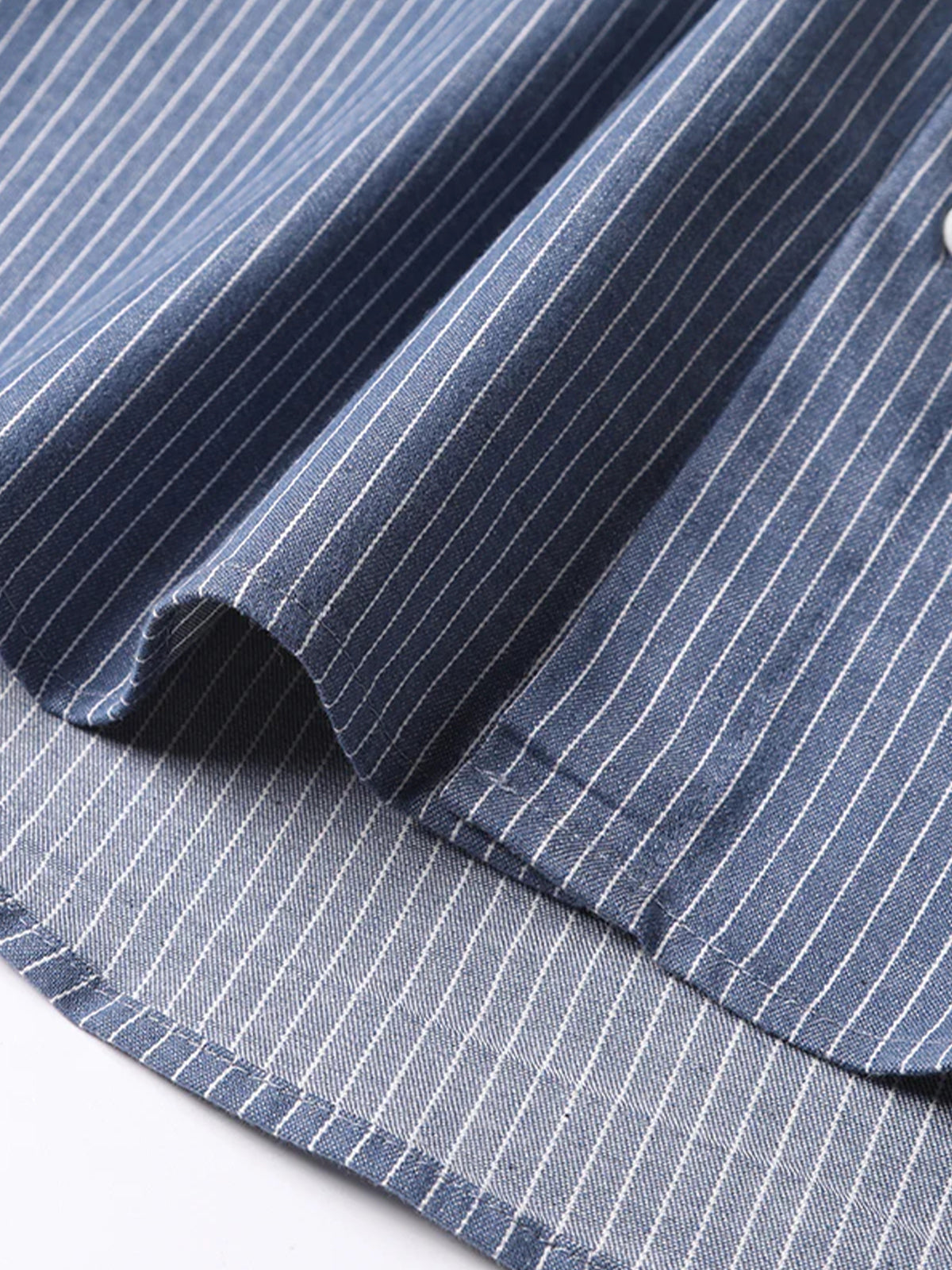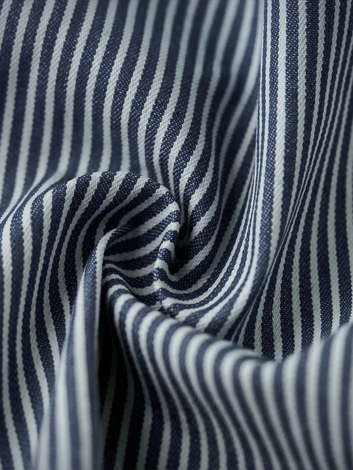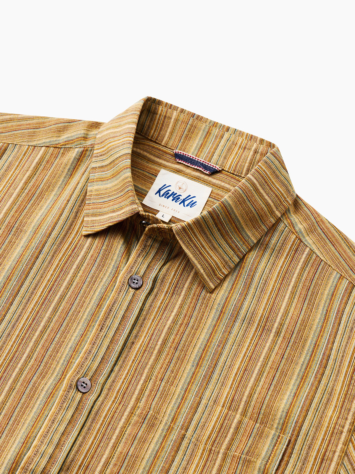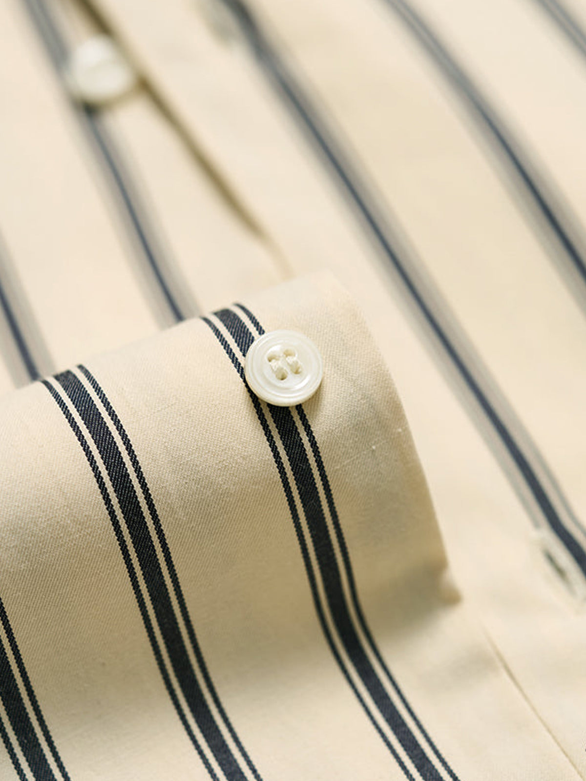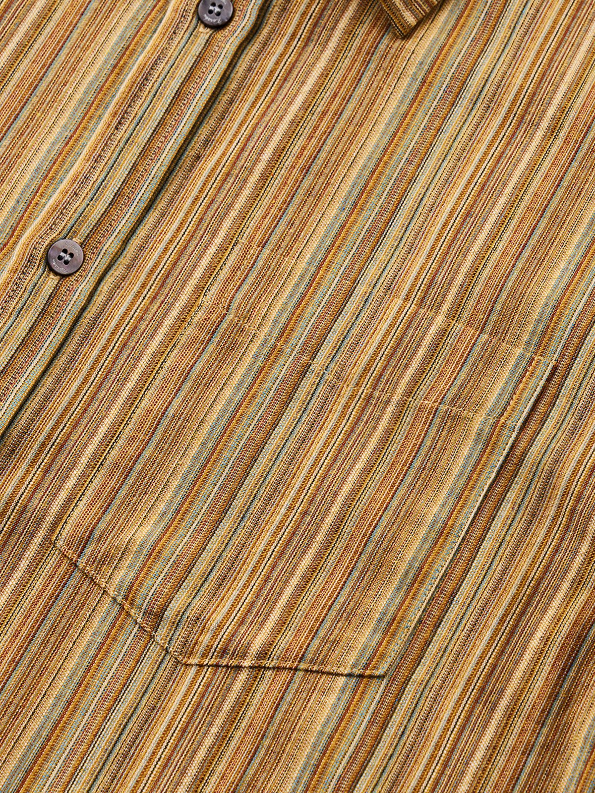 "STAY TRUE" embroidered pre-dyed striped baseball short-sleeved shirt