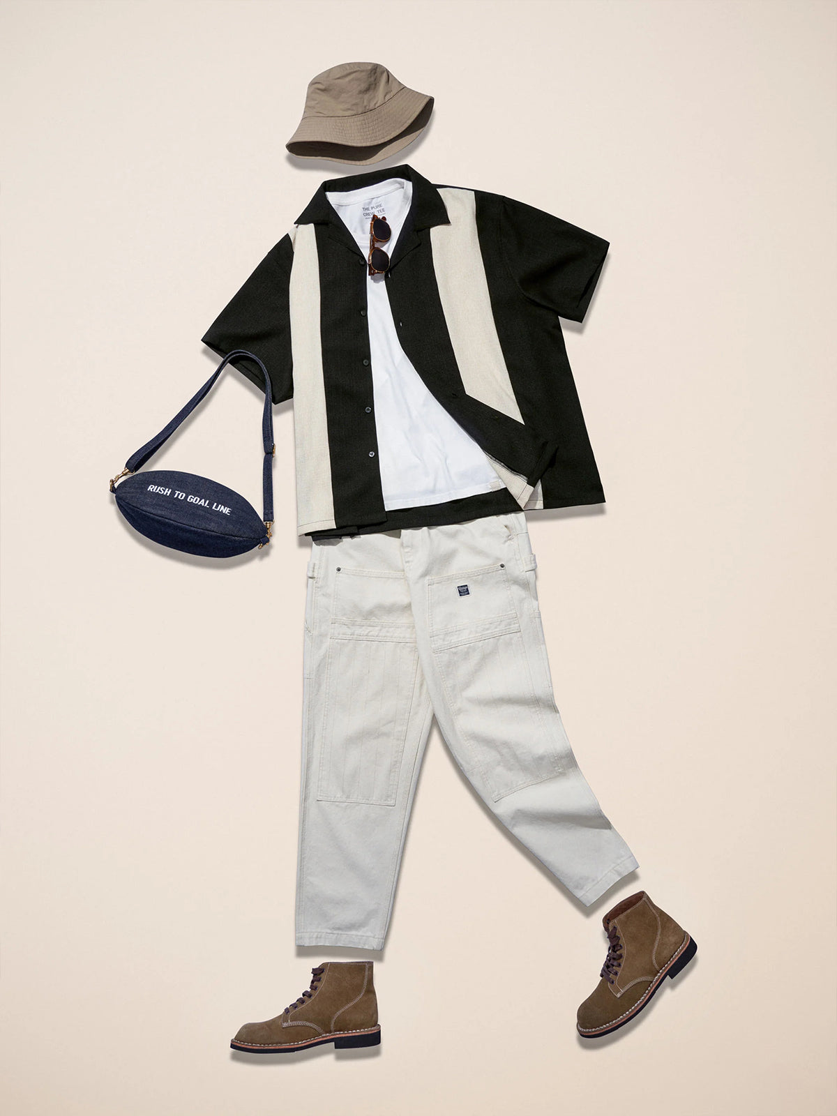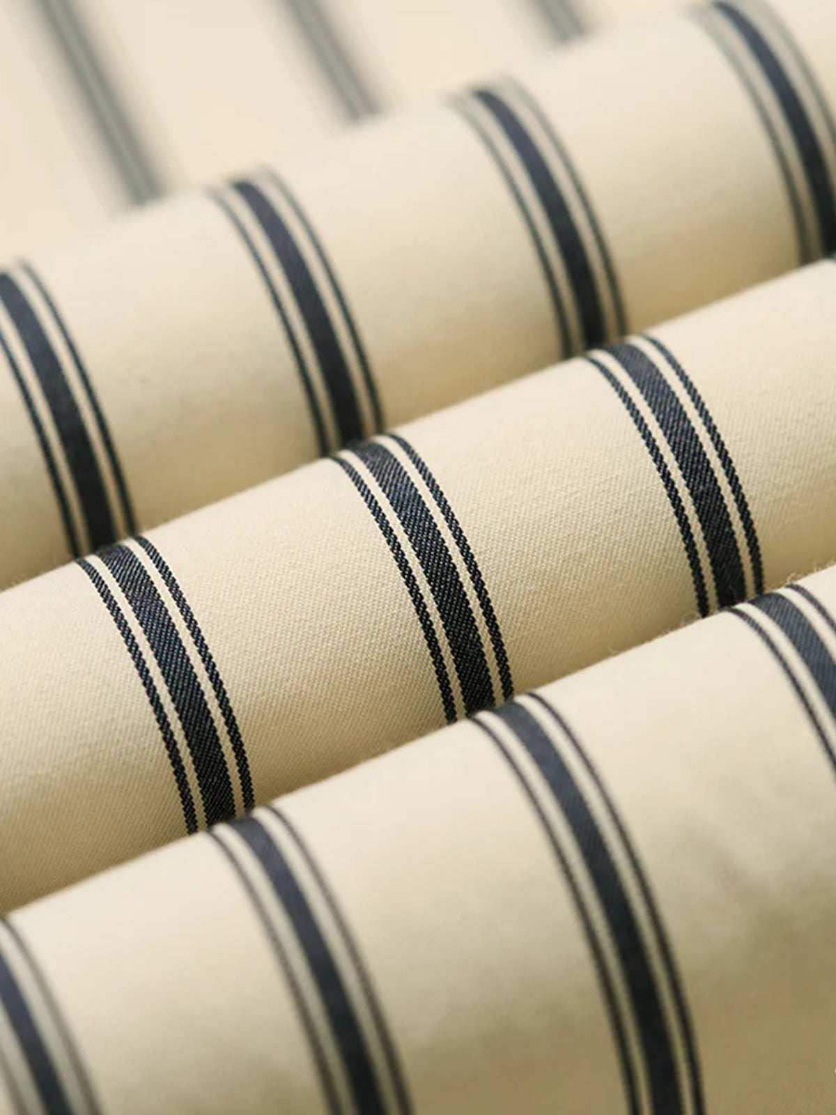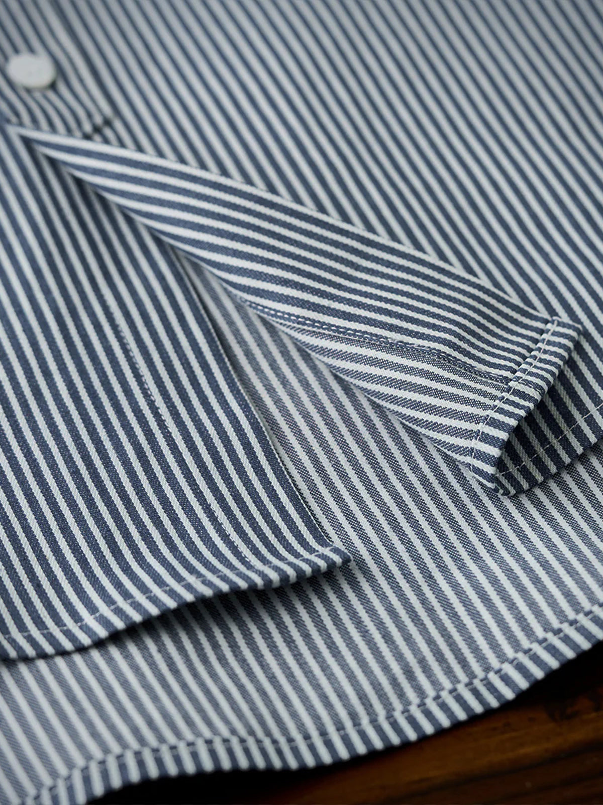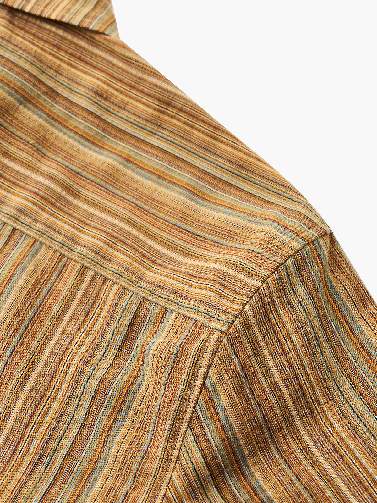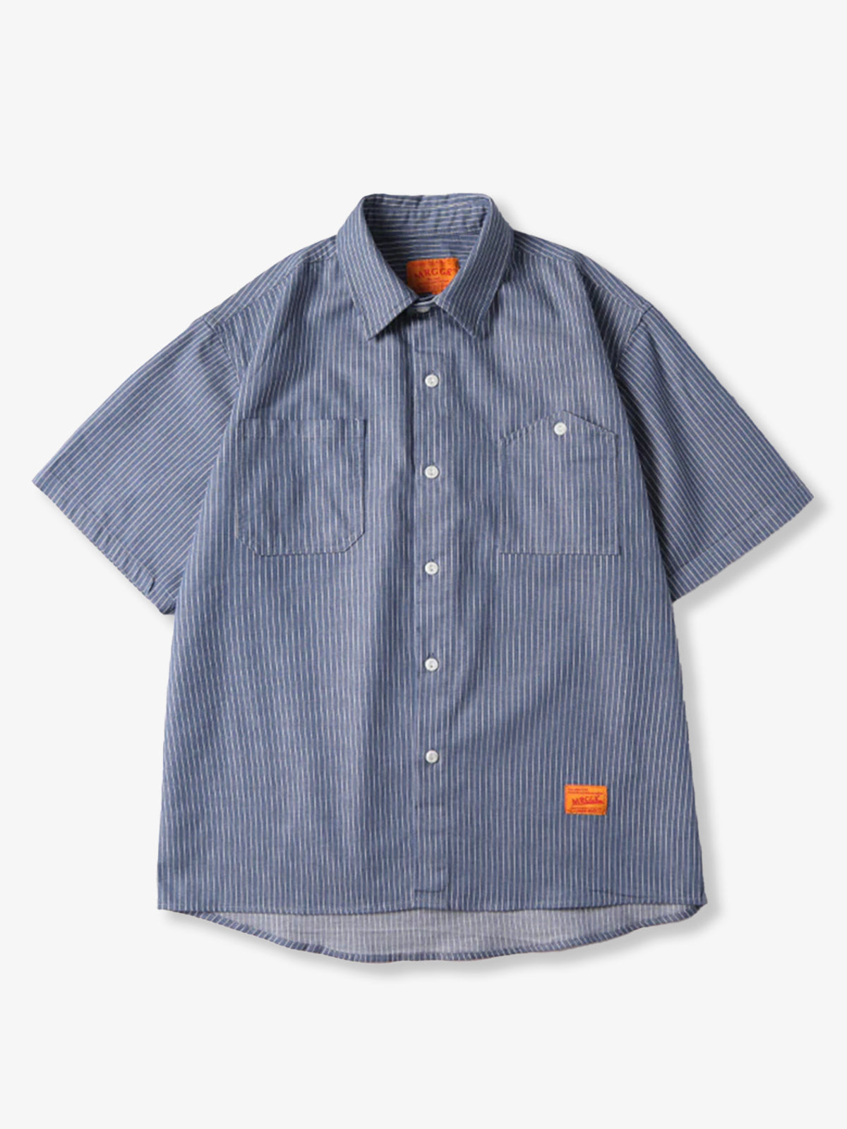 "STAY TRUE" embroidered pre-dyed striped baseball short-sleeved shirt