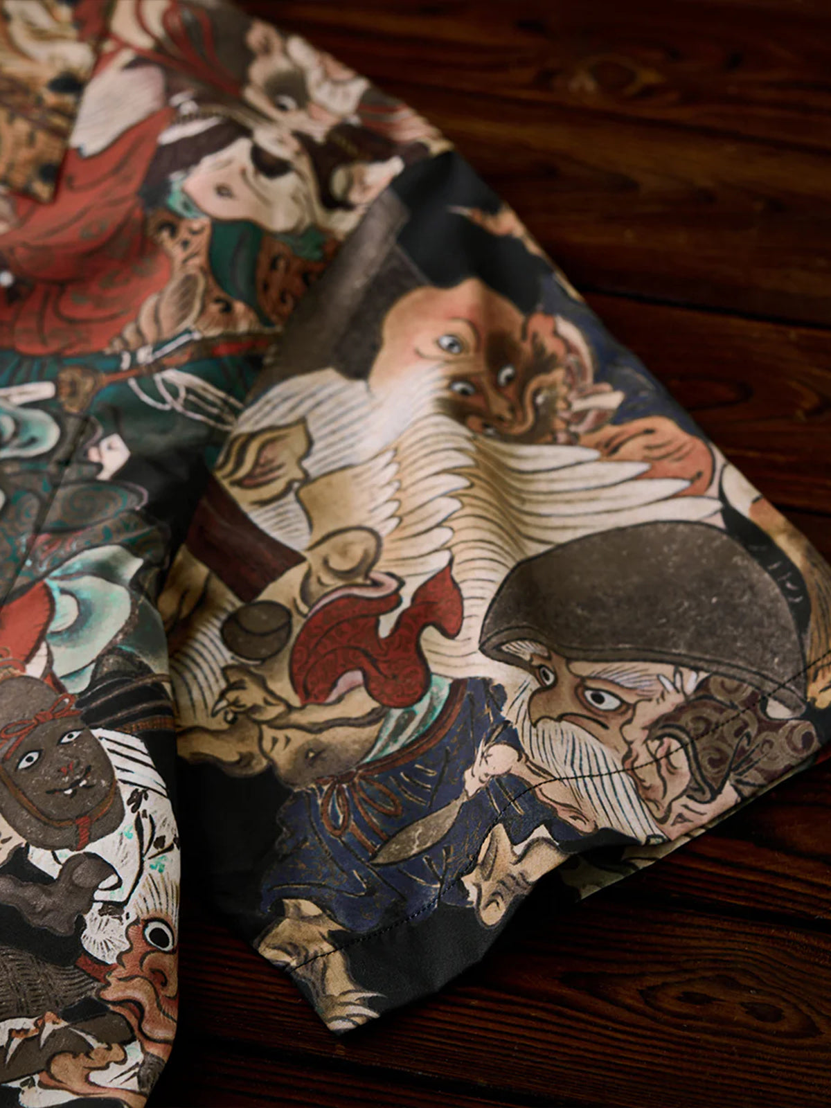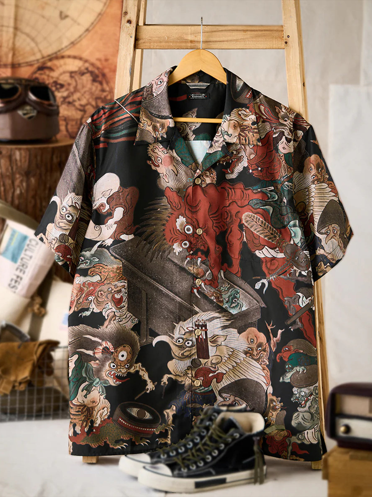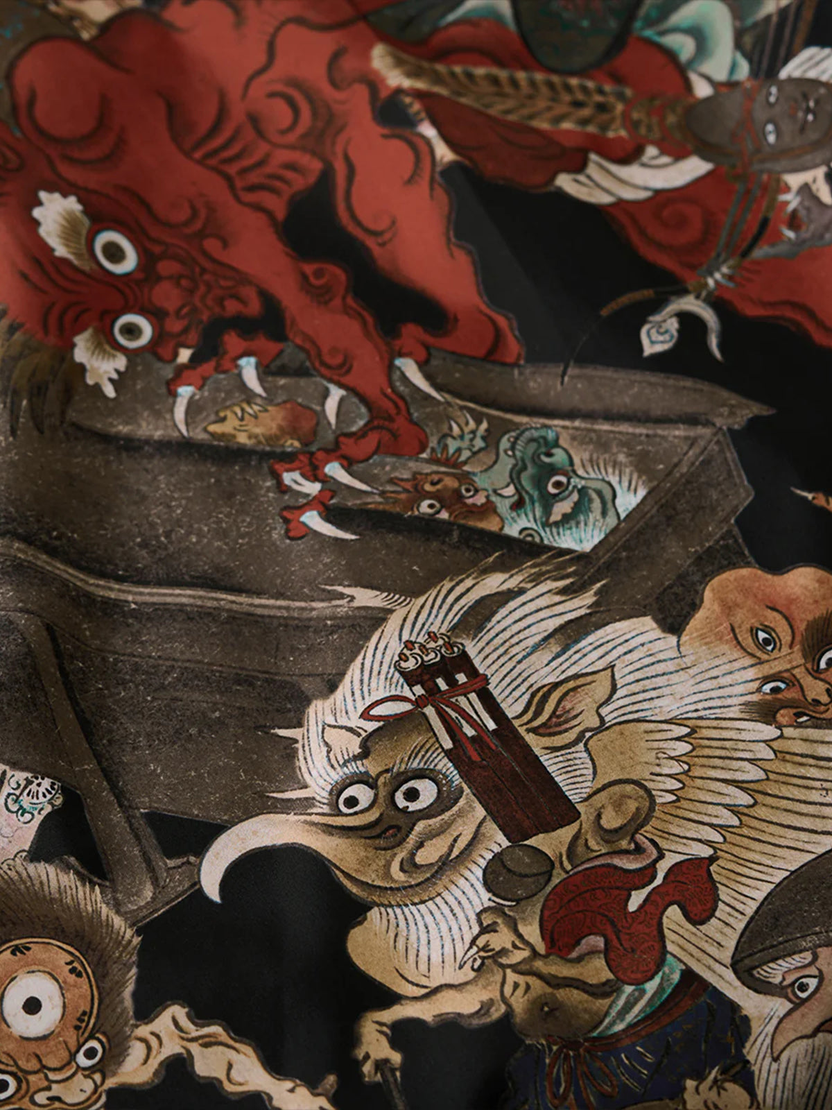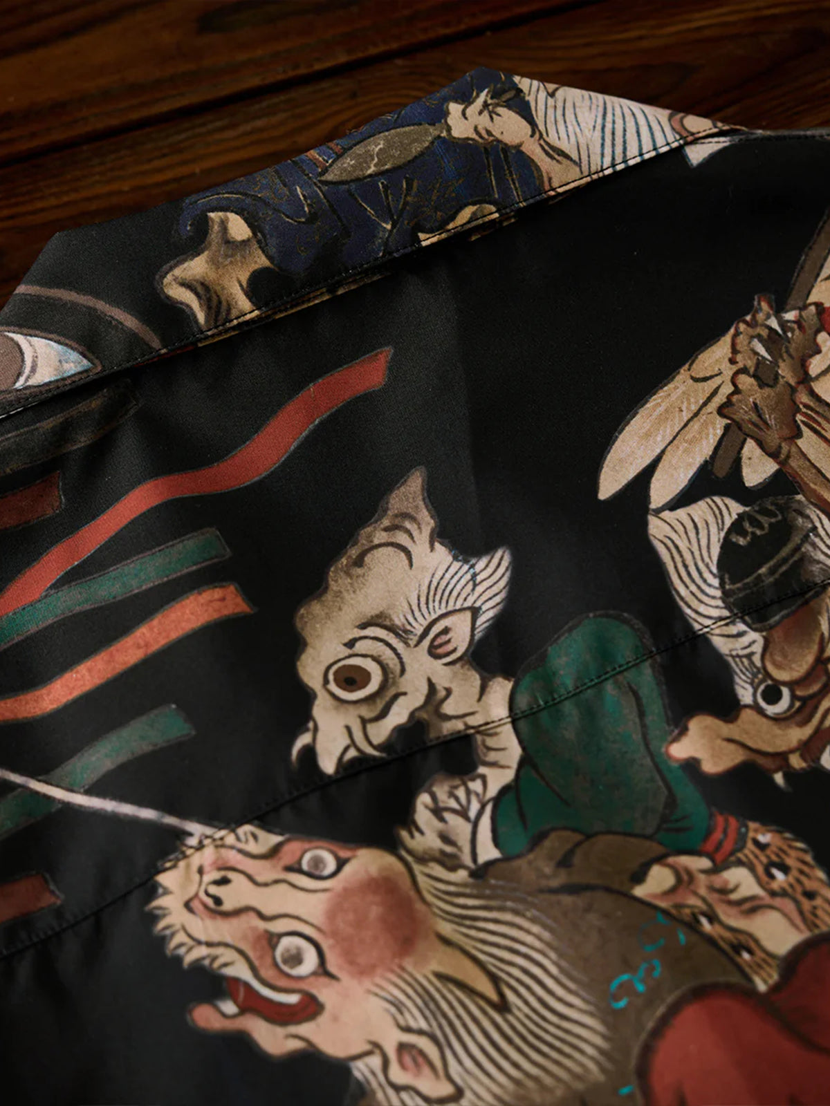 Muromachi Period "Yokai Picture Scroll" Ukiyo-e Pattern Open Collar Shirt